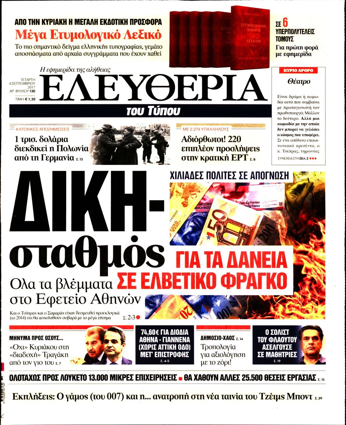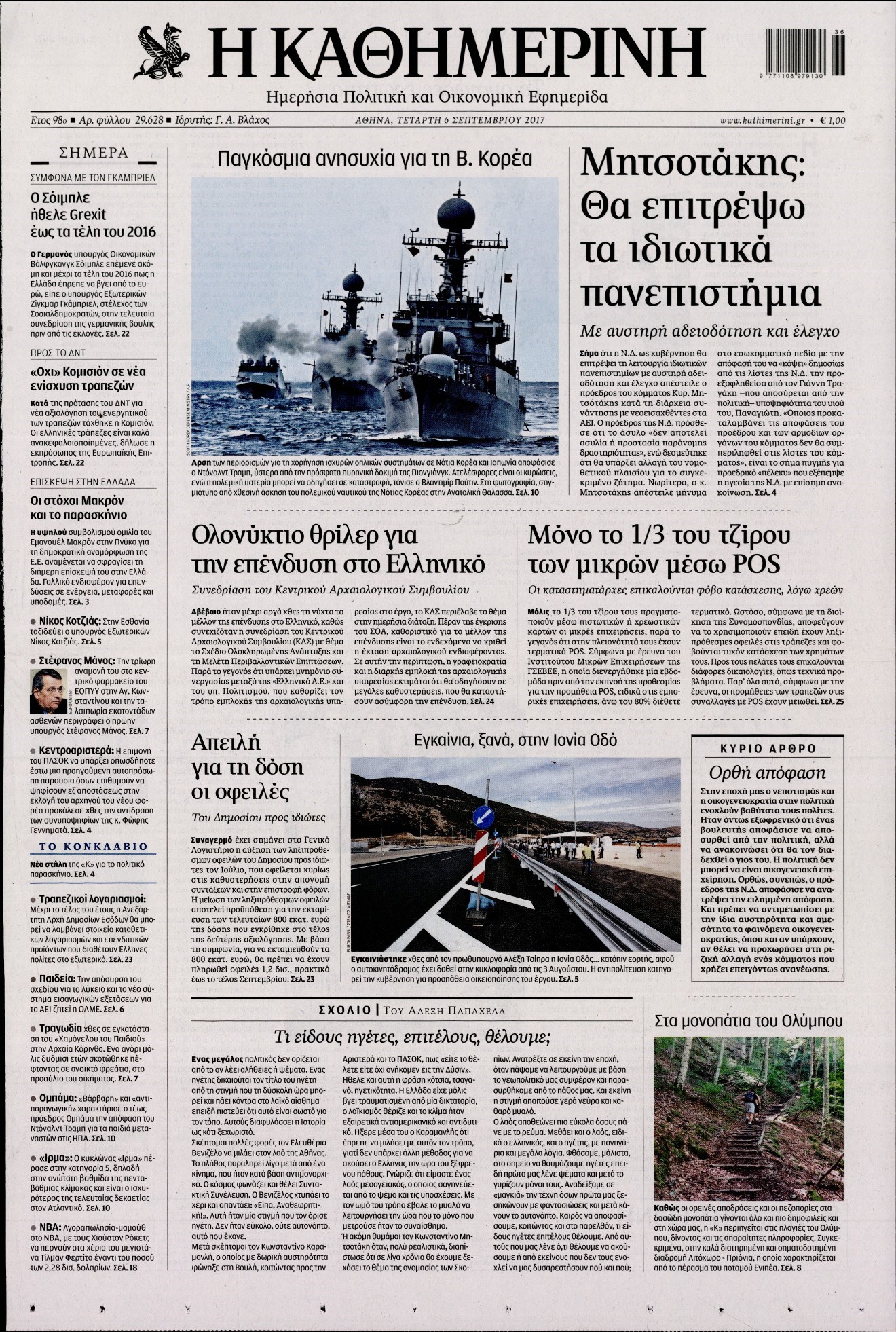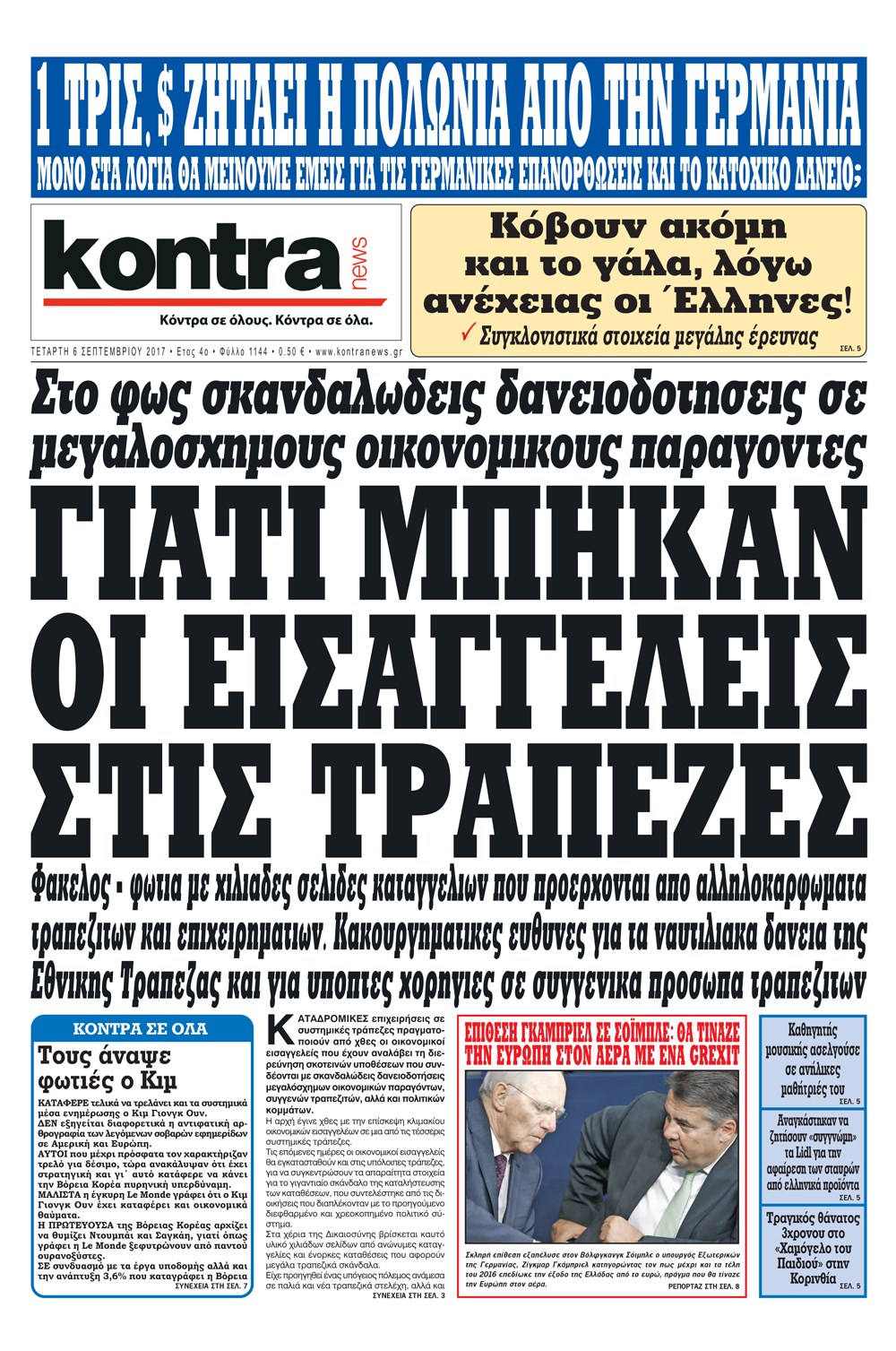 Οι πολιτικές εφημερίδες 6/9/2017 Enikos Newsroom 07:41, Τετάρτη 06 Σεπτεμβρίου 2017 Media Διαβάστε τα σημερινά πρωτοσέλιδα των πολιτικών εφημερίδων: ΠΟΛΙΤΙΚΕΣ ΕΦΗΜΕΡΙΔΕΣ ΠΡΩΤΟΣΕΛΙΔΑ Μοιράσου το: σχολίασε κι εσύ (0 σχόλια) Ακολουθήστε το enikos.gr στο Google News και μάθετε πρώτοι όλες τις ειδήσεις Δείτε όλες τις τελευταίες ειδήσεις από την Ελλάδα και τον Κόσμο στο enikos.gr Ειδήσεις Ροή Ειδήσεων 23 λεπτά πριν Τραμπ: Δεν αποκλείει την πιθανότητα ενός πολέμου στη Βενεζουέλα – «Ο Μαδούρο ξέρει καλύτερα από τον καθένα τι ακριβώς θέλω» 17 λεπτά πριν Ουκρανία: Η άνευ προηγουμένου επίθεση σε ρωσικό τάνκερ στη Μεσόγειο και το μήνυμα προς στον Πούτιν – Το «μακρύ χέρι» του Κιέβου 3 ώρες πριν Εμπλοκή και αερομαχίες με οπλισμένα τουρκικά F-16 στο Αιγαίο 3 ώρες πριν Πούτιν: «Ναι, είμαι ερωτευμένος» – Βίντεο από τη σπάνια προσωπική παραδοχή του 1 ώρα πριν Ανδρέας Λυκουρέντζος: Υπέβαλε την παραίτησή του ο πρόεδρος του ΕΛΓΑ, αλλά δεν έγινε δεκτή – Όλο το παρασκήνιο 2 ώρες πριν Αριθμολογία: Οι άνθρωποι που έχουν γεννηθεί αυτές τις 4 ημερομηνίες, συχνά παρεξηγούνται – «Η καλοσύνη τους κρύβει τεράστια δύναμη» 4 ώρες πριν Μήπως έχετε χάσει τον εαυτό σας στη σχέση σας; 7 «αθόρυβες» υποχωρήσεις που μάλλον κάνατε, χωρίς να το συνειδητοποιήσετε 3 ώρες πριν Ξεχάστε το καθάρισμα το Σαββατοκύριακο: Ο «κανόνας των 20 λεπτών» που θα σας λύσει τα χέρια 32 λεπτά πριν Ύπνος: Μια κρυφή κατάσταση του εγκεφάλου πριν από τον ύπνο μπορεί να είναι το “κλειδί” για υψηλή ευφυΐα και δημιουργικότητα 6 λεπτά πριν Χάρι και Μέγκαν: Η σπάνια οικογενειακή φωτογραφία με τον Άρτσι και τη Λίλιμπετ – Τι σχεδιάζουν για τα Χριστούγεννα 13 λεπτά πριν Βασίλης Καρράς: «Είναι πάντα δίπλα μου, δεν έφυγε…», λέει ο αδελφός του 17 λεπτά πριν Ουκρανία: Η άνευ προηγουμένου επίθεση σε ρωσικό τάνκερ στη Μεσόγειο και το μήνυμα προς στον Πούτιν – Το «μακρύ χέρι» του Κιέβου 23 λεπτά πριν Τραμπ: Δεν αποκλείει την πιθανότητα ενός πολέμου στη Βενεζουέλα – «Ο Μαδούρο ξέρει καλύτερα από τον καθένα τι ακριβώς θέλω» 24 λεπτά πριν Κηφισιά: Με πολλές απουσίες κόντρα στον Ολυμπιακό – «Last dance» για τον Τεττέη ENIKOS NETWORK Το ΕΚΑΒ τιμήθηκε από την Ακαδημία Αθηνών για τα 40 χρόνια προσφοράς του Έχετε πραγματικά μεγάλη καρδιά; 10 χαρακτηριστικά όσων έχουν καλοσύνη ΑΑΔΕ: Νέες αναβαθμίσεις στο Ψηφιακό Πελατολόγιο και την εφαρμογή myDATAapp – Τι πρέπει να γνωρίζετε Όμιλος ΔΕΗ: Νέα ορόσημα και ενισχυμένη διαφάνεια στην ετήσια Έκθεση Βιώσιμης Ανάπτυξης Χαρτογραφώντας το «σημείο χωρίς επιστροφή»: Για πρώτη φορά αποκαλύπτεται με λεπτομέρεια το ακανθώδες όριο της ατμόσφαιρας τ... Η Google καταργεί τη λειτουργία «dark web report» – Πώς θα μπορούν οι χρήστες να διαγράφουν τα δεδομένα τους περισσότερα 20:37 , Παρασκευή 19 Δεκεμβρίου 2025 Don’t Forget The Lyrics: Η Έλλη Κοκκίνου υποδέχεται 4 παίκτες που θα κάνουν τα πάντα για να μη χάσουν ούτε… μισή λέξη από τους στίχους Το «Don’t Forget The Lyrics» επιστρέφει απόψε, Παρασκευή 19 Δεκεμβρίου, στις 21:00 με νέο επει... 19:31 , Παρασκευή 19 Δεκεμβρίου 2025 GNTM: Απόψε ο μεγάλος τελικός για τους 4 φιναλίστ Έπειτα από μήνες γεμάτους μόδα, δημιουργία και έντονες αναμετρήσεις, το GNTM 2025 κορυφώνεται,... 18:11 , Παρασκευή 19 Δεκεμβρίου 2025 Το σόι σου: Ο Άρης έρχεται στην Ελλάδα για τις γιορτές των Χριστουγέννων – Τι θα δούμε στο αποψινό εορταστικό επεισόδιο Ένα απολαυστικό, εορταστικό επεισόδιο της σειράς “Το σόι σου”, γεμάτο ευτράπελα αλ... 15:15 , Παρασκευή 19 Δεκεμβρίου 2025 Την Κυριακή με τη Realne