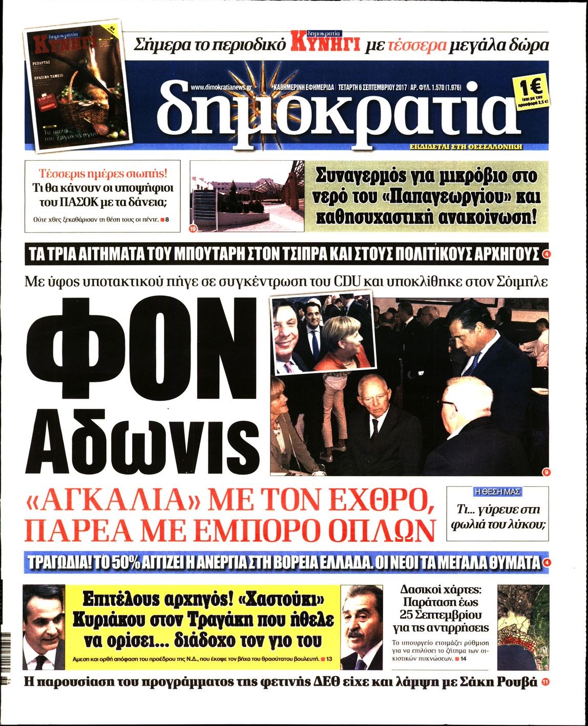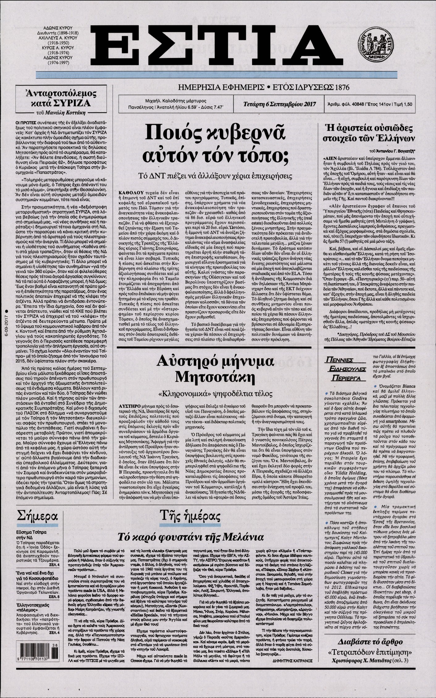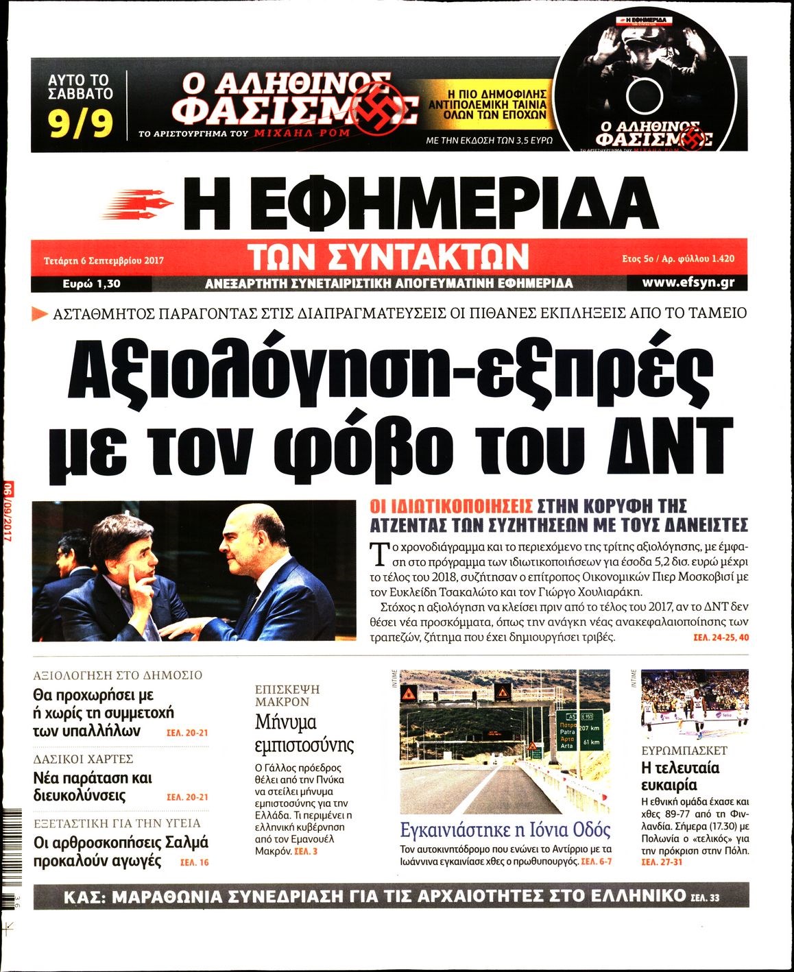 Οι πολιτικές εφημερίδες 6/9/2017 Enikos Newsroom 07:41, Τετάρτη 06 Σεπτεμβρίου 2017 Media Διαβάστε τα σημερινά πρωτοσέλιδα των πολιτικών εφημερίδων: ΠΟΛΙΤΙΚΕΣ ΕΦΗΜΕΡΙΔΕΣ ΠΡΩΤΟΣΕΛΙΔΑ Μοιράσου το: σχολίασε κι εσύ (0 σχόλια) Ακολουθήστε το enikos.gr στο Google News και μάθετε πρώτοι όλες τις ειδήσεις Δείτε όλες τις τελευταίες ειδήσεις από την Ελλάδα και τον Κόσμο στο enikos.gr Ειδήσεις Ροή Ειδήσεων 23 λεπτά πριν Τραμπ: Δεν αποκλείει την πιθανότητα ενός πολέμου στη Βενεζουέλα – «Ο Μαδούρο ξέρει καλύτερα από τον καθένα τι ακριβώς θέλω» 17 λεπτά πριν Ουκρανία: Η άνευ προηγουμένου επίθεση σε ρωσικό τάνκερ στη Μεσόγειο και το μήνυμα προς στον Πούτιν – Το «μακρύ χέρι» του Κιέβου 3 ώρες πριν Εμπλοκή και αερομαχίες με οπλισμένα τουρκικά F-16 στο Αιγαίο 3 ώρες πριν Πούτιν: «Ναι, είμαι ερωτευμένος» – Βίντεο από τη σπάνια προσωπική παραδοχή του 1 ώρα πριν Ανδρέας Λυκουρέντζος: Υπέβαλε την παραίτησή του ο πρόεδρος του ΕΛΓΑ, αλλά δεν έγινε δεκτή – Όλο το παρασκήνιο 2 ώρες πριν Αριθμολογία: Οι άνθρωποι που έχουν γεννηθεί αυτές τις 4 ημερομηνίες, συχνά παρεξηγούνται – «Η καλοσύνη τους κρύβει τεράστια δύναμη» 4 ώρες πριν Μήπως έχετε χάσει τον εαυτό σας στη σχέση σας; 7 «αθόρυβες» υποχωρήσεις που μάλλον κάνατε, χωρίς να το συνειδητοποιήσετε 3 ώρες πριν Ξεχάστε το καθάρισμα το Σαββατοκύριακο: Ο «κανόνας των 20 λεπτών» που θα σας λύσει τα χέρια 32 λεπτά πριν Ύπνος: Μια κρυφή κατάσταση του εγκεφάλου πριν από τον ύπνο μπορεί να είναι το “κλειδί” για υψηλή ευφυΐα και δημιουργικότητα 6 λεπτά πριν Χάρι και Μέγκαν: Η σπάνια οικογενειακή φωτογραφία με τον Άρτσι και τη Λίλιμπετ – Τι σχεδιάζουν για τα Χριστούγεννα 13 λεπτά πριν Βασίλης Καρράς: «Είναι πάντα δίπλα μου, δεν έφυγε…», λέει ο αδελφός του 17 λεπτά πριν Ουκρανία: Η άνευ προηγουμένου επίθεση σε ρωσικό τάνκερ στη Μεσόγειο και το μήνυμα προς στον Πούτιν – Το «μακρύ χέρι» του Κιέβου 23 λεπτά πριν Τραμπ: Δεν αποκλείει την πιθανότητα ενός πολέμου στη Βενεζουέλα – «Ο Μαδούρο ξέρει καλύτερα από τον καθένα τι ακριβώς θέλω» 24 λεπτά πριν Κηφισιά: Με πολλές απουσίες κόντρα στον Ολυμπιακό – «Last dance» για τον Τεττέη ENIKOS NETWORK Το ΕΚΑΒ τιμήθηκε από την Ακαδημία Αθηνών για τα 40 χρόνια προσφοράς του Έχετε πραγματικά μεγάλη καρδιά; 10 χαρακτηριστικά όσων έχουν καλοσύνη ΑΑΔΕ: Νέες αναβαθμίσεις στο Ψηφιακό Πελατολόγιο και την εφαρμογή myDATAapp – Τι πρέπει να γνωρίζετε Όμιλος ΔΕΗ: Νέα ορόσημα και ενισχυμένη διαφάνεια στην ετήσια Έκθεση Βιώσιμης Ανάπτυξης Χαρτογραφώντας το «σημείο χωρίς επιστροφή»: Για πρώτη φορά αποκαλύπτεται με λεπτομέρεια το ακανθώδες όριο της ατμόσφαιρας τ... Η Google καταργεί τη λειτουργία «dark web report» – Πώς θα μπορούν οι χρήστες να διαγράφουν τα δεδομένα τους περισσότερα 20:37 , Παρασκευή 19 Δεκεμβρίου 2025 Don’t Forget The Lyrics: Η Έλλη Κοκκίνου υποδέχεται 4 παίκτες που θα κάνουν τα πάντα για να μη χάσουν ούτε… μισή λέξη από τους στίχους Το «Don’t Forget The Lyrics» επιστρέφει απόψε, Παρασκευή 19 Δεκεμβρίου, στις 21:00 με νέο επει... 19:31 , Παρασκευή 19 Δεκεμβρίου 2025 GNTM: Απόψε ο μεγάλος τελικός για τους 4 φιναλίστ Έπειτα από μήνες γεμάτους μόδα, δημιουργία και έντονες αναμετρήσεις, το GNTM 2025 κορυφώνεται,... 18:11 , Παρασκευή 19 Δεκεμβρίου 2025 Το σόι σου: Ο Άρης έρχεται στην Ελλάδα για τις γιορτές των Χριστουγέννων – Τι θα δούμε στο αποψινό εορταστικό επεισόδιο Ένα απολαυστικό, εορταστικό επεισόδιο της σειράς “Το σόι σου”, γεμάτο ευτράπελα αλ... 15:15 , Παρασκευή 19 Δεκεμβρίου 2025 Την Κυριακή με τη Realne