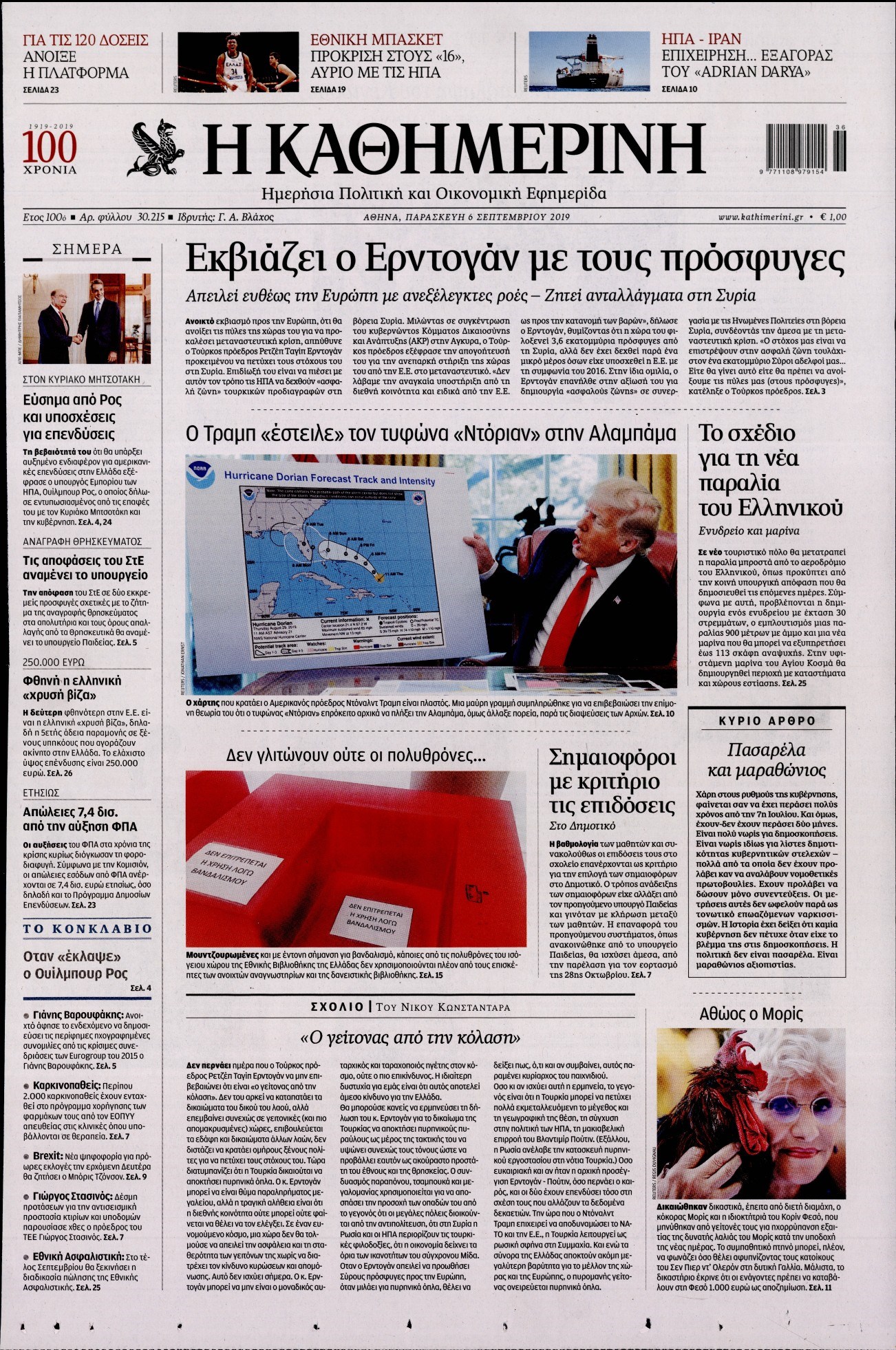 Οι πολιτικές εφημερίδες 6/9/2019 Κώστας Τεό 06:34, Παρασκευή 06 Σεπτεμβρίου 2019 Media Διαβάστε τα πρωτοσέλιδα των πολιτικών εφημερίδων: ΠΟΛΙΤΙΚΕΣ ΕΦΗΜΕΡΙΔΕΣ ΠΡΩΤΟΣΕΛΙΔΑ Μοιράσου το: σχολίασε κι εσύ (0 σχόλια) Ακολουθήστε το enikos.gr στο Google News και μάθετε πρώτοι όλες τις ειδήσεις Δείτε όλες τις τελευταίες ειδήσεις από την Ελλάδα και τον Κόσμο στο enikos.gr Ειδήσεις Ροή Ειδήσεων 2 ώρες πριν Υπόθεση Έπσταϊν: Το Υπουργείο Δικαιοσύνης δημοσιοποίησε μια σειρά από εξαιρετικά επεξεργασμένα αρχεία – «Λείπουν τα πιο σημαντικά έγγραφα», λένε οι Δημοκρατικοί 40 λεπτά πριν Ο «χάρτης» με τις αυξήσεις και τις φοροελαφρύνσεις του 2026 – Ποιοι και πόσα κερδίζουν 11 ώρες πριν Χριστούγεννα στα μπλόκα: Επιμένουν στις κινητοποιήσεις τους οι αγρότες – Ανοίγουν τα διόδια το Σαββατοκύριακο 2 ώρες πριν ΟΝΕΧ – MEGATUGS: Ξεκίνησε η ναυπήγηση ρυμουλκών στην Ελλάδα – Προθάλαμος πολεμικών πλοίων – Δείτε φωτογραφίες και βίντεο 2 ώρες πριν Καιρός: Αλλαγή σκηνικού σήμερα με βροχές και πτώση της θερμοκρασίας – Οι προβλέψεις των μετεωρολόγων για τα Χριστούγεννα 3 ώρες πριν Αυγά: Πόσα μπορείτε να τρώτε την ημέρα με ασφάλεια για μέγιστη πρόσληψη πρωτεΐνης 4 ώρες πριν Τα ζώδια σήμερα, Σάββατο 20 Δεκεμβρίου: Παρθένοι, το σύμπαν σας δίνει το κλειδί 3 ώρες πριν Οπτική ψευδαίσθηση: Μόνο αν είσαι ο Σέρλοκ Χολμς θα βρεις τον αριθμό «87» σε 7 δευτερόλεπτα 1 ώρα πριν Αρχαιολόγοι ανακάλυψαν σε χωράφι απεικόνιση 600 ετών ενός Αγίου – Τα στοιχεία που δείχνουν ότι μαρτύρησε 3 λεπτά πριν Ουκρανία: Drones έπληξαν εξέδρα πετρελαίου και πολεμικό πλοίο της Ρωσίας στην Κασπία 11 λεπτά πριν Παιδική υπέρταση: Μια σιωπηλή απειλή που αυξάνεται διεθνώς 12 λεπτά πριν Αγχώνεται για το χριστουγεννιάτικο δώρο που πήρε στην πλούσια σύντροφό του – «Φοβάμαι πως θα το βρει φθηνιάρικο, φοράει βραχιόλια Cartier» 19 λεπτά πριν Enerwave: Το νέο «ρεύμα» στη λιανική ενέργειας που αλλάζει την εμπειρία του καταναλωτή 23 λεπτά πριν Γιώργος Μαζωνάκης: Τη Δευτέρα η μήνυση του τραγουδιστή κατά του 22χρονου ENIKOS NETWORK Πόσα κιλά παίρνουμε πραγματικά τα Χριστούγεννα, σύμφωνα με την επιστήμη – Πώς να το αποτρέψουμε; Το δημοφιλές ρόφημα που αυξάνει την πίεση πιο γρήγορα και από το αλάτι Mega χριστουγεννιάτικη φορολοταρία: «Κλείδωσε» η ημερομηνία για την κλήρωση – Ερωτήσεις και απαντήσεις Αναστολή μέτρων αναγκαστικής εκτέλεσης για κτηνοτρόφους που πλήττονται από την ευλογιά των αιγοπροβάτων Χαρτογραφώντας το «σημείο χωρίς επιστροφή»: Για πρώτη φορά αποκαλύπτεται με λεπτομέρεια το ακανθώδες όριο της ατμόσφαιρας τ... Η Google καταργεί τη λειτουργία «dark web report» – Πώς θα μπορούν οι χρήστες να διαγράφουν τα δεδομένα τους περισσότερα 08:14 , Σάββατο 20 Δεκεμβρίου 2025 Τρομεροί γονείς: Η Μαρία Καβογιάννη εισβάλλει στο σπίτι της οικογένειας Στεφανίδη Όσα θα δούμε στο νέο διπλό επεισόδιο της σειράς «Τρομεροί γονείς», σήμερα Σάββατο 20 Δεκεμβρίο... 05:48 , Σάββατο 20 Δεκεμβρίου 2025 Οι οικονομικές εφημερίδες 20/12/2025 Διαβάστε τα πρωτοσέλιδα από τις οικονομικές εφημερίδες, σήμερα 20/12/2025. 05:43 , Σάββατο 20 Δεκεμβρίου 2025 Οι αθλητικές εφημερίδες 20/12/2025 Διαβάστε τα πρωτοσέλιδα από τις αθλητικές εφημερίδες, σήμερα 20/12/2025. 05:38 , Σάββατο 20 Δεκεμβρίου 2025 Οι πολιτικές εφημερίδες 20/12/2025 Διαβάστε τα πρωτοσέλιδα από τις πολιτικές εφημερίδες, σήμερα 20/12/2025. ΤΕΛΕΥΤΑΙΕΣ ΕΙΔΗΣΕΙΣ 3 λεπτά πριν Ουκρανία: Drones έπληξαν εξέδρα πετρελαίου και πολεμικό... 11 λεπτά πριν Παιδική υπέρταση: Μια σιωπηλή απειλή που αυξάν