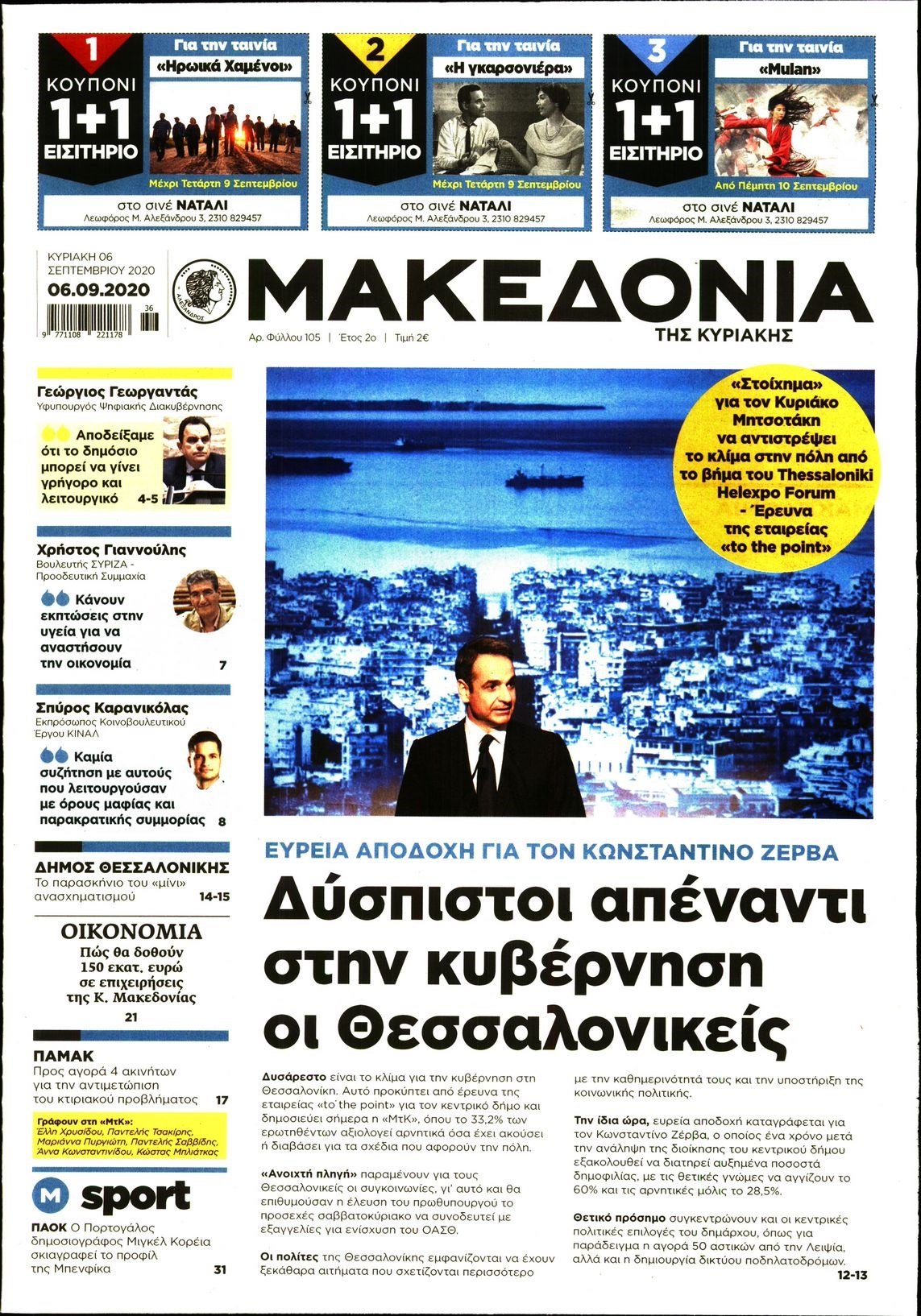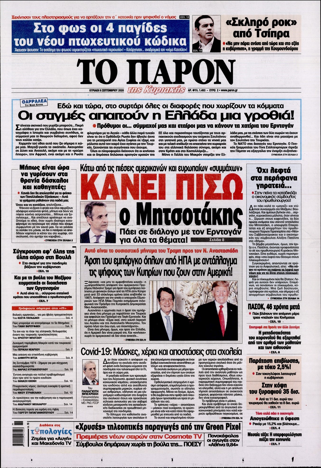 Οι πολιτικές εφημερίδες 6/9/2020 Διονύσης Νίκκας 07:15, Κυριακή 06 Σεπτεμβρίου 2020 Media Διαβάστε τα πρωτοσέλιδα των πολιτικών εφημερίδων… ΠΟΛΙΤΙΚΕΣ ΕΦΗΜΕΡΙΔΕΣ ΠΡΩΤΟΣΕΛΙΔΑ Μοιράσου το: σχολίασε κι εσύ (0 σχόλια) Ακολουθήστε το enikos.gr στο Google News και μάθετε πρώτοι όλες τις ειδήσεις Δείτε όλες τις τελευταίες ειδήσεις από την Ελλάδα και τον Κόσμο στο enikos.gr Ειδήσεις Ροή Ειδήσεων 41 λεπτά πριν Πώς δρούσε το κύκλωμα που διακινούσε ναρκωτικά σε σχολεία – Υπέβαλαν σε βασανιστήρια όσους δεν τηρούσαν τους «κανόνες πειθαρχίας» 1 ώρα πριν Αγρότες: Γιορτές στα μπλόκα με ανοιχτά διόδια – Δικογραφία στα Ιωάννινα για το σήκωμα των μπαρών 5 ώρες πριν Αρχεία Έπσταϊν: Οι συγκλονιστικές φωτογραφίες – Ο Μάικλ Τζάκσον, ο Μικ Τζάγκερ και ο Κέβιν Σπέισι ανάμεσα στους διάσημους που απεικονίζονται 3 ώρες πριν Βέλγιο: Άγνωστοι έριξαν κόκκινη μπογιά στο προξενείο της Πολωνίας στις Βρυξέλλες 2 ώρες πριν ΕΛΑΣ: Συνελήφθησαν Υπαρχιπυροσβέστης και δύο ακόμη άτομα για κατοχή και διακίνηση ναρκωτικών ουσιών – Η καταγγελία και ο τιμοκατάλογος 1 ώρα πριν Η τύχη χαμογελά σε 3 ζώδια έως τις 28 Δεκεμβρίου – «Προσέξτε τις επιλογές σας και η επιμονή σας θα ανταμειφθεί» 5 ώρες πριν Διαιτολόγος αποκαλύπτει 9 πρωινές συνήθειες που «λιώνουν» το κοιλιακό λίπος – «Υποστηρίζουν την υγιεινή απώλεια βάρους» 6 ώρες πριν Οι 7 φράσεις που δεν λένε ποτέ οι συναισθηματικά έξυπνοι άνθρωποι κατά τη διάρκεια ενός καβγά 8 ώρες πριν Enerwave: Το νέο «ρεύμα» στη λιανική ενέργειας που αλλάζει την εμπειρία του καταναλωτή 9 λεπτά πριν Κωνσταντίνος Αργυρός: «Δεν θέλω να ασχοληθώ με την πολιτική σε αυτή τη φάση – Μου έχουν γίνει προτάσεις» 18 λεπτά πριν Σέρρες: Διέρρηξαν διαμέρισμα και «βούτηξαν» ρολόγια συνολικής αξίας 15.000 ευρώ – 3 συλλήψεις 26 λεπτά πριν Κουίζ για την παλιά Αθήνα: Αναγνωρίζετε την συνοικία; Είναι από τις πιο γνωστές 34 λεπτά πριν Ζελένσκι: Οι Αμερικανοί πρότειναν συνάντηση Ουκρανίας, ΗΠΑ, Ρωσίας στο Μαϊάμι 41 λεπτά πριν Πώς δρούσε το κύκλωμα που διακινούσε ναρκωτικά σε σχολεία – Υπέβαλαν σε βασανιστήρια όσους δεν τηρούσαν τους «κανόνες πειθαρχίας» ENIKOS NETWORK Η αποχή από την αναπαραγωγή παρατείνει τη ζωή στα ζώα, σύμφωνα με μελέτη – Τι ισχύει για τους ανθρώπους; Σημαντικές επαφές στις ΗΠΑ είχε ο υπουργός Υγείας Άδωνις Γεωργιάδης Στα ύψη ο χρυσός – Νέο ρεκόρ στην τιμή της λίρας, πόσο πωλείται Τέλη κυκλοφορίας 2026: Προσοχή στην προθεσμία εξόφλησής τους – Πώς διαμορφώνονται τα πρόστιμα σε περίπτωση καθυστέρησης Χαρτογραφώντας το «σημείο χωρίς επιστροφή»: Για πρώτη φορά αποκαλύπτεται με λεπτομέρεια το ακανθώδες όριο της ατμόσφαιρας τ... Η Google καταργεί τη λειτουργία «dark web report» – Πώς θα μπορούν οι χρήστες να διαγράφουν τα δεδομένα τους περισσότερα 14:04 , Σάββατο 20 Δεκεμβρίου 2025 Η Realnews αυτής της Κυριακής (21/12/2025) Με τίτλο: «Ασπίδα προστασίας για την Ελλάδα» κυκλοφορεί, αυτήν την Κυριακή, η Realnews. Σημαντ... 12:53 , Σάββατο 20 Δεκεμβρίου 2025 Να μ’ αγαπάς: Το παρελθόν έρχεται στο φως – Καταιγιστικές εξελίξεις στα τελευταία επεισόδια του 2025 Ο Άγγελος αποκαλύπτεται, η Φωτεινή ανησυχεί για τον Λευτέρη και η Ζωή έρχεται αντιμέτωπη με το... 11:41 , Σάββατο 20 Δεκεμβρίου 2025 «Η αγάπη δεν χάνεται ποτέ»: Η μικρού μήκους ταινία κινουμένων σχεδίων που θέτει ερωτήματα για τη ζωή και τον θάνατο Ο θάνατος είναι ένα από τα πιο σκληρά θέματα που καλείται να διαχειριστεί κάποιος στη διάρκεια... 09:30 , Σάββατο 20 Δεκεμβρίου 2025 «Porto Leone: Στη γειτον