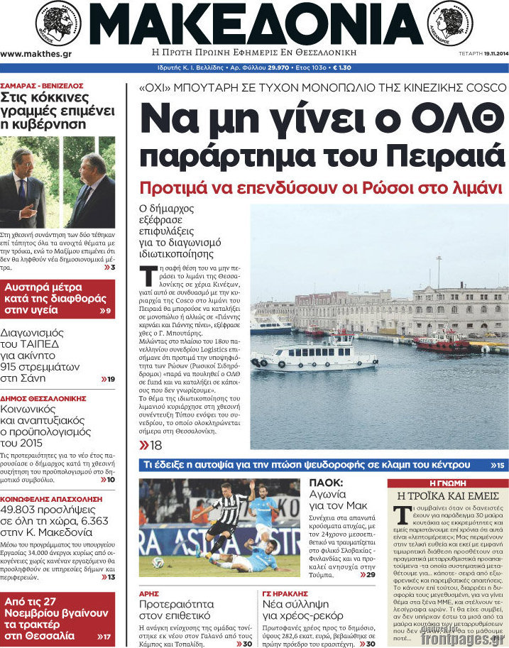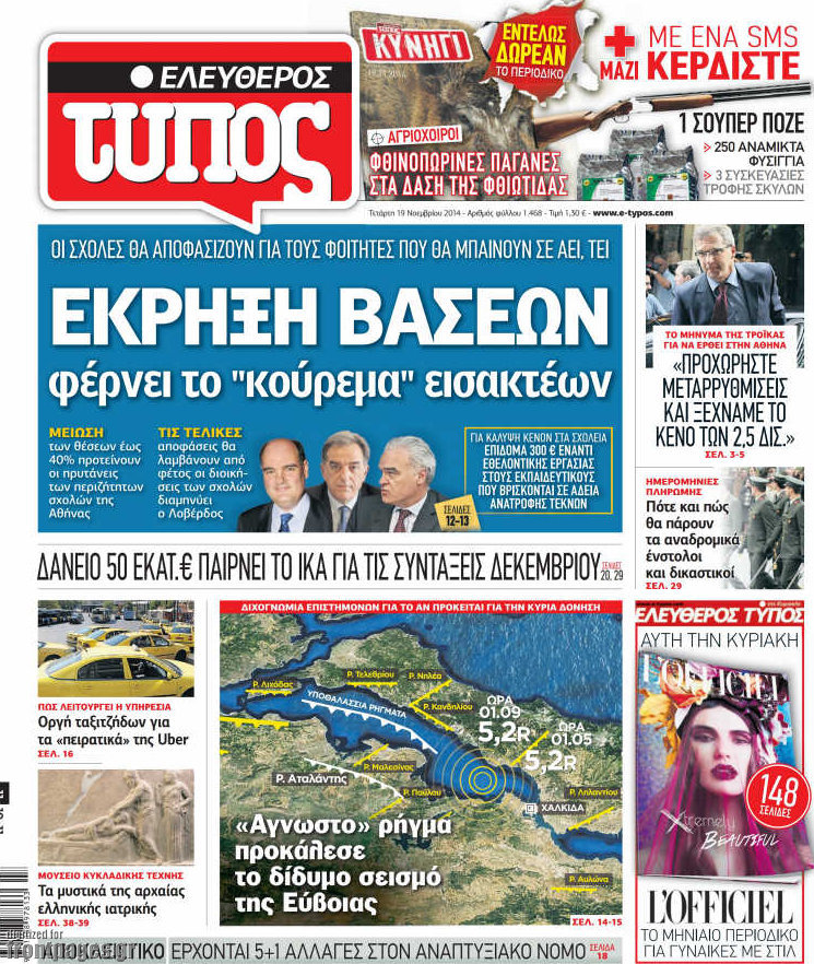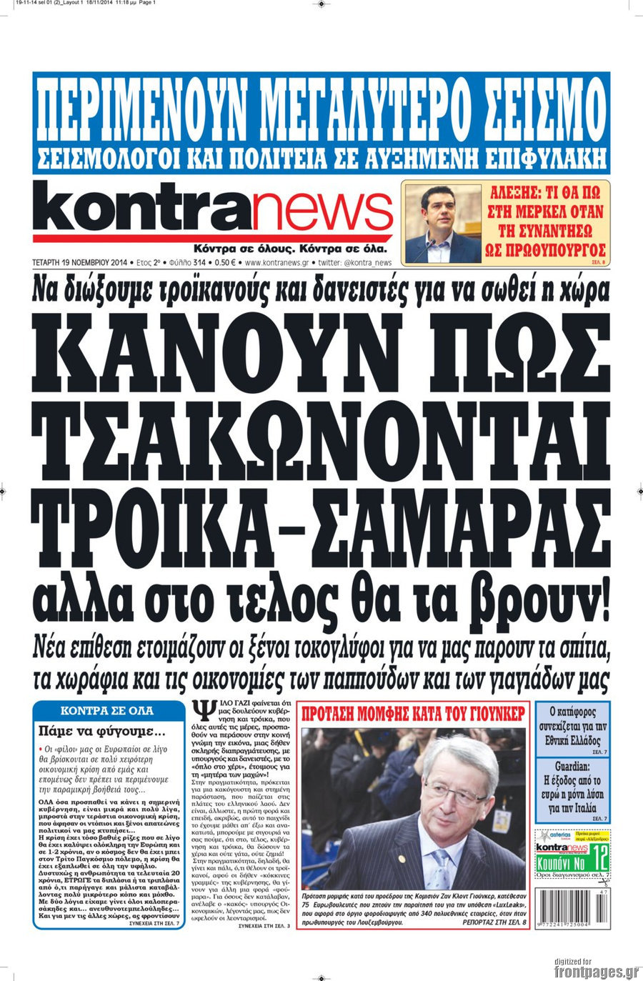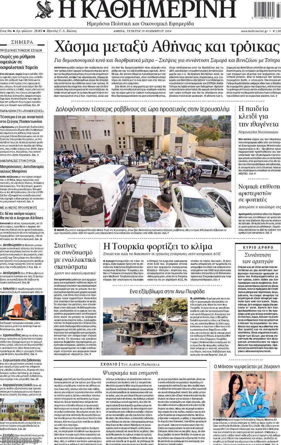 Οι πολιτικές εφημερίδες Enikos Newsroom 07:48, Τετάρτη 19 Νοεμβρίου 2014 Media Οι πολιτικές εφημερίδες Διαβάστε τα πρωτοσέλιδα των πολιτικών εφημερίδων: ΠΟΛΙΤΙΚΕΣ ΕΦΗΜΕΡΙΔΕΣ ΠΡΩΤΟΣΕΛΙΔΑ Μοιράσου το: σχολίασε κι εσύ (0 σχόλια) Ακολουθήστε το enikos.gr στο Google News και μάθετε πρώτοι όλες τις ειδήσεις Δείτε όλες τις τελευταίες ειδήσεις από την Ελλάδα και τον Κόσμο στο enikos.gr Ειδήσεις Ροή Ειδήσεων 2 ώρες πριν Κυριάκος Μητσοτάκης: «Κάποιοι αγρότες δεν αισθάνονται την ανάγκη να διαφωνήσουν με τις προτάσεις της κυβέρνησης, η Ευρώπη στέκεται στο πλευρό της Ουκρανίας» 7 ώρες πριν ΟΠΕΚΕΠΕ: Προφυλακιστέος ο φερόμενος αρχηγός και ο λογιστής της εγκληματικής οργάνωσης 8 ώρες πριν Αυξάνουν την πίεση προς την κυβέρνηση οι αγρότες: Κλείνουν παρακαμπτήριους και ανοίγουν διόδια – Τι θα γίνει τις γιορτές 8 ώρες πριν Φοινικούντα: Το Σάββατο απολογείται ο 30χρονος γιος γνωστού επιχειρηματία της Πλάκας που παραδόθηκε – Όσα είπε στους αστυνομικούς και ο ρόλος του στο έγκλημα 7 ώρες πριν ΑΕΚ – Κραϊόβα 3-2: Επική ανατροπή και πρόκριση στους «16» του Conference League η Ένωση 8 ώρες πριν Αρχαιολόγοι ανακάλυψαν ρωμαϊκά τεχνουργήματα από μια πόλη που δεν υπήρξε ποτέ – Τα τρία εντυπωσιακά κτίρια και ο αμφορέας με τις… σαρδέλες 9 ώρες πριν Ύπνος: Η απλή βραδινή ρουτίνα για να προστατεύσετε τα μαλλιά σας από το κρύο κατά τη διάρκεια του χειμώνα 10 ώρες πριν Manifesting: Πώς να συναντήσετε τον σύντροφο της ζωής σας, ανάλογα με τον μήνα γέννησής σας 2 ημέρες πριν 20 χρόνια τα Χριστούγεννα ξεκινούν στα Public με μεγάλη ποικιλία σε δώρα! 11 λεπτά πριν Φρίντριχ Μερτς: Χορήγηση άτοκου δανείου στην Ουκρανία συμφώνησαν τα κράτη – μέλη της ΕΕ 19 λεπτά πριν Απειλή για το Προϋπολογισμό τα ληξιπρόθεσμα χρέη των ιδιωτών προς την εφορία 19 λεπτά πριν Πέντε νεκροί σε πλήγματα των ΗΠΑ κατά δύο σκαφών που φέρεται να μετέφεραν ναρκωτικά στον Ανατολικό Ειρηνικό 27 λεπτά πριν ΕΥΔΑΠ: Αλλάζουν τα τιμολόγια του νερού 35 λεπτά πριν Οπτική ψευδαίσθηση: Μόνο αν έχεις αετίσια ματιά θα βρεις τον παπαγάλο σε 12 δευτερόλεπτα ENIKOS NETWORK Σε περίοδο αυξημένης δραστηριότητας η γρίπη στην Ελλάδα-Μέτρα προστασίας από τον ΕΟΔΥ Σκέφτεστε συνέχεια συζητήσεις που έχετε κάνει; Τι σημαίνει αυτό, σύμφωνα με ειδικό Στεγαστικό: Τι λέει η ΠΟΜΙΔΑ για τα νέα μέτρα που ανακοίνωσε ο Κυριάκος Μητσοτάκης Λαγκάρντ: Αισιόδοξη για την ανάπτυξη της Ευρωζώνης, αβέβαιη για τον πληθωρισμό Χαρτογραφώντας το «σημείο χωρίς επιστροφή»: Για πρώτη φορά αποκαλύπτεται με λεπτομέρεια το ακανθώδες όριο της ατμόσφαιρας τ... Η Google καταργεί τη λειτουργία «dark web report» – Πώς θα μπορούν οι χρήστες να διαγράφουν τα δεδομένα τους περισσότερα 05:48 , Παρασκευή 19 Δεκεμβρίου 2025 Οι οικονομικές εφημερίδες 19/12/2025 Διαβάστε τα πρωτοσέλιδα από τις οικονομικές εφημερίδες, σήμερα 19/12/2025. 05:43 , Παρασκευή 19 Δεκεμβρίου 2025 Οι αθλητικές εφημερίδες 19/12/2025 Διαβάστε τα πρωτοσέλιδα από τις αθλητικές εφημερίδες, σήμερα 19/12/2025. 05:38 , Παρασκευή 19 Δεκεμβρίου 2025 Οι πολιτικές εφημερίδες 19/12/2025 Διαβάστε τα πρωτοσέλιδα από τις πολιτικές εφημερίδες, σήμερα 19/12/2025. 02:50 , Παρασκευή 19 Δεκεμβρίου 2025 GNTM: «Κλείδωσαν» οι τέσσερις φιναλίστ – Μεγάλη ανατροπή στις τελευταίες αποχωρήσεις Για προτελευταία φορά εμφανίστηκαν στο πλατό του GNTM οι φιναλίστ του φετινού κύκλου, το βράδυ... ΤΕΛΕΥΤΑΙΕΣ ΕΙΔΗΣΕΙΣ 11 λεπτά πριν Φρίντριχ Μερτς: Χορήγηση άτοκου δανείου στην Ουκρανία... 19 λεπτά πριν Απειλή για το Προϋπολογισμό τα ληξιπρόθεσμα χρέη τω