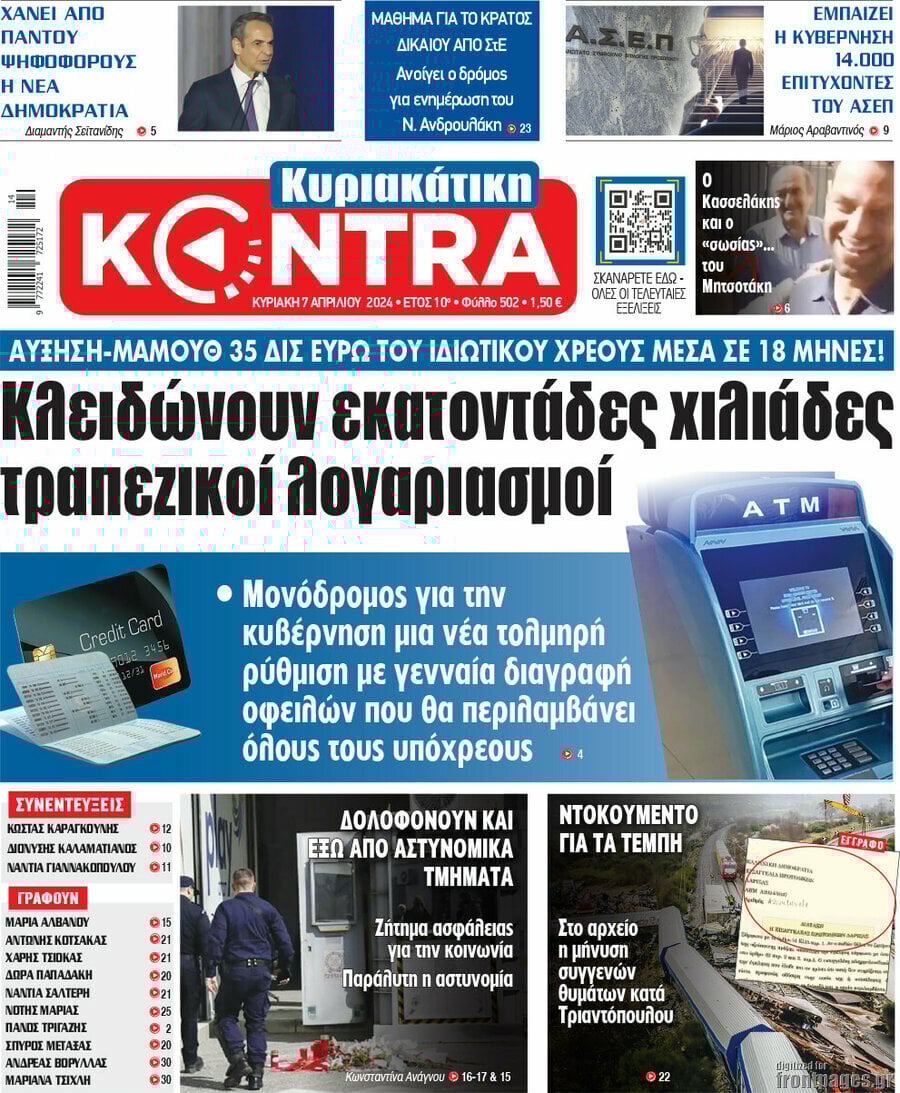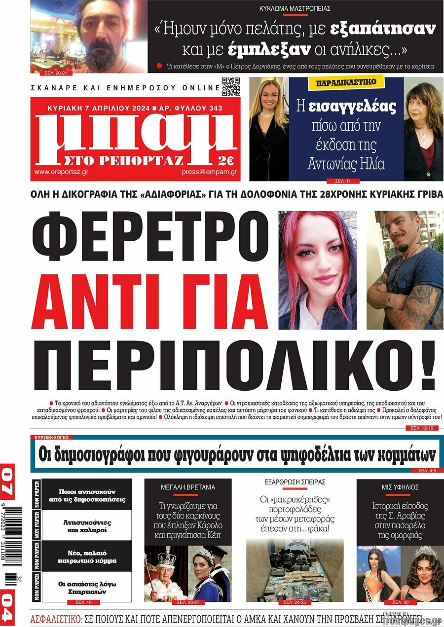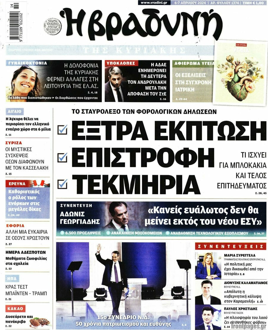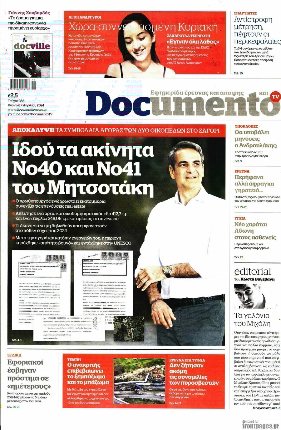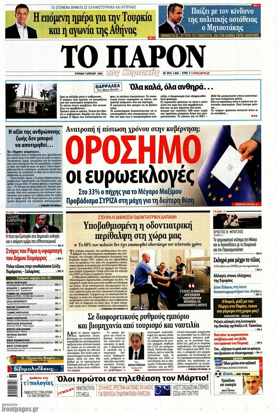 Οι πολιτικές εφημερίδες 7/4/2024 xrisikakif 06:40, Κυριακή 07 Απριλίου 2024 Media Διαβάστε τα πρωτοσέλιδα από τις πολιτικές εφημερίδες , σήμερα 7/4/2024. ΕΦΗΜΕΡΙΔΕΣ ΠΟΛΙΤΙΚΕΣ ΕΦΗΜΕΡΙΔΕΣ ΠΡΩΤΟΣΕΛΙΔΑ Μοιράσου το: σχολίασε κι εσύ (0 σχόλια) Ακολουθήστε το enikos.gr στο Google News και μάθετε πρώτοι όλες τις ειδήσεις Δείτε όλες τις τελευταίες ειδήσεις από την Ελλάδα και τον Κόσμο στο enikos.gr Ειδήσεις Ροή Ειδήσεων 3 ώρες πριν «Τεστ» υπομονής η χριστουγεννιάτικη έξοδος: Οι ουρές χιλιομέτρων και η απόφαση να ανοίξουν επιπλέον λωρίδες – Εν αναμονή των επόμενων κινήσεων των αγροτών 2 ώρες πριν Τραγωδία στην Τουρκία: Νεκρός ο αρχηγός του Γενικού Επιτελείου της Λιβύης – Συνετρίβη λίγο μετά την απογείωση το ιδιωτικό τζετ που τον μετέφερε – ΦΩΤΟ και ΒΙΝΤΕΟ 3 ώρες πριν Θάνατος 3χρονου στην Αλεξανδρούπολη: «Το παιδί είχε φάει το προηγούμενο βράδυ» υποστηρίζει η μητέρα του – Στο νοσοκομείο τα αδελφάκια του 3 ώρες πριν Σύλληψη 35χρονου στα Καλύβια: Πιθανή σχέση του με τον σεσημασμένο 37χρονο Κρητικό αναζητούν οι Αρχές – Τα συμβόλαια θανάτου και το σενάριο για νέο χτύπημα 6 ώρες πριν Ιλίσια: Διασωληνωμένος και σε σοβαρή κατάσταση ο συντηρητής του ασανσέρ – Πώς έγινε το ατύχημα στο σούπερ μάρκετ 3 ώρες πριν Ανακαλύφθηκε τεράστιος κυκλικός λαβύρινθος που «οδηγεί» στην… Αρχαία Ρώμη – Τα ευρήματα με «άρωμα« Κρήτης 4 ώρες πριν Ύπνος: Ειδικός μοιράζεται 6 απλές συνήθειες που θα σας βοηθήσουν να κοιμάστε πιο γρήγορα κάθε βράδυ 5 ώρες πριν Αριθμολογία: Οι άνθρωποι με αυτές τις 4 ημερομηνίες γέννησης, διαθέτουν ένα σπάνιο χάρισμα -«Διαβάζουν τις ψυχές των άλλων» 16 ώρες πριν Η Coca-Cola και ο Ελληνικός Ερυθρός Σταυρός μαζί αυτά τα Χριστούγεννα: Μια μεγάλη αγκαλιά για τους συνανθρώπους μας που έχουν ανάγκη 10 λεπτά πριν Λιόν: Ανακοινώθηκε ο δανεισμός του Έντρικ από την Ρεάλ Μαδρίτης 24 λεπτά πριν ΗΠΑ: Εντολές εκκένωσης σε περιοχές του Λος Άντζελες ενόψει καταιγίδας που ενδέχεται να προκαλέσει σαρωτικές πλημμύρες 40 λεπτά πριν Γκιμαράες – Σπόρτινγκ Λισαβόνας 1-4: Νίκη με σούπερ Ιωαννίδη – ΒΙΝΤΕΟ 1 ώρα πριν Αρχεία Επστάιν: «Ψεύτικη η κάρτα προς τον καταδικασμένο παιδεραστή Λάρι Νάσαρ» λέει το υπουργείο Δικαιοσύνης των ΗΠΑ 1 ώρα πριν ΟΠΕΚΕΠΕ: Νέα πληρωμή 25,3 εκατ. ευρώ σε 43.100 δικαιούχους ENIKOS NETWORK Πώς μας επηρεάζει η Χριστουγεννιάτικη μουσική; Τι μπορεί να σημαίνει αν δεν σας αρέσει Συμβουλές για να αποφευχθούν παιδικά ατυχήματα τα Χριστούγεννα Εορταστικό ωράριο: Ανοιχτά τα καταστήματα την τελευταία Κυριακή του χρόνου Αυξήσεις στις συντάξεις: Πόσα θα κερδίσετε από τον Ιανουάριο Ο Google Assistant θα παραμείνει λίγο περισσότερο για ορισμένους χρήστες Android Τεστ προσωπικότητας: Το βάζο που θα επιλέξετε αποκαλύπτει πώς λύνετε προβλήματα στη ζωή σας περισσότερα 23:21 , Τρίτη 23 Δεκεμβρίου 2025 Παρά Πέντε: Συγκίνηση και ενθουσιασμός στο «X» με το reunion – «Σαν να μην πέρασε μια μέρα…» Το «Παρά Πέντε» επέστρεψε το βράδυ της Τρίτης (23/12) με ένα επετειακό επεισόδιο. Η θρυλική σε... 23:12 , Τρίτη 23 Δεκεμβρίου 2025 Ο Χριστουγεννιάτικος Τηλεμαραθώνιος του ΑΝΤ1 συγκέντρωσε 3.330.000 ευρώ και θα στηρίξει 300.000 παιδιά Με μεγάλη επιτυχία, πραγματοποιήθηκε τη Δευτέρα 22 Δεκεμβρίου ο Χριστουγεννιάτικος Τηλεμαραθών... 22:25 , Τρίτη 23 Δεκεμβρίου 2025 Παρά Πέντε – Σμαράγδα Καρύδη: «Αυτή η σειρά έμεινε αγέραστη – Παιδιά που είναι 10 ετών, νομίζουν ότι το κάναμε τώρα» Τον Ιούνιο του 2007, έπειτα από δύο κύκλους, υψηλά νούμερα τηλεθέασης και 49 απολαυστικά επεισ... 