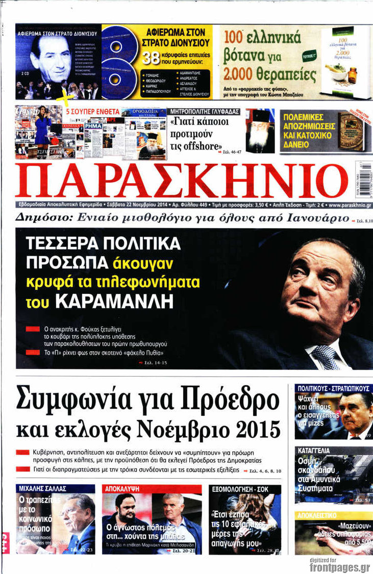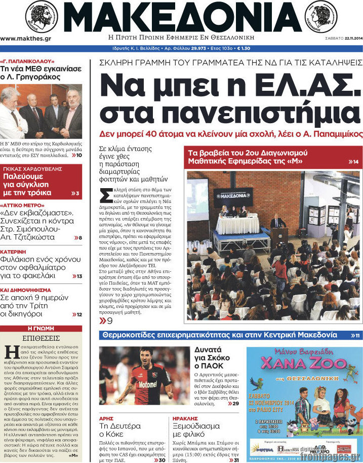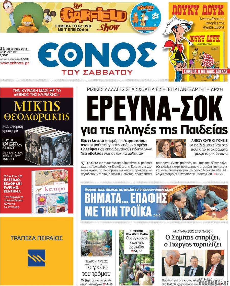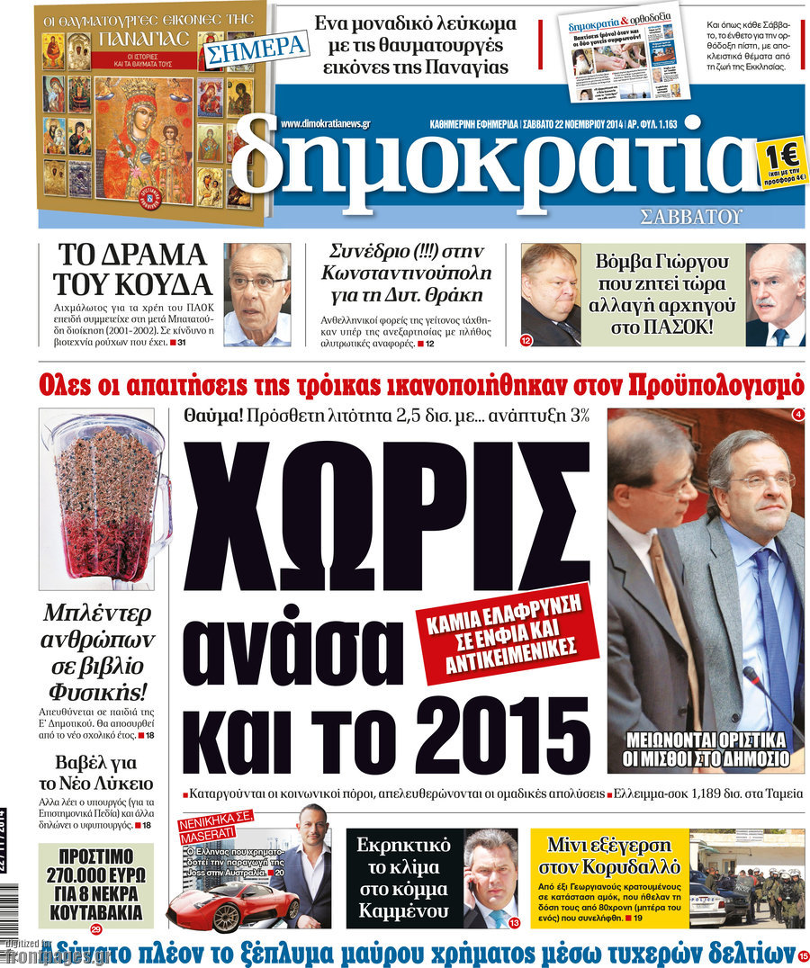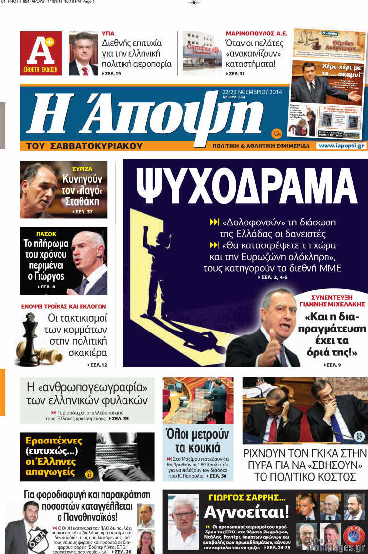Οι πολιτικές εφημερίδες Enikos Newsroom 07:36, Σάββατο 22 Νοεμβρίου 2014 Media Οι πολιτικές εφημερίδες Διαβάστε τα πρωτοσέλιδα των πολιτικών εφημερίδων: ΠΟΛΙΤΙΚΕΣ ΕΦΗΜΕΡΙΔΕΣ ΠΡΩΤΟΣΕΛΙΔΑ Μοιράσου το: σχολίασε κι εσύ (0 σχόλια) Ακολουθήστε το enikos.gr στο Google News και μάθετε πρώτοι όλες τις ειδήσεις Δείτε όλες τις τελευταίες ειδήσεις από την Ελλάδα και τον Κόσμο στο enikos.gr Ειδήσεις Ροή Ειδήσεων 3 ώρες πριν Αγρότες: Πολύωροι αποκλεισμοί στα τελωνεία Προμαχώνα, Εξοχής, Ευζώνων και Νίκης – Κλείνουν τον κόμβο Φιλώτα οι παραγωγοί στη Δυτική Μακεδονία 2 ώρες πριν Νίκος Παππάς: Ζητώ συγγνώμη για αυτό το επεισόδιο – Δεν τον γρονθοκόπησα 1 ώρα πριν Πούτιν: Η Ουκρανία δεν είναι έτοιμη για ειρηνευτικές συνομιλίες – ο ρωσικός στρατός προελαύνει σε όλα τα μέτωπα 1 ώρα πριν Κρήτη: Στο Ρέθυμνο μεταφέρονται οι εκατοντάδες μετανάστες που διασώθηκαν ανοιχτά της Γαύδου 2 ώρες πριν Τρομακτικό βίντεο: Η στιγμή της έκρηξης στο τζετ που μετέφερε τον οδηγό του NASCAR, Γκρεγκ Μπιφλ και την οικογένειά του 3 ώρες πριν Αλλαγή σελίδας για 3 ζώδια – «Μία δύσκολη περίοδος φτάνει στο τέλος της» 2 ημέρες πριν 20 χρόνια τα Χριστούγεννα ξεκινούν στα Public με μεγάλη ποικιλία σε δώρα! 2 ώρες πριν Γεμάτος νεροχύτης; 5 σοβαρές ευθύνες που «φοβίζουν» όσους αφήνουν άπλυτα πιάτα 1 ώρα πριν Ειδικός μοιράζεται 6 κόλπα για να διατηρείστε σε φόρμα με πάνω από 40 ώρες εργασίας την εβδομάδα: «Προπονηθείτε πριν από τη δουλειά, όχι μετά» 4 λεπτά πριν Πούτιν: Η χρήση των ρωσικών παγωμένων περιουσιακών στοιχείων για τη χρηματοδότηση της Ουκρανίας είναι ληστεία – Θα είχε σοβαρές επιπτώσεις” 9 λεπτά πριν ΑΑΔΕ: QR Code και Barcode για εύκολες και γρήγορες πληρωμές οφειλών 14 λεπτά πριν Νέα Φιλαδέλφεια: Βίντεο ντοκουμέντο από το θανατηφόρο τροχαίο 19 λεπτά πριν Παπαθανάσης: «Η Ελλάδα αλλάζει με μεταρρυθμίσεις και έργα – Το 2026 χρονιά μεγάλης ανάπτυξης, νέων θέσεων εργασίας, καλύτερων αμοιβών» 25 λεπτά πριν Αγρότες: Παραμένουν στα μπλόκα και ενισχύουν τις δράσεις τους σε Ημαθία, Πέλλα, Πιερία και Καβάλα ENIKOS NETWORK Κίνδυνος παραπλάνησης από διαφημίσεις οδοντικών εμφυτευμάτων Καρκίνος του πνεύμονα: Έως 8.000 ζωές μπορούν να σωθούν με την έγκαιρη διάγνωση Αγορά πολυτελών κατοικιών: Αυτές είναι οι προτεραιότητες των αγοραστών – Σε ποιες περιοχές στρέφονται και τι επιλέγουν ΕΥΔΑΠ: Στο τραπέζι αλλαγές στους λογαριασμούς του νερού – Τι θα ισχύσει για ευάλωτα νοικοκυριά και επιχειρήσεις Χαρτογραφώντας το «σημείο χωρίς επιστροφή»: Για πρώτη φορά αποκαλύπτεται με λεπτομέρεια το ακανθώδες όριο της ατμόσφαιρας τ... Η Google καταργεί τη λειτουργία «dark web report» – Πώς θα μπορούν οι χρήστες να διαγράφουν τα δεδομένα τους περισσότερα 08:00 , Παρασκευή 19 Δεκεμβρίου 2025 Την Κυριακή με τη Realnews: Δωροεπιταγή 10€ Δωροεπιταγή αξίας 10€ για αγορές άνω των 60€ από τα πολυκαταστήματα FactoryOutlet H προσφορά ι... 05:48 , Παρασκευή 19 Δεκεμβρίου 2025 Οι οικονομικές εφημερίδες 19/12/2025 Διαβάστε τα πρωτοσέλιδα από τις οικονομικές εφημερίδες, σήμερα 19/12/2025. 05:43 , Παρασκευή 19 Δεκεμβρίου 2025 Οι αθλητικές εφημερίδες 19/12/2025 Διαβάστε τα πρωτοσέλιδα από τις αθλητικές εφημερίδες, σήμερα 19/12/2025. 05:38 , Παρασκευή 19 Δεκεμβρίου 2025 Οι πολιτικές εφημερίδες 19/12/2025 Διαβάστε τα πρωτοσέλιδα από τις πολιτικές εφημερίδες, σήμερα 19/12/2025. ΤΕΛΕΥΤΑΙΕΣ ΕΙΔΗΣΕΙΣ 9 λεπτά πριν ΑΑΔΕ: QR Code και Barcode για εύκολες και γρήγορες πληρωμές... 14 λεπτά πριν Νέα Φιλαδέλφεια: Βίντεο ντοκουμέντο από το θανατηφόρο... 19 λεπτά πριν Παπαθαν