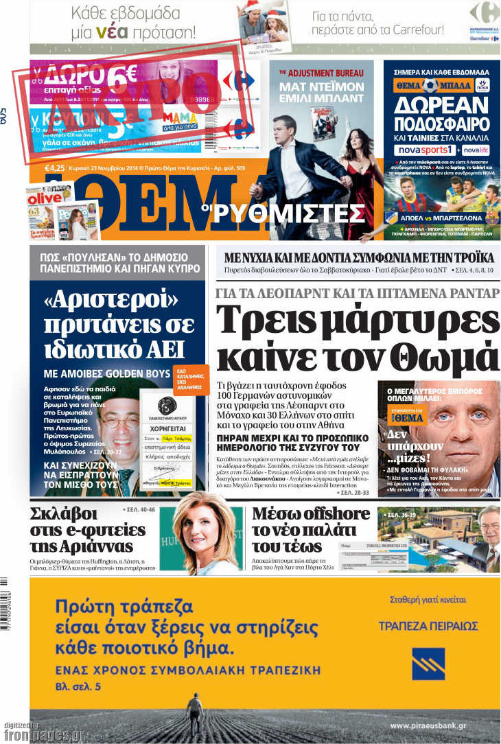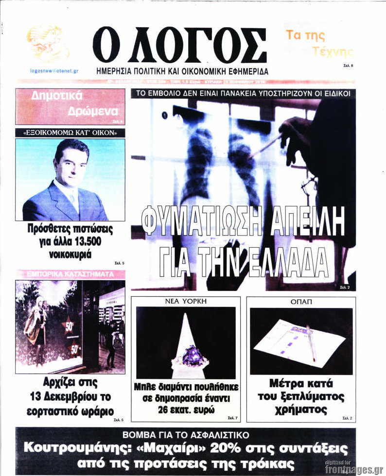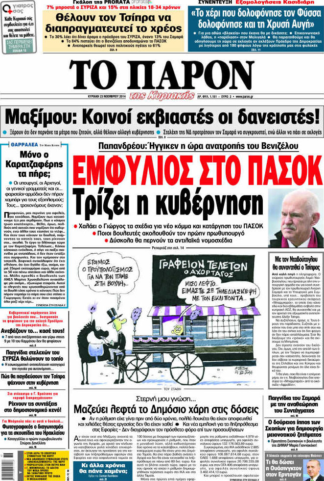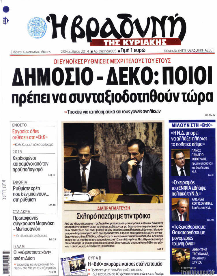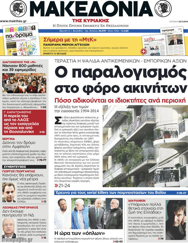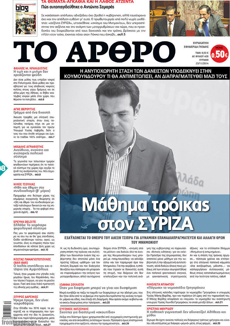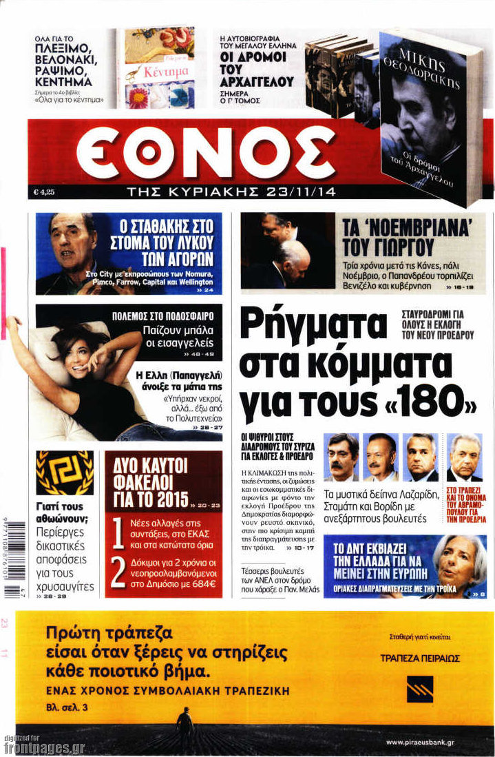 Οι πολιτικές εφημερίδες Enikos Newsroom 07:43, Κυριακή 23 Νοεμβρίου 2014 Media Οι πολιτικές εφημερίδες Διαβάστε τα πρωτοσέλιδα των πολιτικών εφημερίδων: ΠΟΛΙΤΙΚΕΣ ΕΦΗΜΕΡΙΔΕΣ ΠΡΩΤΟΣΕΛΙΔΑ Μοιράσου το: σχολίασε κι εσύ (0 σχόλια) Ακολουθήστε το enikos.gr στο Google News και μάθετε πρώτοι όλες τις ειδήσεις Δείτε όλες τις τελευταίες ειδήσεις από την Ελλάδα και τον Κόσμο στο enikos.gr Ειδήσεις Ροή Ειδήσεων 2 ώρες πριν Γιορτές με μπλόκα για τους αγρότες: Ανοίγουν διόδια και μοιράζουν προϊόντα στους ταξιδιώτες 10 λεπτά πριν Τσιάρας για αγρότες: Ικανοποιείται το αίτημα για αφορολόγητο πετρέλαιο στη μάνικα, πρόθεσή μας να μειωθεί ακόμη περισσότερο η τιμή στο ρεύμα 24 λεπτά πριν Αρχεία Έπσταϊν: Οι συγκλονιστικές φωτογραφίες – Ο Μάικλ Τζάκσον, ο Μικ Τζάγκερ και ο Κέβιν Σπέισι ανάμεσα στους διάσημους που απεικονίζονται 2 ώρες πριν Νέες ταυτότητες: Μεγάλη αναμονή για ραντεβού στην Αττική – Τέλος τα ταξίδια εκτός Ελλάδος από τον Αύγουστο για όσους δεν έχουν αλλάξει 56 λεπτά πριν Ινδία: Επτά ελέφαντες σκοτώθηκαν κατά τη σύγκρουση επιβατικού τρένου με κοπάδι 3 ώρες πριν Μία νέα «χρυσή» περίοδος αρχίζει για 3 ζώδια από σήμερα – «Μία αναπάντεχη ευκαιρία οδηγεί στην επιτυχία» 5 ώρες πριν Αρχαιολόγοι ανακάλυψαν σε χωράφι απεικόνιση 600 ετών ενός Αγίου – Τα στοιχεία που δείχνουν ότι μαρτύρησε 4 ώρες πριν Αγχώνεται για το χριστουγεννιάτικο δώρο που πήρε στην πλούσια σύντροφό του – «Φοβάμαι πως θα το βρει φθηνιάρικο, φοράει βραχιόλια Cartier» 54 λεπτά πριν Διαιτολόγος αποκαλύπτει 9 πρωινές συνήθειες που «λιώνουν» το κοιλιακό λίπος – «Υποστηρίζουν την υγιεινή απώλεια βάρους» 10 λεπτά πριν Τσιάρας για αγρότες: Ικανοποιείται το αίτημα για αφορολόγητο πετρέλαιο στη μάνικα, πρόθεσή μας να μειωθεί ακόμη περισσότερο η τιμή στο ρεύμα 17 λεπτά πριν Η Ζιζέλ Μπούντχεν παντρεύτηκε τον δάσκαλο ζίου-ζίτσου, Χοακίμ Βαλέντε 24 λεπτά πριν Αρχεία Έπσταϊν: Οι συγκλονιστικές φωτογραφίες – Ο Μάικλ Τζάκσον, ο Μικ Τζάγκερ και ο Κέβιν Σπέισι ανάμεσα στους διάσημους που απεικονίζονται 33 λεπτά πριν Χρήστος Μάντακας: «Θα μπορούσα να είχα φύγει από τη ζωή, δεν μπορούσα να περπατήσω…» 40 λεπτά πριν Εντυπωσιακό βίντεο από «τσουνάμι» πάγου στη Σιβηρία – Πώς προκαλείται το σπάνιο φαινόμενο ENIKOS NETWORK Είστε μόνιμα απρόσεκτοι; 3 σημάδια που δείχνουν ότι μπορεί να είναι σύμπτωμα πάθησης Πόσα κιλά παίρνουμε πραγματικά τα Χριστούγεννα, σύμφωνα με την επιστήμη – Πώς να το αποτρέψουμε; Χρήστος Δήμας: Στα 2,5 εκατ. ευρώ την ημέρα το κόστος από το άνοιγμα των διοδίων από τους αγρότες – Θα αξιώσουν αποζημίωση ... Χριστούγεννα και Πρωτοχρονιά: Πώς αμείβονται όσοι εργαστούν Χαρτογραφώντας το «σημείο χωρίς επιστροφή»: Για πρώτη φορά αποκαλύπτεται με λεπτομέρεια το ακανθώδες όριο της ατμόσφαιρας τ... Η Google καταργεί τη λειτουργία «dark web report» – Πώς θα μπορούν οι χρήστες να διαγράφουν τα δεδομένα τους περισσότερα 11:41 , Σάββατο 20 Δεκεμβρίου 2025 «Η αγάπη δεν χάνεται ποτέ»: Η μικρού μήκους ταινία κινουμένων σχεδίων που θέτει ερωτήματα για τη ζωή και τον θάνατο Ο θάνατος είναι ένα από τα πιο σκληρά θέματα που καλείται να διαχειριστεί κάποιος στη διάρκεια... 09:30 , Σάββατο 20 Δεκεμβρίου 2025 «Porto Leone: Στη γειτονιά με τα κόκκινα φανάρια» – Ο Χρόνης αποκαλύπτει στην Αλεξάνδρα το μυστικό για το παιδί της Λένας Η μεγάλη δραματική σειρά του Apha «Porto Leone: Στη γειτονιά με τα κόκκινα φανάρια» μας μεταφέ... 08:14 , Σάββατο 20 Δεκεμβρίου 2025 Τρομεροί γονείς: Η Μαρία Καβογ