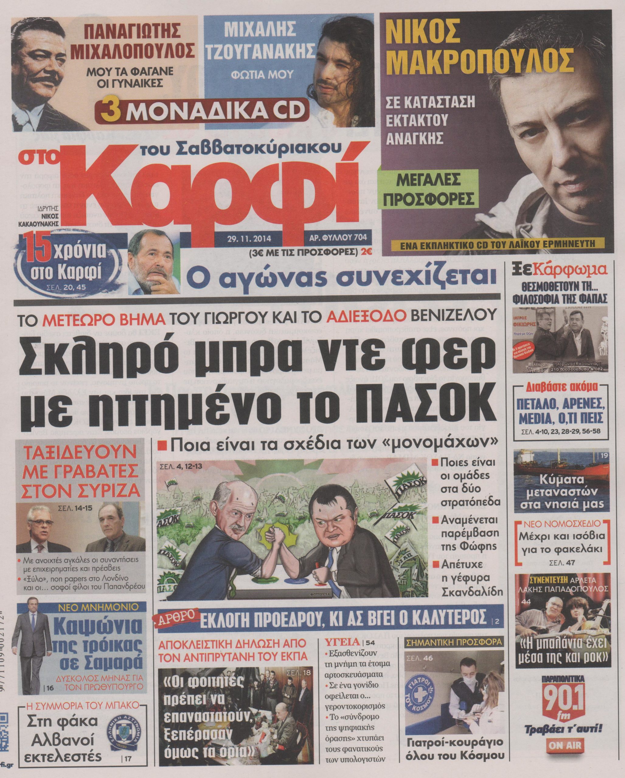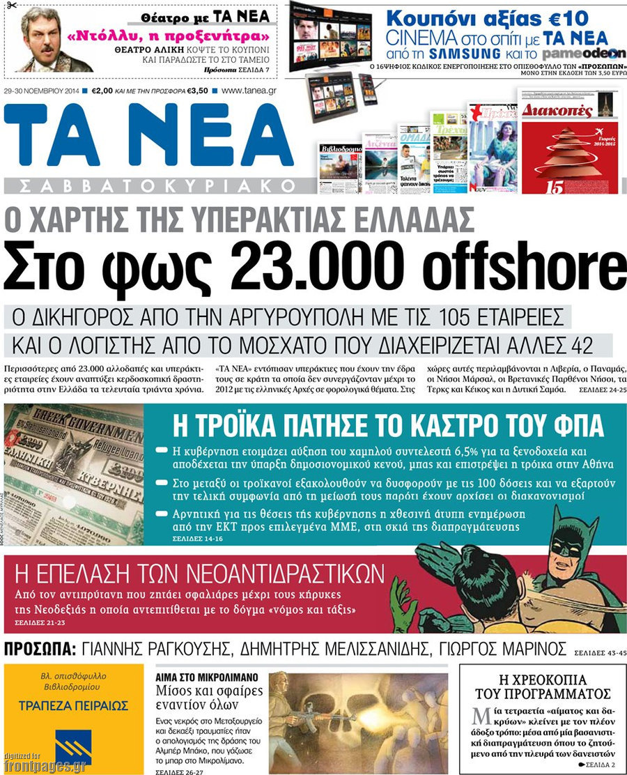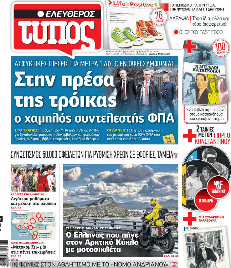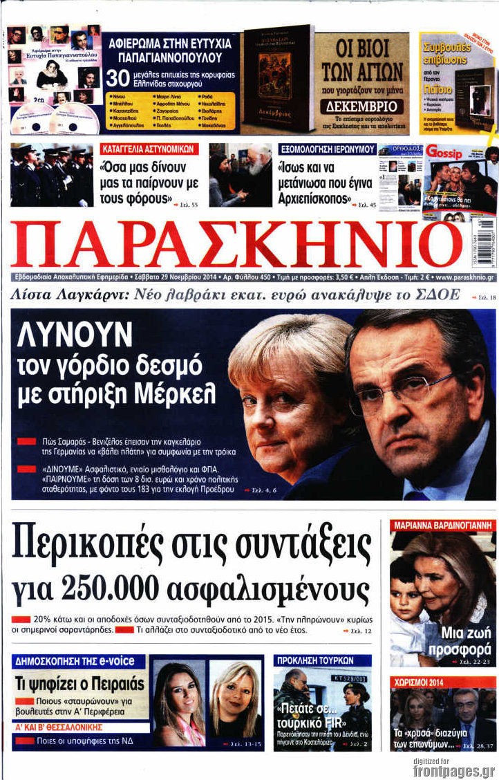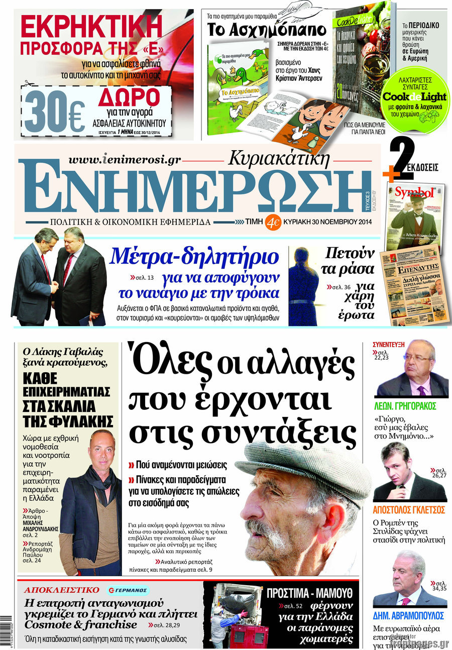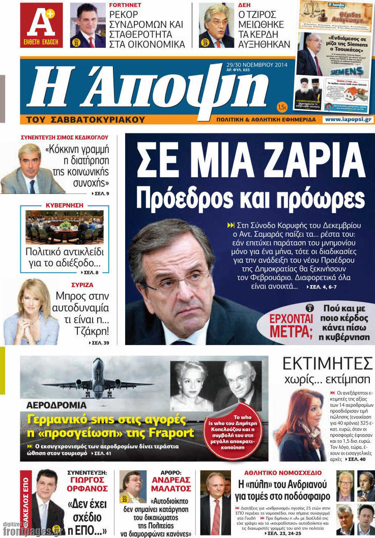Οι πολιτικές εφημερίδες Enikos Newsroom 07:25, Σάββατο 29 Νοεμβρίου 2014 Media Οι πολιτικές εφημερίδες \ ΠΟΛΙΤΙΚΕΣ ΕΦΗΜΕΡΙΔΕΣ ΠΡΩΤΟΣΕΛΙΔΑ Μοιράσου το: σχολίασε κι εσύ (0 σχόλια) Ακολουθήστε το enikos.gr στο Google News και μάθετε πρώτοι όλες τις ειδήσεις Δείτε όλες τις τελευταίες ειδήσεις από την Ελλάδα και τον Κόσμο στο enikos.gr Ειδήσεις Ροή Ειδήσεων 16 λεπτά πριν Κλιμακώνουν από σήμερα τις κινητοποιήσεις οι αγρότες: Νέα μπλόκα, κλείσιμο παρακαμπτηρίων και άνοιγμα διοδίων – Το νέο μήνυμα Μητσοτάκη 42 λεπτά πριν Συντάξεις: Οι κερδισμένοι και οι χαμένοι από τις αυξήσεις – Αναλυτικός οδηγός και παραδείγματα 4 ώρες πριν Ευρωπαϊκή Ένωση: Συμφωνία για δάνειο 90 δισ. ευρώ στην Ουκρανία τη διετία 2026-2027 – Μητσοτάκης: Η λύση που προκρίθηκε είναι η ενδεδειγμένη 1 ώρα πριν Θανατηφόρο τροχαίο στη Νέα Φιλαδέλφεια: Νεκρός 27χρονος οδηγός μηχανής ύστερα από σύγκρουση με τρόλεϊ 8 ώρες πριν ΟΠΕΚΕΠΕ: Προφυλακιστέος ο φερόμενος αρχηγός και ο λογιστής της εγκληματικής οργάνωσης 2 ώρες πριν Οπτική ψευδαίσθηση: Μόνο αν έχεις αετίσια ματιά θα βρεις τον παπαγάλο σε 12 δευτερόλεπτα 2 ώρες πριν Κρύα χέρια και πόδια: Γιατρός εξηγεί ποια είναι η αίτια και πότε πρέπει να ανησυχήσετε 3 ώρες πριν Τα ζώδια σήμερα, Παρασκευή 19 Δεκεμβρίου: Τοξότες, με τη Νέα Σελήνη έρχεται η προσωπική ανανέωσή σας 2 ημέρες πριν 20 χρόνια τα Χριστούγεννα ξεκινούν στα Public με μεγάλη ποικιλία σε δώρα! 3 λεπτά πριν Την Κυριακή με τη Realnews: Δωροεπιταγή 10€ 9 λεπτά πριν Πανεπιστήμιο Μπράουν: Νεκρός ο ύποπτος για την επίθεση 14 λεπτά πριν Τέμπη: Συνεχίζεται σήμερα η δίκη για τη διαχείριση του βιντεοληπτικού υλικού 16 λεπτά πριν Κλιμακώνουν από σήμερα τις κινητοποιήσεις οι αγρότες: Νέα μπλόκα, κλείσιμο παρακαμπτηρίων και άνοιγμα διοδίων – Το νέο μήνυμα Μητσοτάκη 23 λεπτά πριν e-ΕΦΚΑ και ΔΥΠΑ: Τελευταία ημέρα πληρωμών σήμερα ENIKOS NETWORK Άνοια: Ειδικοί προειδοποιούν για 5 κοινές συνήθειες που μπορεί να αυξήσουν τον κίνδυνο 6 Χριστουγεννιάτικα δώρα για όσους τα έχουν όλα – Θα τους εκπλήξουν Συντάξεις: Οι κερδισμένοι και οι χαμένοι από τις αυξήσεις – Αναλυτικός οδηγός Στεγαστικό: Τι λέει η ΠΟΜΙΔΑ για τα νέα μέτρα που ανακοίνωσε ο Κυριάκος Μητσοτάκης Χαρτογραφώντας το «σημείο χωρίς επιστροφή»: Για πρώτη φορά αποκαλύπτεται με λεπτομέρεια το ακανθώδες όριο της ατμόσφαιρας τ... Η Google καταργεί τη λειτουργία «dark web report» – Πώς θα μπορούν οι χρήστες να διαγράφουν τα δεδομένα τους περισσότερα 08:00 , Παρασκευή 19 Δεκεμβρίου 2025 Την Κυριακή με τη Realnews: Δωροεπιταγή 10€ Δωροεπιταγή αξίας 10€ για αγορές άνω των 60€ από τα πολυκαταστήματα FactoryOutlet H προσφορά ι... 05:48 , Παρασκευή 19 Δεκεμβρίου 2025 Οι οικονομικές εφημερίδες 19/12/2025 Διαβάστε τα πρωτοσέλιδα από τις οικονομικές εφημερίδες, σήμερα 19/12/2025. 05:43 , Παρασκευή 19 Δεκεμβρίου 2025 Οι αθλητικές εφημερίδες 19/12/2025 Διαβάστε τα πρωτοσέλιδα από τις αθλητικές εφημερίδες, σήμερα 19/12/2025. 05:38 , Παρασκευή 19 Δεκεμβρίου 2025 Οι πολιτικές εφημερίδες 19/12/2025 Διαβάστε τα πρωτοσέλιδα από τις πολιτικές εφημερίδες, σήμερα 19/12/2025. ΤΕΛΕΥΤΑΙΕΣ ΕΙΔΗΣΕΙΣ 9 λεπτά πριν Πανεπιστήμιο Μπράουν: Νεκρός ο ύποπτος για την επίθεση 14 λεπτά πριν Τέμπη: Συνεχίζεται σήμερα η δίκη για τη διαχείριση του... 16 λεπτά πριν Κλιμακώνουν από σήμερα τις κινητοποιήσεις οι αγρότες:... 23 λεπτά πριν e-ΕΦΚΑ και ΔΥΠΑ: Τελευταία ημέρα πληρωμών σήμερα 31 λεπτά πριν Καιρός: Ηλιοφάνεια σήμερα – Έρχονται κρύο, βροχές... 38 λεπτά πριν Ελλάδα – Γαλλία προς υπογραφή νέας αναβαθμισμένης... 42 