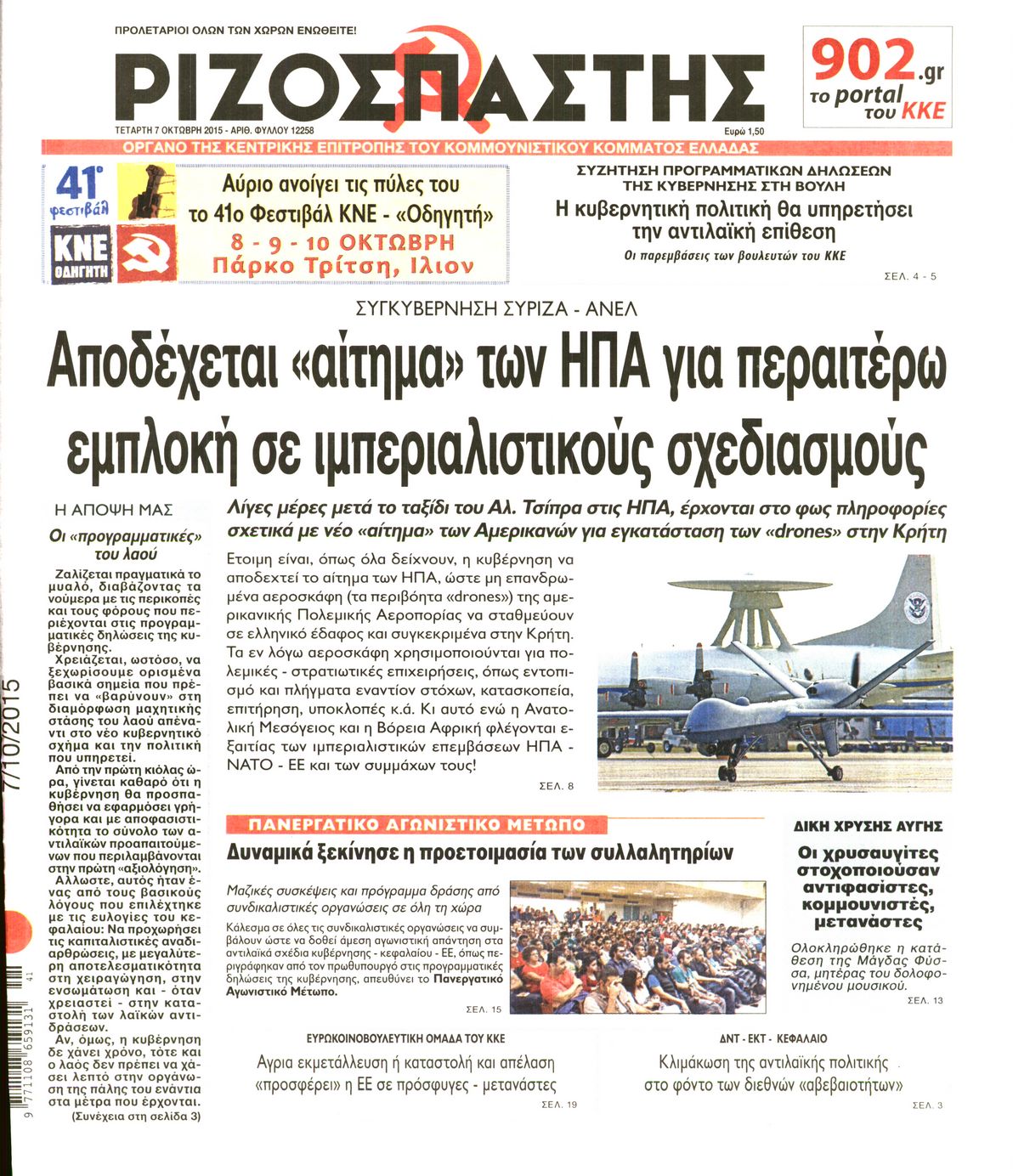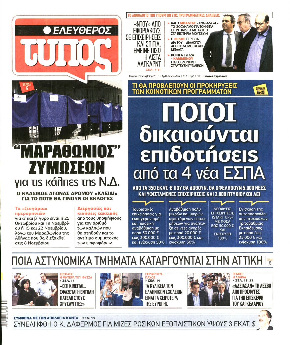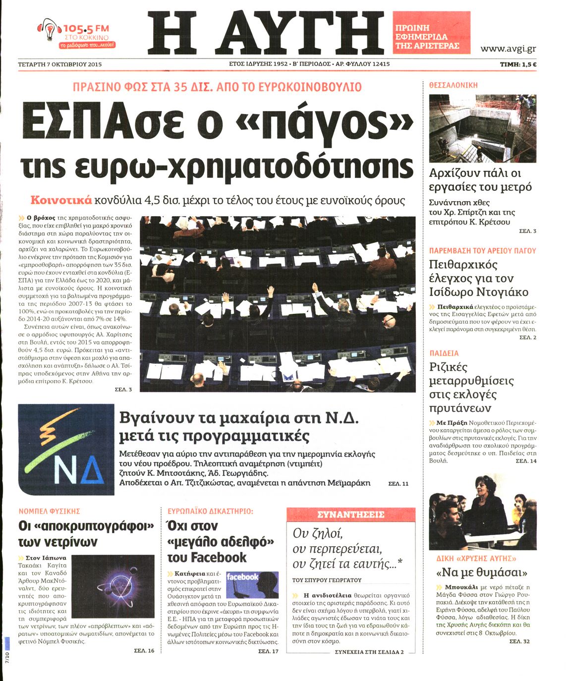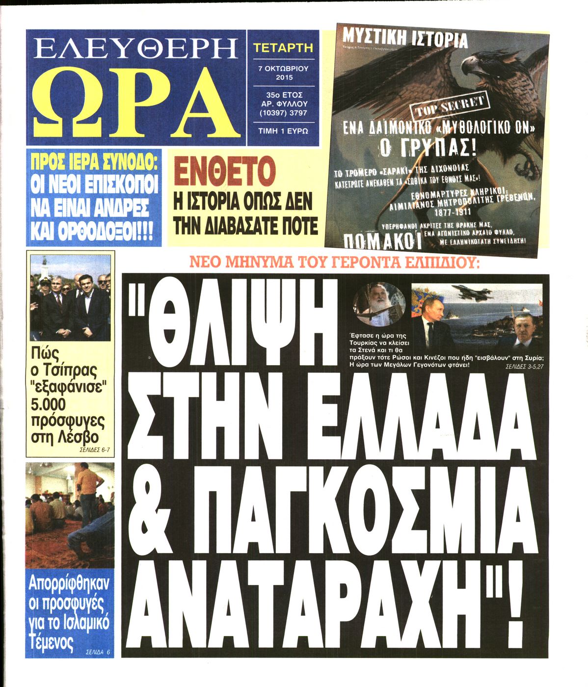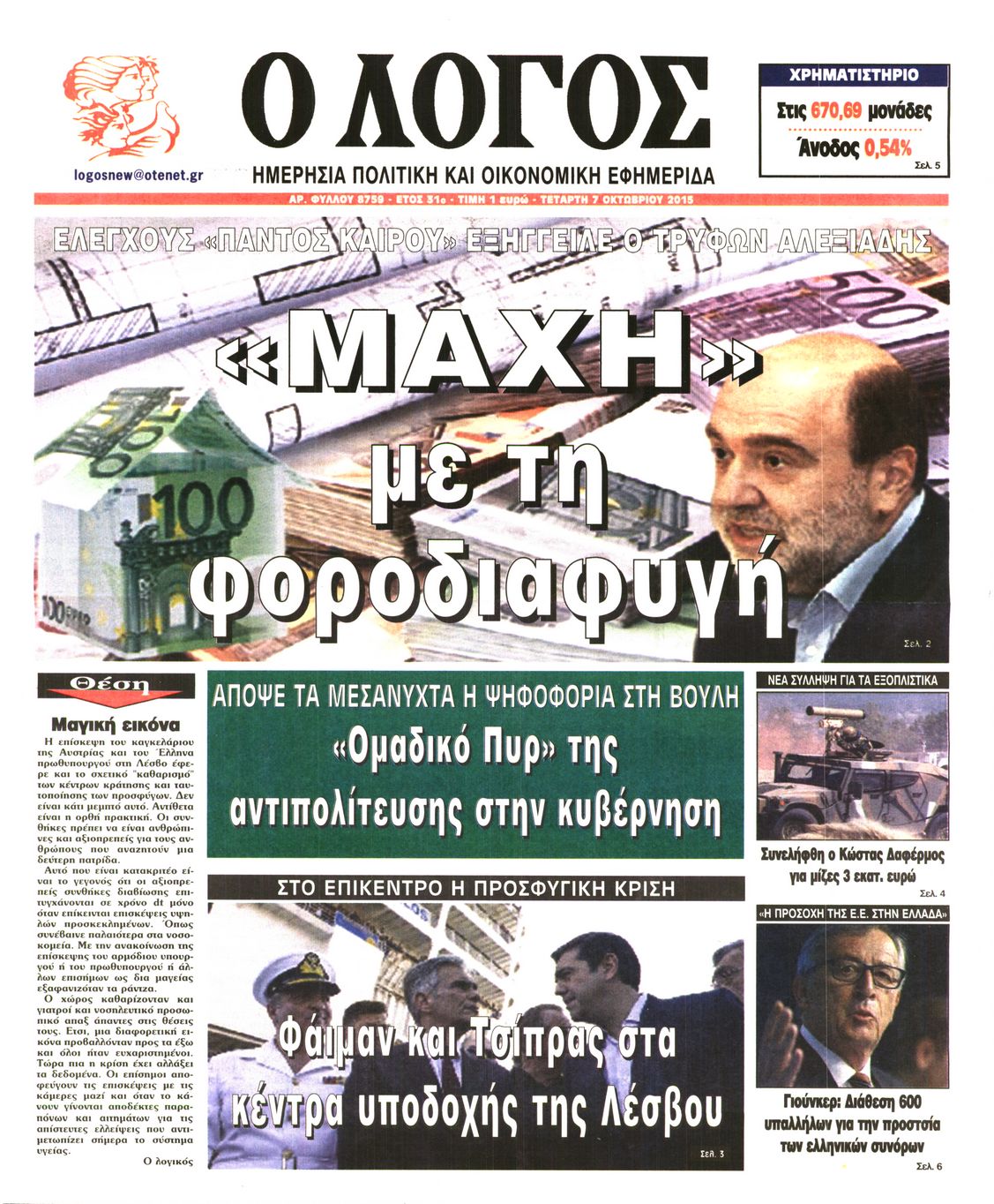 Οι πολιτικές εφημερίδες 7/10/2015 Enikos Newsroom 07:30, Τετάρτη 07 Οκτωβρίου 2015 Media Διαβάστε τα σημερινά πρωτοσέλιδα των πολιτικών εφημερίδων. ΠΟΛΙΤΙΚΕΣ ΕΦΗΜΕΡΙΔΕΣ ΠΡΩΤΟΣΕΛΙΔΑ Μοιράσου το: σχολίασε κι εσύ (0 σχόλια) Ακολουθήστε το enikos.gr στο Google News και μάθετε πρώτοι όλες τις ειδήσεις Δείτε όλες τις τελευταίες ειδήσεις από την Ελλάδα και τον Κόσμο στο enikos.gr Ειδήσεις Ροή Ειδήσεων 1 ώρα πριν Χριστούγεννα στα μπλόκα: Επιμένουν στις κινητοποιήσεις τους οι αγρότες – Ανοίγουν τα διόδια το Σαββατοκύριακο 1 ώρα πριν Ουκρανία: Η άνευ προηγουμένου επίθεση σε ρωσικό τάνκερ στη Μεσόγειο και το μήνυμα προς στον Πούτιν – Το «μακρύ χέρι» του Κιέβου 45 λεπτά πριν Πούτιν: Τα μηνύματα σε Ευρώπη και ΝΑΤΟ από το μαραθώνιο «σόου» του – Η απαίτηση για «σεβασμό» και η ειρήνη «με τους όρους» της Μόσχας 2 ώρες πριν Τραμπ: Δεν αποκλείει την πιθανότητα ενός πολέμου στη Βενεζουέλα – «Ο Μαδούρο ξέρει καλύτερα από τον καθένα τι ακριβώς θέλω» 2 ώρες πριν Συνεχίζει να προκαλεί ο Μίτσκοσκι: «Για μένα το όνομα Μακεδονία είναι ιερό» 46 λεπτά πριν Ανακαλύφθηκαν αρχαία χρυσά νομίσματα 2.200 ετών που απεικονίζουν τον θεό Απόλλωνα – Η άγνωστη σύνδεση με τον Φίλιππο Β΄ της Μακεδονίας 2 ώρες πριν Ύπνος: Μια κρυφή κατάσταση του εγκεφάλου πριν από τον ύπνο μπορεί να είναι το “κλειδί” για υψηλή ευφυΐα και δημιουργικότητα 3 ώρες πριν Αριθμολογία: Οι άνθρωποι που έχουν γεννηθεί αυτές τις 4 ημερομηνίες, συχνά παρεξηγούνται – «Η καλοσύνη τους κρύβει τεράστια δύναμη» 4 ώρες πριν Ξεχάστε το καθάρισμα το Σαββατοκύριακο: Ο «κανόνας των 20 λεπτών» που θα σας λύσει τα χέρια 8 λεπτά πριν Άνω Λιόσια: Πυροβολισμοί σε επιχείρηση με χαλιά – Εντοπίστηκαν 10 κάλυκες 15 λεπτά πριν Γάζα: Ισραηλινό πλήγμα σε σχολείο που είχαν καταφύγει εκτοπισμένοι – Τουλάχιστον έξι νεκροί 30 λεπτά πριν Ολυμπιακός – Βιλερμπάν 107-84: Επιστροφή στις νίκες με… προπόνηση 36 λεπτά πριν Νέος Κόσμος: Συνελήφθη 41χρονος με ένταλμα από την Τουρκία για εμπόριο ναρκωτικών και ληστεία 45 λεπτά πριν Πούτιν: Τα μηνύματα σε Ευρώπη και ΝΑΤΟ από το μαραθώνιο «σόου» του – Η απαίτηση για «σεβασμό» και η ειρήνη «με τους όρους» της Μόσχας ENIKOS NETWORK Το ΕΚΑΒ τιμήθηκε από την Ακαδημία Αθηνών για τα 40 χρόνια προσφοράς του Έχετε πραγματικά μεγάλη καρδιά; 10 χαρακτηριστικά όσων έχουν καλοσύνη Αναστολή μέτρων αναγκαστικής εκτέλεσης για κτηνοτρόφους που πλήττονται από την ευλογιά των αιγοπροβάτων Πλήρης επάρκεια προϊόντων στις λαϊκές της Αττικής, παρά τις αγροτικές κινητοποιήσεις – Τι απαντούν οι πωλητές Χαρτογραφώντας το «σημείο χωρίς επιστροφή»: Για πρώτη φορά αποκαλύπτεται με λεπτομέρεια το ακανθώδες όριο της ατμόσφαιρας τ... Η Google καταργεί τη λειτουργία «dark web report» – Πώς θα μπορούν οι χρήστες να διαγράφουν τα δεδομένα τους περισσότερα 22:42 , Παρασκευή 19 Δεκεμβρίου 2025 Γιώργος Γιαννόπουλος για “Το σόι σου”: “Είναι ευτυχία και ευλογία αυτή η σειρά” «Είναι ευτυχία και ευλογία η συγκυρία αυτής της σειράς», θα πει ο Γιώργος Γιαννόπουλος -ο αγαπ... 20:37 , Παρασκευή 19 Δεκεμβρίου 2025 Don’t Forget The Lyrics: Η Έλλη Κοκκίνου υποδέχεται 4 παίκτες που θα κάνουν τα πάντα για να μη χάσουν ούτε… μισή λέξη από τους στίχους Το «Don’t Forget The Lyrics» επιστρέφει απόψε, Παρασκευή 19 Δεκεμβρίου, στις 21:00 με νέο επει... 19:31 , Παρασκευή 19 Δεκεμβρίου 2025 GNTM: Απόψε ο μεγάλος τελικός για τους 4 φιναλίστ Έπειτα από μήνες γεμάτους μόδα, δημιουργία και έντονες αναμετρήσεις, το GNTM 2025 κορυφώνεται,... 18:11 , Παρασκευή 19 Δεκ
