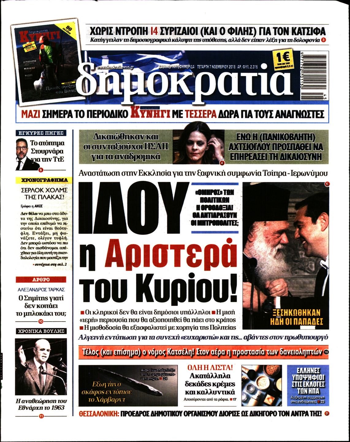 Οι πολιτικές εφημερίδες 7/11/18 Enikos Newsroom 06:09, Τετάρτη 07 Νοεμβρίου 2018 Media Διαβάστε τα πρωτοσέλιδα: ΠΟΛΙΤΙΚΕΣ ΕΦΗΜΕΡΙΔΕΣ ΠΡΩΤΟΣΕΛΙΔΑ Μοιράσου το: σχολίασε κι εσύ (0 σχόλια) Ακολουθήστε το enikos.gr στο Google News και μάθετε πρώτοι όλες τις ειδήσεις Δείτε όλες τις τελευταίες ειδήσεις από την Ελλάδα και τον Κόσμο στο enikos.gr Ειδήσεις Ροή Ειδήσεων 2 ώρες πριν Ζελένσκι: Μόνο οι ΗΠΑ και ο Τραμπ μπορούν να πιέσουν τη Ρωσία να βάλει τέλος στον πόλεμο 2 ώρες πριν Φοινικούντα: Προφυλακιστέος ο 30χρονος για συνέργεια στη διπλή δολοφονία – Και άλλα πρόσωπα στο «μικροσκόπιο» 3 ώρες πριν Κυριάκος Μητσοτάκης: Στην Ιερουσαλήμ την Τρίτη ο Πρωθυπουργός για την τριμερή Ελλάδας, Κύπρου, Ισραήλ – Θα συναντηθεί και με τον Αμπάς 6 ώρες πριν Πώς δρούσε το κύκλωμα που διακινούσε ναρκωτικά σε σχολεία – Υπέβαλαν σε βασανιστήρια όσους δεν τηρούσαν τους «κανόνες πειθαρχίας» 3 ώρες πριν Πάπας Λέων: Όταν έχει αϋπνίες επενδύει παραγωγικά τον χρόνο του – Ποιο παιχνίδι παίζει στο κινητό 2 ώρες πριν Αριθμολογία: Ο αριθμός του φύλακα αγγέλου σας, με βάση τον μήνα γέννησής σας – «Έτσι σας στέλνει σημάδια το σύμπαν» 3 ώρες πριν Πώς να απαλλαγείτε από τη μυρωδιά του τηγανητού φαγητού: Το μυστικό βρίσκεται στην κουζίνα σας 4 ώρες πριν Μήπως οι γιορτές σας δεν είναι τόσο τέλειες; 7 χριστουγεννιάτικες συνήθειες που μαρτυρούν ότι μια οικογένεια είναι δυσλειτουργική 14 ώρες πριν Enerwave: Το νέο «ρεύμα» στη λιανική ενέργειας που αλλάζει την εμπειρία του καταναλωτή 9 λεπτά πριν Χριστούγεννα στα μπλόκα οι αγρότες: Άνοιξαν στα διόδια και μοίρασαν προϊόντα στους πολίτες – Νέα σύσκεψη την Κυριακή στη Νίκαια 19 λεπτά πριν Ολυμπιακός – Κηφισιά 1-1: Δεύτερη σερί ισοπαλία για τους Ερυθρόλευκους – Υπό… αμφισβήτηση η κορυφή της Super League 30 λεπτά πριν Κύκλωμα διακίνησης ναρκωτικών σε σχολεία: Τηλεφωνούσαν στους ανηλίκους την ώρα του μαθήματος – Οι διάλογοι-σοκ, τα «ψευδώνυμα» και τα βασανιστήρια 39 λεπτά πριν Χαβιέρ Μιλέι: Ο πρόεδρος της Αργεντινής χαιρετίζει την «πίεση των ΗΠΑ» στη Βενεζουέλα 46 λεπτά πριν Ξένια Τσίρκοβα: Έμαθε από την τηλεόραση ότι είναι η μεγάλη νικήτρια του GNTM – Η αντίδρασή της – ΒΙΝΤΕΟ ENIKOS NETWORK Οι γυναίκες αποκαλύπτουν το πιο ελκυστικό πράγμα που μπορεί να κάνει ένας άνδρας Ομορφιά και αντιγήρανση: Ειδικοί μιλούν για συσκευές περιποίησης του δέρματος Ακύρωση ΑΦΜ για απάτες – Ποιους βάζει στο στόχαστρο η ΑΑΔΕ Ρεύμα: Πώς μπορείτε να αλλάξετε πάροχο γρήγορα και εύκολα – Τα βήματα της διαδικασίας Χαρτογραφώντας το «σημείο χωρίς επιστροφή»: Για πρώτη φορά αποκαλύπτεται με λεπτομέρεια το ακανθώδες όριο της ατμόσφαιρας τ... Η Google καταργεί τη λειτουργία «dark web report» – Πώς θα μπορούν οι χρήστες να διαγράφουν τα δεδομένα τους περισσότερα 20:30 , Σάββατο 20 Δεκεμβρίου 2025 Αυτή την Κυριακή με τη Realnews: Instyle, μαζί Drive και Realnews Geopolitics Αυτή την Κυριακή με τη Realnews: Instyle, μαζί Drive και Realnews Geopolitics Instyle Η Άννα Ρ... 20:28 , Σάββατο 20 Δεκεμβρίου 2025 Ο ΑΝΤ1 γεμίζει τις γιορτές με μουσική – Ποιους καλλιτέχνες θα απολαύσουμε Φέτος στον ΑΝΤ1 γιορτάζουμε τις νύχτες μας παρέα με αγαπημένους καλλιτέχνες και μεγάλες μουσι... 18:19 , Σάββατο 20 Δεκεμβρίου 2025 HOTΕΛ ΕΛVIRA: Η Ελβίρα μαθαίνει πως ο Χάρι μένει κρυφά στο ξενοδοχείο του Παντελή Συνεχίζονται οι εκλογές για πρόεδρο, στο νέο επεισόδιο της κωμικής σειράς του MEGA, HOTΕΛ ΕΛVI... 14:04 , Σάββατο 20 Δεκεμβρίου 2025 Η Realnews αυτής της Κυριακής (21/12/2025) Με τίτλο: «Ασπίδα προστασίας για την Ελλάδα» κυκλοφορεί, αυ