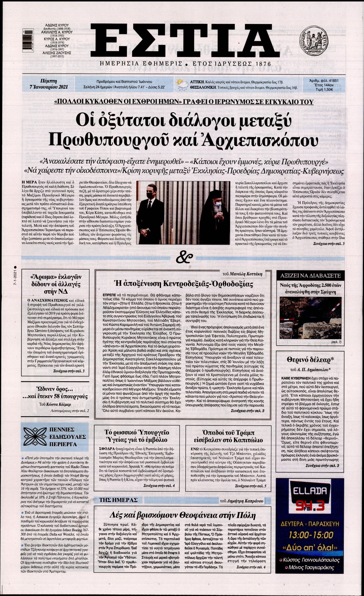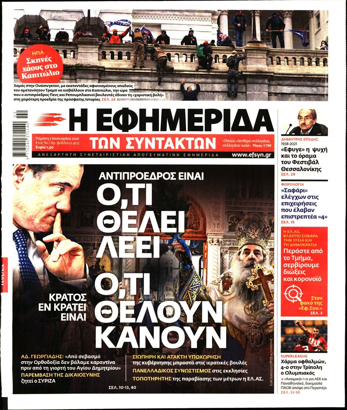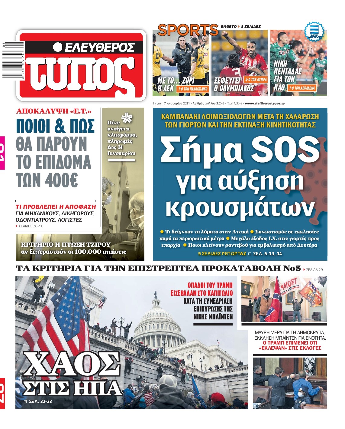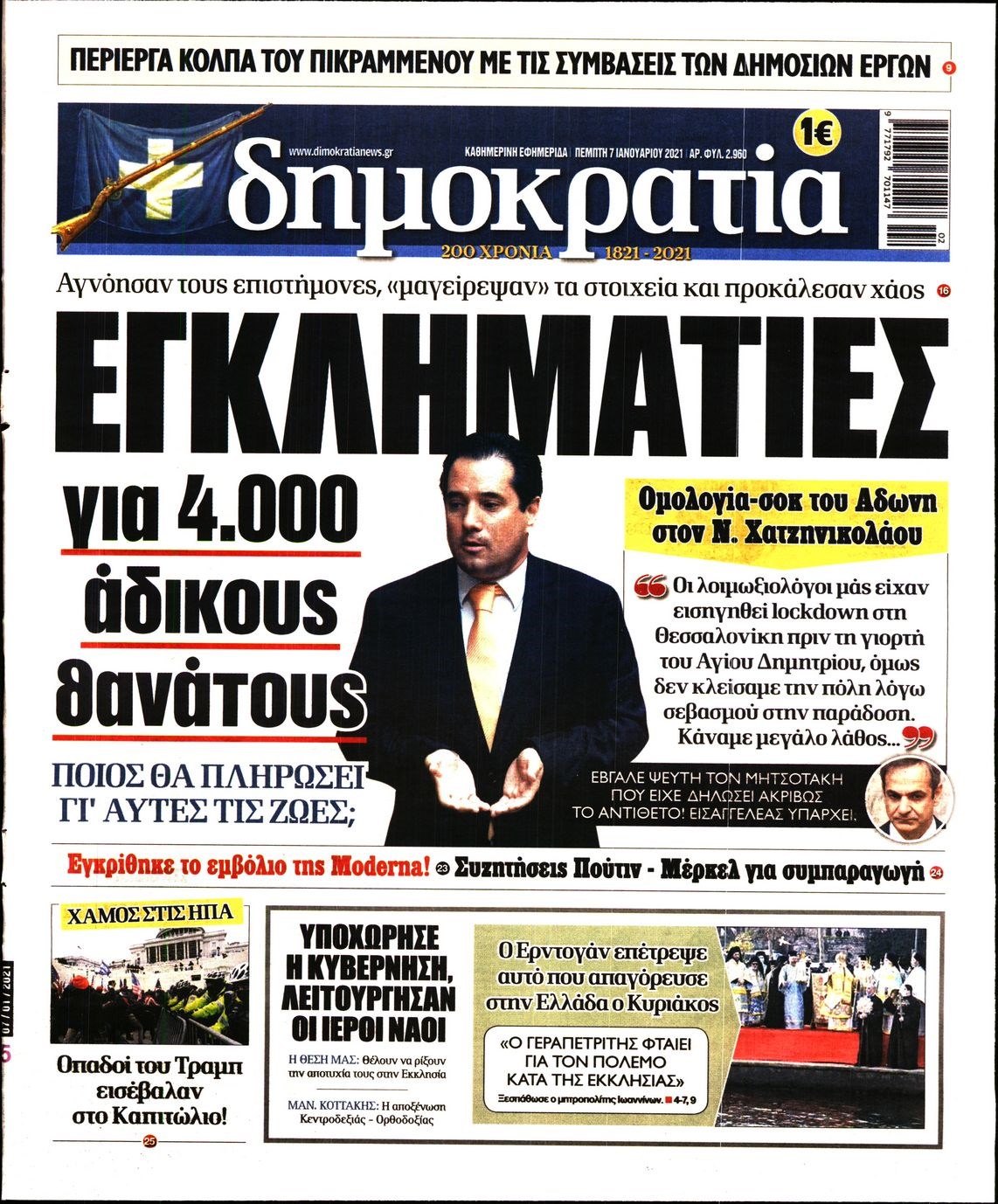 Οι πολιτικές εφημερίδες 7/1/2021 Διονύσης Νίκκας 06:09, Πέμπτη 07 Ιανουαρίου 2021 Media Διαβάστε τα πρωτοσέλιδα των πολιτικών εφημερίδων… ΕΦΗΜΕΡΙΔΕΣ ΠΟΛΙΤΙΚΕΣ ΕΦΗΜΕΡΙΔΕΣ ΠΡΩΤΟΣΕΛΙΔΑ Μοιράσου το: σχολίασε κι εσύ (0 σχόλια) Ακολουθήστε το enikos.gr στο Google News και μάθετε πρώτοι όλες τις ειδήσεις Δείτε όλες τις τελευταίες ειδήσεις από την Ελλάδα και τον Κόσμο στο enikos.gr Ειδήσεις Ροή Ειδήσεων 2 ώρες πριν Μπλόκα: Οι αγρότες σηκώνουν τις μπάρες σε διόδια για τους εκδρομείς των Χριστουγέννων και μοιράζουν προϊόντα – Βίντεο 3 ώρες πριν Τσιάρας προς αγρότες: Τα μπλόκα και τα πείσματα δεν ωφελούν – Οι λύσεις περνούν μέσα από τον διάλογο 4 ώρες πριν Αρχεία Έπσταϊν: Οι συγκλονιστικές φωτογραφίες – Ο Μάικλ Τζάκσον, ο Μικ Τζάγκερ και ο Κέβιν Σπέισι ανάμεσα στους διάσημους που απεικονίζονται 2 ώρες πριν Μαθητές διακινούσαν κοκαΐνη και χασίς σε σχολείο της Αττικής – 12 συλλήψεις 2 ώρες πριν Βέλγιο: Άγνωστοι έριξαν κόκκινη μπογιά στο προξενείο της Πολωνίας στις Βρυξέλλες 6 ώρες πριν Μία νέα «χρυσή» περίοδος αρχίζει για 3 ζώδια από σήμερα – «Μία αναπάντεχη ευκαιρία οδηγεί στην επιτυχία» 4 ώρες πριν Διαιτολόγος αποκαλύπτει 9 πρωινές συνήθειες που «λιώνουν» το κοιλιακό λίπος – «Υποστηρίζουν την υγιεινή απώλεια βάρους» 5 ώρες πριν Οι 7 φράσεις που δεν λένε ποτέ οι συναισθηματικά έξυπνοι άνθρωποι κατά τη διάρκεια ενός καβγά 7 ώρες πριν Enerwave: Το νέο «ρεύμα» στη λιανική ενέργειας που αλλάζει την εμπειρία του καταναλωτή 2 λεπτά πριν Η τύχη χαμογελά σε 3 ζώδια έως τις 28 Δεκεμβρίου – «Προσέξτε τις επιλογές σας και η επιμονή σας θα ανταμειφθεί» 16 λεπτά πριν Στο νοσοκομείο ο Λευτέρης Πανταζής – Τι συνέβη 26 λεπτά πριν Super League: Με Κηφισιά ο Ολυμπιακός για να «κλείσει» το 2025 στην κορυφή – Αναλυτικά το πρόγραμμα της 15ης αγωνιστικής 30 λεπτά πριν ΕΛΑΣ: Συνελήφθησαν Υπαρχιπυροσβέστης και δύο ακόμη άτομα για κατοχή και διακίνηση ναρκωτικών ουσιών – Η καταγγελία και ο τιμοκατάλογος 38 λεπτά πριν Πακιστάν: Σε κάθειρξη 17 ετών καταδικάστηκαν ο πρώην πρωθυπουργός Ίμραν Χαν και η σύζυγός του ENIKOS NETWORK Η αποχή από την αναπαραγωγή παρατείνει τη ζωή στα ζώα, σύμφωνα με μελέτη – Τι ισχύει για τους ανθρώπους; Σημαντικές επαφές στις ΗΠΑ είχε ο υπουργός Υγείας Άδωνις Γεωργιάδης Επιτροπή Ανταγωνισμού: Στο μικροσκόπιο σχολικές τσάντες και επώνυμα brands – Τι ερευνάται Ευλογιά αιγοπροβάτων: Παρατεταμένη επιζωοτία, αυστηρά μέτρα – Τι ισχύει για τον εμβολιασμό και την ανασύσταση του ζωικού κε... Χαρτογραφώντας το «σημείο χωρίς επιστροφή»: Για πρώτη φορά αποκαλύπτεται με λεπτομέρεια το ακανθώδες όριο της ατμόσφαιρας τ... Η Google καταργεί τη λειτουργία «dark web report» – Πώς θα μπορούν οι χρήστες να διαγράφουν τα δεδομένα τους περισσότερα 14:04 , Σάββατο 20 Δεκεμβρίου 2025 Η Realnews αυτής της Κυριακής (21/12/2025) Με τίτλο: «Ασπίδα προστασίας για την Ελλάδα» κυκλοφορεί, αυτήν την Κυριακή, η Realnews. Σημαντ... 12:53 , Σάββατο 20 Δεκεμβρίου 2025 Να μ’ αγαπάς: Το παρελθόν έρχεται στο φως – Καταιγιστικές εξελίξεις στα τελευταία επεισόδια του 2025 Ο Άγγελος αποκαλύπτεται, η Φωτεινή ανησυχεί για τον Λευτέρη και η Ζωή έρχεται αντιμέτωπη με το... 11:41 , Σάββατο 20 Δεκεμβρίου 2025 «Η αγάπη δεν χάνεται ποτέ»: Η μικρού μήκους ταινία κινουμένων σχεδίων που θέτει ερωτήματα για τη ζωή και τον θάνατο Ο θάνατος είναι ένα από τα πιο σκληρά θέματα που καλείται να διαχειριστεί κάποιος στη διάρκεια... 09:30 , Σάββατο 20 Δεκεμβρίου 2025 «Porto Leone: Στη γειτονιά με τα κόκκινα φανά