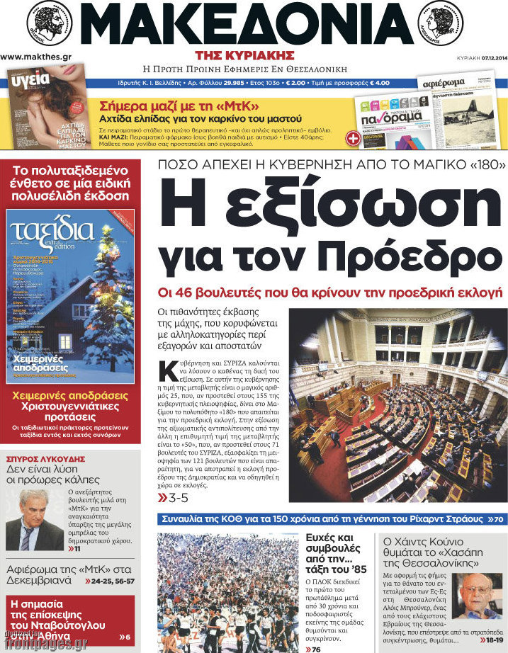 Οι πολιτικές εφημερίδες Enikos Newsroom 08:11, Κυριακή 07 Δεκεμβρίου 2014 Media Οι πολιτικές εφημερίδες Διαβάστε τα πρωτοσέλιδα των πολιτικών εφημερίδων: ΕΦΗΜΕΡΙΔΕΣ ΠΟΛΙΤΙΚΕΣ ΕΦΗΜΕΡΙΔΕΣ ΠΡΩΤΟΣΕΛΙΔΑ Μοιράσου το: σχολίασε κι εσύ (0 σχόλια) Ακολουθήστε το enikos.gr στο Google News και μάθετε πρώτοι όλες τις ειδήσεις Δείτε όλες τις τελευταίες ειδήσεις από την Ελλάδα και τον Κόσμο στο enikos.gr Ειδήσεις Ροή Ειδήσεων 1 ώρα πριν Αυξάνουν την πίεση προς την κυβέρνηση οι αγρότες: Κλείνουν παρακαμπτήριους και ανοίγουν διόδια – Τι θα γίνει τις γιορτές 54 λεπτά πριν Φοινικούντα: Το Σάββατο απολογείται ο 30χρονος γιος γνωστού επιχειρηματία της Πλάκας που παραδόθηκε – Όσα είπε στους αστυνομικούς και ο ρόλος του στο έγκλημα 36 λεπτά πριν Μπορεί ο Μαδούρο να αντέξει τον αποκλεισμό του Τραμπ; Τι θα χρειαστεί η Ουάσινγκτον για να τον ανατρέψει 2 ώρες πριν Δημοσκόπηση Metron Analysis: Στις 10 μονάδες η διαφορά ΝΔ-ΠΑΣΟΚ, στην 3η θέση η Πλεύση Ελευθερίας – 8 στους 10 στηρίζουν τον αγώνα των αγροτών 2 ώρες πριν Πρίγκιπας Ουίλιαμ – Κέιτ: Η νέα οικογενειακή φωτογραφία για τις Χριστουγεννιάτικες κάρτες του 2025 2 ώρες πριν Ύπνος: Η απλή βραδινή ρουτίνα για να προστατεύσετε τα μαλλιά σας από το κρύο κατά τη διάρκεια του χειμώνα 3 ώρες πριν Manifesting: Πώς να συναντήσετε τον σύντροφο της ζωής σας, ανάλογα με τον μήνα γέννησής σας 2 ημέρες πριν 20 χρόνια τα Χριστούγεννα ξεκινούν στα Public με μεγάλη ποικιλία σε δώρα! 40 λεπτά πριν Αρχαιολόγοι ανακάλυψαν ρωμαϊκά τεχνουργήματα από μια πόλη που δεν υπήρξε ποτέ – Τα τρία εντυπωσιακά κτίρια και ο αμφορέας με τις… σαρδέλες 5 λεπτά πριν Αθηνά Μαξίμου: Η τρυφερή ανάρτηση για τα γενέθλια του Αιμίλιου Χειλάκη – «Είναι η εκλεκτική συγγένειά μου, η επιλογή και η ευθύνη μου» 20 λεπτά πριν Παναθηναϊκός – Χάποελ Τελ Αβίβ 93-82: Με… φόρα από την Κωνσταντινούπολη 36 λεπτά πριν Μπορεί ο Μαδούρο να αντέξει τον αποκλεισμό του Τραμπ; Τι θα χρειαστεί η Ουάσινγκτον για να τον ανατρέψει 40 λεπτά πριν Αρχαιολόγοι ανακάλυψαν ρωμαϊκά τεχνουργήματα από μια πόλη που δεν υπήρξε ποτέ – Τα τρία εντυπωσιακά κτίρια και ο αμφορέας με τις… σαρδέλες 41 λεπτά πριν Στο ΟΑΚΑ για το «Παναθηναϊκός – Χάποελ» η Κίμπερλι Γκίλφοϊλ – ΦΩΤΟ ENIKOS NETWORK Σε περίοδο αυξημένης δραστηριότητας η γρίπη στην Ελλάδα-Μέτρα προστασίας από τον ΕΟΔΥ Σκέφτεστε συνέχεια συζητήσεις που έχετε κάνει; Τι σημαίνει αυτό, σύμφωνα με ειδικό Στεγαστικό: Τι λέει η ΠΟΜΙΔΑ για τα νέα μέτρα που ανακοίνωσε ο Κυριάκος Μητσοτάκης Λαγκάρντ: Αισιόδοξη για την ανάπτυξη της Ευρωζώνης, αβέβαιη για τον πληθωρισμό Χαρτογραφώντας το «σημείο χωρίς επιστροφή»: Για πρώτη φορά αποκαλύπτεται με λεπτομέρεια το ακανθώδες όριο της ατμόσφαιρας τ... Η Google καταργεί τη λειτουργία «dark web report» – Πώς θα μπορούν οι χρήστες να διαγράφουν τα δεδομένα τους περισσότερα 17:45 , Πέμπτη 18 Δεκεμβρίου 2025 ROUK ZOUK: Εορταστικό επεισόδιο με καλεσμένους τους πρωταγωνιστές του «Γιατί ρε πατέρα» Το Σάββατο 20 Δεκεμβρίου στις 21:00, η Ζέτα Μακρυπούλια υποδέχεται εκλεκτούς ηθοποιούς που όλο... 17:20 , Πέμπτη 18 Δεκεμβρίου 2025 Άγιος έρωτας: Η Χριστίνα εξομολογείται στον πατέρα Νικόλαο, απόψε στις 21:00 στον Alpha Η Νότα αποφασίζει να εκδικηθεί τον Πέτρο και τον Στέφανο, για χάρη του Λούη, όμως τα πράγματα ... 16:50 , Πέμπτη 18 Δεκεμβρίου 2025 Να μ’ αγαπάς: Ζωή και Φωτεινή συμφιλιώνονται ως μάνα με κόρη, απόψε στις 20:00 Η ταυτότητα του Άγγελου αποκαλύπτεται στο νέο επεισόδιο της σειράς “Να μ’ αγαπάς... 15:52 , Πέμπτη 18 Δεκε