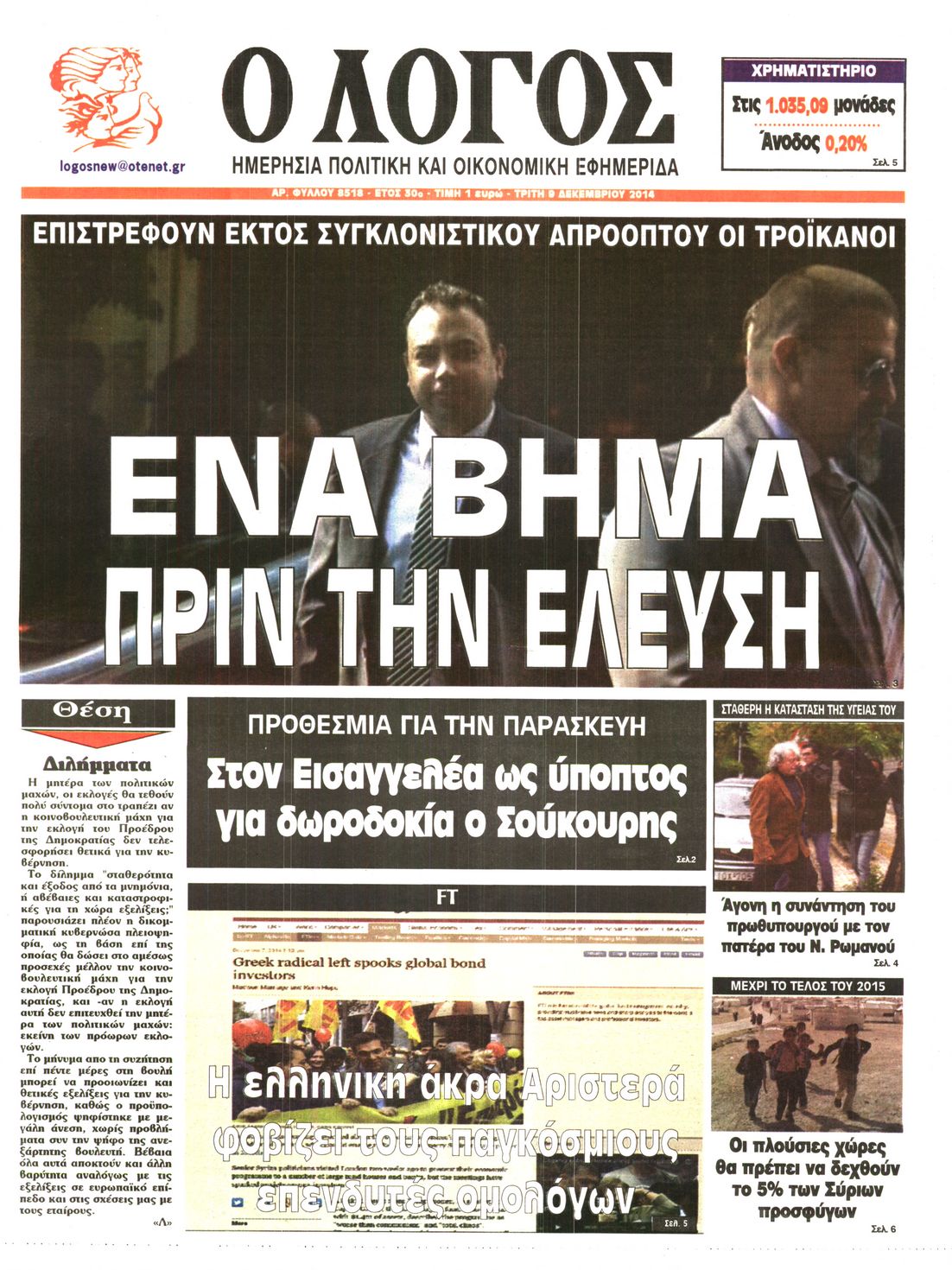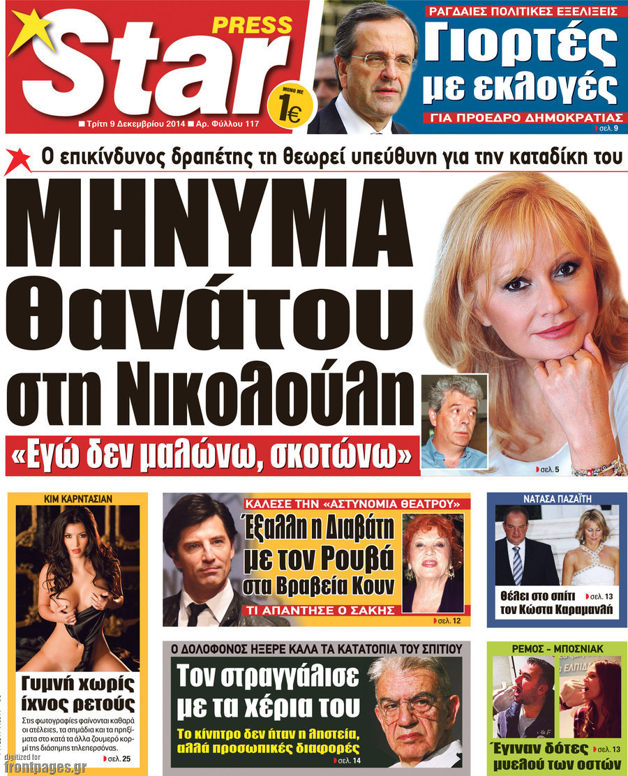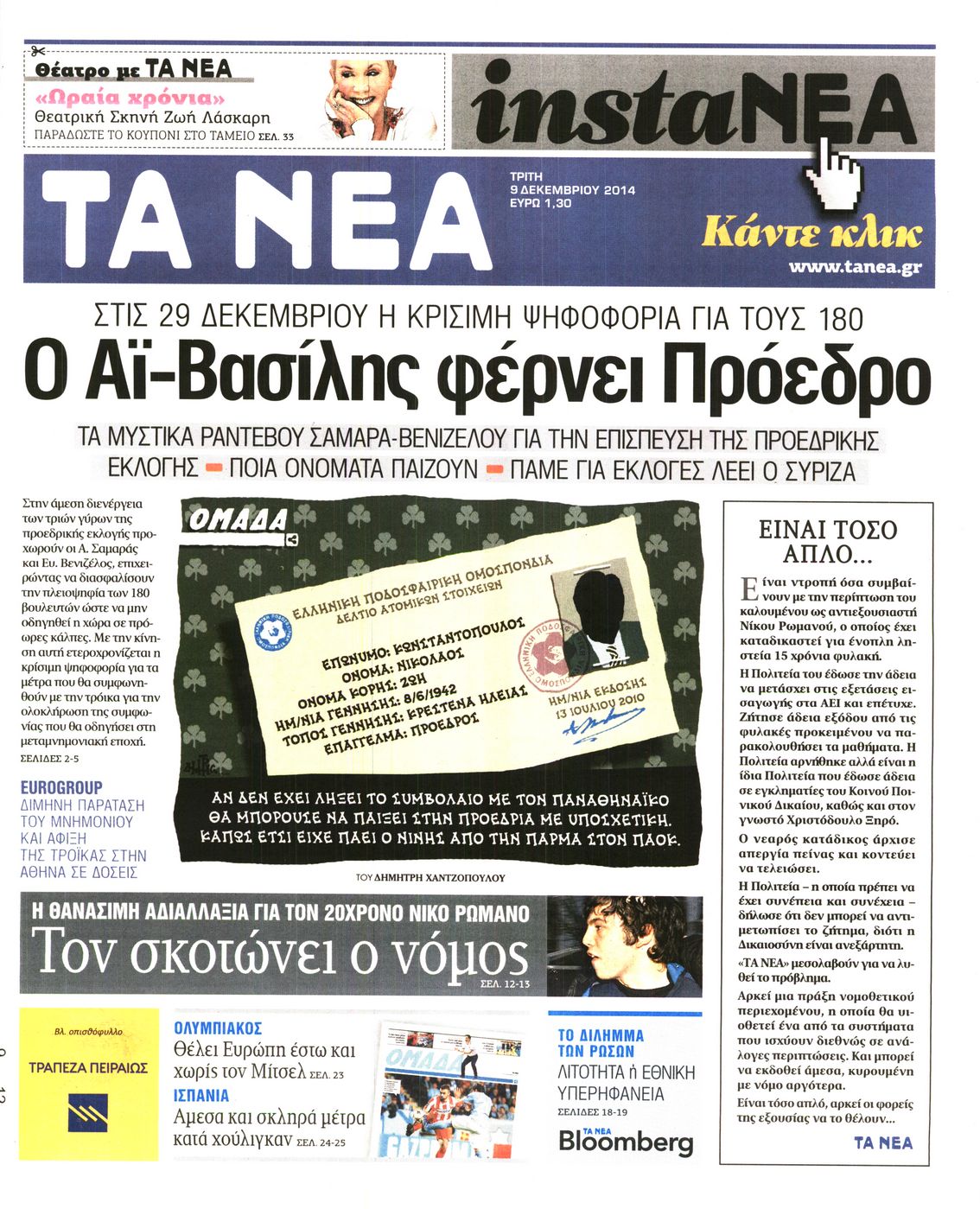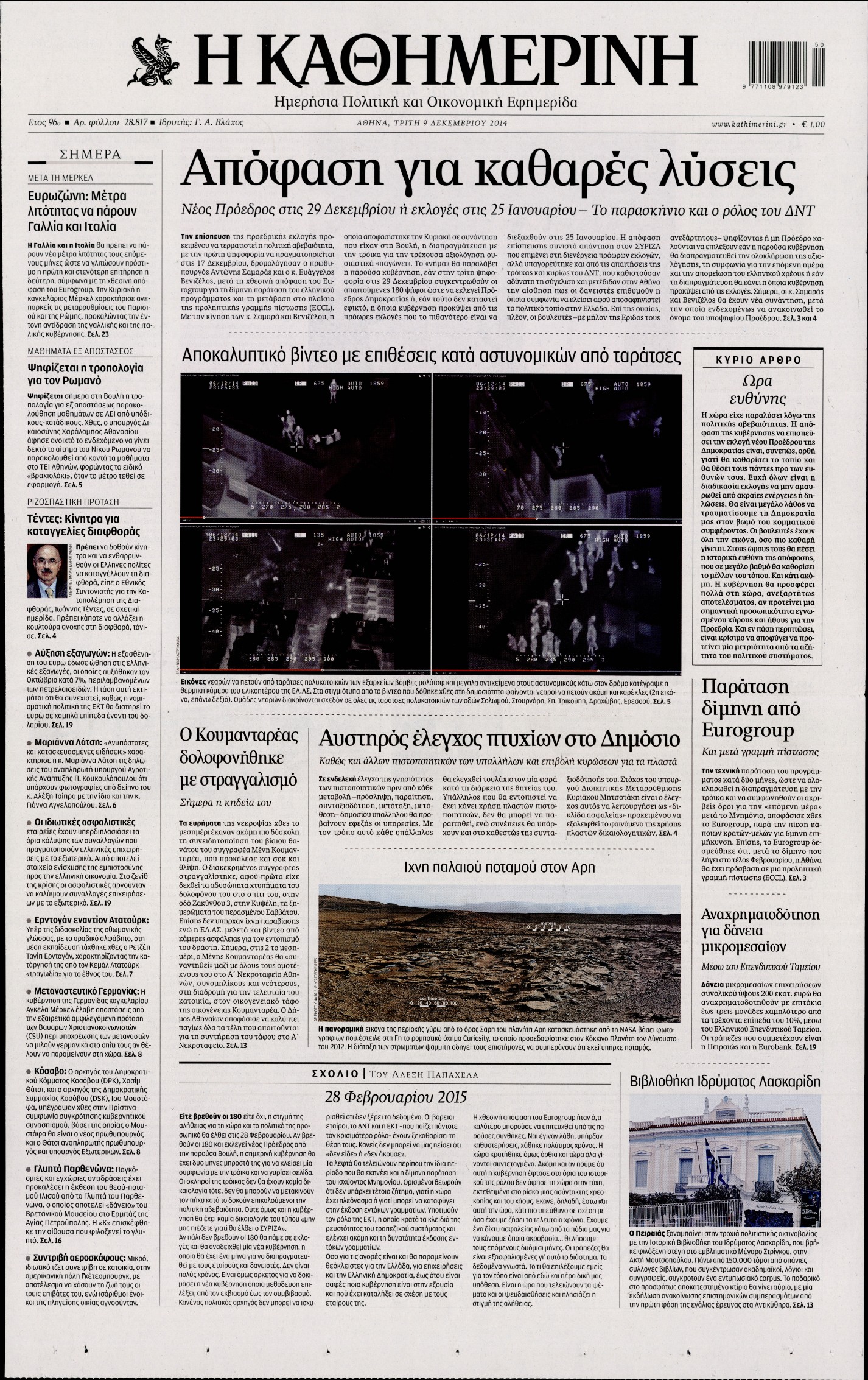 Οι πολιτικές εφημερίδες Enikos Newsroom 07:45, Τρίτη 09 Δεκεμβρίου 2014 Media Οι πολιτικές εφημερίδες Διαβάστε τα πρωτοσέλιδα των πολιτικών εφημερίδων: Μοιράσου το: σχολίασε κι εσύ (0 σχόλια) Ακολουθήστε το enikos.gr στο Google News και μάθετε πρώτοι όλες τις ειδήσεις Δείτε όλες τις τελευταίες ειδήσεις από την Ελλάδα και τον Κόσμο στο enikos.gr Ειδήσεις Ροή Ειδήσεων 3 ώρες πριν Άνοιξαν οι σήραγγες των Τεμπών – Οι επόμενες κινήσεις των αγροτών πριν από τα Χριστούγεννα 14 λεπτά πριν Προκλήσεις: Έστειλαν πάλι οπλισμένα F-16 στο Αιγαίο οι Τούρκοι – Παραβιάσεις και αερομαχίες 3 ώρες πριν Κώστας Ανεστίδης: Πληροφορίες ότι εστάλη εισαγγελική διάταξη για δέσμευση των περιουσιακών στοιχείων του 2 ώρες πριν Νέα Δημοκρατία: Ανακοινώθηκαν 6 ονόματα για τα ψηφοδέλτια των εκλογών του 2027 2 ώρες πριν Πέθανε ο τραγουδιστής Chris Rea σε ηλικία 74 ετών 3 ώρες πριν Αυτό το ζώδιο θα ξαναγεννηθεί το 2026 – «Αφήνετε τις δυσκολίες στο παρελθόν και κάνετε restart» 8 ώρες πριν Έχετε κρατήσει αυτά 8 αντικείμενα από την παιδική ηλικία σας; Δείτε τι αποκαλύπτει για τον χαρακτήρα σας 2 ημέρες πριν Enerwave: Το νέο «ρεύμα» στη λιανική ενέργειας που αλλάζει την εμπειρία του καταναλωτή 4 ώρες πριν Ιστορική ανακάλυψη στη Φυσική – Επιβεβαιώθηκε η ύπαρξη του «δεύτερου ήχου» 2 λεπτά πριν Σύλλογος Πληγέντων Τεμπών για ΣΔΟΕ: «Δεν τρομοκρατούμαστε. Συνεχίζουμε!» 4 λεπτά πριν Συνάντηση Παπασταύρου – Γκιλφόιλ: Επί τάπητος οι ενεργειακές συμφωνίες μεταξύ Ελλάδας – ΗΠΑ 8 λεπτά πριν Τα μυστικά του «αόρατου» φλερτ: 7 τρόποι για να δείξετε το ενδιαφέρον σας για κάποιον χωρίς να αποκαλυφθούν οι προθέσεις σας 9 λεπτά πριν Τζόρτζια Μελόνι: «Η δύναμη των στρατών είναι το ισχυρότερο μέσο ενάντια στους πολέμους» 14 λεπτά πριν Προκλήσεις: Έστειλαν πάλι οπλισμένα F-16 στο Αιγαίο οι Τούρκοι – Παραβιάσεις και αερομαχίες ENIKOS NETWORK Ενεργειακή αναβάθμιση του νοσοκομείου Πατρών «Ο Άγιος Ανδρέας» ΕΟΦ: Ανάκληση παρτίδων καλλυντικών προϊόντων Προκήρυξη ΑΣΕΠ για 2.217 μόνιμες θέσεις στο Δημόσιο: Παρατείνεται η προθεσμία για τις ενστάσεις – Ποιες ειδικότητες αφορά Ευλογιά αιγοπροβάτων: Πόσα χρήματα δίνει το υπουργείο Αγροτικής Ανάπτυξης στις Περιφέρειες για λειτουργικές δαπάνες Ο Google Assistant θα παραμείνει λίγο περισσότερο για ορισμένους χρήστες Android Τεστ προσωπικότητας: Το βάζο που θα επιλέξετε αποκαλύπτει πώς λύνετε προβλήματα στη ζωή σας περισσότερα 18:39 , Δευτέρα 22 Δεκεμβρίου 2025 Να μ’αγαπάς: Ο Θεόφιλος απειλεί να καταστρέψει τη Ζωή Σοκαριστικές αποκαλύψεις έρχονται στο νέο επεισόδιο της σειράς “Να μ΄αγαπάς” απόψε... 17:48 , Δευτέρα 22 Δεκεμβρίου 2025 Βελτιωτικές κινήσεις με νέους συνεργάτες Στοχευμένες κινήσεις για την ενίσχυση του «Καλημέρα Ελλάδα» κάνει ο ΑΝΤ1 ενόψει της νέας χρονι... 16:56 , Δευτέρα 22 Δεκεμβρίου 2025 ALPHA: Θα επιμείνει στο μοντέλο της οικογενειακής κωμωδίας – Η νέα σειρά που έρχεται Στο μοντέλο της οικογενειακής κωμωδίας με εναλλαγή σειρών θα επιμείνει ο Alpha, σύμφωνα με την... 16:25 , Δευτέρα 22 Δεκεμβρίου 2025 Μελίνα Τσαμπάνη – Πέτρος Καλκόβαλης: Eπιστρέφουν το 2026, μέσα από τη συχνότητα του Mega Μέσα από τη συχνότητα του Mega θα επιστρέψουν το 2026 η Μελίνα Τσαμπάνη και ο Πέτρος Καλκόβαλη... ΤΕΛΕΥΤΑΙΕΣ ΕΙΔΗΣΕΙΣ 2 λεπτά πριν Σύλλογος Πληγέντων Τεμπών για ΣΔΟΕ: «Δεν... 4 λεπτά πριν Συνάντηση Παπασταύρου – Γκιλφόιλ: Επί τάπητος οι... 8 λεπτά πριν Τα μυστικά του «αόρατου» φλερτ: 7 τρόποι για να δείξετε... 9 λεπτά πριν Τζόρτζια Μελόνι: «Η δύναμη των στρατών εί