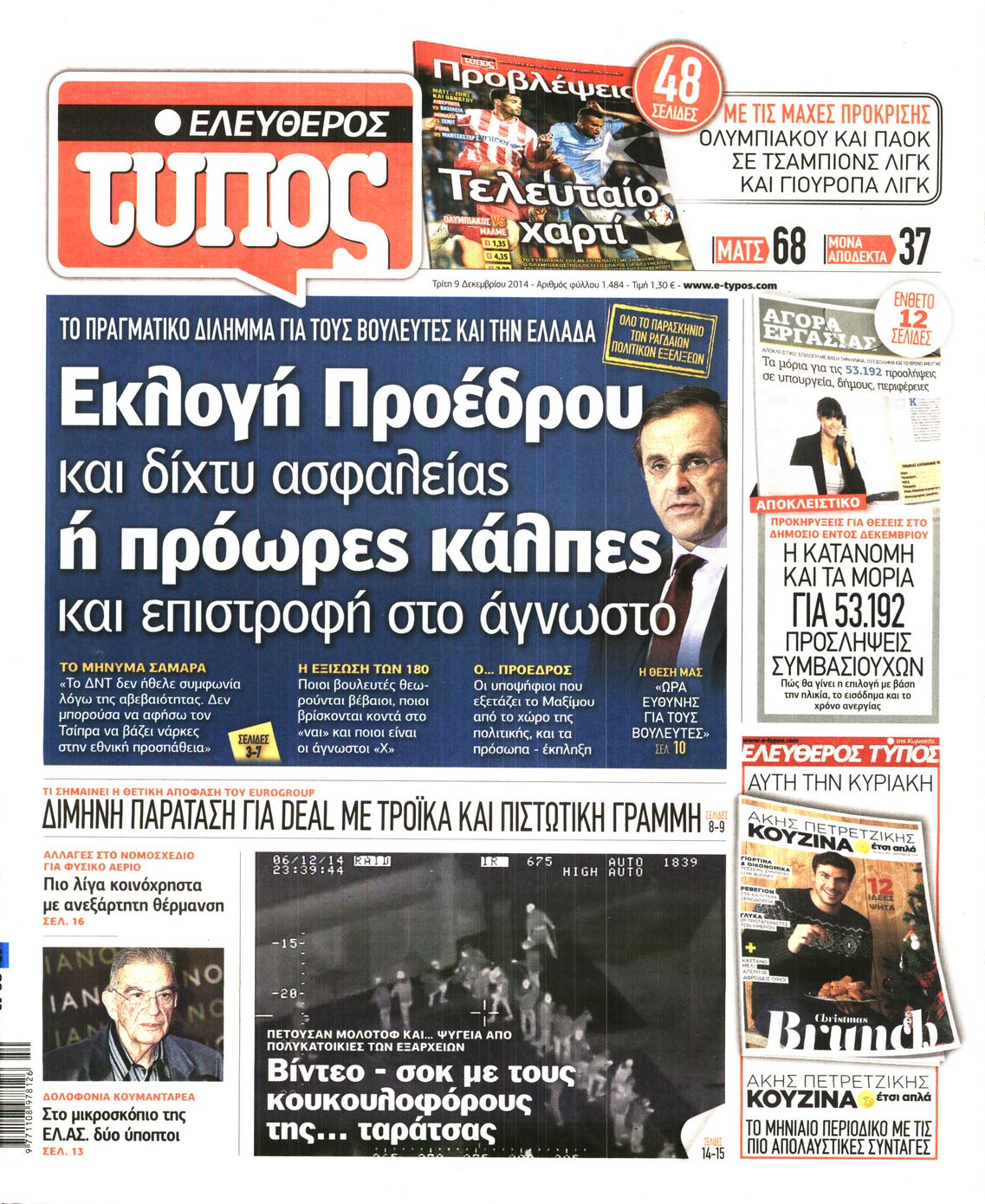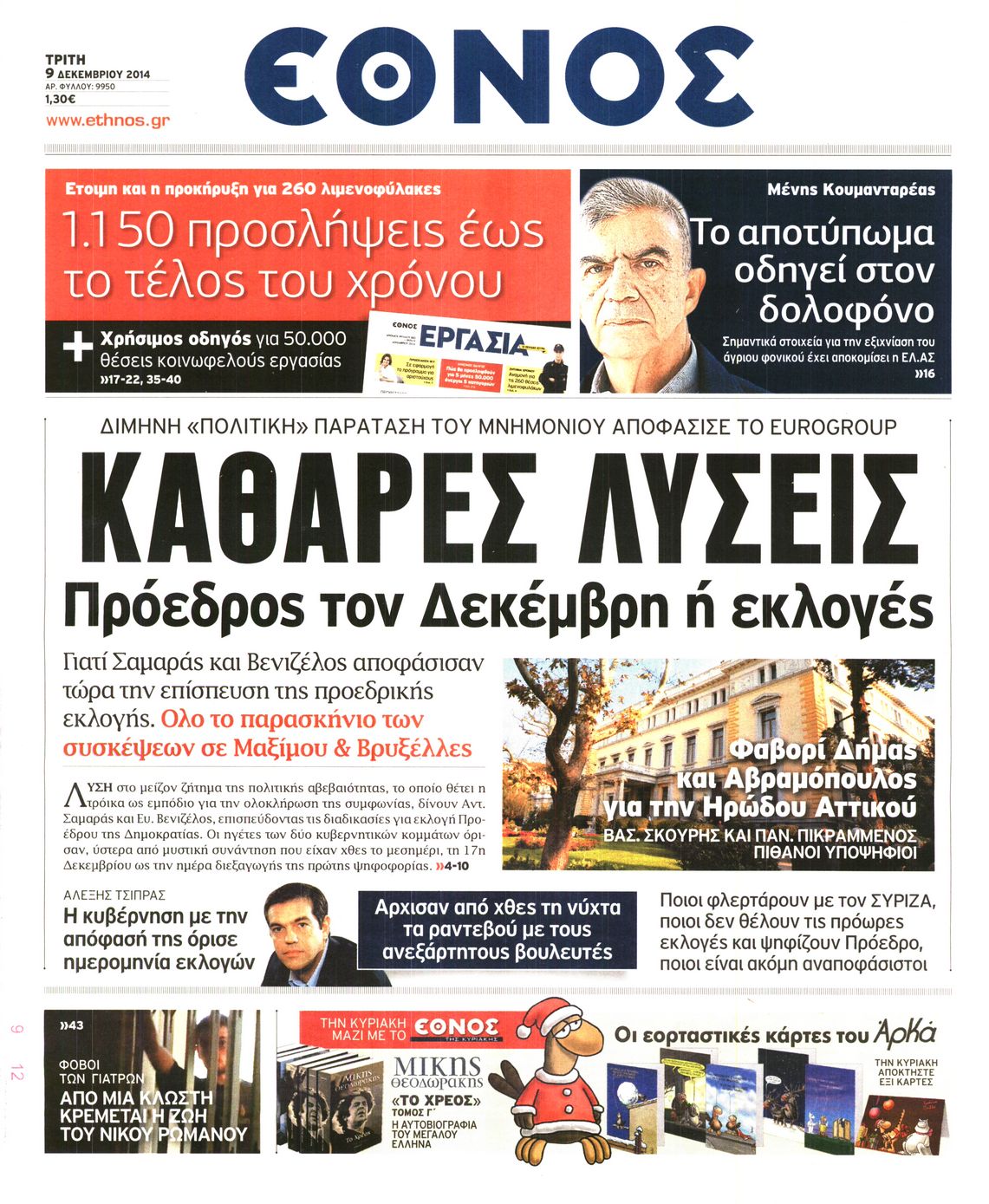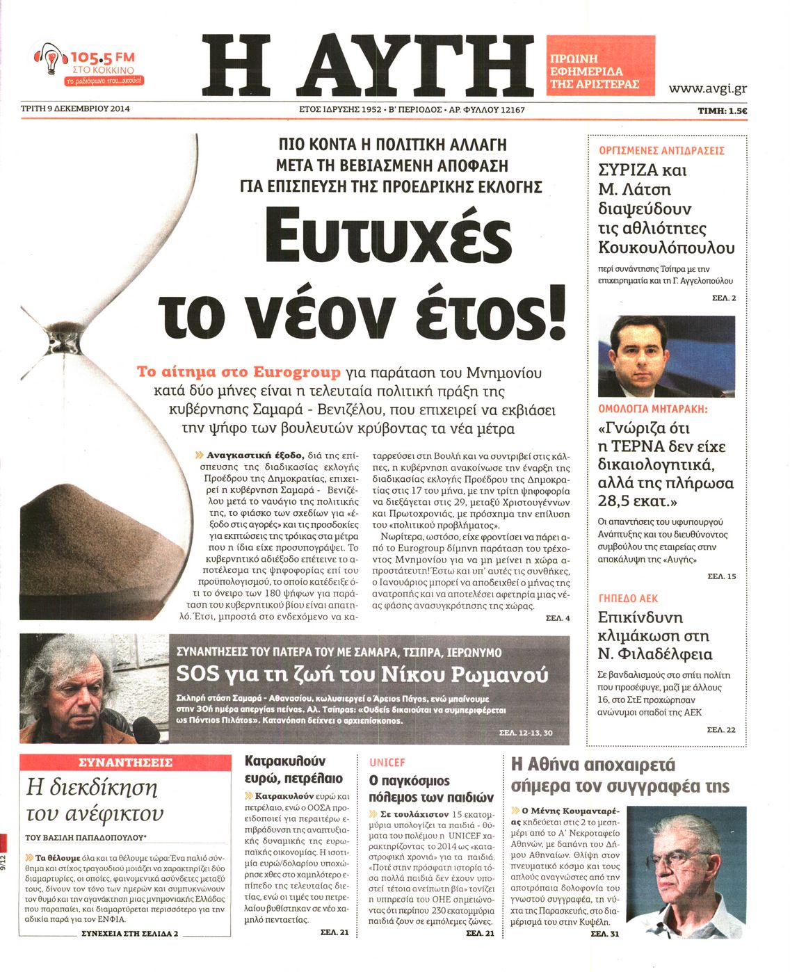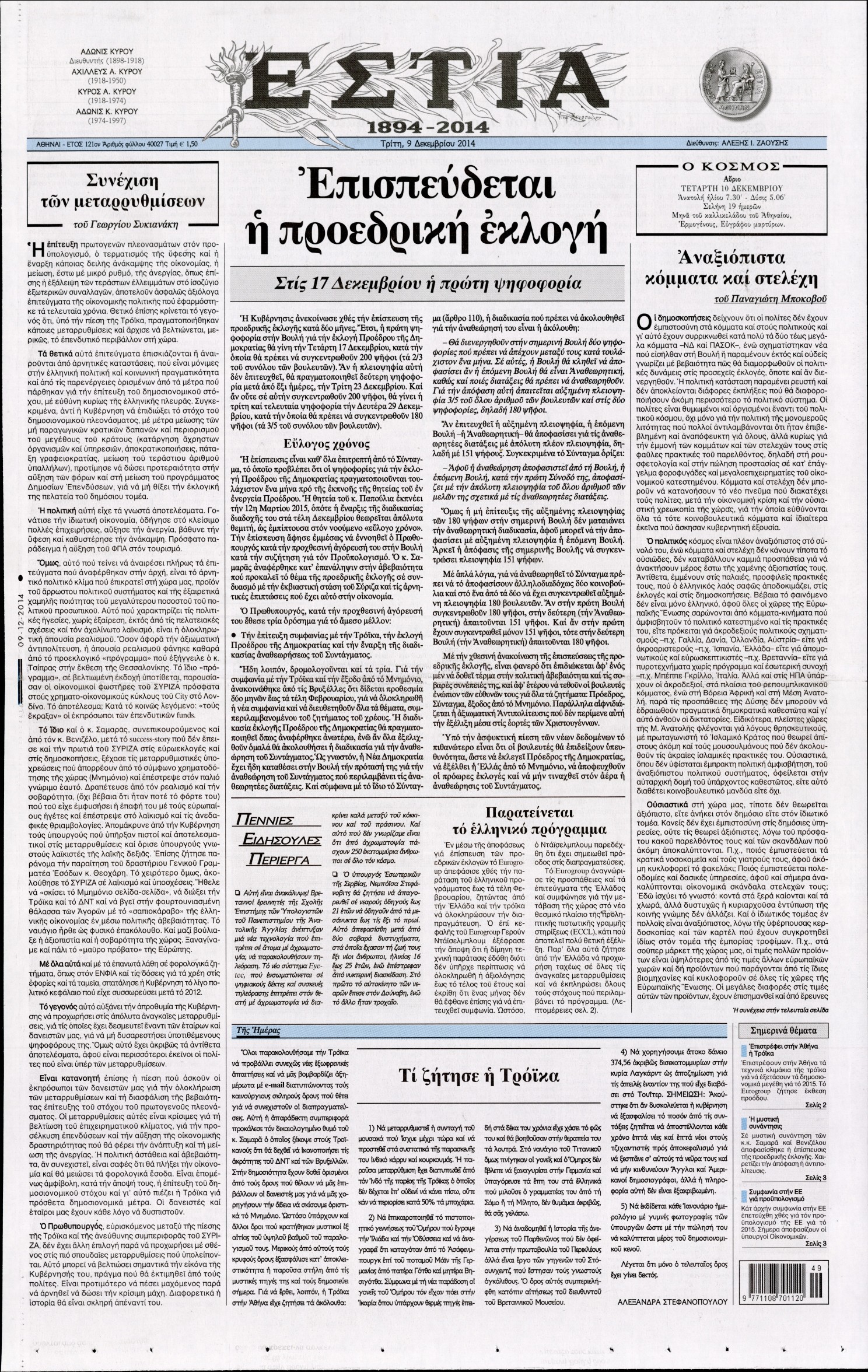 Οι πολιτικές εφημερίδες Enikos Newsroom 07:45, Τρίτη 09 Δεκεμβρίου 2014 Media Οι πολιτικές εφημερίδες Διαβάστε τα πρωτοσέλιδα των πολιτικών εφημερίδων: Μοιράσου το: σχολίασε κι εσύ (0 σχόλια) Ακολουθήστε το enikos.gr στο Google News και μάθετε πρώτοι όλες τις ειδήσεις Δείτε όλες τις τελευταίες ειδήσεις από την Ελλάδα και τον Κόσμο στο enikos.gr Ειδήσεις Ροή Ειδήσεων 3 ώρες πριν Άνοιξαν οι σήραγγες των Τεμπών – Οι επόμενες κινήσεις των αγροτών πριν από τα Χριστούγεννα 14 λεπτά πριν Προκλήσεις: Έστειλαν πάλι οπλισμένα F-16 στο Αιγαίο οι Τούρκοι – Παραβιάσεις και αερομαχίες 3 ώρες πριν Κώστας Ανεστίδης: Πληροφορίες ότι εστάλη εισαγγελική διάταξη για δέσμευση των περιουσιακών στοιχείων του 2 ώρες πριν Νέα Δημοκρατία: Ανακοινώθηκαν 6 ονόματα για τα ψηφοδέλτια των εκλογών του 2027 2 ώρες πριν Πέθανε ο τραγουδιστής Chris Rea σε ηλικία 74 ετών 3 ώρες πριν Αυτό το ζώδιο θα ξαναγεννηθεί το 2026 – «Αφήνετε τις δυσκολίες στο παρελθόν και κάνετε restart» 8 ώρες πριν Έχετε κρατήσει αυτά 8 αντικείμενα από την παιδική ηλικία σας; Δείτε τι αποκαλύπτει για τον χαρακτήρα σας 2 ημέρες πριν Enerwave: Το νέο «ρεύμα» στη λιανική ενέργειας που αλλάζει την εμπειρία του καταναλωτή 4 ώρες πριν Ιστορική ανακάλυψη στη Φυσική – Επιβεβαιώθηκε η ύπαρξη του «δεύτερου ήχου» 2 λεπτά πριν Σύλλογος Πληγέντων Τεμπών για ΣΔΟΕ: «Δεν τρομοκρατούμαστε. Συνεχίζουμε!» 4 λεπτά πριν Συνάντηση Παπασταύρου – Γκιλφόιλ: Επί τάπητος οι ενεργειακές συμφωνίες μεταξύ Ελλάδας – ΗΠΑ 8 λεπτά πριν Τα μυστικά του «αόρατου» φλερτ: 7 τρόποι για να δείξετε το ενδιαφέρον σας για κάποιον χωρίς να αποκαλυφθούν οι προθέσεις σας 9 λεπτά πριν Τζόρτζια Μελόνι: «Η δύναμη των στρατών είναι το ισχυρότερο μέσο ενάντια στους πολέμους» 14 λεπτά πριν Προκλήσεις: Έστειλαν πάλι οπλισμένα F-16 στο Αιγαίο οι Τούρκοι – Παραβιάσεις και αερομαχίες ENIKOS NETWORK Ενεργειακή αναβάθμιση του νοσοκομείου Πατρών «Ο Άγιος Ανδρέας» ΕΟΦ: Ανάκληση παρτίδων καλλυντικών προϊόντων Προκήρυξη ΑΣΕΠ για 2.217 μόνιμες θέσεις στο Δημόσιο: Παρατείνεται η προθεσμία για τις ενστάσεις – Ποιες ειδικότητες αφορά Ευλογιά αιγοπροβάτων: Πόσα χρήματα δίνει το υπουργείο Αγροτικής Ανάπτυξης στις Περιφέρειες για λειτουργικές δαπάνες Ο Google Assistant θα παραμείνει λίγο περισσότερο για ορισμένους χρήστες Android Τεστ προσωπικότητας: Το βάζο που θα επιλέξετε αποκαλύπτει πώς λύνετε προβλήματα στη ζωή σας περισσότερα 18:39 , Δευτέρα 22 Δεκεμβρίου 2025 Να μ’αγαπάς: Ο Θεόφιλος απειλεί να καταστρέψει τη Ζωή Σοκαριστικές αποκαλύψεις έρχονται στο νέο επεισόδιο της σειράς “Να μ΄αγαπάς” απόψε... 17:48 , Δευτέρα 22 Δεκεμβρίου 2025 Βελτιωτικές κινήσεις με νέους συνεργάτες Στοχευμένες κινήσεις για την ενίσχυση του «Καλημέρα Ελλάδα» κάνει ο ΑΝΤ1 ενόψει της νέας χρονι... 16:56 , Δευτέρα 22 Δεκεμβρίου 2025 ALPHA: Θα επιμείνει στο μοντέλο της οικογενειακής κωμωδίας – Η νέα σειρά που έρχεται Στο μοντέλο της οικογενειακής κωμωδίας με εναλλαγή σειρών θα επιμείνει ο Alpha, σύμφωνα με την... 16:25 , Δευτέρα 22 Δεκεμβρίου 2025 Μελίνα Τσαμπάνη – Πέτρος Καλκόβαλης: Eπιστρέφουν το 2026, μέσα από τη συχνότητα του Mega Μέσα από τη συχνότητα του Mega θα επιστρέψουν το 2026 η Μελίνα Τσαμπάνη και ο Πέτρος Καλκόβαλη... ΤΕΛΕΥΤΑΙΕΣ ΕΙΔΗΣΕΙΣ 2 λεπτά πριν Σύλλογος Πληγέντων Τεμπών για ΣΔΟΕ: «Δεν... 4 λεπτά πριν Συνάντηση Παπασταύρου – Γκιλφόιλ: Επί τάπητος οι... 8 λεπτά πριν Τα μυστικά του «αόρατου» φλερτ: 7 τρόποι για να δείξετε... 9 λεπτά πριν Τζόρτζια Μελόνι: «Η δύναμη των στρατών εί
