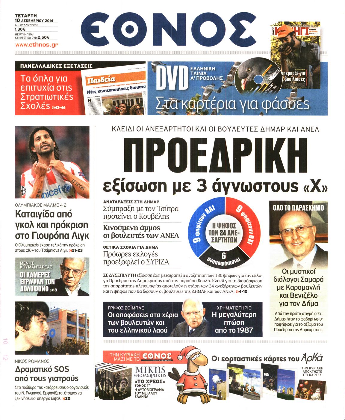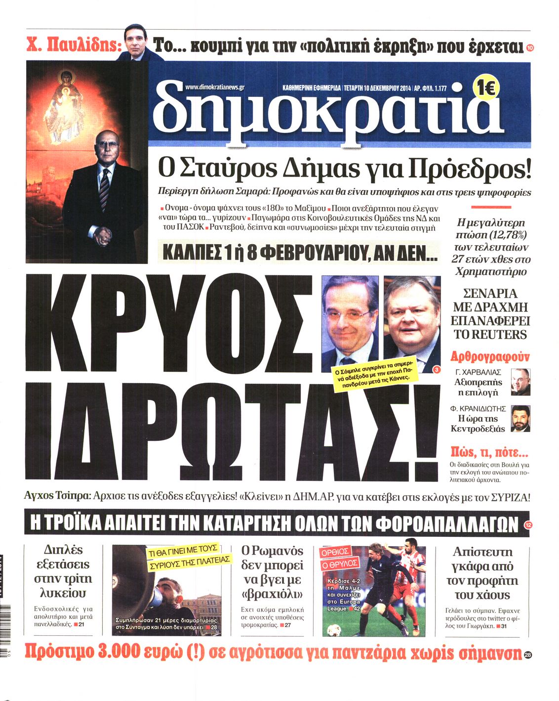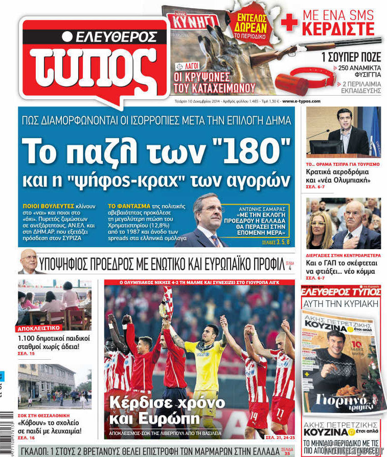 Οι πολιτικές εφημερίδες Enikos Newsroom 07:45, Τετάρτη 10 Δεκεμβρίου 2014 Media Οι πολιτικές εφημερίδες Διαβάστε τα πρωτοσέλιδα των πολιτικών εφημερίδων: ΕΦΗΜΕΡΙΔΕΣ ΠΟΛΙΤΙΚΕΣ ΕΦΗΜΕΡΙΔΕΣ ΠΡΩΤΟΣΕΛΙΔΑ Μοιράσου το: σχολίασε κι εσύ (0 σχόλια) Ακολουθήστε το enikos.gr στο Google News και μάθετε πρώτοι όλες τις ειδήσεις Δείτε όλες τις τελευταίες ειδήσεις από την Ελλάδα και τον Κόσμο στο enikos.gr Ειδήσεις Ροή Ειδήσεων 4 ώρες πριν Πώς δρούσε το κύκλωμα που διακινούσε ναρκωτικά σε σχολεία – Υπέβαλαν σε βασανιστήρια όσους δεν τηρούσαν τους «κανόνες πειθαρχίας» 4 ώρες πριν Αγρότες: Γιορτές στα μπλόκα με ανοιχτά διόδια – Δικογραφία στα Ιωάννινα για το σήκωμα των μπαρών 4 ώρες πριν Ζελένσκι: Οι Αμερικανοί πρότειναν συνάντηση Ουκρανίας, ΗΠΑ, Ρωσίας στο Μαϊάμι 2 ώρες πριν Τραμπ: Πώς περνάει τις γιορτές των Χριστουγέννων – Τα δώρα που κάνει στα εγγόνια του 3 ώρες πριν Μικαέλα Μπέντχαους: Ο πρώτος άνθρωπος σε αναπηρικό αμαξίδιο που ταξίδεψε στο διάστημα – ΒΙΝΤΕΟ 5 ώρες πριν Η τύχη χαμογελά σε 3 ζώδια έως τις 28 Δεκεμβρίου – «Προσέξτε τις επιλογές σας και η επιμονή σας θα ανταμειφθεί» 6 ώρες πριν Μία ανεκμετάλλευτη πηγή θα μπορούσε να προσφέρει ανεξάντλητη ενέργεια – Οι επιστήμονες ίσως γνωρίζουν πώς να την ξεκλειδώσουν 2 ώρες πριν Μήπως οι γιορτές σας δεν είναι τόσο τέλειες; 7 χριστουγεννιάτικες συνήθειες που μαρτυρούν ότι μια οικογένεια είναι δυσλειτουργική 12 ώρες πριν Enerwave: Το νέο «ρεύμα» στη λιανική ενέργειας που αλλάζει την εμπειρία του καταναλωτή 2 λεπτά πριν Super League: Ο Σιαμπάνης «κατέβασε ρολά» και ο Βόλος νίκησε 1-0 τον Παναιτωλικό 12 λεπτά πριν Αυτή την Κυριακή με τη Realnews: Instyle, μαζί Drive και Realnews Geopolitics 14 λεπτά πριν Ο ΑΝΤ1 γεμίζει τις γιορτές με μουσική – Ποιους καλλιτέχνες θα απολαύσουμε 23 λεπτά πριν Πάπας Λέων: Όταν έχει αϋπνίες επενδύει παραγωγικά τον χρόνο του – Ποιο παιχνίδι παίζει στο κινητό 31 λεπτά πριν Πέθανε η σπουδαία αρχαιολόγος Λίλα Μαραγκού ENIKOS NETWORK Οι γυναίκες αποκαλύπτουν το πιο ελκυστικό πράγμα που μπορεί να κάνει ένας άνδρας Ομορφιά και αντιγήρανση: Ειδικοί μιλούν για συσκευές περιποίησης του δέρματος Πορτοκαλί τιμολόγια ρεύματος: Τα σημεία που πρέπει να προσέξουν οι καταναλωτές – Πότε θα εφαρμοστούν Θεοδωρικάκος: Εθνική στρατηγική για τους ημιαγωγούς – Πρώτο βήμα η χρηματοδότηση του πρώτου Κέντρου Ικανοτήτων, με 3,63 εκα... Χαρτογραφώντας το «σημείο χωρίς επιστροφή»: Για πρώτη φορά αποκαλύπτεται με λεπτομέρεια το ακανθώδες όριο της ατμόσφαιρας τ... Η Google καταργεί τη λειτουργία «dark web report» – Πώς θα μπορούν οι χρήστες να διαγράφουν τα δεδομένα τους περισσότερα 20:30 , Σάββατο 20 Δεκεμβρίου 2025 Αυτή την Κυριακή με τη Realnews: Instyle, μαζί Drive και Realnews Geopolitics Αυτή την Κυριακή με τη Realnews: Instyle, μαζί Drive και Realnews Geopolitics Instyle Η Άννα Ρ... 20:28 , Σάββατο 20 Δεκεμβρίου 2025 Ο ΑΝΤ1 γεμίζει τις γιορτές με μουσική – Ποιους καλλιτέχνες θα απολαύσουμε Φέτος στον ΑΝΤ1 γιορτάζουμε τις νύχτες μας παρέα με αγαπημένους καλλιτέχνες και μεγάλες μουσι... 18:19 , Σάββατο 20 Δεκεμβρίου 2025 HOTΕΛ ΕΛVIRA: Η Ελβίρα μαθαίνει πως ο Χάρι μένει κρυφά στο ξενοδοχείο του Παντελή Συνεχίζονται οι εκλογές για πρόεδρο, στο νέο επεισόδιο της κωμικής σειράς του MEGA, HOTΕΛ ΕΛVI... 14:04 , Σάββατο 20 Δεκεμβρίου 2025 Η Realnews αυτής της Κυριακής (21/12/2025) Με τίτλο: «Ασπίδα προστασίας για την Ελλάδα» κυκλοφορεί, αυτήν την Κυριακή, η Realnews. Σημαντ... ΤΕΛΕΥΤΑΙΕΣ ΕΙΔΗΣΕΙΣ 2 λεπτά πριν Super League: Ο Σιαμπάνης «κατέβασε ρολά» και ο Βόλος νίκησε... 12 λεπτά πριν Αυτ