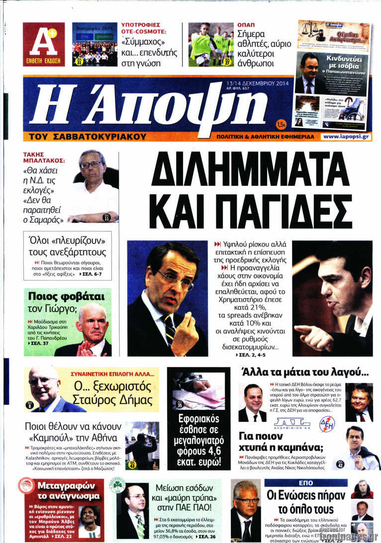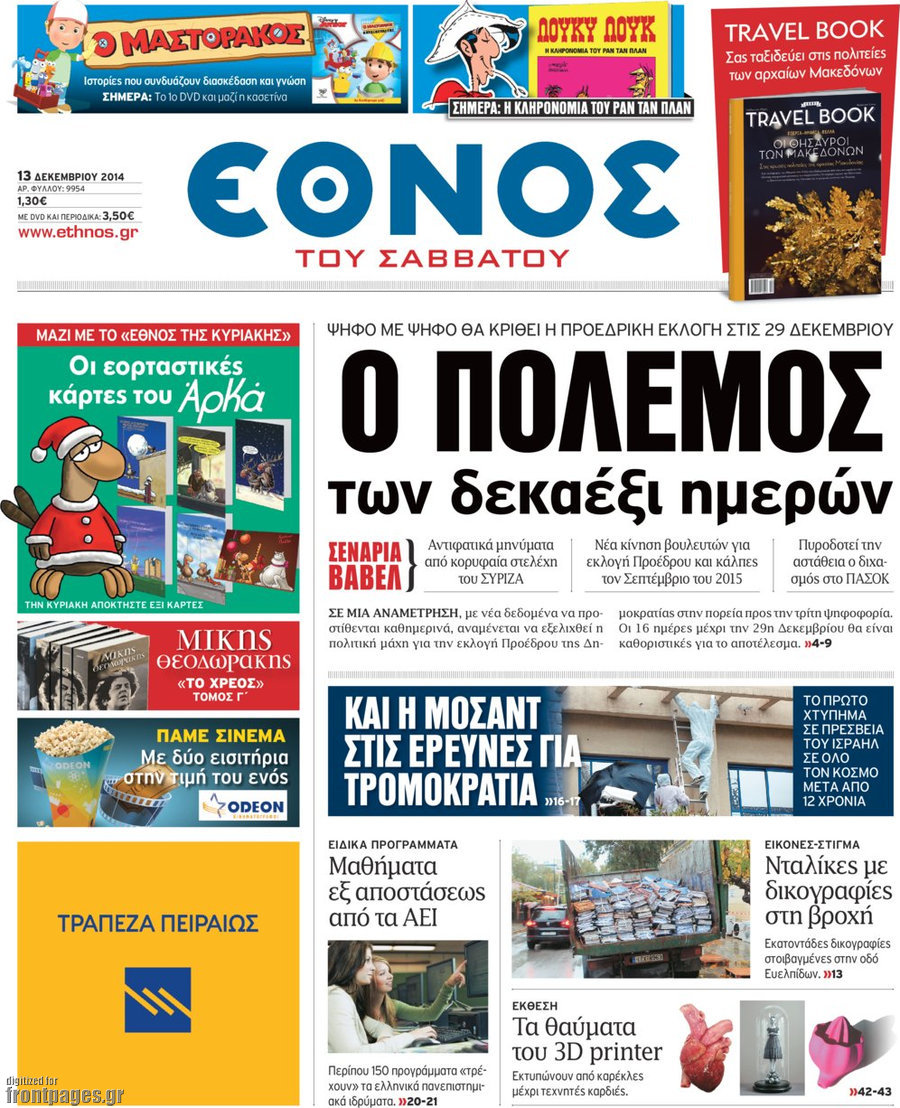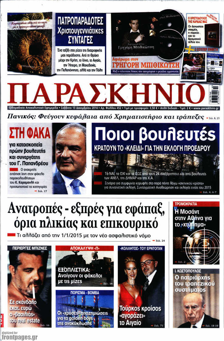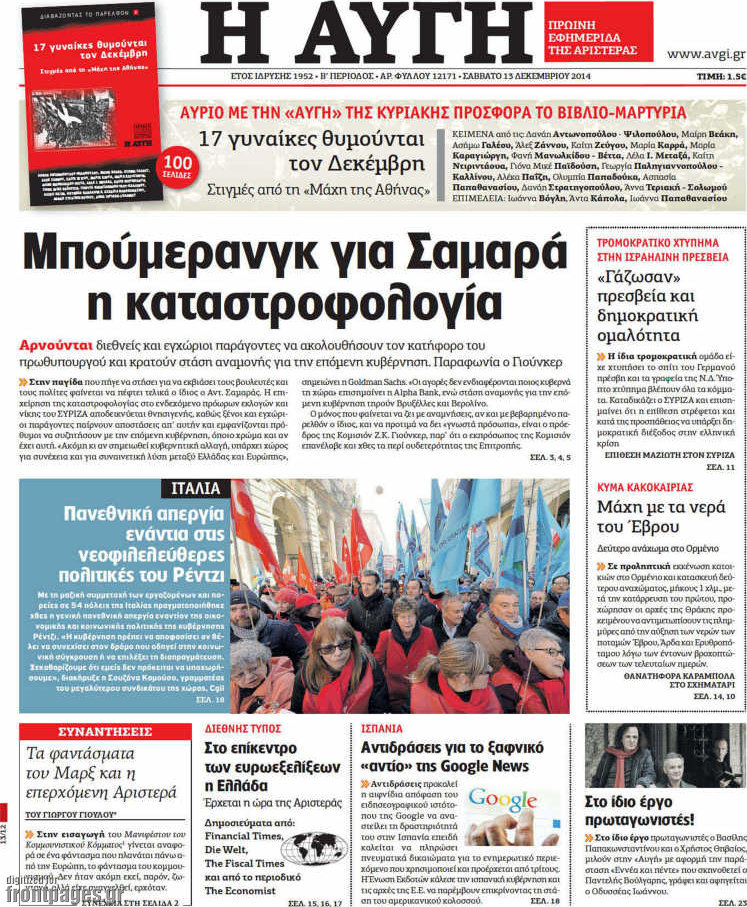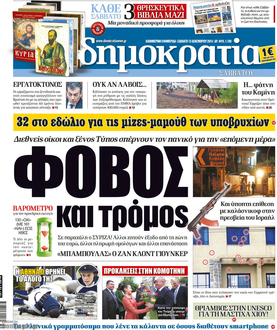 Οι πολιτικές εφημερίδες Enikos Newsroom 07:26, Σάββατο 13 Δεκεμβρίου 2014 Media ΠΟΛΙΤΙΚΕΣ ΕΦΗΜΕΡΙΔΕΣ ΠΡΩΤΟΣΕΛΙΔΑ Μοιράσου το: σχολίασε κι εσύ (0 σχόλια) Ακολουθήστε το enikos.gr στο Google News και μάθετε πρώτοι όλες τις ειδήσεις Δείτε όλες τις τελευταίες ειδήσεις από την Ελλάδα και τον Κόσμο στο enikos.gr Ειδήσεις Ροή Ειδήσεων 3 ώρες πριν Αγρότες: Πολύωροι αποκλεισμοί στα τελωνεία Προμαχώνα, Εξοχής, Ευζώνων και Νίκης – Κλείνουν τον κόμβο Φιλώτα οι παραγωγοί στη Δυτική Μακεδονία 2 ώρες πριν Νίκος Παππάς: Ζητώ συγγνώμη για αυτό το επεισόδιο – Δεν τον γρονθοκόπησα 1 ώρα πριν Πούτιν: Η Ουκρανία δεν είναι έτοιμη για ειρηνευτικές συνομιλίες – ο ρωσικός στρατός προελαύνει σε όλα τα μέτωπα 55 λεπτά πριν Κρήτη: Στο Ρέθυμνο μεταφέρονται οι εκατοντάδες μετανάστες που διασώθηκαν ανοιχτά της Γαύδου 2 ώρες πριν Τρομακτικό βίντεο: Η στιγμή της έκρηξης στο τζετ που μετέφερε τον οδηγό του NASCAR, Γκρεγκ Μπιφλ και την οικογένειά του 3 ώρες πριν Αλλαγή σελίδας για 3 ζώδια – «Μία δύσκολη περίοδος φτάνει στο τέλος της» 2 ημέρες πριν 20 χρόνια τα Χριστούγεννα ξεκινούν στα Public με μεγάλη ποικιλία σε δώρα! 2 ώρες πριν Γεμάτος νεροχύτης; 5 σοβαρές ευθύνες που «φοβίζουν» όσους αφήνουν άπλυτα πιάτα 1 ώρα πριν Ειδικός μοιράζεται 6 κόλπα για να διατηρείστε σε φόρμα με πάνω από 40 ώρες εργασίας την εβδομάδα: «Προπονηθείτε πριν από τη δουλειά, όχι μετά» 3 λεπτά πριν ΑΑΔΕ: QR Code και Barcode για εύκολες και γρήγορες πληρωμές οφειλών 8 λεπτά πριν Νέα Φιλαδέλφεια: Βίντεο ντοκουμέντο από το θανατηφόρο τροχαίο 13 λεπτά πριν Παπαθανάσης: «Η Ελλάδα αλλάζει με μεταρρυθμίσεις και έργα – Το 2026 χρονιά μεγάλης ανάπτυξης, νέων θέσεων εργασίας, καλύτερων αμοιβών» 19 λεπτά πριν Αγρότες: Παραμένουν στα μπλόκα και ενισχύουν τις δράσεις τους σε Ημαθία, Πέλλα, Πιερία και Καβάλα 25 λεπτά πριν Γιώργος Μαζωνάκης: «Φοβόταν, θεώρησα ότι έπρεπε να τον προστατεύσω» – Τι λέει η τραγουδίστρια, Νωαίνα για τον Στέφανο Παπαδόπουλο ENIKOS NETWORK Κίνδυνος παραπλάνησης από διαφημίσεις οδοντικών εμφυτευμάτων Καρκίνος του πνεύμονα: Έως 8.000 ζωές μπορούν να σωθούν με την έγκαιρη διάγνωση Αγορά πολυτελών κατοικιών: Αυτές είναι οι προτεραιότητες των αγοραστών – Σε ποιες περιοχές στρέφονται και τι επιλέγουν ΕΥΔΑΠ: Στο τραπέζι αλλαγές στους λογαριασμούς του νερού – Τι θα ισχύσει για ευάλωτα νοικοκυριά και επιχειρήσεις Χαρτογραφώντας το «σημείο χωρίς επιστροφή»: Για πρώτη φορά αποκαλύπτεται με λεπτομέρεια το ακανθώδες όριο της ατμόσφαιρας τ... Η Google καταργεί τη λειτουργία «dark web report» – Πώς θα μπορούν οι χρήστες να διαγράφουν τα δεδομένα τους περισσότερα 08:00 , Παρασκευή 19 Δεκεμβρίου 2025 Την Κυριακή με τη Realnews: Δωροεπιταγή 10€ Δωροεπιταγή αξίας 10€ για αγορές άνω των 60€ από τα πολυκαταστήματα FactoryOutlet H προσφορά ι... 05:48 , Παρασκευή 19 Δεκεμβρίου 2025 Οι οικονομικές εφημερίδες 19/12/2025 Διαβάστε τα πρωτοσέλιδα από τις οικονομικές εφημερίδες, σήμερα 19/12/2025. 05:43 , Παρασκευή 19 Δεκεμβρίου 2025 Οι αθλητικές εφημερίδες 19/12/2025 Διαβάστε τα πρωτοσέλιδα από τις αθλητικές εφημερίδες, σήμερα 19/12/2025. 05:38 , Παρασκευή 19 Δεκεμβρίου 2025 Οι πολιτικές εφημερίδες 19/12/2025 Διαβάστε τα πρωτοσέλιδα από τις πολιτικές εφημερίδες, σήμερα 19/12/2025. ΤΕΛΕΥΤΑΙΕΣ ΕΙΔΗΣΕΙΣ 8 λεπτά πριν Νέα Φιλαδέλφεια: Βίντεο ντοκουμέντο από το θανατηφόρο... 13 λεπτά πριν Παπαθανάσης: «Η Ελλάδα αλλάζει με μεταρρυθμίσεις και... 19 λεπτά πριν Αγρότες: Παραμένουν στα μπλόκα και ενισχύουν τις... 25 λεπτά πριν Γιώργος Μαζωνάκης: «Φοβότα