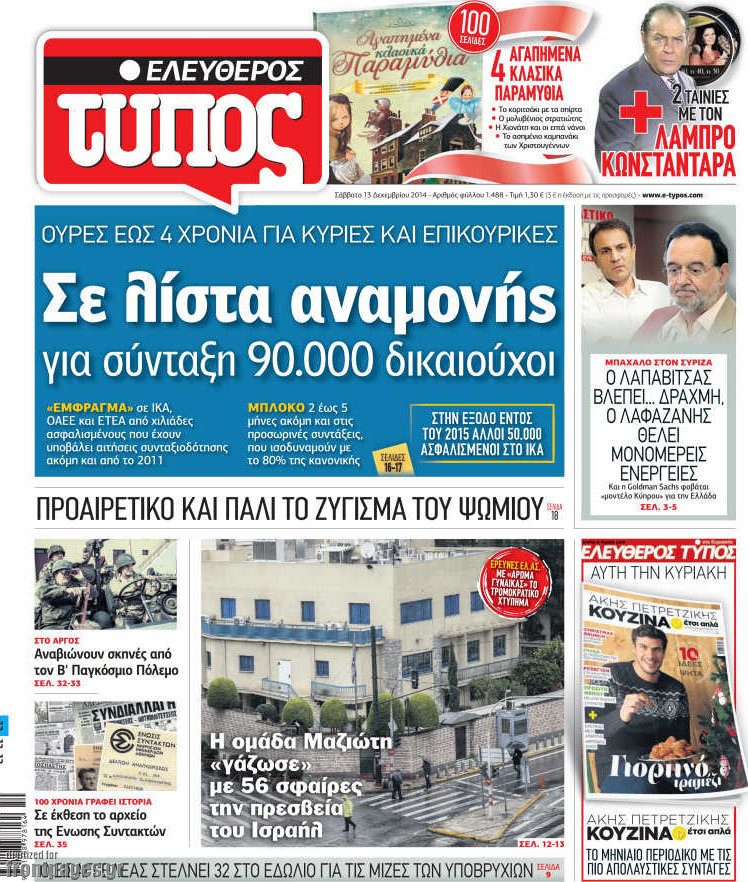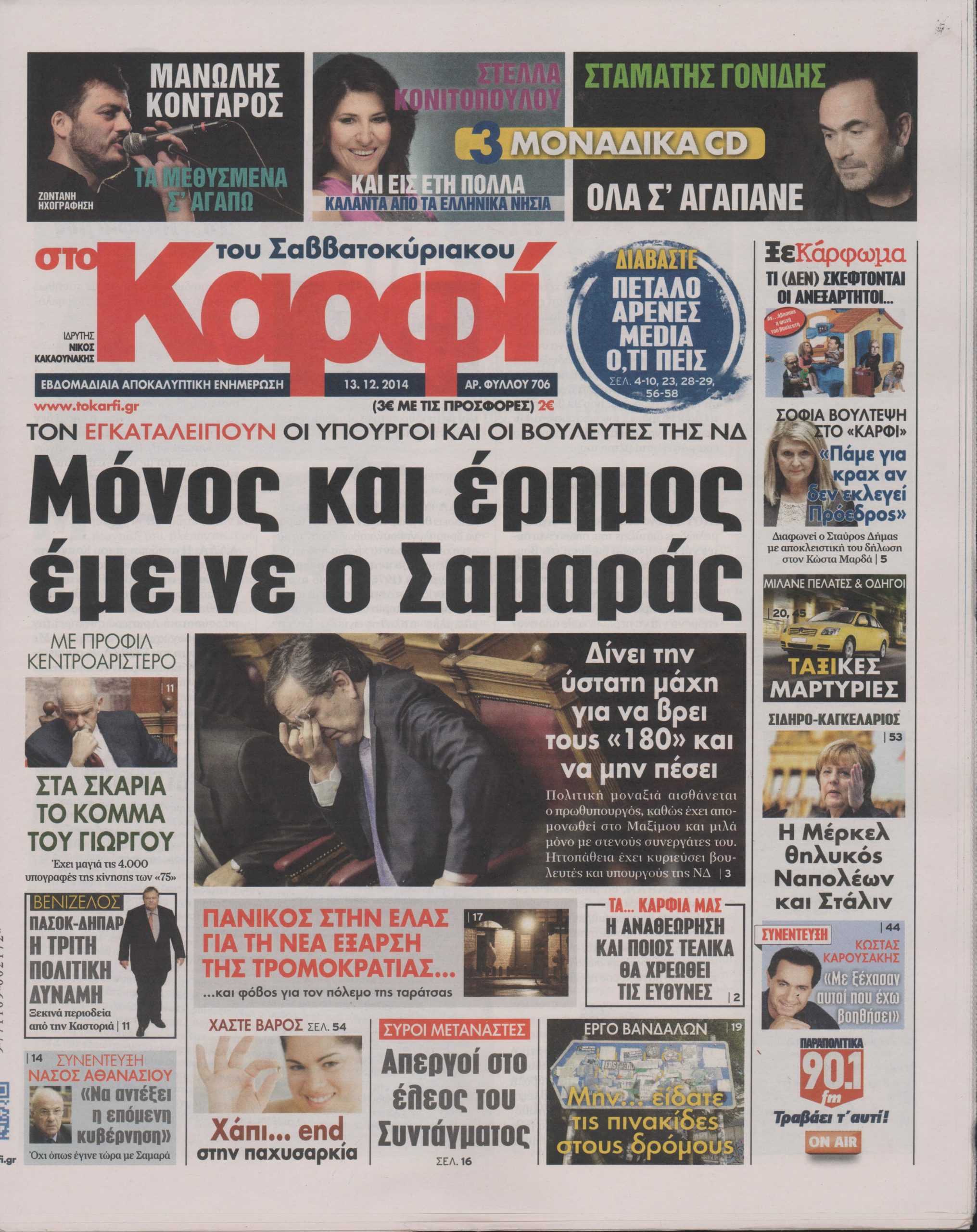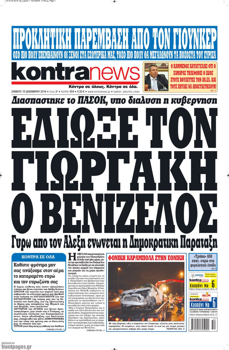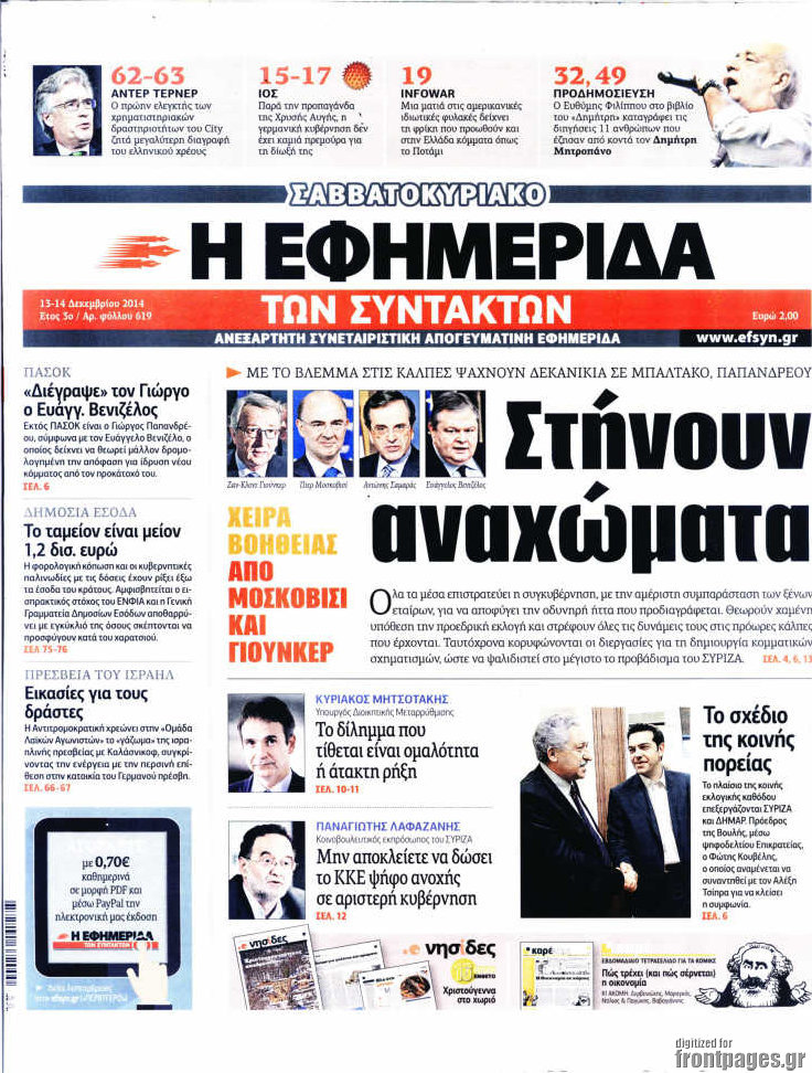 Οι πολιτικές εφημερίδες Enikos Newsroom 07:26, Σάββατο 13 Δεκεμβρίου 2014 Media ΠΟΛΙΤΙΚΕΣ ΕΦΗΜΕΡΙΔΕΣ ΠΡΩΤΟΣΕΛΙΔΑ Μοιράσου το: σχολίασε κι εσύ (0 σχόλια) Ακολουθήστε το enikos.gr στο Google News και μάθετε πρώτοι όλες τις ειδήσεις Δείτε όλες τις τελευταίες ειδήσεις από την Ελλάδα και τον Κόσμο στο enikos.gr Ειδήσεις Ροή Ειδήσεων 3 ώρες πριν Αγρότες: Πολύωροι αποκλεισμοί στα τελωνεία Προμαχώνα, Εξοχής, Ευζώνων και Νίκης – Κλείνουν τον κόμβο Φιλώτα οι παραγωγοί στη Δυτική Μακεδονία 2 ώρες πριν Νίκος Παππάς: Ζητώ συγγνώμη για αυτό το επεισόδιο – Δεν τον γρονθοκόπησα 1 ώρα πριν Πούτιν: Η Ουκρανία δεν είναι έτοιμη για ειρηνευτικές συνομιλίες – ο ρωσικός στρατός προελαύνει σε όλα τα μέτωπα 55 λεπτά πριν Κρήτη: Στο Ρέθυμνο μεταφέρονται οι εκατοντάδες μετανάστες που διασώθηκαν ανοιχτά της Γαύδου 2 ώρες πριν Τρομακτικό βίντεο: Η στιγμή της έκρηξης στο τζετ που μετέφερε τον οδηγό του NASCAR, Γκρεγκ Μπιφλ και την οικογένειά του 3 ώρες πριν Αλλαγή σελίδας για 3 ζώδια – «Μία δύσκολη περίοδος φτάνει στο τέλος της» 2 ημέρες πριν 20 χρόνια τα Χριστούγεννα ξεκινούν στα Public με μεγάλη ποικιλία σε δώρα! 2 ώρες πριν Γεμάτος νεροχύτης; 5 σοβαρές ευθύνες που «φοβίζουν» όσους αφήνουν άπλυτα πιάτα 1 ώρα πριν Ειδικός μοιράζεται 6 κόλπα για να διατηρείστε σε φόρμα με πάνω από 40 ώρες εργασίας την εβδομάδα: «Προπονηθείτε πριν από τη δουλειά, όχι μετά» 3 λεπτά πριν ΑΑΔΕ: QR Code και Barcode για εύκολες και γρήγορες πληρωμές οφειλών 8 λεπτά πριν Νέα Φιλαδέλφεια: Βίντεο ντοκουμέντο από το θανατηφόρο τροχαίο 13 λεπτά πριν Παπαθανάσης: «Η Ελλάδα αλλάζει με μεταρρυθμίσεις και έργα – Το 2026 χρονιά μεγάλης ανάπτυξης, νέων θέσεων εργασίας, καλύτερων αμοιβών» 19 λεπτά πριν Αγρότες: Παραμένουν στα μπλόκα και ενισχύουν τις δράσεις τους σε Ημαθία, Πέλλα, Πιερία και Καβάλα 25 λεπτά πριν Γιώργος Μαζωνάκης: «Φοβόταν, θεώρησα ότι έπρεπε να τον προστατεύσω» – Τι λέει η τραγουδίστρια, Νωαίνα για τον Στέφανο Παπαδόπουλο ENIKOS NETWORK Κίνδυνος παραπλάνησης από διαφημίσεις οδοντικών εμφυτευμάτων Καρκίνος του πνεύμονα: Έως 8.000 ζωές μπορούν να σωθούν με την έγκαιρη διάγνωση Αγορά πολυτελών κατοικιών: Αυτές είναι οι προτεραιότητες των αγοραστών – Σε ποιες περιοχές στρέφονται και τι επιλέγουν ΕΥΔΑΠ: Στο τραπέζι αλλαγές στους λογαριασμούς του νερού – Τι θα ισχύσει για ευάλωτα νοικοκυριά και επιχειρήσεις Χαρτογραφώντας το «σημείο χωρίς επιστροφή»: Για πρώτη φορά αποκαλύπτεται με λεπτομέρεια το ακανθώδες όριο της ατμόσφαιρας τ... Η Google καταργεί τη λειτουργία «dark web report» – Πώς θα μπορούν οι χρήστες να διαγράφουν τα δεδομένα τους περισσότερα 08:00 , Παρασκευή 19 Δεκεμβρίου 2025 Την Κυριακή με τη Realnews: Δωροεπιταγή 10€ Δωροεπιταγή αξίας 10€ για αγορές άνω των 60€ από τα πολυκαταστήματα FactoryOutlet H προσφορά ι... 05:48 , Παρασκευή 19 Δεκεμβρίου 2025 Οι οικονομικές εφημερίδες 19/12/2025 Διαβάστε τα πρωτοσέλιδα από τις οικονομικές εφημερίδες, σήμερα 19/12/2025. 05:43 , Παρασκευή 19 Δεκεμβρίου 2025 Οι αθλητικές εφημερίδες 19/12/2025 Διαβάστε τα πρωτοσέλιδα από τις αθλητικές εφημερίδες, σήμερα 19/12/2025. 05:38 , Παρασκευή 19 Δεκεμβρίου 2025 Οι πολιτικές εφημερίδες 19/12/2025 Διαβάστε τα πρωτοσέλιδα από τις πολιτικές εφημερίδες, σήμερα 19/12/2025. ΤΕΛΕΥΤΑΙΕΣ ΕΙΔΗΣΕΙΣ 8 λεπτά πριν Νέα Φιλαδέλφεια: Βίντεο ντοκουμέντο από το θανατηφόρο... 13 λεπτά πριν Παπαθανάσης: «Η Ελλάδα αλλάζει με μεταρρυθμίσεις και... 19 λεπτά πριν Αγρότες: Παραμένουν στα μπλόκα και ενισχύουν τις... 25 λεπτά πριν Γιώργος Μαζωνάκης: «Φοβότα