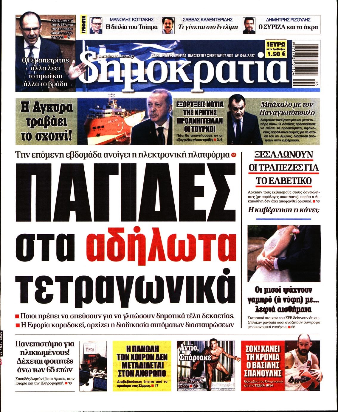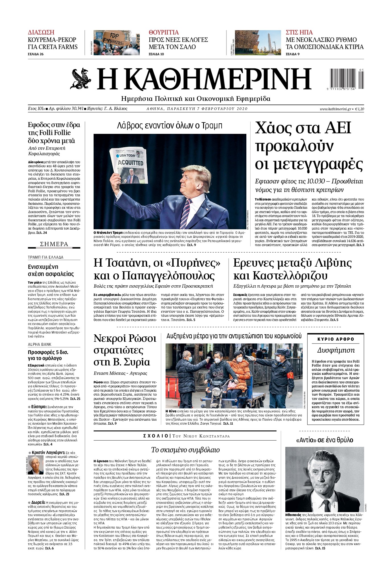 Οι πολιτικές εφημερίδες 7/2/2020 Διονύσης Νίκκας 06:23, Παρασκευή 07 Φεβρουαρίου 2020 Media Διαβάστε τα πρωτοσέλιδα των πολιτικών εφημερίδων… ΠΟΛΙΤΙΚΕΣ ΕΦΗΜΕΡΙΔΕΣ ΠΡΩΤΟΣΕΛΙΔΑ Μοιράσου το: σχολίασε κι εσύ (0 σχόλια) Ακολουθήστε το enikos.gr στο Google News και μάθετε πρώτοι όλες τις ειδήσεις Δείτε όλες τις τελευταίες ειδήσεις από την Ελλάδα και τον Κόσμο στο enikos.gr Ειδήσεις Ροή Ειδήσεων 1 ώρα πριν Χριστούγεννα στα μπλόκα: Επιμένουν στις κινητοποιήσεις τους οι αγρότες – Ανοίγουν τα διόδια το Σαββατοκύριακο 2 ώρες πριν Ουκρανία: Η άνευ προηγουμένου επίθεση σε ρωσικό τάνκερ στη Μεσόγειο και το μήνυμα προς στον Πούτιν – Το «μακρύ χέρι» του Κιέβου 1 ώρα πριν Πούτιν: Τα μηνύματα σε Ευρώπη και ΝΑΤΟ από το μαραθώνιο «σόου» του – Η απαίτηση για «σεβασμό» και η ειρήνη «με τους όρους» της Μόσχας 2 ώρες πριν Τραμπ: Δεν αποκλείει την πιθανότητα ενός πολέμου στη Βενεζουέλα – «Ο Μαδούρο ξέρει καλύτερα από τον καθένα τι ακριβώς θέλω» 3 ώρες πριν Συνεχίζει να προκαλεί ο Μίτσκοσκι: «Για μένα το όνομα Μακεδονία είναι ιερό» 1 ώρα πριν Ανακαλύφθηκαν αρχαία χρυσά νομίσματα 2.200 ετών που απεικονίζουν τον θεό Απόλλωνα – Η άγνωστη σύνδεση με τον Φίλιππο Β΄ της Μακεδονίας 2 ώρες πριν Ύπνος: Μια κρυφή κατάσταση του εγκεφάλου πριν από τον ύπνο μπορεί να είναι το “κλειδί” για υψηλή ευφυΐα και δημιουργικότητα 3 ώρες πριν Αριθμολογία: Οι άνθρωποι που έχουν γεννηθεί αυτές τις 4 ημερομηνίες, συχνά παρεξηγούνται – «Η καλοσύνη τους κρύβει τεράστια δύναμη» 4 ώρες πριν Ξεχάστε το καθάρισμα το Σαββατοκύριακο: Ο «κανόνας των 20 λεπτών» που θα σας λύσει τα χέρια 5 λεπτά πριν Πόλεμος στην Ουκρανία: Εφτά νεκροί από ρωσική πυραυλική επίθεση στο λιμάνι της Οδησσού 9 λεπτά πριν ΗΠΑ: Η κυβέρνηση του Ντόναλντ Τραμπ άρχισε να δημοσιοποιεί τα αρχεία Έπσταϊν 21 λεπτά πριν Σάμος: Άνοιξε το μπλόκο των αγροτών στον κόμβο Κοκκαρίου – Σε νέα συνεδρίαση θα καθορίσουν την στάση τους 29 λεπτά πριν Άνω Λιόσια: Πυροβολισμοί σε επιχείρηση με χαλιά – Εντοπίστηκαν 10 κάλυκες 36 λεπτά πριν Γάζα: Ισραηλινό πλήγμα σε σχολείο που είχαν καταφύγει εκτοπισμένοι – Τουλάχιστον έξι νεκροί ENIKOS NETWORK Το ΕΚΑΒ τιμήθηκε από την Ακαδημία Αθηνών για τα 40 χρόνια προσφοράς του Έχετε πραγματικά μεγάλη καρδιά; 10 χαρακτηριστικά όσων έχουν καλοσύνη Αναστολή μέτρων αναγκαστικής εκτέλεσης για κτηνοτρόφους που πλήττονται από την ευλογιά των αιγοπροβάτων Πλήρης επάρκεια προϊόντων στις λαϊκές της Αττικής, παρά τις αγροτικές κινητοποιήσεις – Τι απαντούν οι πωλητές Χαρτογραφώντας το «σημείο χωρίς επιστροφή»: Για πρώτη φορά αποκαλύπτεται με λεπτομέρεια το ακανθώδες όριο της ατμόσφαιρας τ... Η Google καταργεί τη λειτουργία «dark web report» – Πώς θα μπορούν οι χρήστες να διαγράφουν τα δεδομένα τους περισσότερα 22:42 , Παρασκευή 19 Δεκεμβρίου 2025 Γιώργος Γιαννόπουλος για “Το σόι σου”: “Είναι ευτυχία και ευλογία αυτή η σειρά” «Είναι ευτυχία και ευλογία η συγκυρία αυτής της σειράς», θα πει ο Γιώργος Γιαννόπουλος -ο αγαπ... 20:37 , Παρασκευή 19 Δεκεμβρίου 2025 Don’t Forget The Lyrics: Η Έλλη Κοκκίνου υποδέχεται 4 παίκτες που θα κάνουν τα πάντα για να μη χάσουν ούτε… μισή λέξη από τους στίχους Το «Don’t Forget The Lyrics» επιστρέφει απόψε, Παρασκευή 19 Δεκεμβρίου, στις 21:00 με νέο επει... 19:31 , Παρασκευή 19 Δεκεμβρίου 2025 GNTM: Απόψε ο μεγάλος τελικός για τους 4 φιναλίστ Έπειτα από μήνες γεμάτους μόδα, δημιουργία και έντονες αναμετρήσεις, το GNTM 2025 κορυφώνεται,... 18:11 , Παρασκευή 19 Δεκεμβρίου 2025 Το σόι σου: 