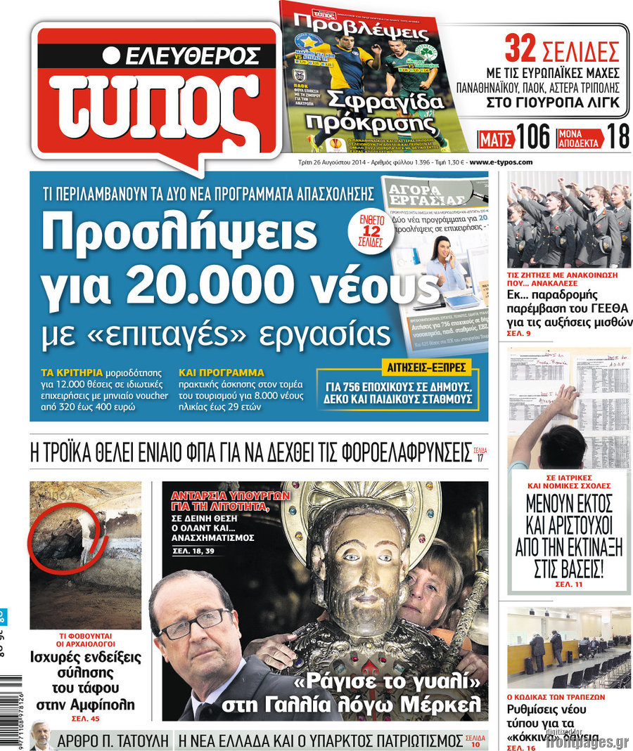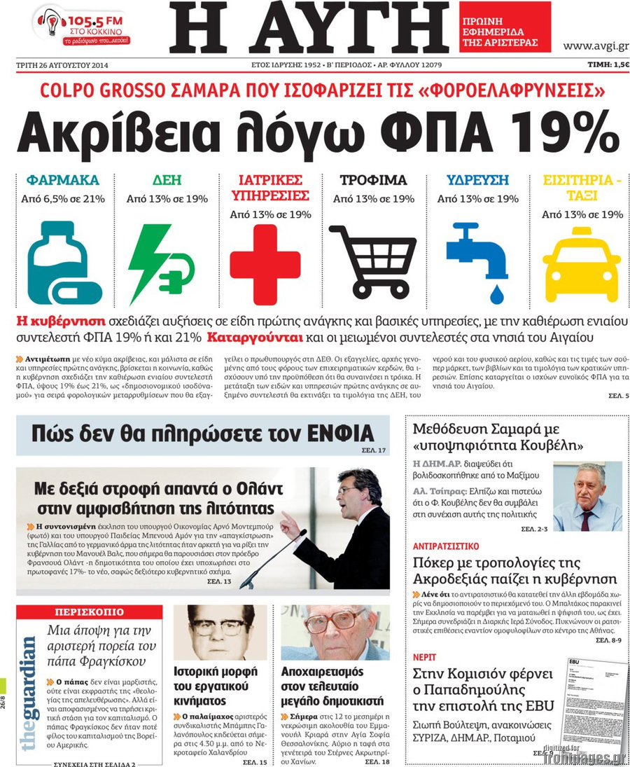 Οι πολιτικές εφημερίδες Enikos Newsroom 07:52, Τρίτη 26 Αυγούστου 2014 Media Οι πολιτικές εφημερίδες Διαβάστε τα πρωτοσέλιδα των πολιτικών εφημερίδων: ΕΦΗΜΕΡΙΔΕΣ ΠΟΛΙΤΙΚΕΣ ΕΦΗΜΕΡΙΔΕΣ ΠΡΩΤΟΣΕΛΙΔΑ Μοιράσου το: σχολίασε κι εσύ (0 σχόλια) Ακολουθήστε το enikos.gr στο Google News και μάθετε πρώτοι όλες τις ειδήσεις Δείτε όλες τις τελευταίες ειδήσεις από την Ελλάδα και τον Κόσμο στο enikos.gr Ειδήσεις Ροή Ειδήσεων 4 ώρες πριν Πώς δρούσε το κύκλωμα που διακινούσε ναρκωτικά σε σχολεία – Υπέβαλαν σε βασανιστήρια όσους δεν τηρούσαν τους «κανόνες πειθαρχίας» 5 ώρες πριν Αγρότες: Γιορτές στα μπλόκα με ανοιχτά διόδια – Δικογραφία στα Ιωάννινα για το σήκωμα των μπαρών 4 ώρες πριν Ζελένσκι: Οι Αμερικανοί πρότειναν συνάντηση Ουκρανίας, ΗΠΑ, Ρωσίας στο Μαϊάμι 3 ώρες πριν Τραμπ: Πώς περνάει τις γιορτές των Χριστουγέννων – Τα δώρα που κάνει στα εγγόνια του 3 ώρες πριν Μικαέλα Μπέντχαους: Ο πρώτος άνθρωπος σε αναπηρικό αμαξίδιο που ταξίδεψε στο διάστημα – ΒΙΝΤΕΟ 5 ώρες πριν Η τύχη χαμογελά σε 3 ζώδια έως τις 28 Δεκεμβρίου – «Προσέξτε τις επιλογές σας και η επιμονή σας θα ανταμειφθεί» 6 ώρες πριν Μία ανεκμετάλλευτη πηγή θα μπορούσε να προσφέρει ανεξάντλητη ενέργεια – Οι επιστήμονες ίσως γνωρίζουν πώς να την ξεκλειδώσουν 2 ώρες πριν Μήπως οι γιορτές σας δεν είναι τόσο τέλειες; 7 χριστουγεννιάτικες συνήθειες που μαρτυρούν ότι μια οικογένεια είναι δυσλειτουργική 12 ώρες πριν Enerwave: Το νέο «ρεύμα» στη λιανική ενέργειας που αλλάζει την εμπειρία του καταναλωτή 3 λεπτά πριν Ζελένσκι: Μόνο οι ΗΠΑ μπορούν να πιέσουν τη Ρωσία να βάλει τέλος στον πόλεμο 7 λεπτά πριν Αριθμολογία: Ο αριθμός του φύλακα αγγέλου σας, με βάση τον μήνα γέννησής σας – «Έτσι σας στέλνει σημάδια το σύμπαν» 15 λεπτά πριν Φοινικούντα: Προφυλακιστέος ο 30χρονος για συνέργεια στη διπλή δολοφονία – Και άλλα πρόσωπα στο «μικροσκόπιο» 26 λεπτά πριν Super League: Ο Σιαμπάνης «κατέβασε ρολά» και ο Βόλος νίκησε 1-0 τον Παναιτωλικό 36 λεπτά πριν Αυτή την Κυριακή με τη Realnews: Instyle, μαζί Drive και Realnews Geopolitics ENIKOS NETWORK Οι γυναίκες αποκαλύπτουν το πιο ελκυστικό πράγμα που μπορεί να κάνει ένας άνδρας Ομορφιά και αντιγήρανση: Ειδικοί μιλούν για συσκευές περιποίησης του δέρματος Πορτοκαλί τιμολόγια ρεύματος: Τα σημεία που πρέπει να προσέξουν οι καταναλωτές – Πότε θα εφαρμοστούν Θεοδωρικάκος: Εθνική στρατηγική για τους ημιαγωγούς – Πρώτο βήμα η χρηματοδότηση του πρώτου Κέντρου Ικανοτήτων, με 3,63 εκα... Χαρτογραφώντας το «σημείο χωρίς επιστροφή»: Για πρώτη φορά αποκαλύπτεται με λεπτομέρεια το ακανθώδες όριο της ατμόσφαιρας τ... Η Google καταργεί τη λειτουργία «dark web report» – Πώς θα μπορούν οι χρήστες να διαγράφουν τα δεδομένα τους περισσότερα 20:30 , Σάββατο 20 Δεκεμβρίου 2025 Αυτή την Κυριακή με τη Realnews: Instyle, μαζί Drive και Realnews Geopolitics Αυτή την Κυριακή με τη Realnews: Instyle, μαζί Drive και Realnews Geopolitics Instyle Η Άννα Ρ... 20:28 , Σάββατο 20 Δεκεμβρίου 2025 Ο ΑΝΤ1 γεμίζει τις γιορτές με μουσική – Ποιους καλλιτέχνες θα απολαύσουμε Φέτος στον ΑΝΤ1 γιορτάζουμε τις νύχτες μας παρέα με αγαπημένους καλλιτέχνες και μεγάλες μουσι... 18:19 , Σάββατο 20 Δεκεμβρίου 2025 HOTΕΛ ΕΛVIRA: Η Ελβίρα μαθαίνει πως ο Χάρι μένει κρυφά στο ξενοδοχείο του Παντελή Συνεχίζονται οι εκλογές για πρόεδρο, στο νέο επεισόδιο της κωμικής σειράς του MEGA, HOTΕΛ ΕΛVI... 14:04 , Σάββατο 20 Δεκεμβρίου 2025 Η Realnews αυτής της Κυριακής (21/12/2025) Με τίτλο: «Ασπίδα προστασίας για την Ελλάδα» κυκλοφορεί, αυτήν την Κυριακή, η Realnews. Σημαντ... ΤΕΛΕΥΤΑΙΕΣ ΕΙΔΗΣΕΙΣ 7 λε