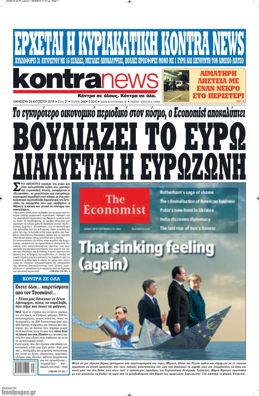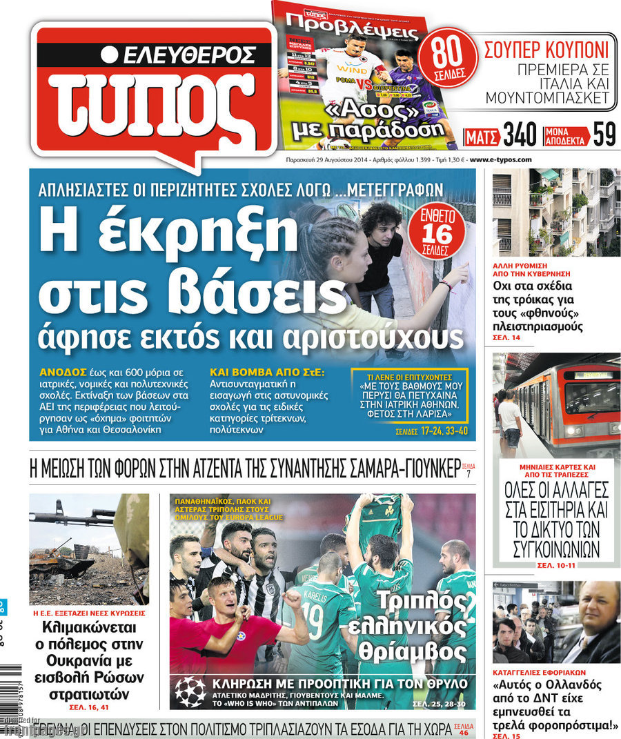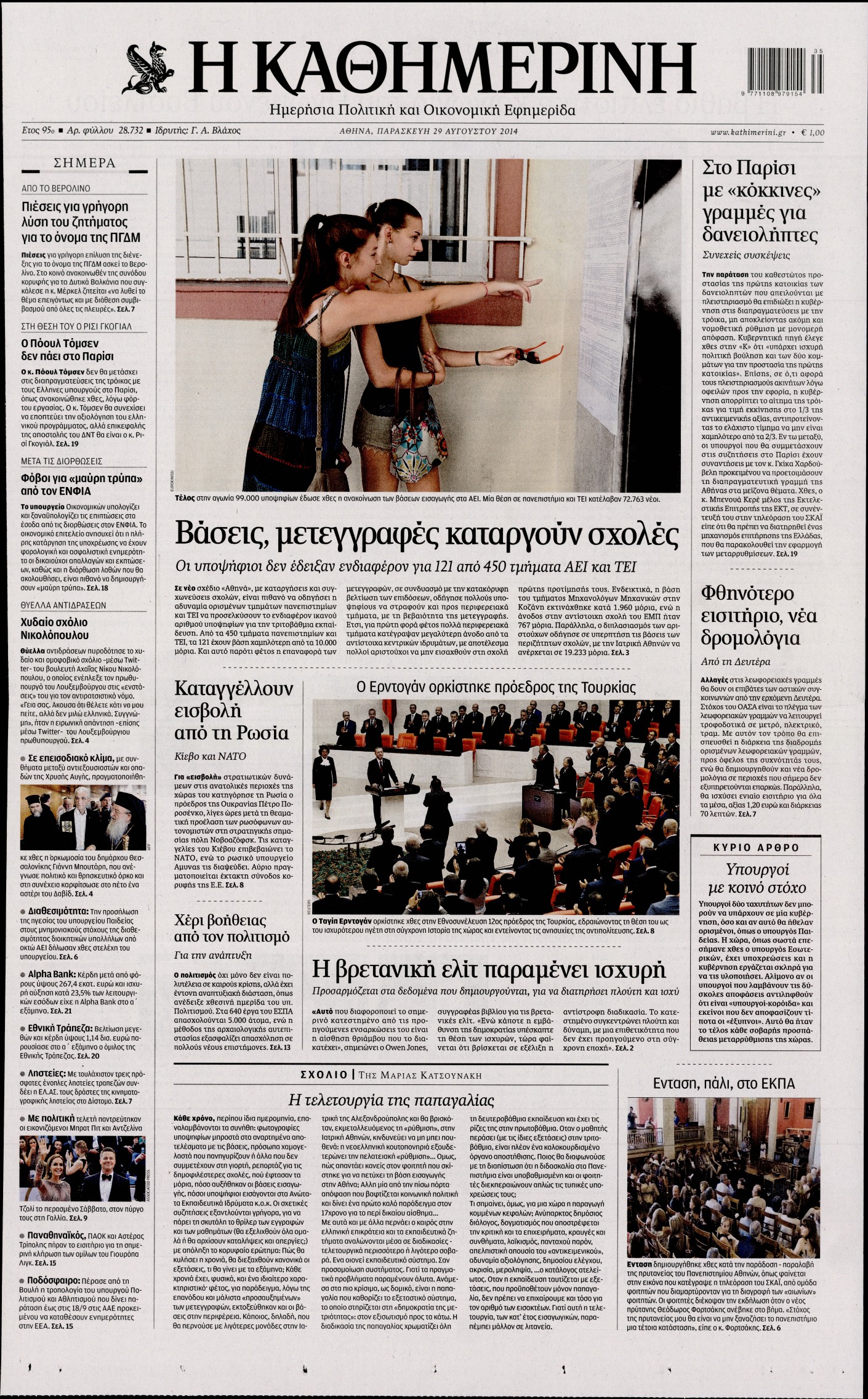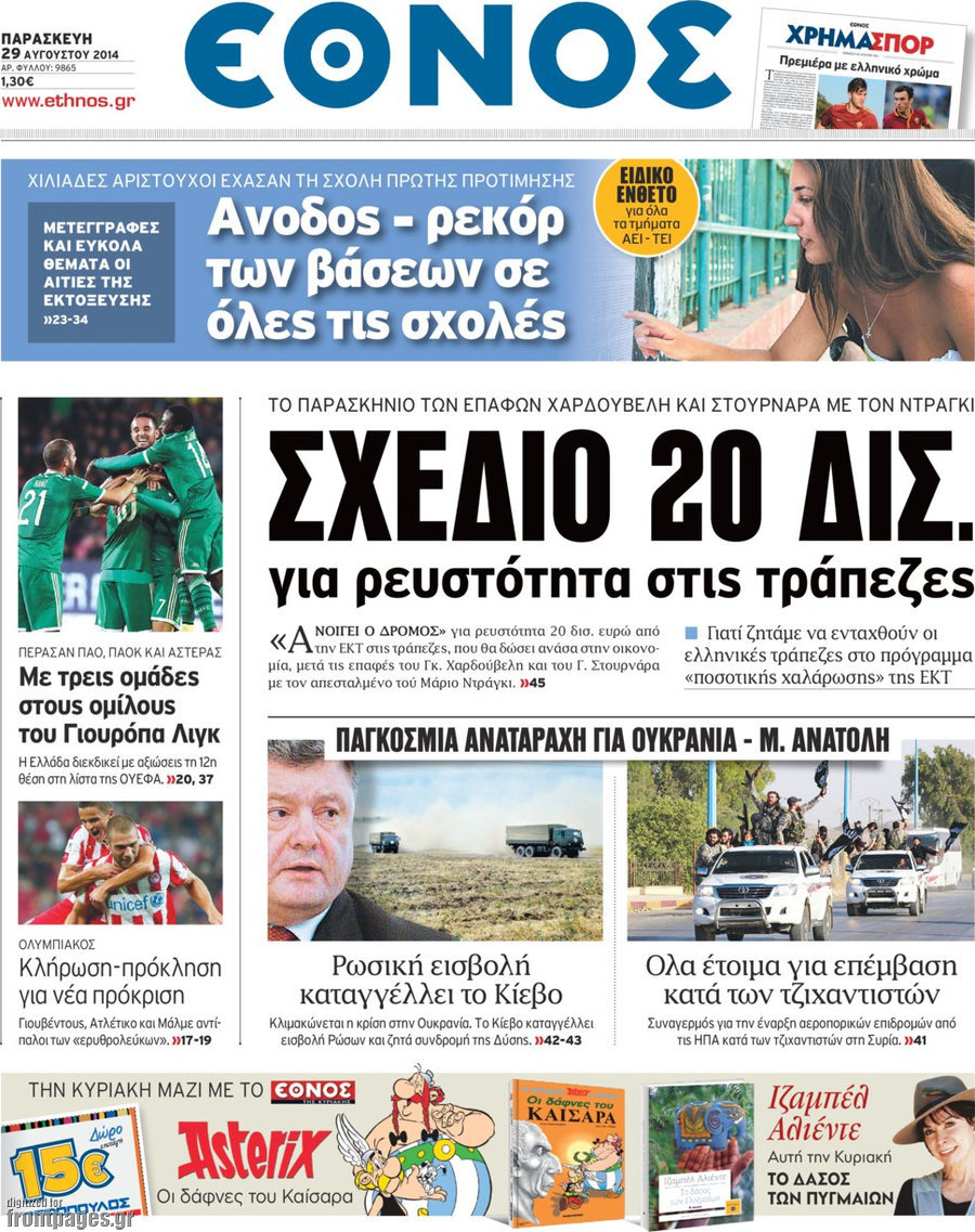 Οι πολιτικές εφημερίδες Enikos Newsroom 08:15, Παρασκευή 29 Αυγούστου 2014 Media Οι πολιτικές εφημερίδες Διαβάστε τα πρωτοσέλιδα των πολιτικών εφημερίδων: ΕΦΗΜΕΡΙΔΕΣ ΠΟΛΙΤΙΚΕΣ ΕΦΗΜΕΡΙΔΕΣ ΠΡΩΤΟΣΕΛΙΔΑ Μοιράσου το: σχολίασε κι εσύ (0 σχόλια) Ακολουθήστε το enikos.gr στο Google News και μάθετε πρώτοι όλες τις ειδήσεις Δείτε όλες τις τελευταίες ειδήσεις από την Ελλάδα και τον Κόσμο στο enikos.gr Ειδήσεις Ροή Ειδήσεων 3 ώρες πριν Χριστούγεννα στα μπλόκα οι αγρότες: Άνοιξαν στα διόδια και μοίρασαν προϊόντα στους πολίτες – Νέα σύσκεψη την Κυριακή στη Νίκαια 4 ώρες πριν Κύκλωμα διακίνησης ναρκωτικών σε σχολεία: Τηλεφωνούσαν στους ανηλίκους την ώρα του μαθήματος – Οι διάλογοι-σοκ, τα «ψευδώνυμα» και τα βασανιστήρια 3 ώρες πριν Αρχεία Επστάιν: Οι 500 σελίδες που λείπουν, τα αναπάντητα ερωτήματα και οι επώνυμοι – Τι έπεται 5 ώρες πριν Ζελένσκι: Μόνο οι ΗΠΑ και ο Τραμπ μπορούν να πιέσουν τη Ρωσία να βάλει τέλος στον πόλεμο 5 ώρες πριν Φοινικούντα: Προφυλακιστέος ο 30χρονος για συνέργεια στη διπλή δολοφονία – Και άλλα πρόσωπα στο «μικροσκόπιο» 3 ώρες πριν Αποκαλύφθηκε το άγνωστο «GPS» της αρχαιότητας – Πώς οι ναοί «φώτιζαν» τον δρόμο των ναυτικών πριν από την εφεύρεση των φάρων 4 ώρες πριν Ύπνος: Η διατροφή που μπορεί να σας βοηθήσει να κοιμάστε καλύτερα και να ζήσετε περισσότερο 5 ώρες πριν Αριθμολογία: Ο αριθμός του φύλακα αγγέλου σας, με βάση τον μήνα γέννησής σας – «Έτσι σας στέλνει σημάδια το σύμπαν» 17 ώρες πριν Enerwave: Το νέο «ρεύμα» στη λιανική ενέργειας που αλλάζει την εμπειρία του καταναλωτή 25 λεπτά πριν Σεισμός 3,8 Ρίχτερ ανοιχτά της Αμοργού 40 λεπτά πριν Άννα Βίσση: Τα… Social Media «προσκύνησαν» την «απόλυτη» για την συναυλία της στο Καλλιμάρμαρο που προβλήθηκε από το Mega 55 λεπτά πριν Φωτεινή Αθερίδου: «Προσπαθώ να είμαι κάθετη και αυστηρή σαν μαμά πια» 1 ώρα πριν ΗΠΑ, Αίγυπτος, Κατάρ και Τουρκία συζήτησαν τη δεύτερη φάση του ειρηνευτικού σχεδίου για τη Γάζα 1 ώρα πριν Γιάννης Αντετοκούνμπο: Έμεινε στην 6η θέση της ψηφοφορίας του ESPN για το βραβείο του MVP του NBA ENIKOS NETWORK Οι γυναίκες αποκαλύπτουν το πιο ελκυστικό πράγμα που μπορεί να κάνει ένας άνδρας Ομορφιά και αντιγήρανση: Ειδικοί μιλούν για συσκευές περιποίησης του δέρματος «Πολεμική» προετοιμασία από την ευρωπαϊκή βιομηχανία ενέργειας – Η Eurelectric ζητεί «ομπρέλα» προστασίας για τις υποδομές Ακύρωση ΑΦΜ για απάτες – Ποιους βάζει στο στόχαστρο η ΑΑΔΕ Χαρτογραφώντας το «σημείο χωρίς επιστροφή»: Για πρώτη φορά αποκαλύπτεται με λεπτομέρεια το ακανθώδες όριο της ατμόσφαιρας τ... Η Google καταργεί τη λειτουργία «dark web report» – Πώς θα μπορούν οι χρήστες να διαγράφουν τα δεδομένα τους περισσότερα 01:30 , Κυριακή 21 Δεκεμβρίου 2025 Άννα Βίσση: Τα… Social Media «προσκύνησαν» την «απόλυτη» για την συναυλία της στο Καλλιμάρμαρο που προβλήθηκε από το Mega Την ημέρα των γενεθλίων της Άννας Βίσση, το MEGA τίμησε τη διαχρονική παρουσία της «απόλυτης Ε... 00:00 , Κυριακή 21 Δεκεμβρίου 2025 The Voice: Η επιστροφή της Έλενας Παπαρίζου και η ατάκα του Γιώργου Μαζωνάκη μετά τις καταγγελίες Στη φάση των Cross Battles Live μπήκε το The Voice, με την Έλενα Παπαρίζου να επιστρέφει στο π... 20:30 , Σάββατο 20 Δεκεμβρίου 2025 Αυτή την Κυριακή με τη Realnews: Instyle, μαζί Drive και Realnews Geopolitics Αυτή την Κυριακή με τη Realnews: Instyle, μαζί Drive και Realnews Geopolitics Instyle Η Άννα Ρ... 20:28 , Σάββατο 20 Δεκεμβρίου 2025 Ο ΑΝΤ1 γεμίζει τις γιορτές με μουσική – Ποιους καλλιτέχνες θα απολαύσουμε Φέτος στον ΑΝΤ1 γιορτάζουμε τις νύχτες μας παρέα με αγαπ