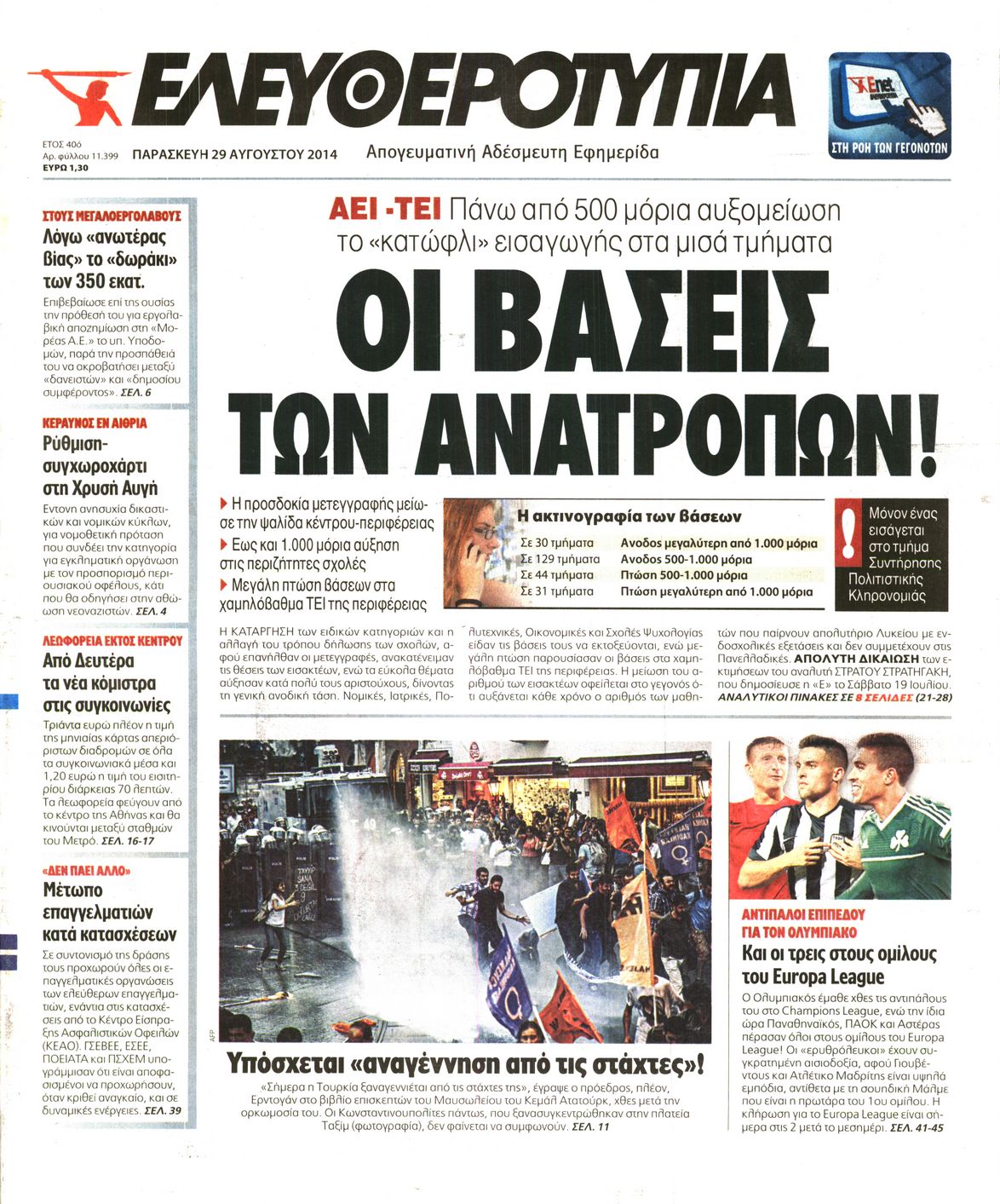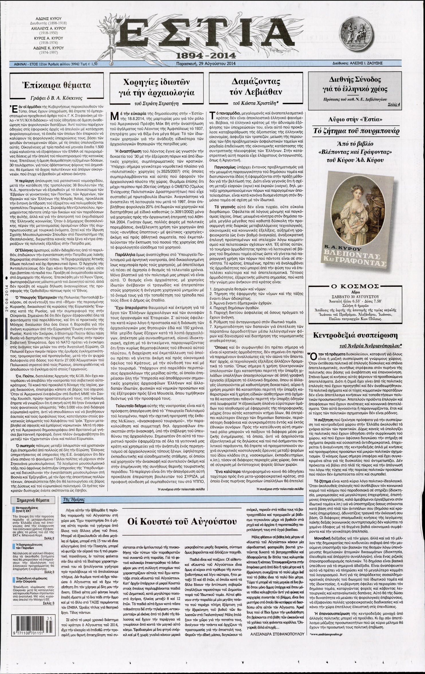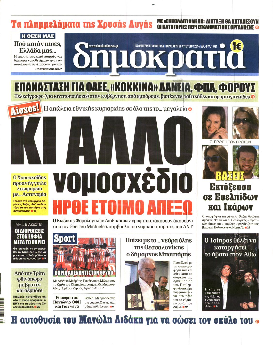Οι πολιτικές εφημερίδες Enikos Newsroom 08:15, Παρασκευή 29 Αυγούστου 2014 Media Οι πολιτικές εφημερίδες Διαβάστε τα πρωτοσέλιδα των πολιτικών εφημερίδων: ΕΦΗΜΕΡΙΔΕΣ ΠΟΛΙΤΙΚΕΣ ΕΦΗΜΕΡΙΔΕΣ ΠΡΩΤΟΣΕΛΙΔΑ Μοιράσου το: σχολίασε κι εσύ (0 σχόλια) Ακολουθήστε το enikos.gr στο Google News και μάθετε πρώτοι όλες τις ειδήσεις Δείτε όλες τις τελευταίες ειδήσεις από την Ελλάδα και τον Κόσμο στο enikos.gr Ειδήσεις Ροή Ειδήσεων 3 ώρες πριν Χριστούγεννα στα μπλόκα οι αγρότες: Άνοιξαν στα διόδια και μοίρασαν προϊόντα στους πολίτες – Νέα σύσκεψη την Κυριακή στη Νίκαια 4 ώρες πριν Κύκλωμα διακίνησης ναρκωτικών σε σχολεία: Τηλεφωνούσαν στους ανηλίκους την ώρα του μαθήματος – Οι διάλογοι-σοκ, τα «ψευδώνυμα» και τα βασανιστήρια 3 ώρες πριν Αρχεία Επστάιν: Οι 500 σελίδες που λείπουν, τα αναπάντητα ερωτήματα και οι επώνυμοι – Τι έπεται 5 ώρες πριν Ζελένσκι: Μόνο οι ΗΠΑ και ο Τραμπ μπορούν να πιέσουν τη Ρωσία να βάλει τέλος στον πόλεμο 5 ώρες πριν Φοινικούντα: Προφυλακιστέος ο 30χρονος για συνέργεια στη διπλή δολοφονία – Και άλλα πρόσωπα στο «μικροσκόπιο» 3 ώρες πριν Αποκαλύφθηκε το άγνωστο «GPS» της αρχαιότητας – Πώς οι ναοί «φώτιζαν» τον δρόμο των ναυτικών πριν από την εφεύρεση των φάρων 4 ώρες πριν Ύπνος: Η διατροφή που μπορεί να σας βοηθήσει να κοιμάστε καλύτερα και να ζήσετε περισσότερο 5 ώρες πριν Αριθμολογία: Ο αριθμός του φύλακα αγγέλου σας, με βάση τον μήνα γέννησής σας – «Έτσι σας στέλνει σημάδια το σύμπαν» 17 ώρες πριν Enerwave: Το νέο «ρεύμα» στη λιανική ενέργειας που αλλάζει την εμπειρία του καταναλωτή 25 λεπτά πριν Σεισμός 3,8 Ρίχτερ ανοιχτά της Αμοργού 40 λεπτά πριν Άννα Βίσση: Τα… Social Media «προσκύνησαν» την «απόλυτη» για την συναυλία της στο Καλλιμάρμαρο που προβλήθηκε από το Mega 55 λεπτά πριν Φωτεινή Αθερίδου: «Προσπαθώ να είμαι κάθετη και αυστηρή σαν μαμά πια» 1 ώρα πριν ΗΠΑ, Αίγυπτος, Κατάρ και Τουρκία συζήτησαν τη δεύτερη φάση του ειρηνευτικού σχεδίου για τη Γάζα 1 ώρα πριν Γιάννης Αντετοκούνμπο: Έμεινε στην 6η θέση της ψηφοφορίας του ESPN για το βραβείο του MVP του NBA ENIKOS NETWORK Οι γυναίκες αποκαλύπτουν το πιο ελκυστικό πράγμα που μπορεί να κάνει ένας άνδρας Ομορφιά και αντιγήρανση: Ειδικοί μιλούν για συσκευές περιποίησης του δέρματος «Πολεμική» προετοιμασία από την ευρωπαϊκή βιομηχανία ενέργειας – Η Eurelectric ζητεί «ομπρέλα» προστασίας για τις υποδομές Ακύρωση ΑΦΜ για απάτες – Ποιους βάζει στο στόχαστρο η ΑΑΔΕ Χαρτογραφώντας το «σημείο χωρίς επιστροφή»: Για πρώτη φορά αποκαλύπτεται με λεπτομέρεια το ακανθώδες όριο της ατμόσφαιρας τ... Η Google καταργεί τη λειτουργία «dark web report» – Πώς θα μπορούν οι χρήστες να διαγράφουν τα δεδομένα τους περισσότερα 01:30 , Κυριακή 21 Δεκεμβρίου 2025 Άννα Βίσση: Τα… Social Media «προσκύνησαν» την «απόλυτη» για την συναυλία της στο Καλλιμάρμαρο που προβλήθηκε από το Mega Την ημέρα των γενεθλίων της Άννας Βίσση, το MEGA τίμησε τη διαχρονική παρουσία της «απόλυτης Ε... 00:00 , Κυριακή 21 Δεκεμβρίου 2025 The Voice: Η επιστροφή της Έλενας Παπαρίζου και η ατάκα του Γιώργου Μαζωνάκη μετά τις καταγγελίες Στη φάση των Cross Battles Live μπήκε το The Voice, με την Έλενα Παπαρίζου να επιστρέφει στο π... 20:30 , Σάββατο 20 Δεκεμβρίου 2025 Αυτή την Κυριακή με τη Realnews: Instyle, μαζί Drive και Realnews Geopolitics Αυτή την Κυριακή με τη Realnews: Instyle, μαζί Drive και Realnews Geopolitics Instyle Η Άννα Ρ... 20:28 , Σάββατο 20 Δεκεμβρίου 2025 Ο ΑΝΤ1 γεμίζει τις γιορτές με μουσική – Ποιους καλλιτέχνες θα απολαύσουμε Φέτος στον ΑΝΤ1 γιορτάζουμε τις νύχτες μας παρέα με αγαπ