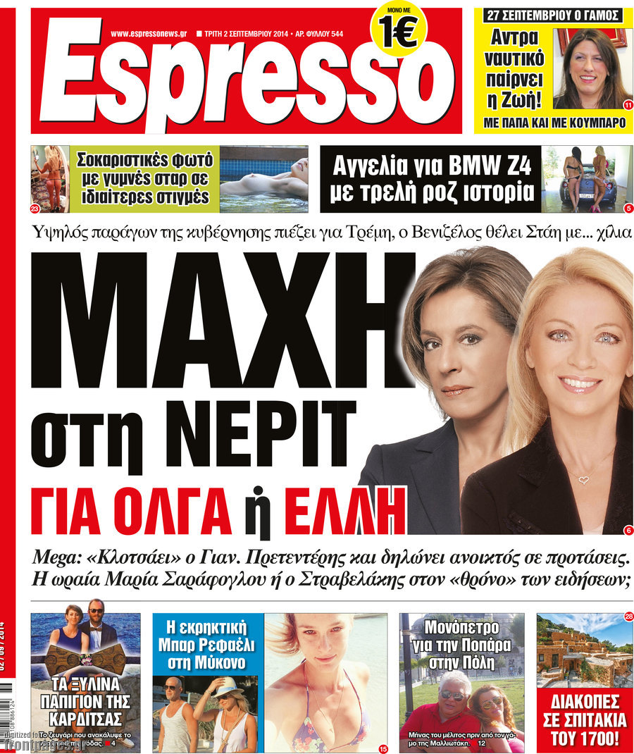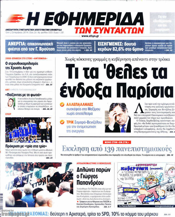 Οι πολιτικές εφημερίδες Enikos Newsroom 07:57, Τρίτη 02 Σεπτεμβρίου 2014 Media Οι πολιτικές εφημερίδες Διαβάστε τα πρωτοσέλιδα των πολιτικών εφημερίδων: ΕΦΗΜΕΡΙΔΕΣ ΠΟΛΙΤΙΚΕΣ ΕΦΗΜΕΡΙΔΕΣ ΠΡΩΤΟΣΕΛΙΔΑ Μοιράσου το: σχολίασε κι εσύ (0 σχόλια) Ακολουθήστε το enikos.gr στο Google News και μάθετε πρώτοι όλες τις ειδήσεις Δείτε όλες τις τελευταίες ειδήσεις από την Ελλάδα και τον Κόσμο στο enikos.gr Ειδήσεις Ροή Ειδήσεων 24 λεπτά πριν Καμία «ανακωχή» για τους αγρότες: Γενική συνέλευση σήμερα στο μπλόκο της Νίκαιας – Ο σχεδιασμός για ανοιχτούς δρόμους τα Χριστούγεννα 8 ώρες πριν Ρετζέπ Ταγίπ Ερντογάν: Δεν έχουμε καμία βλέψη στα εδάφη ή την κυριαρχία κανενός – Δεν θα επιτρέψουμε να παραβιαστούν τα δικαιώματά μας 1 ώρα πριν LEGEND: Ο διάδοχος της φρεγάτας Constellation έρχεται από την ακτοφυλακή των ΗΠΑ 44 λεπτά πριν Τζορτζ Κλούνεϊ: Πέθανε η αδελφή του, Άντα Ζάιντλερ – «Η ηρωίδα μου» 10 ώρες πριν Αρχεία Επστάιν: Οι 500 σελίδες που λείπουν, τα αναπάντητα ερωτήματα και οι επώνυμοι – Τι έπεται 2 ώρες πριν Οπτική ψευδαίσθηση: Μόνο το 2% των ανθρώπων θα βρει την πεταλούδα σε 15 δευτερόλεπτα 3 ώρες πριν Μήλο vs μπανάνα: Ποιο φρούτο έχει περισσότερες φυτικές ίνες, σύμφωνα με διαιτολόγους – Τα οφέλη τους για την υγεία 3 ώρες πριν Τα ζώδια σήμερα, Κυριακή 21 Δεκεμβρίου: Αιγόκεροι, αποφασίζετε για το επόμενο κεφάλαιο της ζωής σας 24 ώρες πριν Enerwave: Το νέο «ρεύμα» στη λιανική ενέργειας που αλλάζει την εμπειρία του καταναλωτή 2 λεπτά πριν Γιώργος Γεροντιδάκης: Τα μυαλά μου δεν έπαιρναν αέρα κι όταν πήραν, ήταν για να πάρω το μάθημά μου 11 λεπτά πριν Πρωτοχρονιά 2026: Πόσο θα κοστίσει φέτος η βασιλόπιτα – Οι τιμές σε ζαχαροπλαστεία, φούρνους και σούπερ μάρκετ 19 λεπτά πριν Νότια Αφρική: 10 νεκροί και 10 τραυματίες έπειτα από ένοπλη επίθεση κοντά στο Γιοχάνεσμπουργκ 24 λεπτά πριν Καμία «ανακωχή» για τους αγρότες: Γενική συνέλευση σήμερα στο μπλόκο της Νίκαιας – Ο σχεδιασμός για ανοιχτούς δρόμους τα Χριστούγεννα 26 λεπτά πριν Άγιος έρωτας: Ένας καταστροφικός σεισμός χτυπά τη Στέρνα ENIKOS NETWORK Λίπος στο συκώτι: Τα καλύτερα και τα χειρότερα ροφήματα για το λιπώδες ήπαρ Τεστ προσωπικότητας: Είναι το πρόσωπό σας οβάλ, τετράγωνο, στρογγυλό ή σε σχήμα καρδιάς – Τι σημαίνει; Πρωτοχρονιά 2026: Πόσο θα κοστίσει φέτος η βασιλόπιτα «Πολεμική» προετοιμασία από την ευρωπαϊκή βιομηχανία ενέργειας – Η Eurelectric ζητεί «ομπρέλα» προστασίας για τις υποδομές Χαρτογραφώντας το «σημείο χωρίς επιστροφή»: Για πρώτη φορά αποκαλύπτεται με λεπτομέρεια το ακανθώδες όριο της ατμόσφαιρας τ... Η Google καταργεί τη λειτουργία «dark web report» – Πώς θα μπορούν οι χρήστες να διαγράφουν τα δεδομένα τους περισσότερα 08:13 , Κυριακή 21 Δεκεμβρίου 2025 Άγιος έρωτας: Ένας καταστροφικός σεισμός χτυπά τη Στέρνα Καταιγιστικές είναι οι εξελίξεις στα δυο τελευταία, συγκλονιστικά επεισόδια του 2025 της σειρά... 08:00 , Κυριακή 21 Δεκεμβρίου 2025 Σήμερα με τη Realnews: Ό,τι και αν αγοράσεις, σκανάρεις και κερδίζεις! Σήμερα με τη Realnews: Ό,τι και αν αγοράσεις, σκανάρεις και κερδίζεις! Με το PADU app, το κορυ... 07:00 , Κυριακή 21 Δεκεμβρίου 2025 Σήμερα με τη Realnews: Instyle, μαζί Drive και Realnews Geopolitics Σήμερα με τη Realnews: Instyle, μαζί Drive και Realnews Geopolitics Instyle Η Άννα Ρεζάν, η Ch... 06:55 , Κυριακή 21 Δεκεμβρίου 2025 Η Realnews στο www.pressreader.com Διαβάστε την ψηφιακή έκδοση της εφημερίδας στην οθόνη του κινητού, του tablet και του υπολογισ... ΤΕΛΕΥΤΑΙΕΣ ΕΙΔΗΣΕΙΣ 11 λεπτά πριν Πρωτοχρονιά 2026: Πόσο θα κοστίσει φέτος η βασιλόπιτα... 19 λεπτά πριν Νότια Αφρική: 