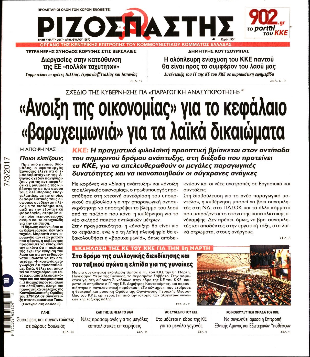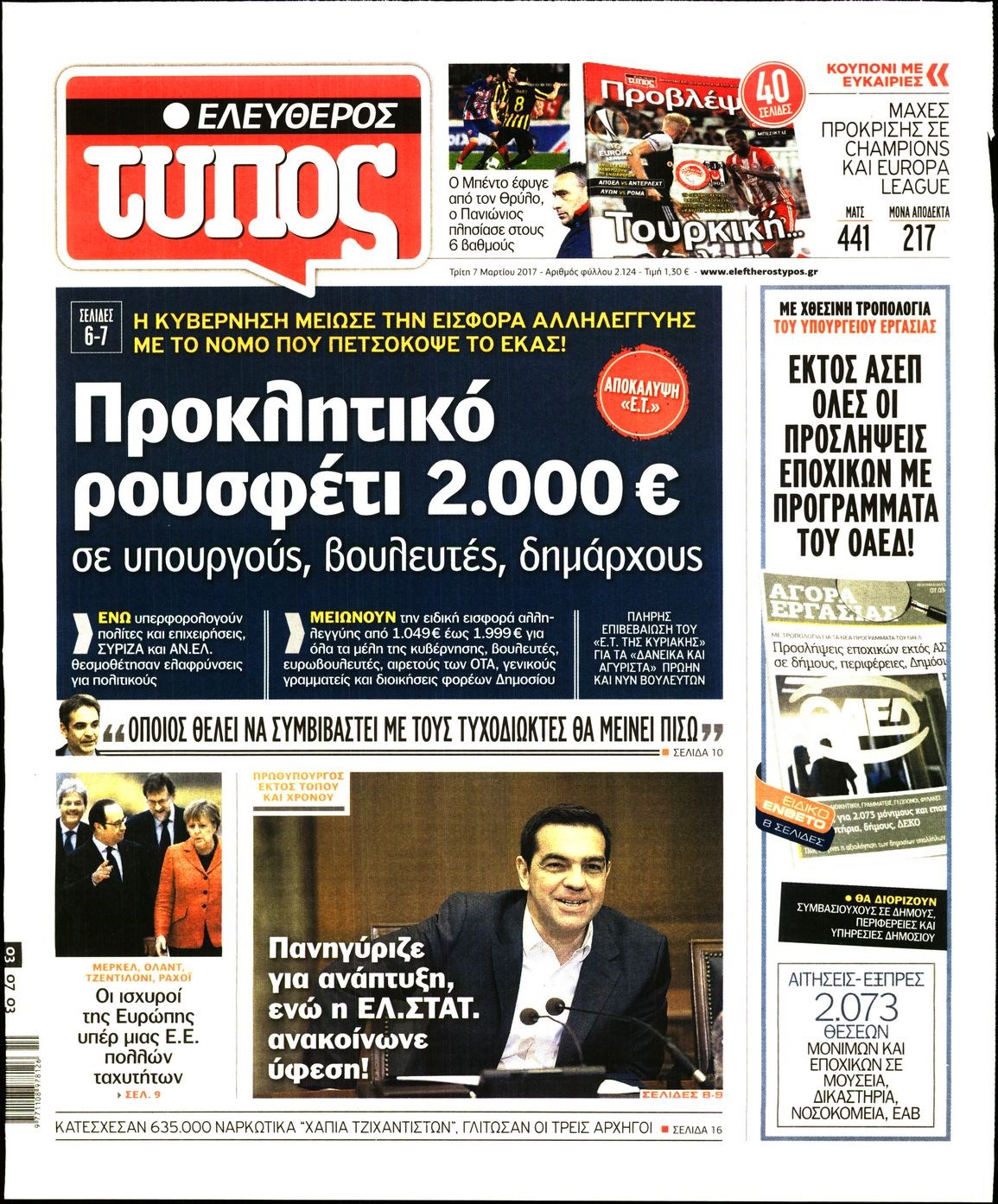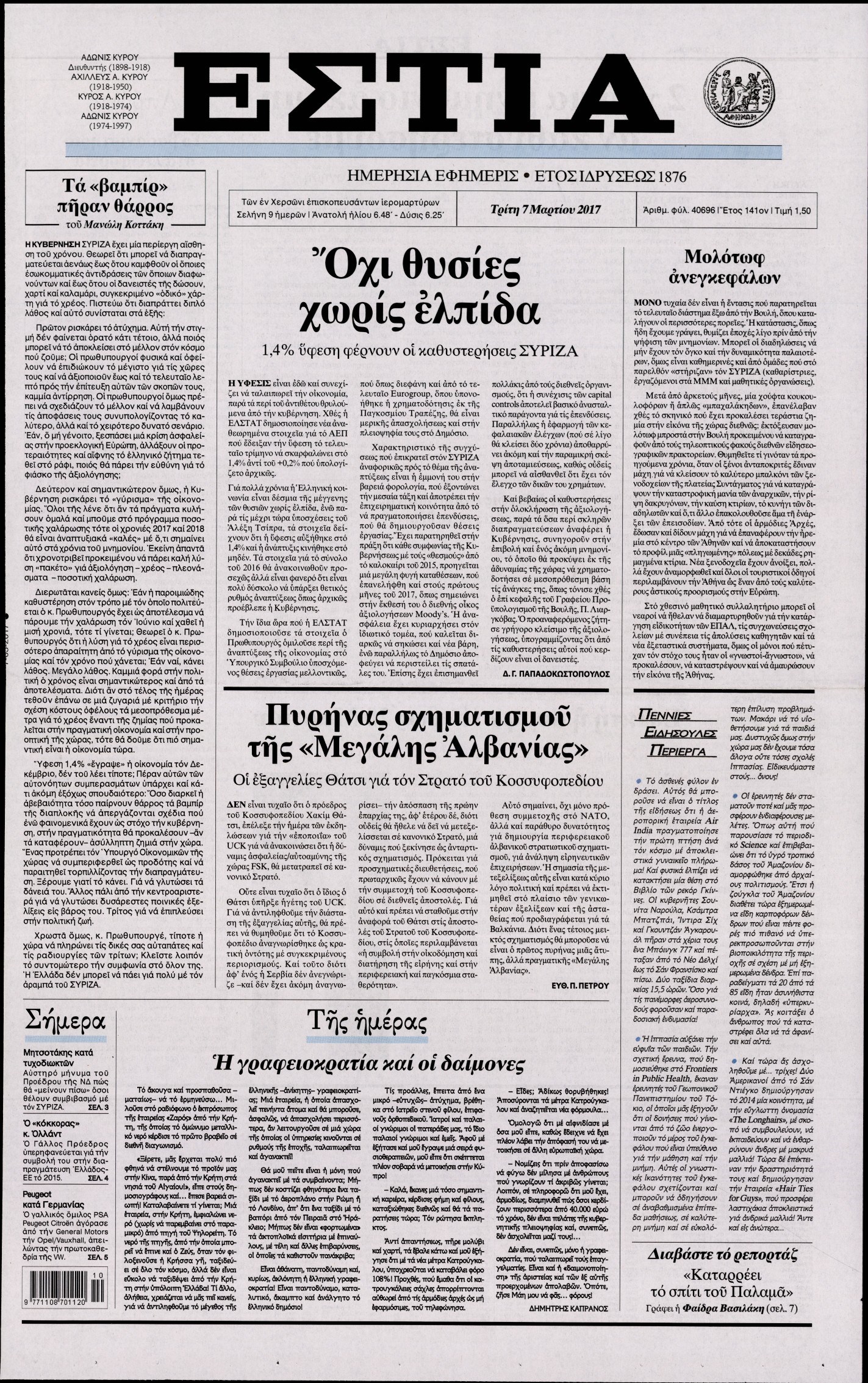 Οι πολιτικές εφημερίδες 7/3/2017 Enikos Newsroom 07:38, Τρίτη 07 Μαρτίου 2017 Media Διαβάστε τα σημερινά πρωτοσέλιδα των πολιτικών εφημερίδων: ΠΟΛΙΤΙΚΕΣ ΕΦΗΜΕΡΙΔΕΣ ΠΡΩΤΟΣΕΛΙΔΑ Μοιράσου το: σχολίασε κι εσύ (0 σχόλια) Ακολουθήστε το enikos.gr στο Google News και μάθετε πρώτοι όλες τις ειδήσεις Δείτε όλες τις τελευταίες ειδήσεις από την Ελλάδα και τον Κόσμο στο enikos.gr Ειδήσεις Ροή Ειδήσεων 1 ώρα πριν Εκτός ευρωομάδας ΣΥΡΙΖΑ ο Νίκος Παππάς μετά την επίθεση στον δημοσιογράφο Νίκο Γιαννόπουλο – Η μήνυση και οι νέες δηλώσεις 2 ώρες πριν «Αγριεύουν» οι αγρότες: «Δεν συντρέχει λόγος συνάντησης με τον πρωθυπουργό» – Ώρα αποφάσεων στη σύσκεψη της Πέμπτης 2 ώρες πριν Κυψέλη: Χωρίς την οικογένειά της δίπλα της απολογήθηκε η 16χρονη – «Της είχε επιτεθεί κάποιος για να την βιάσει, φοβήθηκε και κυκλοφορούσε με μαχαίρι» 1 ώρα πριν Politico: Το πρόβλημα της Ευρώπης δεν είναι το Βέλγιο αλλά ο Ντόναλντ Τραμπ 3 ώρες πριν Αλεξανδρούπολη: Πολυοργανική ανεπάρκεια λόγω υποσιτισμού η αιτία θανάτου του 3χρονου αγοριού 2 ώρες πριν Μυστήριο με τεράστιες κυκλικές πέτρες 200 κιλών – Ανακαλύφθηκαν τυχαία κατά τη διάρκεια οδικών έργων και κανείς δεν ξέρει από πού προέρχονται 3 ώρες πριν Ύπνος: Ειδικός εξηγεί τον πραγματικό λόγο που ξυπνάτε στις 4 τα ξημερώματα – Ο ρόλος των ορμονών και του κιρκάδιου ρυθμού 4 ώρες πριν Αριθμολογία: Οι άνθρωποι που έχουν γεννηθεί αυτές τις 4 ημερομηνίες, είναι τρυφεροί και αγαπούν ανιδιοτελώς 15 ώρες πριν 20 χρόνια τα Χριστούγεννα ξεκινούν στα Public με μεγάλη ποικιλία σε δώρα! 7 λεπτά πριν Βέλγους πολιτικούς και επικεφαλής χρηματοπιστωτικών ιδρυμάτων στοχοποιεί η Μόσχα για τα κατασχεθέντα περιουσιακά στοιχεία 22 λεπτά πριν ΗΠΑ: Αναζητείται δεύτερος ύποπτος για την επίθεση στο πανεπιστήμιο Μπράουν 37 λεπτά πριν Λεωφόρος Αλεξάνδρας: Δεν εντοπίστηκε βόμβα έξω από το κολλέγιο – Προσήχθη άνδρας για το προειδοποιητικό σημείωμα 54 λεπτά πριν Ελένη Κρίτα για το reunion του «Παρά Πέντε»: «Ήταν πραγματικά σαν να μην είχαμε χαθεί ποτέ» 1 ώρα πριν Κύπελλο Ελλάδας: Αυτά είναι τα ζευγάρια στα νοκ-άουτ, οι διασταυρώσεις στους «8» κι ο δρόμος προς τον τελικό ENIKOS NETWORK Αϋπνία: Το κόλπο που θα σας βοηθήσει να κοιμηθείτε απόψε – Είναι απλό και έχει αποτέλεσμα 2,6 εκατομμύρια πολίτες έχουν ήδη εμβολιαστεί κατά της γρίπης ΕΛΣΤΑΤ: Τι δείχνουν τα νέα στοιχεία για τις ηλεκτρονικές παραγγελίες των επιχειρήσεων ΚΕΠΕ: Οι 3 διακριτές συμβολές των ΜμΕ και της μεταποίησης στην ελληνική οικονομία Χαρτογραφώντας το «σημείο χωρίς επιστροφή»: Για πρώτη φορά αποκαλύπτεται με λεπτομέρεια το ακανθώδες όριο της ατμόσφαιρας τ... Η Google καταργεί τη λειτουργία «dark web report» – Πώς θα μπορούν οι χρήστες να διαγράφουν τα δεδομένα τους περισσότερα 22:24 , Τετάρτη 17 Δεκεμβρίου 2025 Το Σπίτι Δίπλα Στο Ποτάμι: Σε κίνδυνο η υγεία του Απόστολου – Τι θα δούμε απόψε “Το Σπίτι Δίπλα στο Ποτάμι” ξετυλίγει το νήμα της ζωής των πέντε αδελφών με καταισ... 21:14 , Τετάρτη 17 Δεκεμβρίου 2025 Παιχνίδια Εκδίκησης: Θα καταφέρει ο Χρήστος να κλονίσει την εμπιστοσύνη της Μάγιας απέναντι στον Άγη; Τα «Παιχνίδια Εκδίκησης» έρχονται απόψε στις 22:30, στον Αντ1, με το τελευταίο επεισόδιο της χ... 20:57 , Τετάρτη 17 Δεκεμβρίου 2025 Άγιος Έρωτας: Η Χλόη καταθέτει εναντίον του πατέρα της και ο Χάρης αποκαλύπτει στον Κλεάνθη ότι δεν είναι ο βιολογικός του πατέρας. Γεμάτο αποκαλύψεις είναι το νέο επεισόδιο της σειράς “Άγιος Έρωτας” απόψε στις 21:... 20:15 , Τετάρτη 17 Δεκεμβρίου 2025