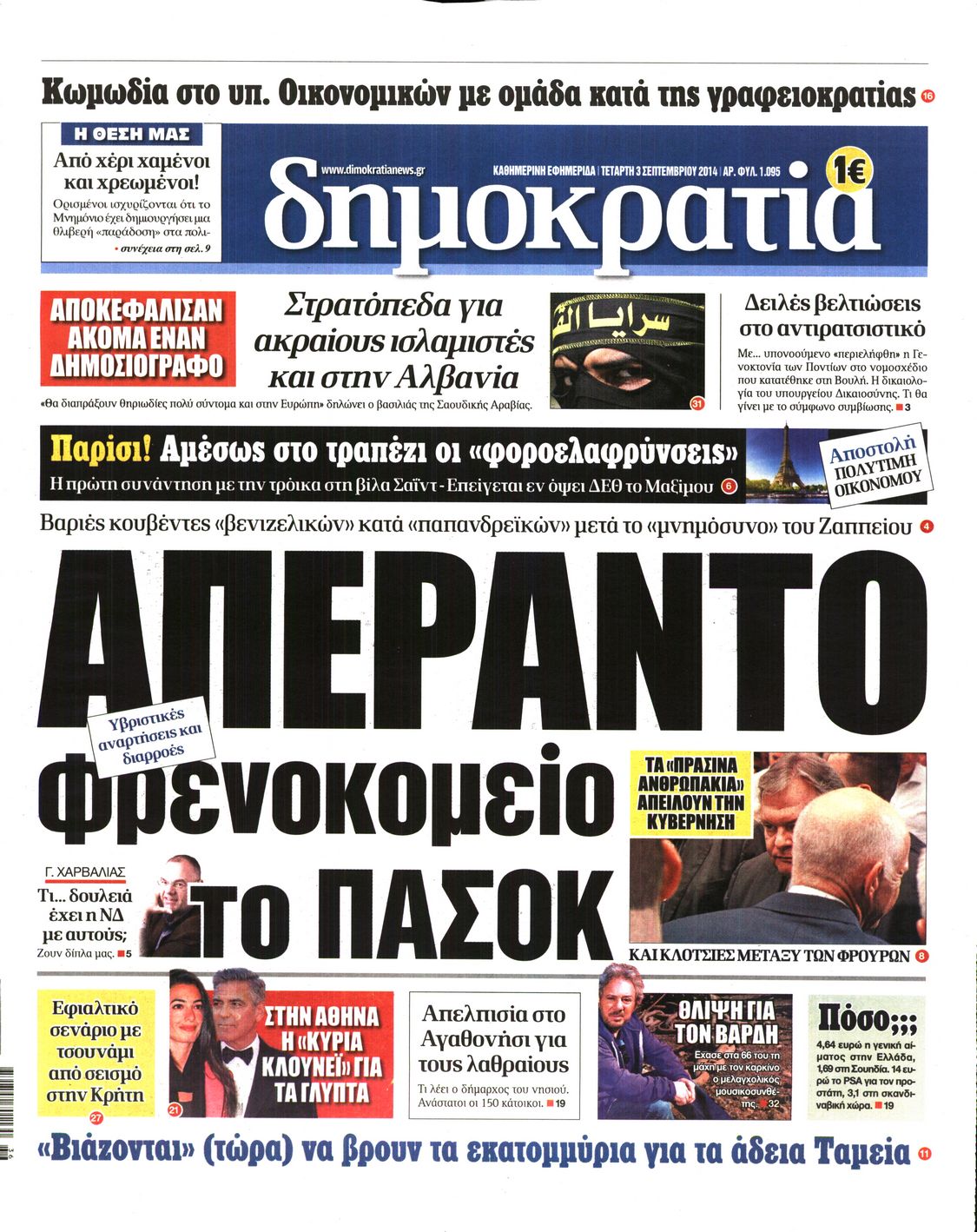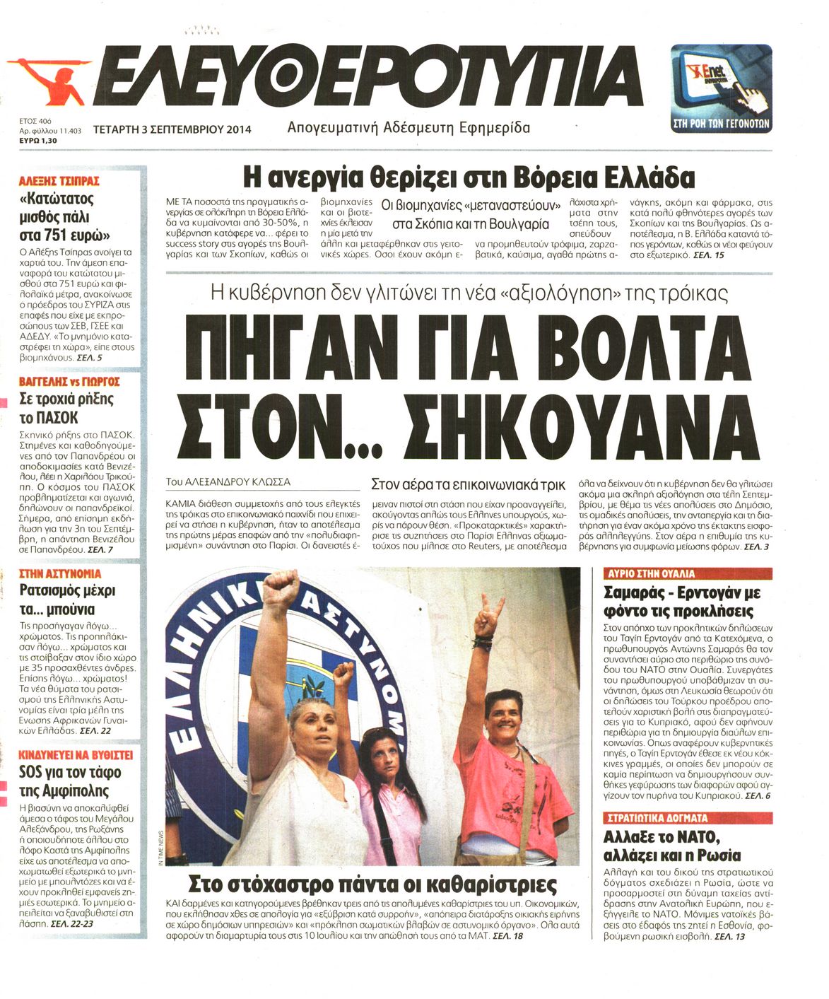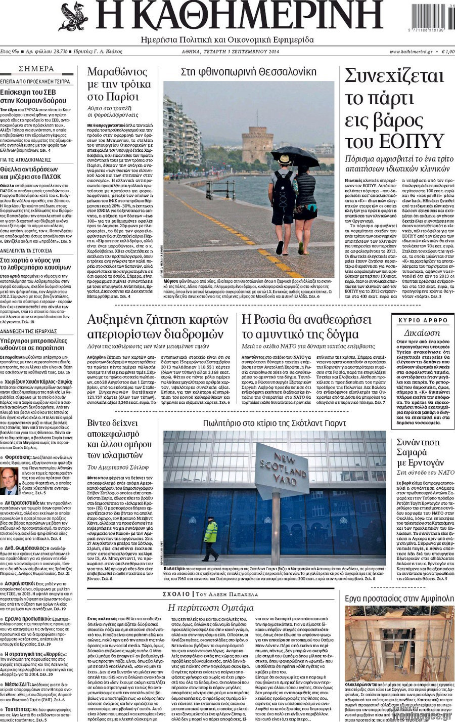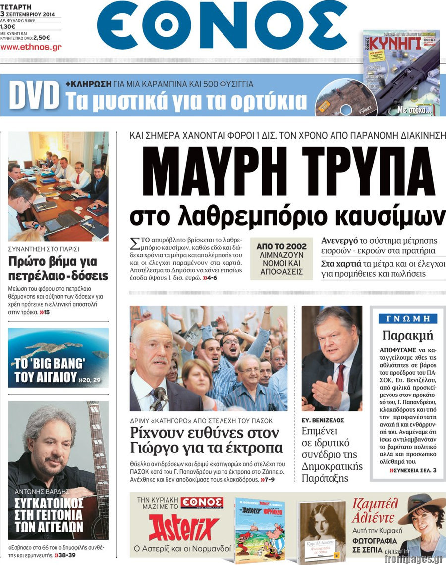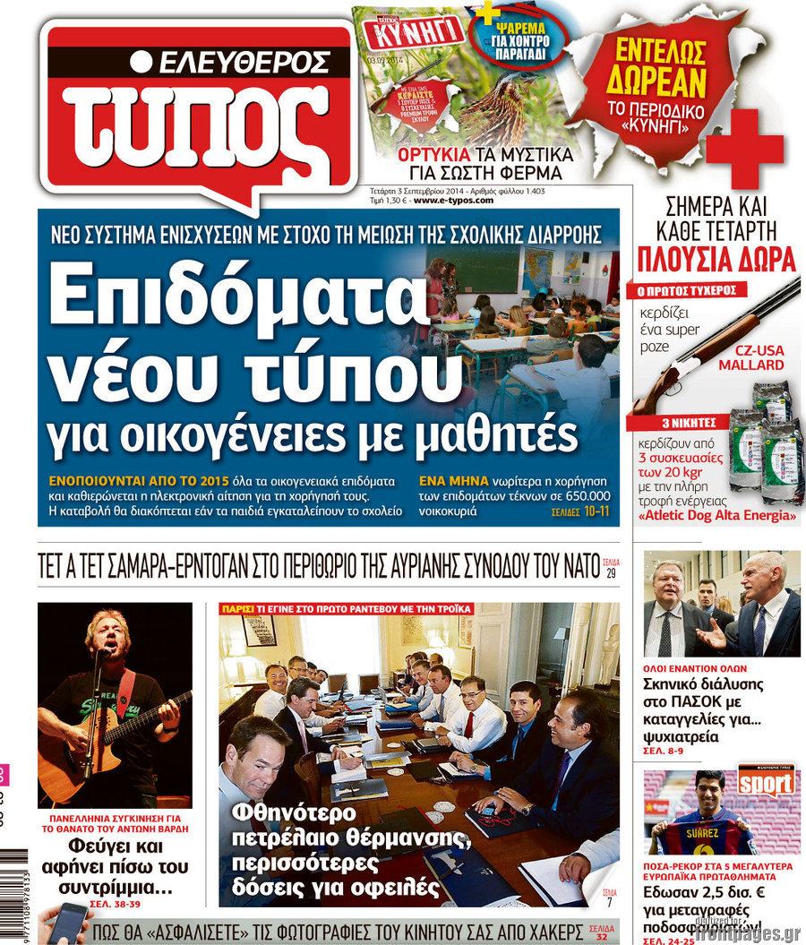 Οι πολιτικές εφημερίδες Enikos Newsroom 08:01, Τετάρτη 03 Σεπτεμβρίου 2014 Media Οι πολιτικές εφημερίδες Διαβάστε τα πρωτοσέλιδα των πολιτικών εφημερίδων: ΕΦΗΜΕΡΙΔΕΣ ΠΟΛΙΤΙΚΕΣ ΕΦΗΜΕΡΙΔΕΣ ΠΡΩΤΟΣΕΛΙΔΑ Μοιράσου το: σχολίασε κι εσύ (0 σχόλια) Ακολουθήστε το enikos.gr στο Google News και μάθετε πρώτοι όλες τις ειδήσεις Δείτε όλες τις τελευταίες ειδήσεις από την Ελλάδα και τον Κόσμο στο enikos.gr Ειδήσεις Ροή Ειδήσεων 2 ώρες πριν Υπόθεση Έπσταϊν: Το Υπουργείο Δικαιοσύνης δημοσιοποίησε μια σειρά από εξαιρετικά επεξεργασμένα αρχεία – «Λείπουν τα πιο σημαντικά έγγραφα», λένε οι Δημοκρατικοί 42 λεπτά πριν Ο «χάρτης» με τις αυξήσεις και τις φοροελαφρύνσεις του 2026 – Ποιοι και πόσα κερδίζουν 11 ώρες πριν Χριστούγεννα στα μπλόκα: Επιμένουν στις κινητοποιήσεις τους οι αγρότες – Ανοίγουν τα διόδια το Σαββατοκύριακο 2 ώρες πριν ΟΝΕΧ – MEGATUGS: Ξεκίνησε η ναυπήγηση ρυμουλκών στην Ελλάδα – Προθάλαμος πολεμικών πλοίων – Δείτε φωτογραφίες και βίντεο 2 ώρες πριν Καιρός: Αλλαγή σκηνικού σήμερα με βροχές και πτώση της θερμοκρασίας – Οι προβλέψεις των μετεωρολόγων για τα Χριστούγεννα 3 ώρες πριν Αυγά: Πόσα μπορείτε να τρώτε την ημέρα με ασφάλεια για μέγιστη πρόσληψη πρωτεΐνης 4 ώρες πριν Τα ζώδια σήμερα, Σάββατο 20 Δεκεμβρίου: Παρθένοι, το σύμπαν σας δίνει το κλειδί 3 ώρες πριν Οπτική ψευδαίσθηση: Μόνο αν είσαι ο Σέρλοκ Χολμς θα βρεις τον αριθμό «87» σε 7 δευτερόλεπτα 1 ώρα πριν Αρχαιολόγοι ανακάλυψαν σε χωράφι απεικόνιση 600 ετών ενός Αγίου – Τα στοιχεία που δείχνουν ότι μαρτύρησε 5 λεπτά πριν Ουκρανία: Drones έπληξαν εξέδρα πετρελαίου και πολεμικό πλοίο της Ρωσίας στην Κασπία 14 λεπτά πριν Παιδική υπέρταση: Μια σιωπηλή απειλή που αυξάνεται διεθνώς 14 λεπτά πριν Αγχώνεται για το χριστουγεννιάτικο δώρο που πήρε στην πλούσια σύντροφό του – «Φοβάμαι πως θα το βρει φθηνιάρικο, φοράει βραχιόλια Cartier» 21 λεπτά πριν Enerwave: Το νέο «ρεύμα» στη λιανική ενέργειας που αλλάζει την εμπειρία του καταναλωτή 26 λεπτά πριν Γιώργος Μαζωνάκης: Τη Δευτέρα η μήνυση του τραγουδιστή κατά του 22χρονου ENIKOS NETWORK Πόσα κιλά παίρνουμε πραγματικά τα Χριστούγεννα, σύμφωνα με την επιστήμη – Πώς να το αποτρέψουμε; Το δημοφιλές ρόφημα που αυξάνει την πίεση πιο γρήγορα και από το αλάτι Mega χριστουγεννιάτικη φορολοταρία: «Κλείδωσε» η ημερομηνία για την κλήρωση – Ερωτήσεις και απαντήσεις Αναστολή μέτρων αναγκαστικής εκτέλεσης για κτηνοτρόφους που πλήττονται από την ευλογιά των αιγοπροβάτων Χαρτογραφώντας το «σημείο χωρίς επιστροφή»: Για πρώτη φορά αποκαλύπτεται με λεπτομέρεια το ακανθώδες όριο της ατμόσφαιρας τ... Η Google καταργεί τη λειτουργία «dark web report» – Πώς θα μπορούν οι χρήστες να διαγράφουν τα δεδομένα τους περισσότερα 08:14 , Σάββατο 20 Δεκεμβρίου 2025 Τρομεροί γονείς: Η Μαρία Καβογιάννη εισβάλλει στο σπίτι της οικογένειας Στεφανίδη Όσα θα δούμε στο νέο διπλό επεισόδιο της σειράς «Τρομεροί γονείς», σήμερα Σάββατο 20 Δεκεμβρίο... 05:48 , Σάββατο 20 Δεκεμβρίου 2025 Οι οικονομικές εφημερίδες 20/12/2025 Διαβάστε τα πρωτοσέλιδα από τις οικονομικές εφημερίδες, σήμερα 20/12/2025. 05:43 , Σάββατο 20 Δεκεμβρίου 2025 Οι αθλητικές εφημερίδες 20/12/2025 Διαβάστε τα πρωτοσέλιδα από τις αθλητικές εφημερίδες, σήμερα 20/12/2025. 05:38 , Σάββατο 20 Δεκεμβρίου 2025 Οι πολιτικές εφημερίδες 20/12/2025 Διαβάστε τα πρωτοσέλιδα από τις πολιτικές εφημερίδες, σήμερα 20/12/2025. ΤΕΛΕΥΤΑΙΕΣ ΕΙΔΗΣΕΙΣ 5 λεπτά πριν Ουκρανία: Drones έπληξαν εξέδρα πετρελαίου και πολεμικό... 14 λεπτά πριν Παιδική υπέρταση: Μι