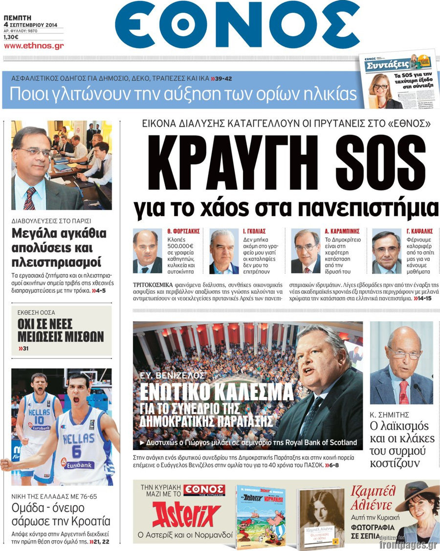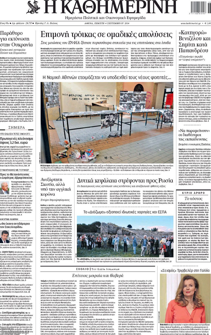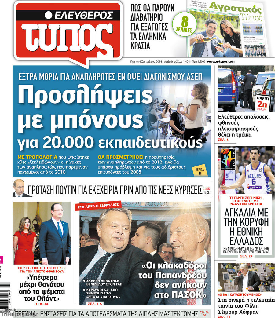 Οι πολιτικές εφημερίδες Enikos Newsroom 08:03, Πέμπτη 04 Σεπτεμβρίου 2014 Media Οι πολιτικές εφημερίδες Διαβάστε τα πρωτοσέλιδα των πολιτικών εφημερίδων: ΕΦΗΜΕΡΙΔΕΣ ΠΟΛΙΤΙΚΕΣ ΕΦΗΜΕΡΙΔΕΣ ΠΡΩΤΟΣΕΛΙΔΑ Μοιράσου το: σχολίασε κι εσύ (0 σχόλια) Ακολουθήστε το enikos.gr στο Google News και μάθετε πρώτοι όλες τις ειδήσεις Δείτε όλες τις τελευταίες ειδήσεις από την Ελλάδα και τον Κόσμο στο enikos.gr Ειδήσεις Ροή Ειδήσεων 45 λεπτά πριν Υπόθεση Έπσταϊν: Το Υπουργείο Δικαιοσύνης δημοσιοποίησε μια σειρά από εξαιρετικά επεξεργασμένα αρχεία – «Λείπουν τα πιο σημαντικά έγγραφα», λένε οι Δημοκρατικοί 2 ώρες πριν Σαρωτικοί οι έλεγχοι στους δρόμους ενόψει εορτών – Μπλόκα της τροχαίας σε κεντρικές αρτηρίες της Αττικής 56 λεπτά πριν ΟΝΕΧ – MEGATUGS: Ξεκίνησε η ναυπήγηση ρυμουλκών στην Ελλάδα – Προθάλαμος πολεμικών πλοίων – Δείτε φωτογραφίες και βίντεο 48 λεπτά πριν Καιρός: Αλλαγή σκηνικού σήμερα με βροχές και πτώση της θερμοκρασίας – Οι προβλέψεις των μετεωρολόγων για τα Χριστούγεννα 10 ώρες πριν Χριστούγεννα στα μπλόκα: Επιμένουν στις κινητοποιήσεις τους οι αγρότες – Ανοίγουν τα διόδια το Σαββατοκύριακο 3 ώρες πριν Αυγά: Πόσα μπορείτε να τρώτε την ημέρα με ασφάλεια για μέγιστη πρόσληψη πρωτεΐνης 3 ώρες πριν Τα ζώδια σήμερα, Σάββατο 20 Δεκεμβρίου: Παρθένοι, το σύμπαν σας δίνει το κλειδί 2 ώρες πριν Οπτική ψευδαίσθηση: Μόνο αν είσαι ο Σέρλοκ Χολμς θα βρεις τον αριθμό «87» σε 7 δευτερόλεπτα 25 λεπτά πριν Αρχαιολόγοι ανακάλυψαν σε χωράφι απεικόνιση 600 ετών ενός Αγίου – Τα στοιχεία που δείχνουν ότι μαρτύρησε 2 λεπτά πριν Η τέλεια συνταγή για cookies με κομμάτια σοκολάτας 10 λεπτά πριν MyHealth App: Τα στοιχεία για τον Προσωπικό Βοηθό Υγείας Πολίτη – Τι ερωτήματα έγιναν μέσα σε 7 ημέρες 18 λεπτά πριν Τρομεροί γονείς: Η Μαρία Καβογιάννη εισβάλλει στο σπίτι της οικογένειας Στεφανίδη 25 λεπτά πριν Αρχαιολόγοι ανακάλυψαν σε χωράφι απεικόνιση 600 ετών ενός Αγίου – Τα στοιχεία που δείχνουν ότι μαρτύρησε 33 λεπτά πριν Mega χριστουγεννιάτικη φορολοταρία: «Κλείδωσε» η ημερομηνία για την κλήρωση – Ερωτήσεις και απαντήσεις ENIKOS NETWORK Το τεστ των 10 δευτερολέπτων που μπορεί να προβλέψει το προσδόκιμο ζωής σας – Τι λέει ειδικός του Cleveland Επιλέξτε καρέκλα για να μάθετε ποια είναι τα κρυφά χαρακτηριστικά σας – Τι αποκάλυψε για εσάς αυτό το τεστ προσωπικότητας; Mega χριστουγεννιάτικη φορολοταρία: «Κλείδωσε» η ημερομηνία για την κλήρωση – Ερωτήσεις και απαντήσεις Αναστολή μέτρων αναγκαστικής εκτέλεσης για κτηνοτρόφους που πλήττονται από την ευλογιά των αιγοπροβάτων Χαρτογραφώντας το «σημείο χωρίς επιστροφή»: Για πρώτη φορά αποκαλύπτεται με λεπτομέρεια το ακανθώδες όριο της ατμόσφαιρας τ... Η Google καταργεί τη λειτουργία «dark web report» – Πώς θα μπορούν οι χρήστες να διαγράφουν τα δεδομένα τους περισσότερα 08:14 , Σάββατο 20 Δεκεμβρίου 2025 Τρομεροί γονείς: Η Μαρία Καβογιάννη εισβάλλει στο σπίτι της οικογένειας Στεφανίδη Όσα θα δούμε στο νέο διπλό επεισόδιο της σειράς «Τρομεροί γονείς», σήμερα Σάββατο 20 Δεκεμβρίο... 05:48 , Σάββατο 20 Δεκεμβρίου 2025 Οι οικονομικές εφημερίδες 20/12/2025 Διαβάστε τα πρωτοσέλιδα από τις οικονομικές εφημερίδες, σήμερα 20/12/2025. 05:43 , Σάββατο 20 Δεκεμβρίου 2025 Οι αθλητικές εφημερίδες 20/12/2025 Διαβάστε τα πρωτοσέλιδα από τις αθλητικές εφημερίδες, σήμερα 20/12/2025. 05:38 , Σάββατο 20 Δεκεμβρίου 2025 Οι πολιτικές εφημερίδες 20/12/2025 Διαβάστε τα πρωτοσέλιδα από τις πολιτικές εφημερίδες, σήμερα 20/12/2025. ΤΕΛΕΥΤΑΙΕΣ ΕΙΔΗΣΕΙΣ 10 λεπτά πριν MyHe