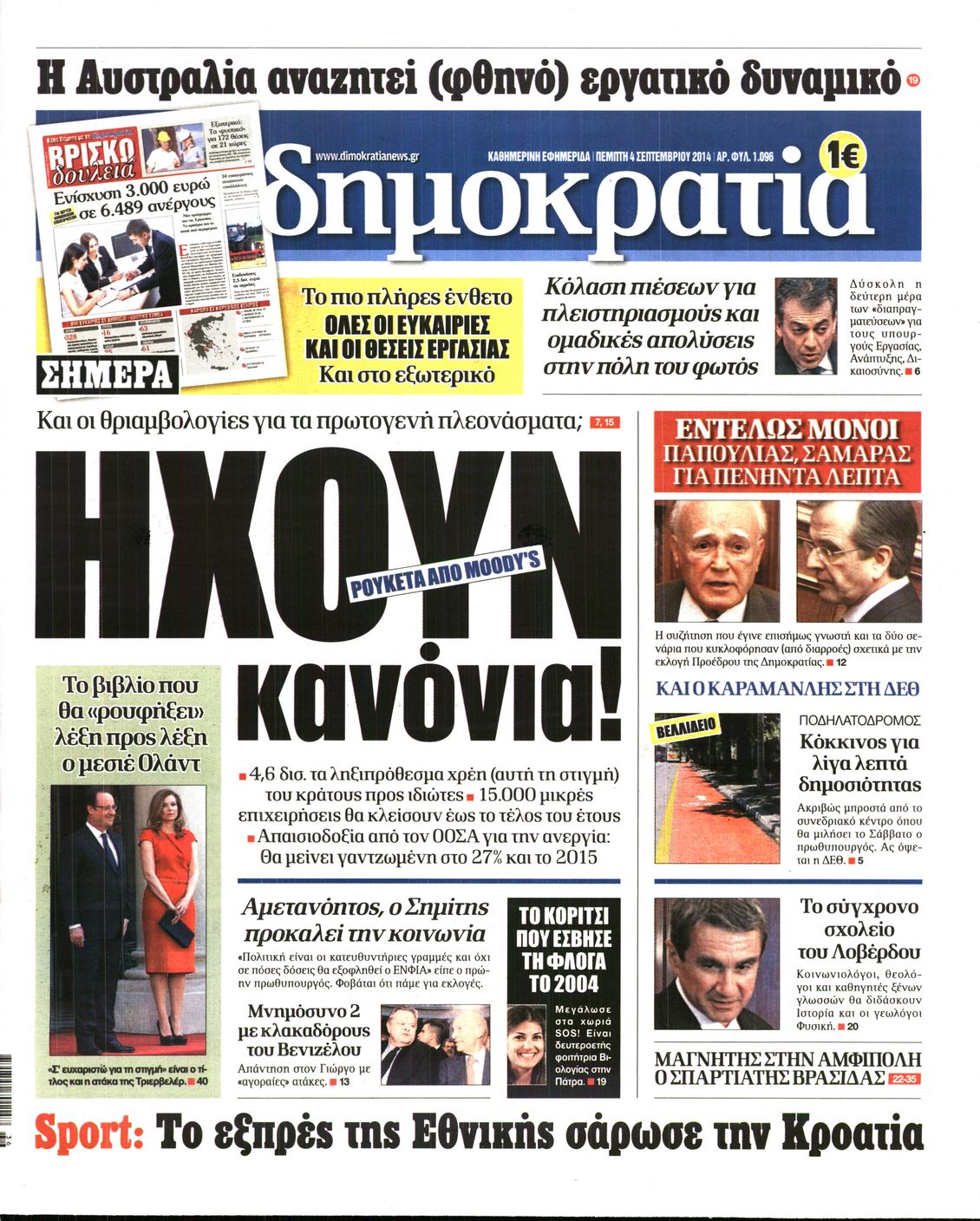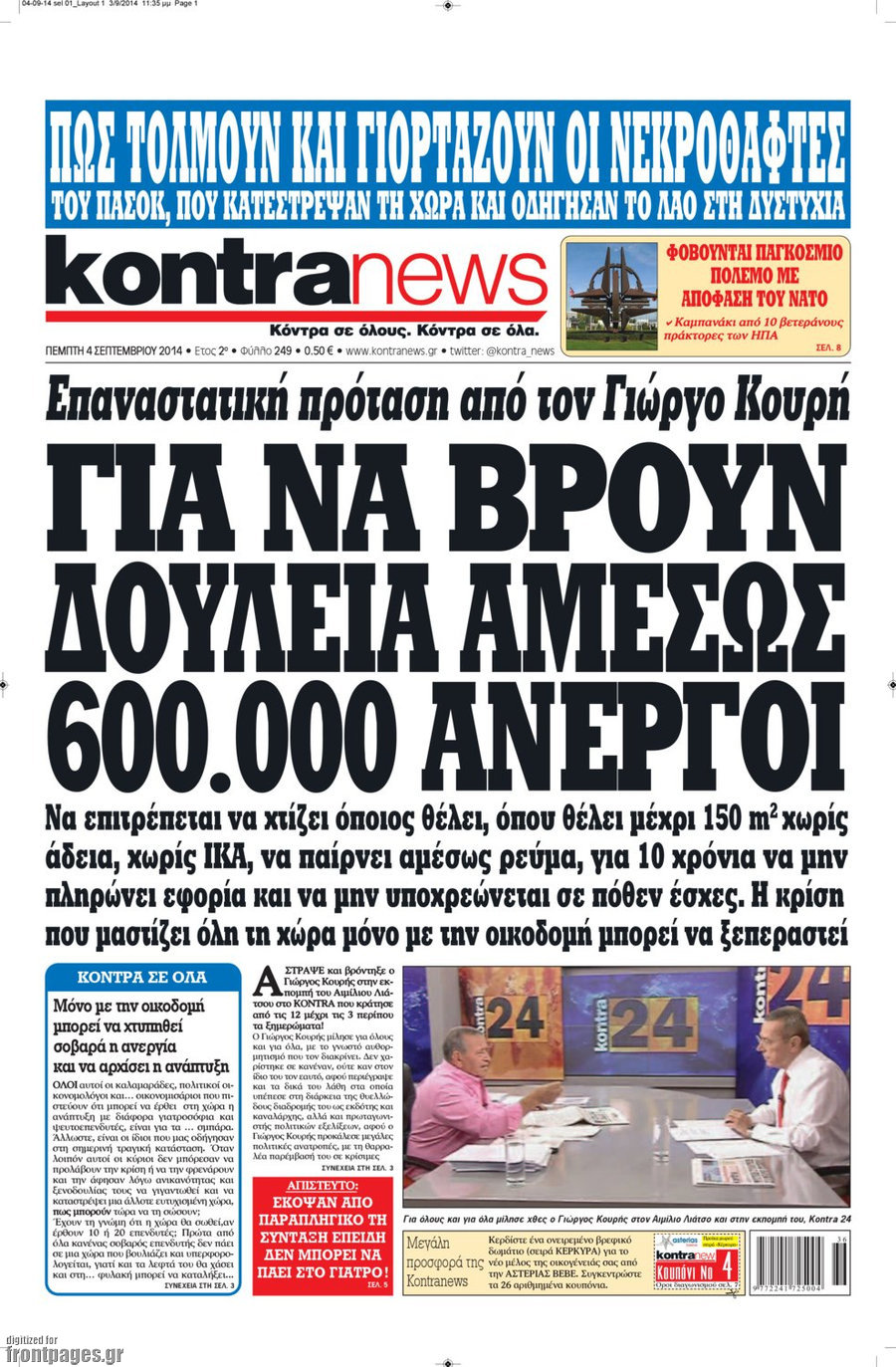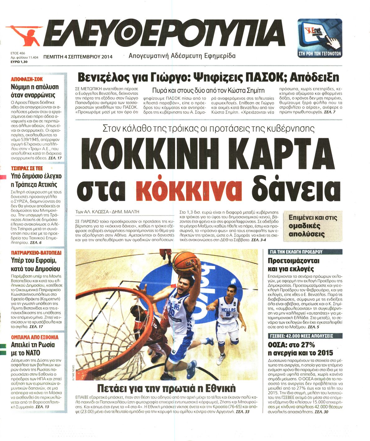 Οι πολιτικές εφημερίδες Enikos Newsroom 08:03, Πέμπτη 04 Σεπτεμβρίου 2014 Media Οι πολιτικές εφημερίδες Διαβάστε τα πρωτοσέλιδα των πολιτικών εφημερίδων: ΕΦΗΜΕΡΙΔΕΣ ΠΟΛΙΤΙΚΕΣ ΕΦΗΜΕΡΙΔΕΣ ΠΡΩΤΟΣΕΛΙΔΑ Μοιράσου το: σχολίασε κι εσύ (0 σχόλια) Ακολουθήστε το enikos.gr στο Google News και μάθετε πρώτοι όλες τις ειδήσεις Δείτε όλες τις τελευταίες ειδήσεις από την Ελλάδα και τον Κόσμο στο enikos.gr Ειδήσεις Ροή Ειδήσεων 45 λεπτά πριν Υπόθεση Έπσταϊν: Το Υπουργείο Δικαιοσύνης δημοσιοποίησε μια σειρά από εξαιρετικά επεξεργασμένα αρχεία – «Λείπουν τα πιο σημαντικά έγγραφα», λένε οι Δημοκρατικοί 2 ώρες πριν Σαρωτικοί οι έλεγχοι στους δρόμους ενόψει εορτών – Μπλόκα της τροχαίας σε κεντρικές αρτηρίες της Αττικής 56 λεπτά πριν ΟΝΕΧ – MEGATUGS: Ξεκίνησε η ναυπήγηση ρυμουλκών στην Ελλάδα – Προθάλαμος πολεμικών πλοίων – Δείτε φωτογραφίες και βίντεο 48 λεπτά πριν Καιρός: Αλλαγή σκηνικού σήμερα με βροχές και πτώση της θερμοκρασίας – Οι προβλέψεις των μετεωρολόγων για τα Χριστούγεννα 10 ώρες πριν Χριστούγεννα στα μπλόκα: Επιμένουν στις κινητοποιήσεις τους οι αγρότες – Ανοίγουν τα διόδια το Σαββατοκύριακο 3 ώρες πριν Αυγά: Πόσα μπορείτε να τρώτε την ημέρα με ασφάλεια για μέγιστη πρόσληψη πρωτεΐνης 3 ώρες πριν Τα ζώδια σήμερα, Σάββατο 20 Δεκεμβρίου: Παρθένοι, το σύμπαν σας δίνει το κλειδί 2 ώρες πριν Οπτική ψευδαίσθηση: Μόνο αν είσαι ο Σέρλοκ Χολμς θα βρεις τον αριθμό «87» σε 7 δευτερόλεπτα 25 λεπτά πριν Αρχαιολόγοι ανακάλυψαν σε χωράφι απεικόνιση 600 ετών ενός Αγίου – Τα στοιχεία που δείχνουν ότι μαρτύρησε 2 λεπτά πριν Η τέλεια συνταγή για cookies με κομμάτια σοκολάτας 10 λεπτά πριν MyHealth App: Τα στοιχεία για τον Προσωπικό Βοηθό Υγείας Πολίτη – Τι ερωτήματα έγιναν μέσα σε 7 ημέρες 18 λεπτά πριν Τρομεροί γονείς: Η Μαρία Καβογιάννη εισβάλλει στο σπίτι της οικογένειας Στεφανίδη 25 λεπτά πριν Αρχαιολόγοι ανακάλυψαν σε χωράφι απεικόνιση 600 ετών ενός Αγίου – Τα στοιχεία που δείχνουν ότι μαρτύρησε 33 λεπτά πριν Mega χριστουγεννιάτικη φορολοταρία: «Κλείδωσε» η ημερομηνία για την κλήρωση – Ερωτήσεις και απαντήσεις ENIKOS NETWORK Το τεστ των 10 δευτερολέπτων που μπορεί να προβλέψει το προσδόκιμο ζωής σας – Τι λέει ειδικός του Cleveland Επιλέξτε καρέκλα για να μάθετε ποια είναι τα κρυφά χαρακτηριστικά σας – Τι αποκάλυψε για εσάς αυτό το τεστ προσωπικότητας; Mega χριστουγεννιάτικη φορολοταρία: «Κλείδωσε» η ημερομηνία για την κλήρωση – Ερωτήσεις και απαντήσεις Αναστολή μέτρων αναγκαστικής εκτέλεσης για κτηνοτρόφους που πλήττονται από την ευλογιά των αιγοπροβάτων Χαρτογραφώντας το «σημείο χωρίς επιστροφή»: Για πρώτη φορά αποκαλύπτεται με λεπτομέρεια το ακανθώδες όριο της ατμόσφαιρας τ... Η Google καταργεί τη λειτουργία «dark web report» – Πώς θα μπορούν οι χρήστες να διαγράφουν τα δεδομένα τους περισσότερα 08:14 , Σάββατο 20 Δεκεμβρίου 2025 Τρομεροί γονείς: Η Μαρία Καβογιάννη εισβάλλει στο σπίτι της οικογένειας Στεφανίδη Όσα θα δούμε στο νέο διπλό επεισόδιο της σειράς «Τρομεροί γονείς», σήμερα Σάββατο 20 Δεκεμβρίο... 05:48 , Σάββατο 20 Δεκεμβρίου 2025 Οι οικονομικές εφημερίδες 20/12/2025 Διαβάστε τα πρωτοσέλιδα από τις οικονομικές εφημερίδες, σήμερα 20/12/2025. 05:43 , Σάββατο 20 Δεκεμβρίου 2025 Οι αθλητικές εφημερίδες 20/12/2025 Διαβάστε τα πρωτοσέλιδα από τις αθλητικές εφημερίδες, σήμερα 20/12/2025. 05:38 , Σάββατο 20 Δεκεμβρίου 2025 Οι πολιτικές εφημερίδες 20/12/2025 Διαβάστε τα πρωτοσέλιδα από τις πολιτικές εφημερίδες, σήμερα 20/12/2025. ΤΕΛΕΥΤΑΙΕΣ ΕΙΔΗΣΕΙΣ 10 λεπτά πριν MyHe