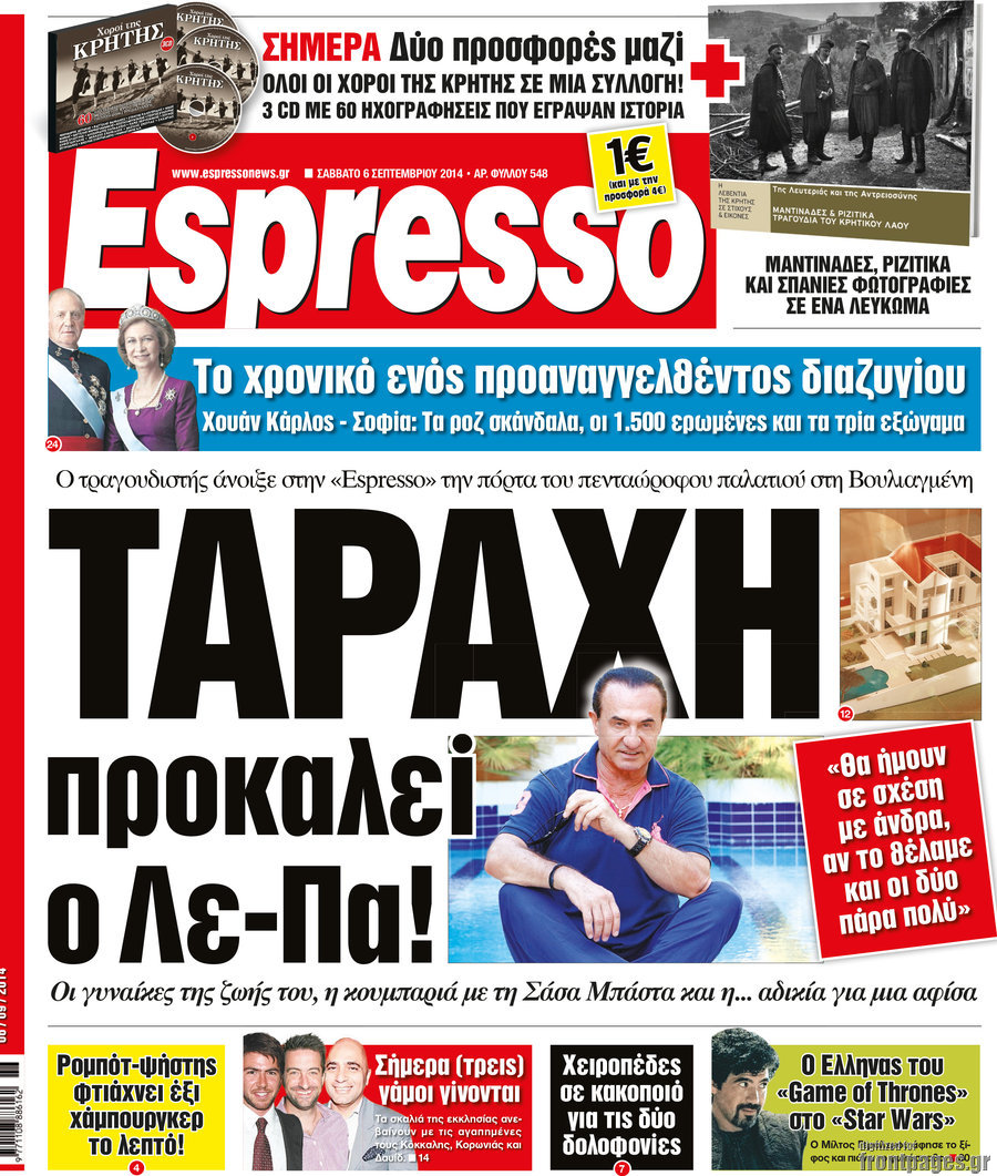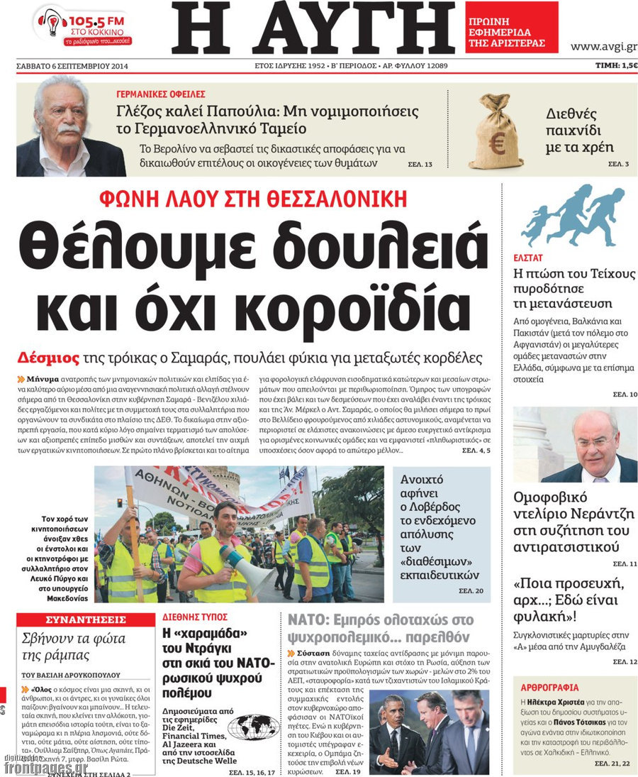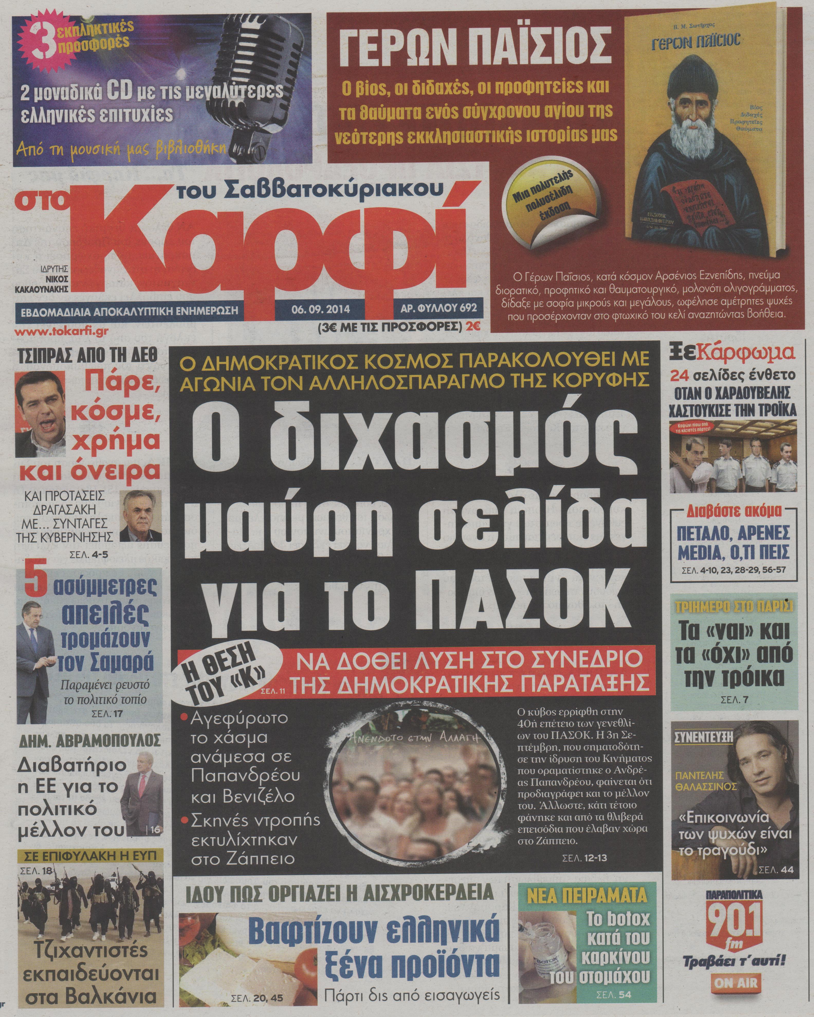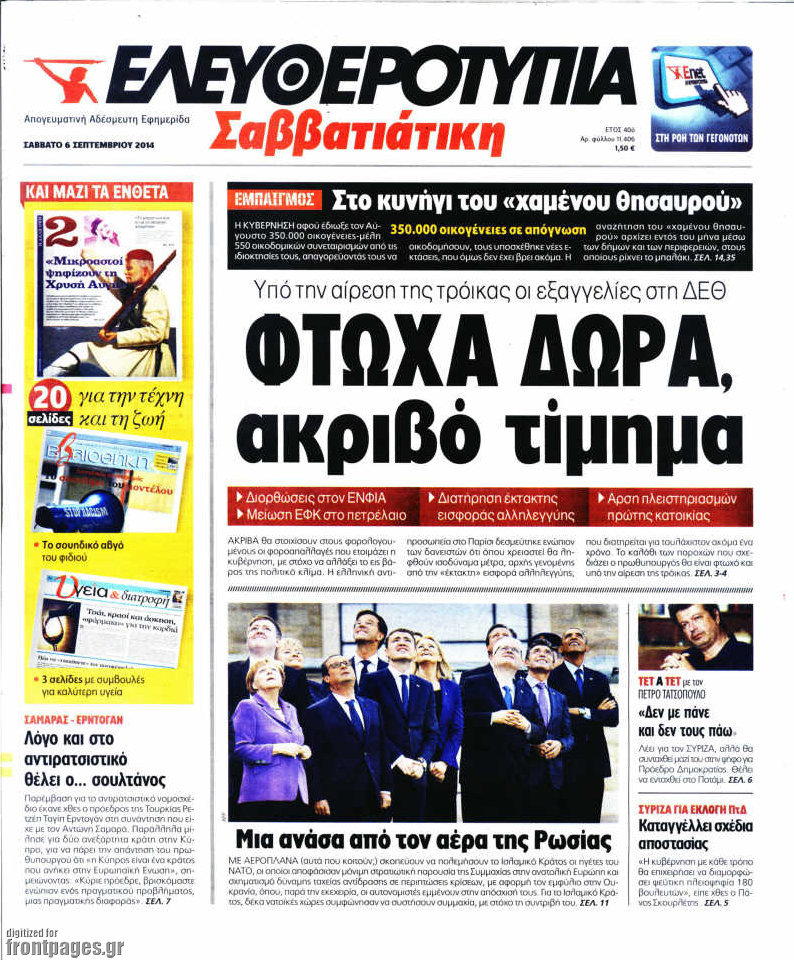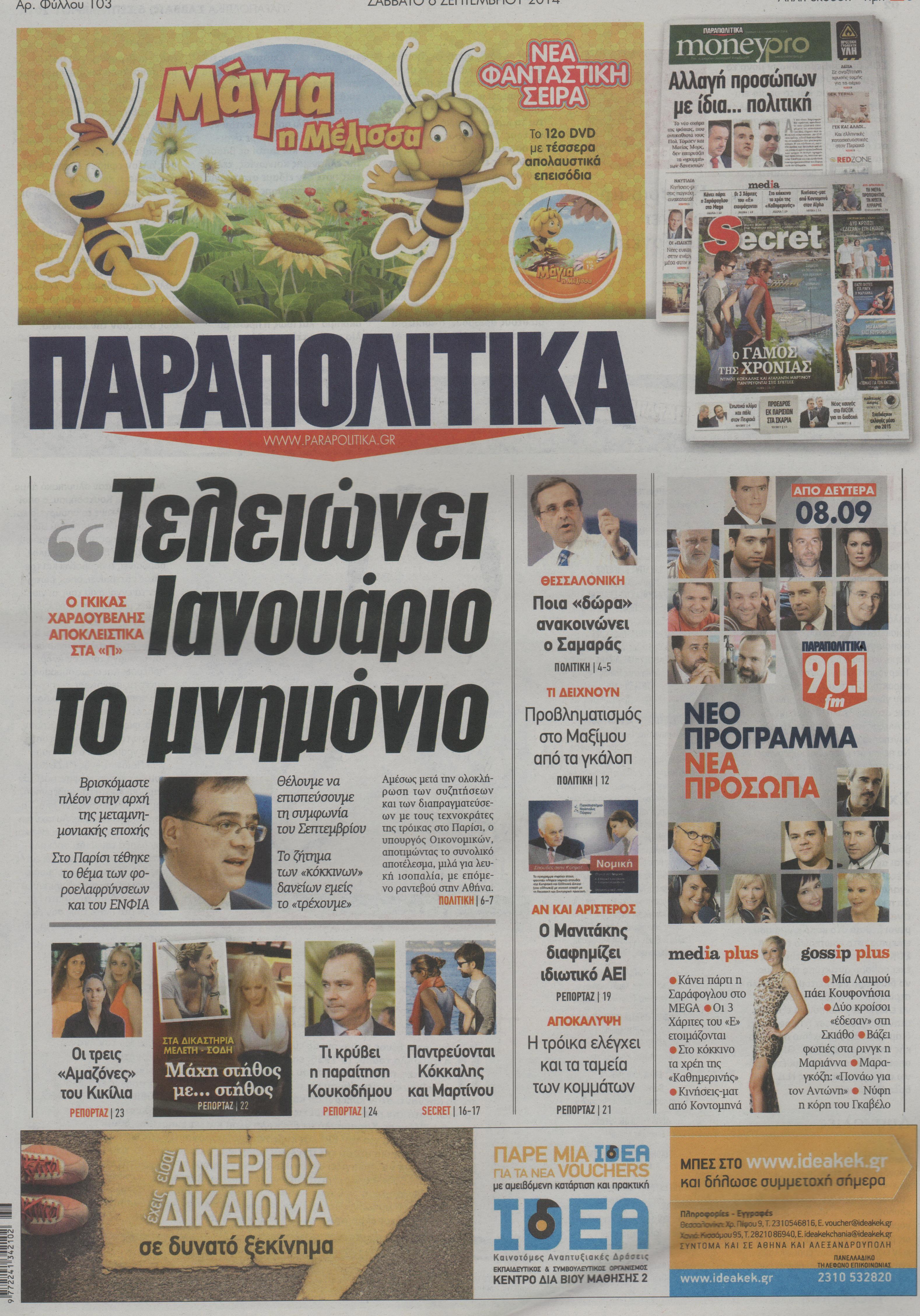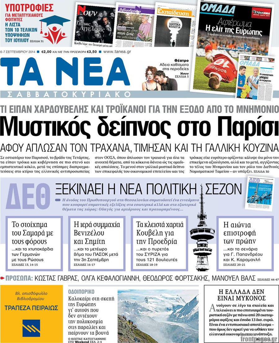 Οι πολιτικές εφημερίδες Enikos Newsroom 07:36, Σάββατο 06 Σεπτεμβρίου 2014 Media Οι πολιτικές εφημερίδες ΠΟΛΙΤΙΚΕΣ ΕΦΗΜΕΡΙΔΕΣ Μοιράσου το: σχολίασε κι εσύ (0 σχόλια) Ακολουθήστε το enikos.gr στο Google News και μάθετε πρώτοι όλες τις ειδήσεις Δείτε όλες τις τελευταίες ειδήσεις από την Ελλάδα και τον Κόσμο στο enikos.gr Ειδήσεις Ροή Ειδήσεων 25 λεπτά πριν Τραμπ: Δεν αποκλείει την πιθανότητα ενός πολέμου στη Βενεζουέλα – «Ο Μαδούρο ξέρει καλύτερα από τον καθένα τι ακριβώς θέλω» 20 λεπτά πριν Ουκρανία: Η άνευ προηγουμένου επίθεση σε ρωσικό τάνκερ στη Μεσόγειο και το μήνυμα προς στον Πούτιν – Το «μακρύ χέρι» του Κιέβου 3 ώρες πριν Εμπλοκή και αερομαχίες με οπλισμένα τουρκικά F-16 στο Αιγαίο 3 ώρες πριν Πούτιν: «Ναι, είμαι ερωτευμένος» – Βίντεο από τη σπάνια προσωπική παραδοχή του 1 ώρα πριν Ανδρέας Λυκουρέντζος: Υπέβαλε την παραίτησή του ο πρόεδρος του ΕΛΓΑ, αλλά δεν έγινε δεκτή – Όλο το παρασκήνιο 2 ώρες πριν Αριθμολογία: Οι άνθρωποι που έχουν γεννηθεί αυτές τις 4 ημερομηνίες, συχνά παρεξηγούνται – «Η καλοσύνη τους κρύβει τεράστια δύναμη» 4 ώρες πριν Μήπως έχετε χάσει τον εαυτό σας στη σχέση σας; 7 «αθόρυβες» υποχωρήσεις που μάλλον κάνατε, χωρίς να το συνειδητοποιήσετε 3 ώρες πριν Ξεχάστε το καθάρισμα το Σαββατοκύριακο: Ο «κανόνας των 20 λεπτών» που θα σας λύσει τα χέρια 35 λεπτά πριν Ύπνος: Μια κρυφή κατάσταση του εγκεφάλου πριν από τον ύπνο μπορεί να είναι το “κλειδί” για υψηλή ευφυΐα και δημιουργικότητα 8 λεπτά πριν Χάρι και Μέγκαν: Η σπάνια οικογενειακή φωτογραφία με τον Άρτσι και τη Λίλιμπετ – Τι σχεδιάζουν για τα Χριστούγεννα 15 λεπτά πριν Βασίλης Καρράς: «Είναι πάντα δίπλα μου, δεν έφυγε…», λέει ο αδελφός του 20 λεπτά πριν Ουκρανία: Η άνευ προηγουμένου επίθεση σε ρωσικό τάνκερ στη Μεσόγειο και το μήνυμα προς στον Πούτιν – Το «μακρύ χέρι» του Κιέβου 25 λεπτά πριν Τραμπ: Δεν αποκλείει την πιθανότητα ενός πολέμου στη Βενεζουέλα – «Ο Μαδούρο ξέρει καλύτερα από τον καθένα τι ακριβώς θέλω» 27 λεπτά πριν Κηφισιά: Με πολλές απουσίες κόντρα στον Ολυμπιακό – «Last dance» για τον Τεττέη ENIKOS NETWORK Το ΕΚΑΒ τιμήθηκε από την Ακαδημία Αθηνών για τα 40 χρόνια προσφοράς του Έχετε πραγματικά μεγάλη καρδιά; 10 χαρακτηριστικά όσων έχουν καλοσύνη ΑΑΔΕ: Νέες αναβαθμίσεις στο Ψηφιακό Πελατολόγιο και την εφαρμογή myDATAapp – Τι πρέπει να γνωρίζετε Όμιλος ΔΕΗ: Νέα ορόσημα και ενισχυμένη διαφάνεια στην ετήσια Έκθεση Βιώσιμης Ανάπτυξης Χαρτογραφώντας το «σημείο χωρίς επιστροφή»: Για πρώτη φορά αποκαλύπτεται με λεπτομέρεια το ακανθώδες όριο της ατμόσφαιρας τ... Η Google καταργεί τη λειτουργία «dark web report» – Πώς θα μπορούν οι χρήστες να διαγράφουν τα δεδομένα τους περισσότερα 20:37 , Παρασκευή 19 Δεκεμβρίου 2025 Don’t Forget The Lyrics: Η Έλλη Κοκκίνου υποδέχεται 4 παίκτες που θα κάνουν τα πάντα για να μη χάσουν ούτε… μισή λέξη από τους στίχους Το «Don’t Forget The Lyrics» επιστρέφει απόψε, Παρασκευή 19 Δεκεμβρίου, στις 21:00 με νέο επει... 19:31 , Παρασκευή 19 Δεκεμβρίου 2025 GNTM: Απόψε ο μεγάλος τελικός για τους 4 φιναλίστ Έπειτα από μήνες γεμάτους μόδα, δημιουργία και έντονες αναμετρήσεις, το GNTM 2025 κορυφώνεται,... 18:11 , Παρασκευή 19 Δεκεμβρίου 2025 Το σόι σου: Ο Άρης έρχεται στην Ελλάδα για τις γιορτές των Χριστουγέννων – Τι θα δούμε στο αποψινό εορταστικό επεισόδιο Ένα απολαυστικό, εορταστικό επεισόδιο της σειράς “Το σόι σου”, γεμάτο ευτράπελα αλ... 15:15 , Παρασκευή 19 Δεκεμβρίου 2025 Την Κυριακή με τη Realnews: Ό,τι και αν αγοράσεις, σκανάρεις και κερδίζεις! Την 