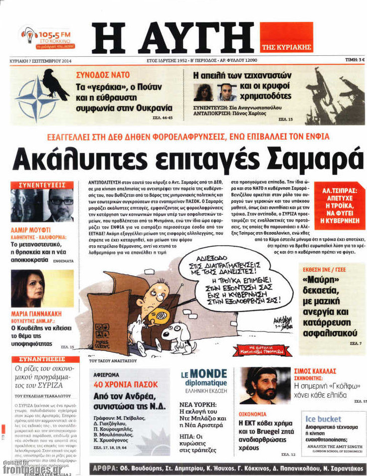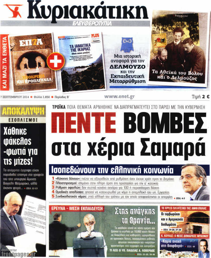 Οι πολιτικές εφημερίδες Enikos Newsroom 07:42, Κυριακή 07 Σεπτεμβρίου 2014 Media Οι πολιτικές εφημερίδες Διαβάστε τα πρωτοσέλιδα των πολιτικών εφημερίδων ΠΟΛΙΤΙΚΕΣ ΕΦΗΜΕΡΙΔΕΣ ΠΡΩΤΟΣΕΛΙΔΑ Μοιράσου το: σχολίασε κι εσύ (0 σχόλια) Ακολουθήστε το enikos.gr στο Google News και μάθετε πρώτοι όλες τις ειδήσεις Δείτε όλες τις τελευταίες ειδήσεις από την Ελλάδα και τον Κόσμο στο enikos.gr Ειδήσεις Ροή Ειδήσεων 22 λεπτά πριν Άνοιξαν οι σήραγγες των Τεμπών – Οι επόμενες κινήσεις των αγροτών πριν από τα Χριστούγεννα 3 ώρες πριν Χριστουγεννιάτικο «θαύμα» στη Φουρνά Ευρυτανίας: Πώς γέμισε ξανά με παιδικά χαμόγελα – «Νιώθω περήφανη» λέει η δασκάλα που «ανέστησε» το ορεινό χωριό 27 λεπτά πριν Κώστας Ανεστίδης: Πληροφορίες ότι εστάλη εισαγγελική διάταξη για δέσμευση των περιουσιακών στοιχείων του 3 ώρες πριν Τσιάρας στον Realfm 97,8: Ο διάλογος είναι πράξη ευθύνης – Η ανακατανομή των διαθέσιμων πόρων μπορεί να γίνει σε συνεννόηση με τους αγρότες 4 ώρες πριν Από τα μέσα Ιανουαρίου τα πρώτα «ραβασάκια» στους οδηγούς από τις έξυπνες κάμερες – Τι δήλωσε ο Παπαστεργίου 42 λεπτά πριν Αυτό το ζώδιο θα ξαναγεννηθεί το 2026 – «Αφήνετε τις δυσκολίες στο παρελθόν και κάνετε restart» 6 ώρες πριν Έχετε κρατήσει αυτά 8 αντικείμενα από την παιδική ηλικία σας; Δείτε τι αποκαλύπτει για τον χαρακτήρα σας 2 ημέρες πριν Enerwave: Το νέο «ρεύμα» στη λιανική ενέργειας που αλλάζει την εμπειρία του καταναλωτή 2 ώρες πριν Ιστορική ανακάλυψη στη Φυσική – Επιβεβαιώθηκε η ύπαρξη του «δεύτερου ήχου» 6 λεπτά πριν Ιράν: Αναφορές για πυραυλικές ασκήσεις σε Τεχεράνη, Ισφαχάν και Μασάντ 12 λεπτά πριν Στο μνημείο των Τεμπών οι αγρότες – Η συμβολική κίνηση για τα θύματα της τραγωδίας – ΒΙΝΤΕΟ 16 λεπτά πριν Μελίνα Τσαμπάνη – Πέτρος Καλκόβαλης: Eπιστρέφουν το 2026, μέσα από τη συχνότητα του Mega 22 λεπτά πριν Άνοιξαν οι σήραγγες των Τεμπών – Οι επόμενες κινήσεις των αγροτών πριν από τα Χριστούγεννα 27 λεπτά πριν Τροχαία Αττικής: 7 συλλήψεις και βεβαίωση 262 παραβάσεων για αλκοόλ – Οδηγός εγκατέλειψε το όχημά του για να αποφύγει τον έλεγχο ENIKOS NETWORK Ο ΙΣΑ στηρίζει την έγκυρη ενημέρωση για τα μυοσκελετικά νοσήματα Νέος οδικός χάρτης στην Παιδοδοντιατρική από την Ευρωπαϊκή Ακαδημία Παιδοδοντιατρικής Ταμείο Ανάκαμψης και Ανθεκτικότητας: Διπλό αίτημα εκταμίευσης πόρων ύψους 1,17 δισ. ευρώ υπέβαλε η Ελλάδα Αεροδρόμια: Ιστορικό ρεκόρ για την επιβατική κίνηση το 2025 – Ποια αφορά Ο Google Assistant θα παραμείνει λίγο περισσότερο για ορισμένους χρήστες Android Τεστ προσωπικότητας: Το βάζο που θα επιλέξετε αποκαλύπτει πώς λύνετε προβλήματα στη ζωή σας περισσότερα 16:25 , Δευτέρα 22 Δεκεμβρίου 2025 Μελίνα Τσαμπάνη – Πέτρος Καλκόβαλης: Eπιστρέφουν το 2026, μέσα από τη συχνότητα του Mega Μέσα από τη συχνότητα του Mega θα επιστρέψουν το 2026 η Μελίνα Τσαμπάνη και ο Πέτρος Καλκόβαλη... 15:40 , Δευτέρα 22 Δεκεμβρίου 2025 Το «Grand Hotel» πάει «Rouk Zouk» Το «Grand Hotel» πάει… «Rouk Zouk». Με τη λάμψη του «Grand Hotel» και την παιχνιδιάρικη διάθεσ... 14:41 , Δευτέρα 22 Δεκεμβρίου 2025 Η Γη της Ελιάς: Η μέρα για τον γάμο της Βασιλικής και του Στέφανου έχει φτάσει Νέο επεισόδιο απόψε για τη σειρά “Η Γη της Ελιάς”. Ο Στάθης αρχίζει να ανησυχεί, γ... 12:25 , Δευτέρα 22 Δεκεμβρίου 2025 Χαμός on air ανάμεσα στις πρωινές εκπομπές του Open και του Mega – «Έχω να δω κάτι τέτοιο από τη δεκαετία του 90’» – «Κάποιοι να κοιτάνε και λίγο στον καθρέφτη» Κόντρα στον… αέρα είχαν οι ενημερωτικές εκπομπές της πρωινής ζώνης στο Open και το Mega,... ΤΕΛΕΥΤΑΙΕΣ