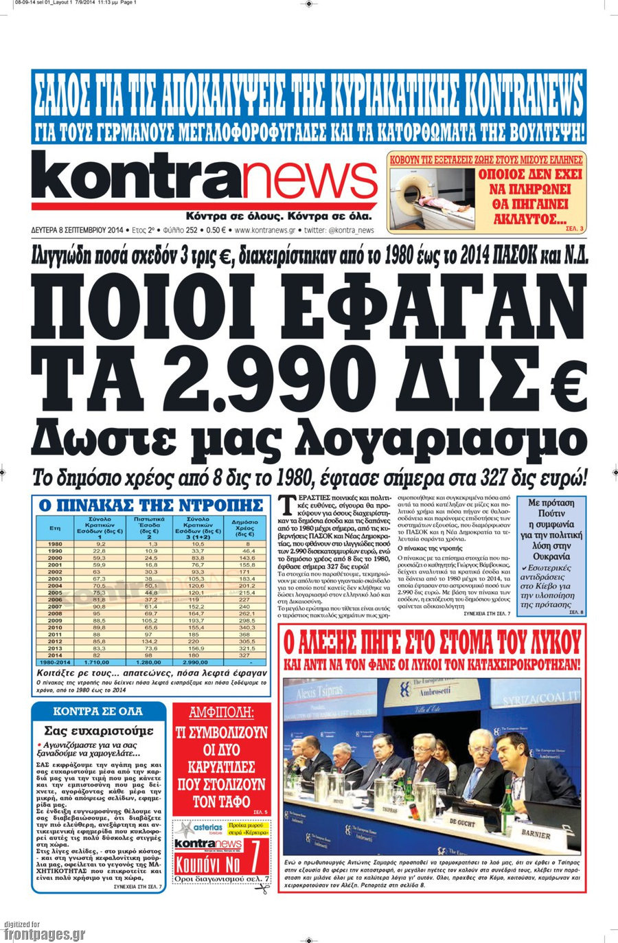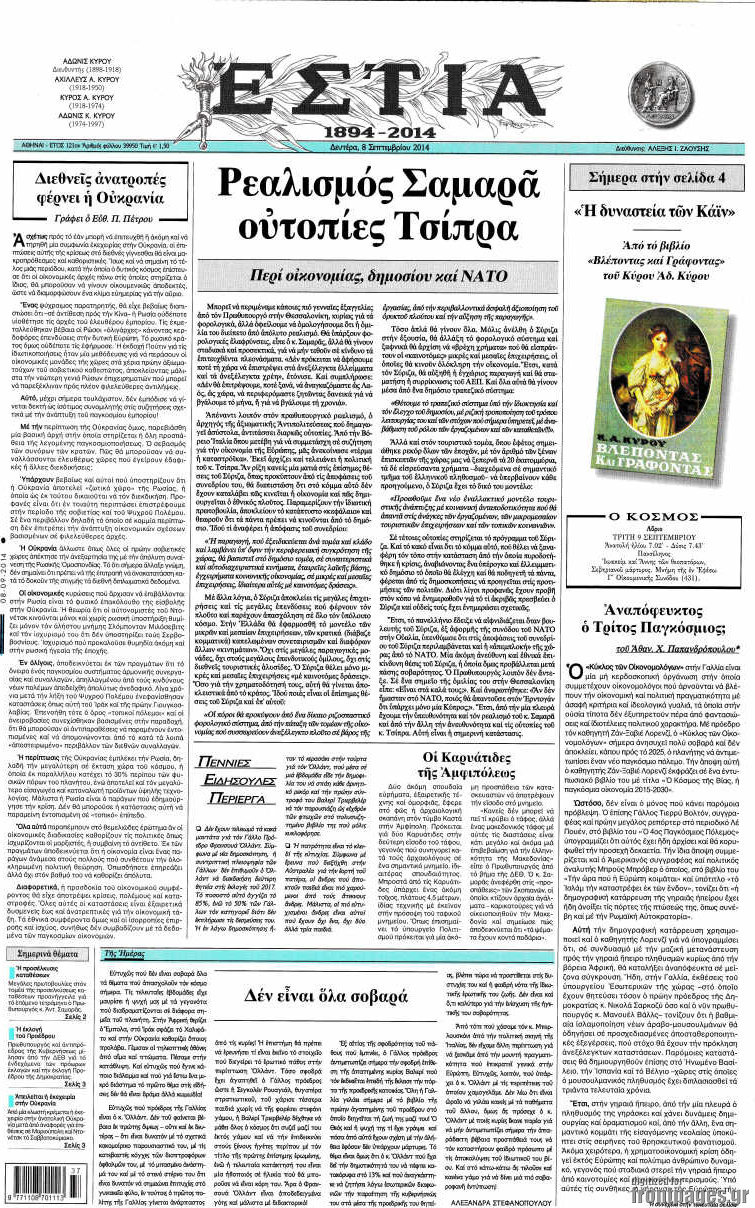 Οι πολιτικές εφημερίδες Enikos Newsroom 07:38, Δευτέρα 08 Σεπτεμβρίου 2014 Media Οι πολιτικές εφημερίδες Διαβάστε τα πρωτοσέλιδα των πολιτικών εφημερίδων: ΠΟΛΙΤΙΚΕΣ ΕΦΗΜΕΡΙΔΕΣ Μοιράσου το: σχολίασε κι εσύ (0 σχόλια) Ακολουθήστε το enikos.gr στο Google News και μάθετε πρώτοι όλες τις ειδήσεις Δείτε όλες τις τελευταίες ειδήσεις από την Ελλάδα και τον Κόσμο στο enikos.gr Ειδήσεις Ροή Ειδήσεων 1 ώρα πριν Ζελένσκι: Μόνο οι ΗΠΑ και ο Τραμπ μπορούν να πιέσουν τη Ρωσία να βάλει τέλος στον πόλεμο 1 ώρα πριν Φοινικούντα: Προφυλακιστέος ο 30χρονος για συνέργεια στη διπλή δολοφονία – Και άλλα πρόσωπα στο «μικροσκόπιο» 3 ώρες πριν Κυριάκος Μητσοτάκης: Στην Ιερουσαλήμ την Τρίτη ο Πρωθυπουργός για την τριμερή Ελλάδας, Κύπρου, Ισραήλ – Θα συναντηθεί και με τον Αμπάς 5 ώρες πριν Πώς δρούσε το κύκλωμα που διακινούσε ναρκωτικά σε σχολεία – Υπέβαλαν σε βασανιστήρια όσους δεν τηρούσαν τους «κανόνες πειθαρχίας» 2 ώρες πριν Πάπας Λέων: Όταν έχει αϋπνίες επενδύει παραγωγικά τον χρόνο του – Ποιο παιχνίδι παίζει στο κινητό 1 ώρα πριν Αριθμολογία: Ο αριθμός του φύλακα αγγέλου σας, με βάση τον μήνα γέννησής σας – «Έτσι σας στέλνει σημάδια το σύμπαν» 2 ώρες πριν Πώς να απαλλαγείτε από τη μυρωδιά του τηγανητού φαγητού: Το μυστικό βρίσκεται στην κουζίνα σας 3 ώρες πριν Μήπως οι γιορτές σας δεν είναι τόσο τέλειες; 7 χριστουγεννιάτικες συνήθειες που μαρτυρούν ότι μια οικογένεια είναι δυσλειτουργική 13 ώρες πριν Enerwave: Το νέο «ρεύμα» στη λιανική ενέργειας που αλλάζει την εμπειρία του καταναλωτή 2 λεπτά πριν Ξένια Τσίρκοβα: Έμαθε από την τηλεόραση ότι είναι η μεγάλη νικήτρια του GNTM – Η αντίδρασή της – ΒΙΝΤΕΟ 11 λεπτά πριν Ύπνος: Η διατροφή που μπορεί να σας βοηθήσει να κοιμάστε καλύτερα και να ζήσετε περισσότερο 22 λεπτά πριν Ιταλία: Επεισόδια και τραυματίες σε διαδήλωση μελών ακροαριστερού “κοινωνικού κέντρου ” στο Τορίνο 35 λεπτά πριν Γαλλία: Αστυνομικοί πυροβόλησαν και σκότωσαν έναν 26χρονο που απειλούσε περαστικούς με μαχαίρι – BINTEO 44 λεπτά πριν Εβελίνα Παπούλια για «Δύο Ξένους»: «Είχα κατάθλιψη τότε, συνδυάστηκε στο μυαλό μου με κάτι πάρα πολύ άσχημο» ENIKOS NETWORK Οι γυναίκες αποκαλύπτουν το πιο ελκυστικό πράγμα που μπορεί να κάνει ένας άνδρας Ομορφιά και αντιγήρανση: Ειδικοί μιλούν για συσκευές περιποίησης του δέρματος Ρεύμα: Πώς μπορείτε να αλλάξετε πάροχο γρήγορα και εύκολα – Τα βήματα της διαδικασίας Εφορία: 7 αλλαγές σε δηλώσεις και ελέγχους ακινήτων – Όλα όσα πρέπει να γνωρίζετε Χαρτογραφώντας το «σημείο χωρίς επιστροφή»: Για πρώτη φορά αποκαλύπτεται με λεπτομέρεια το ακανθώδες όριο της ατμόσφαιρας τ... Η Google καταργεί τη λειτουργία «dark web report» – Πώς θα μπορούν οι χρήστες να διαγράφουν τα δεδομένα τους περισσότερα 20:30 , Σάββατο 20 Δεκεμβρίου 2025 Αυτή την Κυριακή με τη Realnews: Instyle, μαζί Drive και Realnews Geopolitics Αυτή την Κυριακή με τη Realnews: Instyle, μαζί Drive και Realnews Geopolitics Instyle Η Άννα Ρ... 20:28 , Σάββατο 20 Δεκεμβρίου 2025 Ο ΑΝΤ1 γεμίζει τις γιορτές με μουσική – Ποιους καλλιτέχνες θα απολαύσουμε Φέτος στον ΑΝΤ1 γιορτάζουμε τις νύχτες μας παρέα με αγαπημένους καλλιτέχνες και μεγάλες μουσι... 18:19 , Σάββατο 20 Δεκεμβρίου 2025 HOTΕΛ ΕΛVIRA: Η Ελβίρα μαθαίνει πως ο Χάρι μένει κρυφά στο ξενοδοχείο του Παντελή Συνεχίζονται οι εκλογές για πρόεδρο, στο νέο επεισόδιο της κωμικής σειράς του MEGA, HOTΕΛ ΕΛVI... 14:04 , Σάββατο 20 Δεκεμβρίου 2025 Η Realnews αυτής της Κυριακής (21/12/2025) Με τίτλο: «Ασπίδα προστασίας για την Ελλάδα» κυκλοφορεί, αυτήν την Κυριακή, 