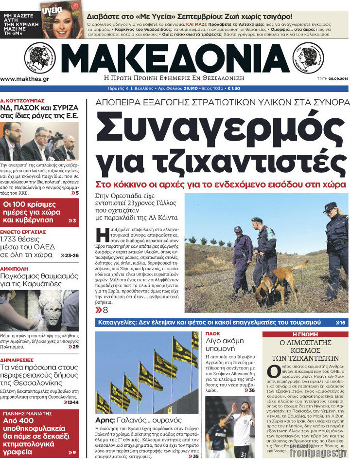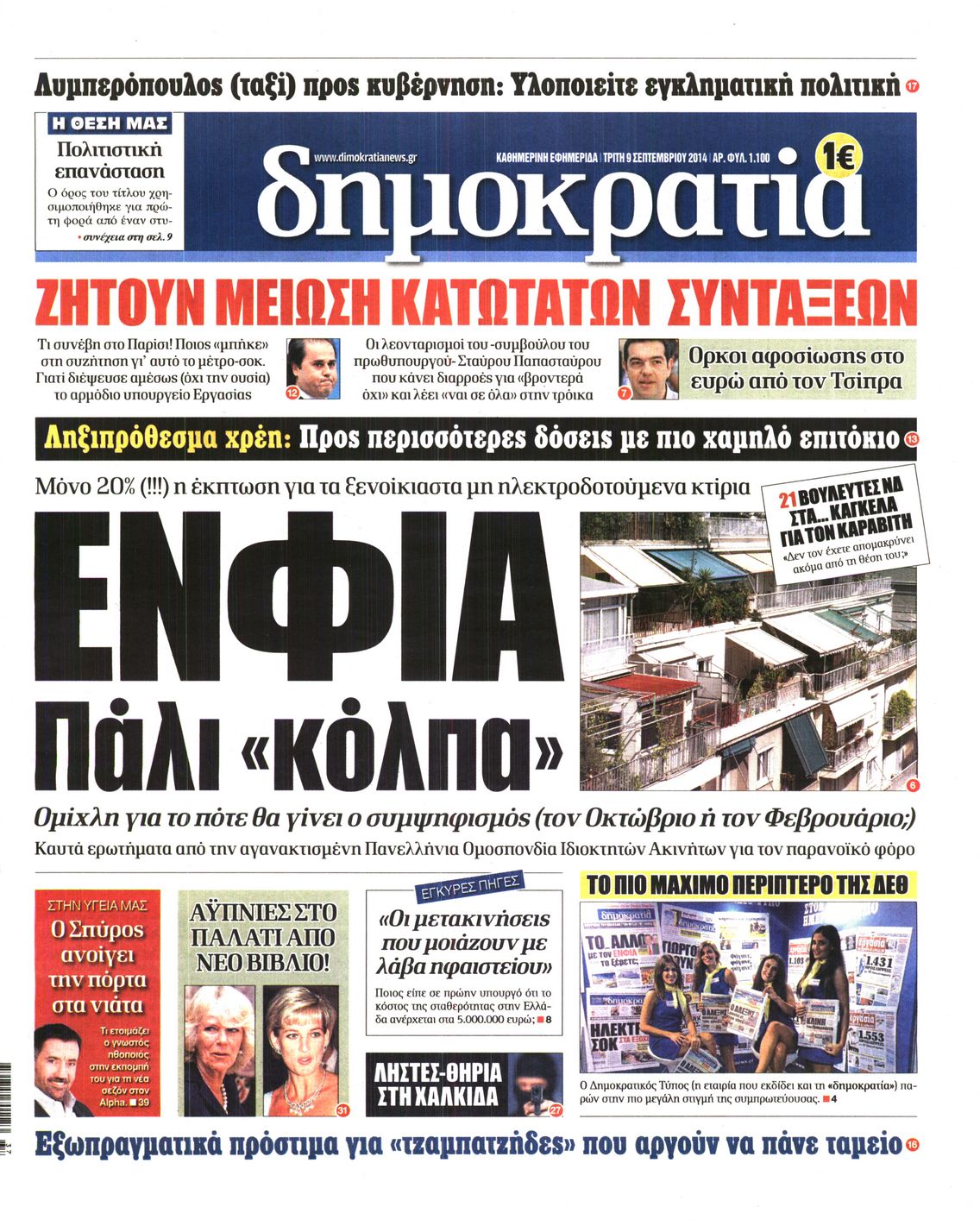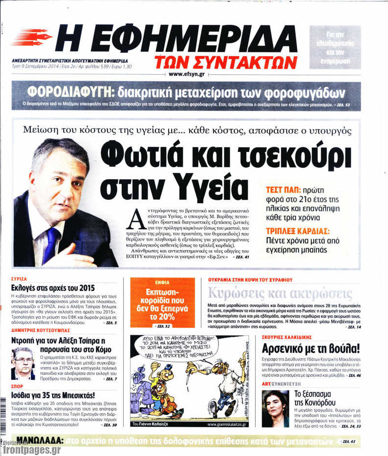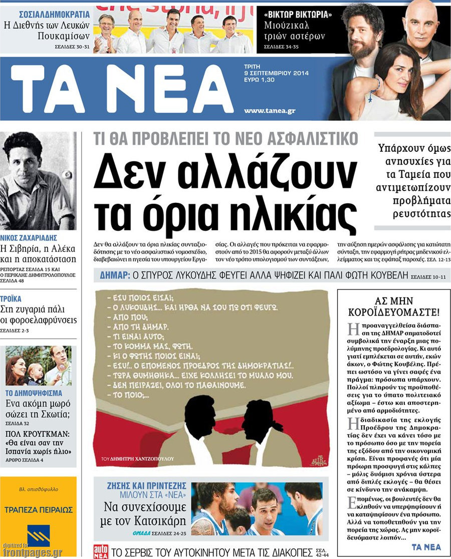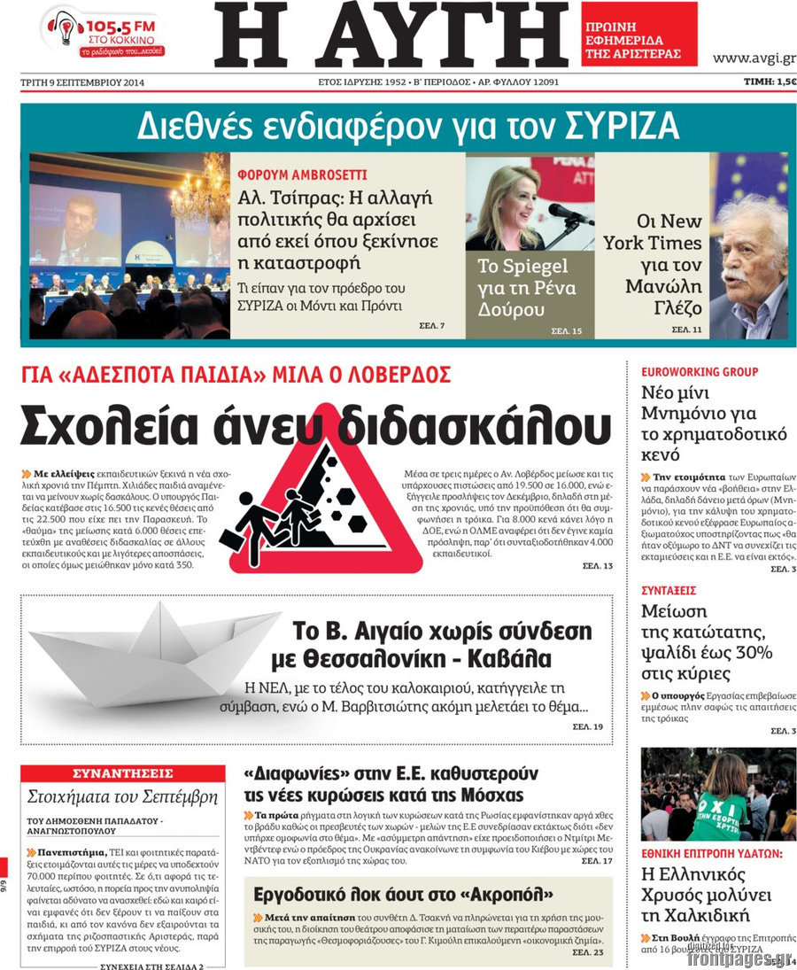 Οι πολιτικές εφημερίδες Enikos Newsroom 07:50, Τρίτη 09 Σεπτεμβρίου 2014 Media Οι πολιτικές εφημερίδες Διαβάστε τα πρωτοσέλιδα των πολιτικών εφημερίδων: ΕΦΗΜΕΡΙΔΕΣ ΠΟΛΙΤΙΚΕΣ ΕΦΗΜΕΡΙΔΕΣ Μοιράσου το: σχολίασε κι εσύ (0 σχόλια) Ακολουθήστε το enikos.gr στο Google News και μάθετε πρώτοι όλες τις ειδήσεις Δείτε όλες τις τελευταίες ειδήσεις από την Ελλάδα και τον Κόσμο στο enikos.gr Ειδήσεις Ροή Ειδήσεων 3 ώρες πριν Χριστούγεννα στα μπλόκα: Επιμένουν στις κινητοποιήσεις τους οι αγρότες – Ανοίγουν τα διόδια το Σαββατοκύριακο 3 ώρες πριν Ουκρανία: Η άνευ προηγουμένου επίθεση σε ρωσικό τάνκερ στη Μεσόγειο και το μήνυμα προς στον Πούτιν – Το «μακρύ χέρι» του Κιέβου 2 ώρες πριν Πούτιν: Τα μηνύματα σε Ευρώπη και ΝΑΤΟ από το μαραθώνιο «σόου» του – Η απαίτηση για «σεβασμό» και η ειρήνη «με τους όρους» της Μόσχας 3 ώρες πριν Τραμπ: Δεν αποκλείει την πιθανότητα ενός πολέμου στη Βενεζουέλα – «Ο Μαδούρο ξέρει καλύτερα από τον καθένα τι ακριβώς θέλω» 4 ώρες πριν Συνεχίζει να προκαλεί ο Μίτσκοσκι: «Για μένα το όνομα Μακεδονία είναι ιερό» 2 ώρες πριν Ανακαλύφθηκαν αρχαία χρυσά νομίσματα 2.200 ετών που απεικονίζουν τον θεό Απόλλωνα – Η άγνωστη σύνδεση με τον Φίλιππο Β΄ της Μακεδονίας 3 ώρες πριν Ύπνος: Μια κρυφή κατάσταση του εγκεφάλου πριν από τον ύπνο μπορεί να είναι το “κλειδί” για υψηλή ευφυΐα και δημιουργικότητα 4 ώρες πριν Αριθμολογία: Οι άνθρωποι που έχουν γεννηθεί αυτές τις 4 ημερομηνίες, συχνά παρεξηγούνται – «Η καλοσύνη τους κρύβει τεράστια δύναμη» 5 ώρες πριν Ξεχάστε το καθάρισμα το Σαββατοκύριακο: Ο «κανόνας των 20 λεπτών» που θα σας λύσει τα χέρια 4 λεπτά πριν Συρία: Μαζικά πλήγματα των ΗΠΑ σε θέσεις του Ισλαμικού Κράτους – Χέγκσεθ: «Δεν είναι αρχή πολέμου, είναι μια δήλωση εκδίκησης» για το θάνατο των στρατιωτών μας 17 λεπτά πριν Ουκρανία: Ολοκληρώθηκαν οι συνομιλίες με τους Αμερικανούς κι Ευρωπαίους διαπραγματευτές 32 λεπτά πριν Μπαρτσελόνα – Μπασκόνια 134-124: Οι «μπλαουγκράνα» πήραν το ματς της χρονιάς ύστερα από τρεις παρατάσεις 47 λεπτά πριν Φαίη Σκορδά: «Παλιότερα τα κομπλιμέντα τα προσπερνούσα, τώρα τα έχω ανάγκη» 1 ώρα πριν Βασίλης Σπανούλης: Δεν εμφανίστηκε ούτε ένας δημοσιογράφος στην συνέντευξη Τύπου – «Καλησπέρα στον… κανέναν», δείτε βίντεο ENIKOS NETWORK Το ΕΚΑΒ τιμήθηκε από την Ακαδημία Αθηνών για τα 40 χρόνια προσφοράς του Έχετε πραγματικά μεγάλη καρδιά; 10 χαρακτηριστικά όσων έχουν καλοσύνη Αναστολή μέτρων αναγκαστικής εκτέλεσης για κτηνοτρόφους που πλήττονται από την ευλογιά των αιγοπροβάτων Πλήρης επάρκεια προϊόντων στις λαϊκές της Αττικής, παρά τις αγροτικές κινητοποιήσεις – Τι απαντούν οι πωλητές Χαρτογραφώντας το «σημείο χωρίς επιστροφή»: Για πρώτη φορά αποκαλύπτεται με λεπτομέρεια το ακανθώδες όριο της ατμόσφαιρας τ... Η Google καταργεί τη λειτουργία «dark web report» – Πώς θα μπορούν οι χρήστες να διαγράφουν τα δεδομένα τους περισσότερα 22:42 , Παρασκευή 19 Δεκεμβρίου 2025 Γιώργος Γιαννόπουλος για “Το σόι σου”: “Είναι ευτυχία και ευλογία αυτή η σειρά” «Είναι ευτυχία και ευλογία η συγκυρία αυτής της σειράς», θα πει ο Γιώργος Γιαννόπουλος -ο αγαπ... 20:37 , Παρασκευή 19 Δεκεμβρίου 2025 Don’t Forget The Lyrics: Η Έλλη Κοκκίνου υποδέχεται 4 παίκτες που θα κάνουν τα πάντα για να μη χάσουν ούτε… μισή λέξη από τους στίχους Το «Don’t Forget The Lyrics» επιστρέφει απόψε, Παρασκευή 19 Δεκεμβρίου, στις 21:00 με νέο επει... 19:31 , Παρασκευή 19 Δεκεμβρίου 2025 GNTM: Απόψε ο μεγάλος τελικός για τους 4 φιναλίστ Έπειτα από 