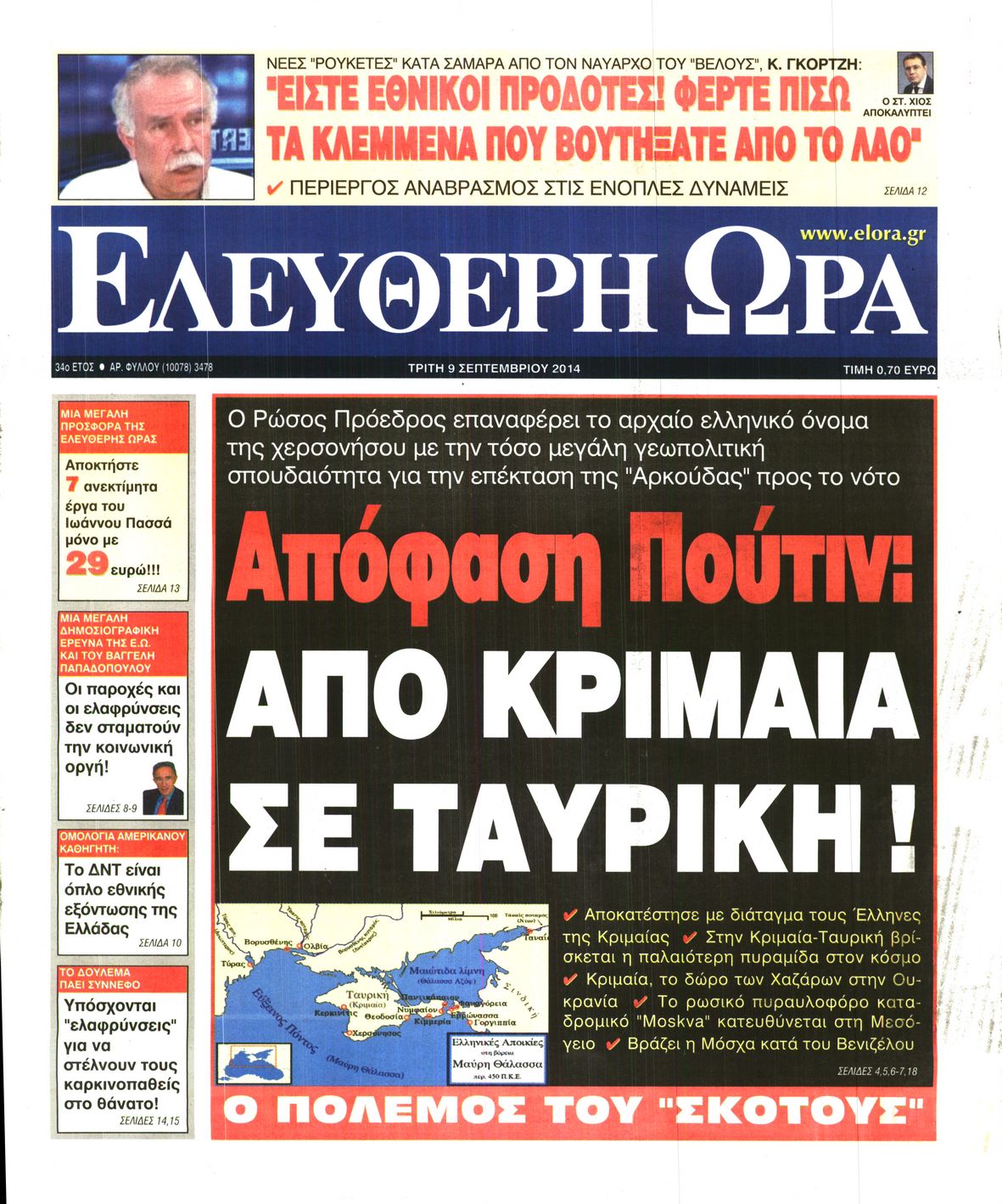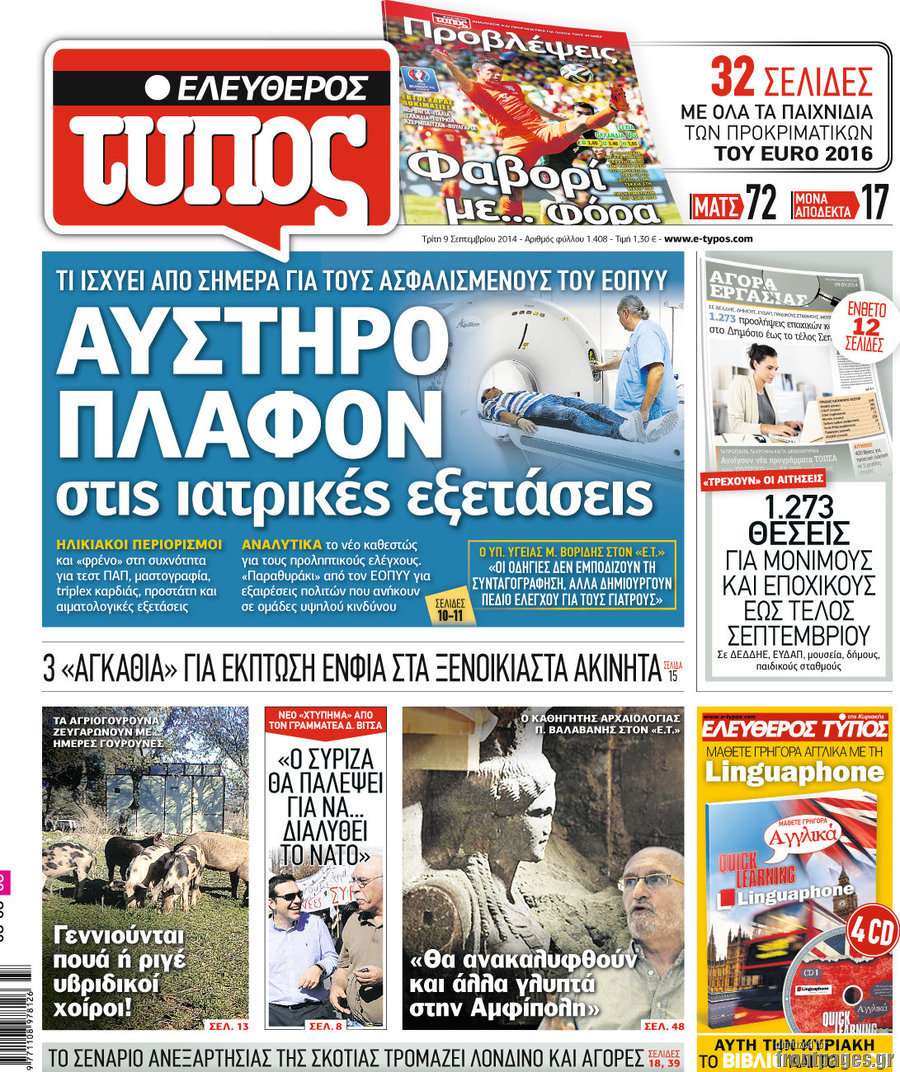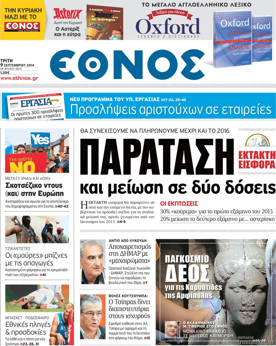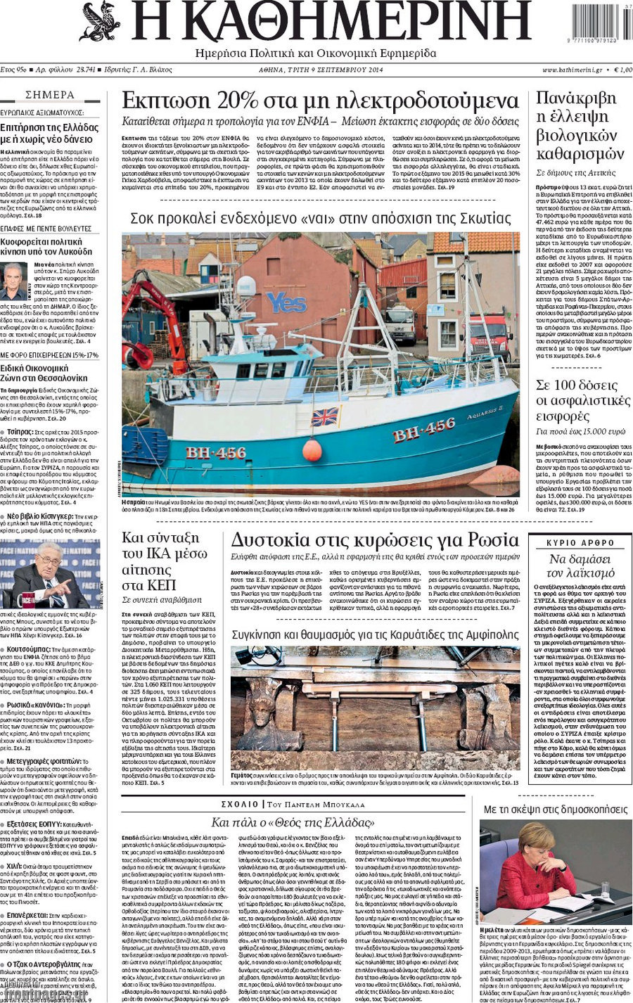 Οι πολιτικές εφημερίδες Enikos Newsroom 07:50, Τρίτη 09 Σεπτεμβρίου 2014 Media Οι πολιτικές εφημερίδες Διαβάστε τα πρωτοσέλιδα των πολιτικών εφημερίδων: ΕΦΗΜΕΡΙΔΕΣ ΠΟΛΙΤΙΚΕΣ ΕΦΗΜΕΡΙΔΕΣ Μοιράσου το: σχολίασε κι εσύ (0 σχόλια) Ακολουθήστε το enikos.gr στο Google News και μάθετε πρώτοι όλες τις ειδήσεις Δείτε όλες τις τελευταίες ειδήσεις από την Ελλάδα και τον Κόσμο στο enikos.gr Ειδήσεις Ροή Ειδήσεων 3 ώρες πριν Χριστούγεννα στα μπλόκα: Επιμένουν στις κινητοποιήσεις τους οι αγρότες – Ανοίγουν τα διόδια το Σαββατοκύριακο 3 ώρες πριν Ουκρανία: Η άνευ προηγουμένου επίθεση σε ρωσικό τάνκερ στη Μεσόγειο και το μήνυμα προς στον Πούτιν – Το «μακρύ χέρι» του Κιέβου 2 ώρες πριν Πούτιν: Τα μηνύματα σε Ευρώπη και ΝΑΤΟ από το μαραθώνιο «σόου» του – Η απαίτηση για «σεβασμό» και η ειρήνη «με τους όρους» της Μόσχας 3 ώρες πριν Τραμπ: Δεν αποκλείει την πιθανότητα ενός πολέμου στη Βενεζουέλα – «Ο Μαδούρο ξέρει καλύτερα από τον καθένα τι ακριβώς θέλω» 4 ώρες πριν Συνεχίζει να προκαλεί ο Μίτσκοσκι: «Για μένα το όνομα Μακεδονία είναι ιερό» 2 ώρες πριν Ανακαλύφθηκαν αρχαία χρυσά νομίσματα 2.200 ετών που απεικονίζουν τον θεό Απόλλωνα – Η άγνωστη σύνδεση με τον Φίλιππο Β΄ της Μακεδονίας 3 ώρες πριν Ύπνος: Μια κρυφή κατάσταση του εγκεφάλου πριν από τον ύπνο μπορεί να είναι το “κλειδί” για υψηλή ευφυΐα και δημιουργικότητα 4 ώρες πριν Αριθμολογία: Οι άνθρωποι που έχουν γεννηθεί αυτές τις 4 ημερομηνίες, συχνά παρεξηγούνται – «Η καλοσύνη τους κρύβει τεράστια δύναμη» 5 ώρες πριν Ξεχάστε το καθάρισμα το Σαββατοκύριακο: Ο «κανόνας των 20 λεπτών» που θα σας λύσει τα χέρια 4 λεπτά πριν Συρία: Μαζικά πλήγματα των ΗΠΑ σε θέσεις του Ισλαμικού Κράτους – Χέγκσεθ: «Δεν είναι αρχή πολέμου, είναι μια δήλωση εκδίκησης» για το θάνατο των στρατιωτών μας 17 λεπτά πριν Ουκρανία: Ολοκληρώθηκαν οι συνομιλίες με τους Αμερικανούς κι Ευρωπαίους διαπραγματευτές 32 λεπτά πριν Μπαρτσελόνα – Μπασκόνια 134-124: Οι «μπλαουγκράνα» πήραν το ματς της χρονιάς ύστερα από τρεις παρατάσεις 47 λεπτά πριν Φαίη Σκορδά: «Παλιότερα τα κομπλιμέντα τα προσπερνούσα, τώρα τα έχω ανάγκη» 1 ώρα πριν Βασίλης Σπανούλης: Δεν εμφανίστηκε ούτε ένας δημοσιογράφος στην συνέντευξη Τύπου – «Καλησπέρα στον… κανέναν», δείτε βίντεο ENIKOS NETWORK Το ΕΚΑΒ τιμήθηκε από την Ακαδημία Αθηνών για τα 40 χρόνια προσφοράς του Έχετε πραγματικά μεγάλη καρδιά; 10 χαρακτηριστικά όσων έχουν καλοσύνη Αναστολή μέτρων αναγκαστικής εκτέλεσης για κτηνοτρόφους που πλήττονται από την ευλογιά των αιγοπροβάτων Πλήρης επάρκεια προϊόντων στις λαϊκές της Αττικής, παρά τις αγροτικές κινητοποιήσεις – Τι απαντούν οι πωλητές Χαρτογραφώντας το «σημείο χωρίς επιστροφή»: Για πρώτη φορά αποκαλύπτεται με λεπτομέρεια το ακανθώδες όριο της ατμόσφαιρας τ... Η Google καταργεί τη λειτουργία «dark web report» – Πώς θα μπορούν οι χρήστες να διαγράφουν τα δεδομένα τους περισσότερα 22:42 , Παρασκευή 19 Δεκεμβρίου 2025 Γιώργος Γιαννόπουλος για “Το σόι σου”: “Είναι ευτυχία και ευλογία αυτή η σειρά” «Είναι ευτυχία και ευλογία η συγκυρία αυτής της σειράς», θα πει ο Γιώργος Γιαννόπουλος -ο αγαπ... 20:37 , Παρασκευή 19 Δεκεμβρίου 2025 Don’t Forget The Lyrics: Η Έλλη Κοκκίνου υποδέχεται 4 παίκτες που θα κάνουν τα πάντα για να μη χάσουν ούτε… μισή λέξη από τους στίχους Το «Don’t Forget The Lyrics» επιστρέφει απόψε, Παρασκευή 19 Δεκεμβρίου, στις 21:00 με νέο επει... 19:31 , Παρασκευή 19 Δεκεμβρίου 2025 GNTM: Απόψε ο μεγάλος τελικός για τους 4 φιναλίστ Έπειτα από 