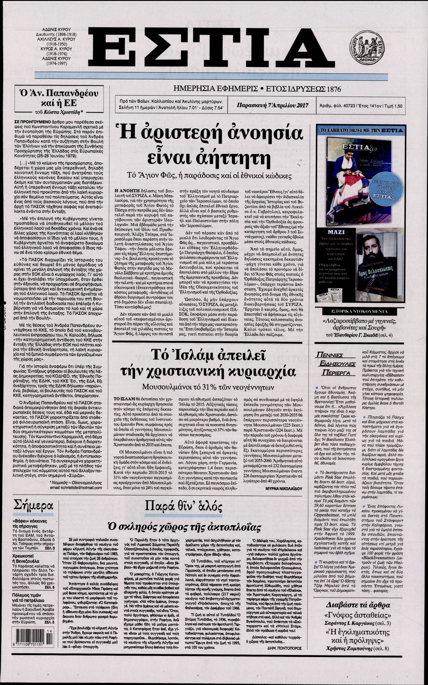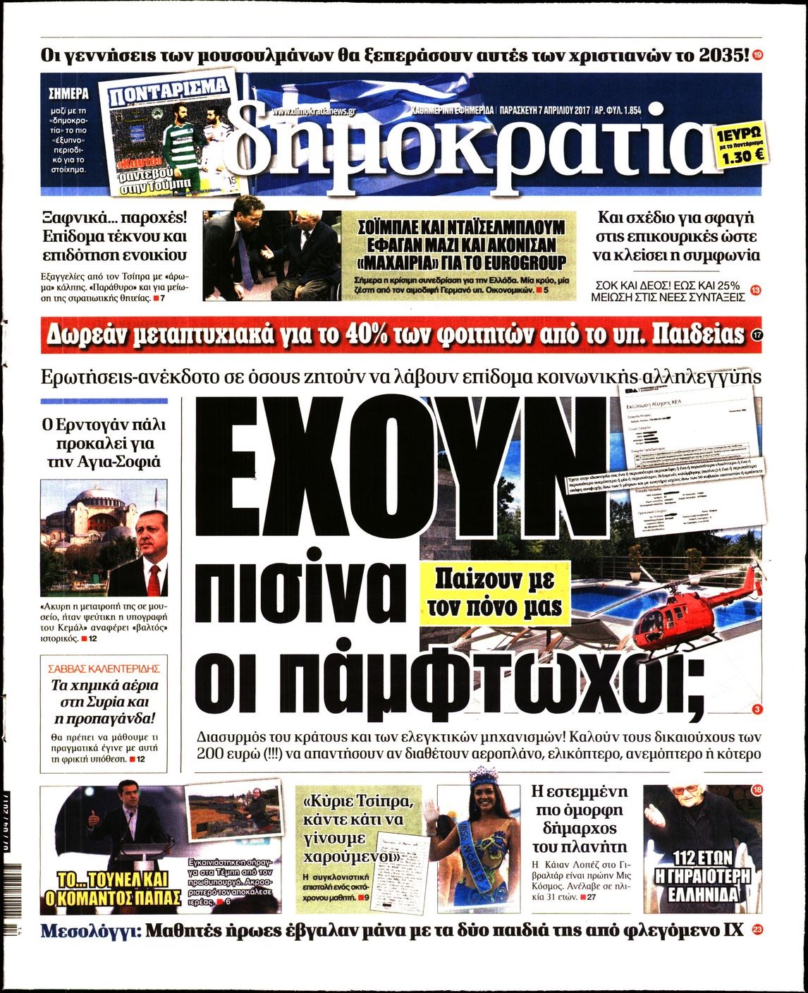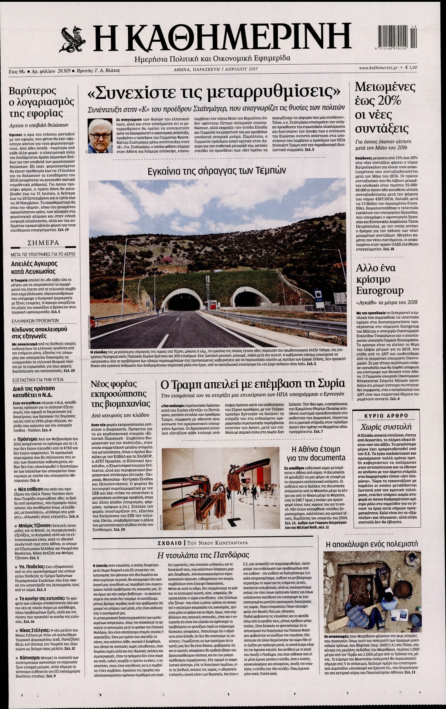 Οι πολιτικές εφημερίδες 7/4/2017 Enikos Newsroom 07:26, Παρασκευή 07 Απριλίου 2017 Media Διαβάστε τα σημερινά πρωτοσέλιδα των πολιτικών εφημερίδων: ΠΟΛΙΤΙΚΕΣ ΕΦΗΜΕΡΙΔΕΣ ΠΡΩΤΟΣΕΛΙΔΑ Μοιράσου το: σχολίασε κι εσύ (0 σχόλια) Ακολουθήστε το enikos.gr στο Google News και μάθετε πρώτοι όλες τις ειδήσεις Δείτε όλες τις τελευταίες ειδήσεις από την Ελλάδα και τον Κόσμο στο enikos.gr Ειδήσεις Ροή Ειδήσεων 21 λεπτά πριν Χριστούγεννα στα μπλόκα: Επιμένουν στις κινητοποιήσεις τους οι αγρότες – Ανοίγουν τα διόδια το Σαββατοκύριακο 49 λεπτά πριν Τραμπ: Δεν αποκλείει την πιθανότητα ενός πολέμου στη Βενεζουέλα – «Ο Μαδούρο ξέρει καλύτερα από τον καθένα τι ακριβώς θέλω» 43 λεπτά πριν Ουκρανία: Η άνευ προηγουμένου επίθεση σε ρωσικό τάνκερ στη Μεσόγειο και το μήνυμα προς στον Πούτιν – Το «μακρύ χέρι» του Κιέβου 3 ώρες πριν Πούτιν: «Ναι, είμαι ερωτευμένος» – Βίντεο από τη σπάνια προσωπική παραδοχή του 1 ώρα πριν Συνεχίζει να προκαλεί ο Μίτσκοσκι: «Για μένα το όνομα Μακεδονία είναι ιερό» 2 ώρες πριν Αριθμολογία: Οι άνθρωποι που έχουν γεννηθεί αυτές τις 4 ημερομηνίες, συχνά παρεξηγούνται – «Η καλοσύνη τους κρύβει τεράστια δύναμη» 4 ώρες πριν Μήπως έχετε χάσει τον εαυτό σας στη σχέση σας; 7 «αθόρυβες» υποχωρήσεις που μάλλον κάνατε, χωρίς να το συνειδητοποιήσετε 3 ώρες πριν Ξεχάστε το καθάρισμα το Σαββατοκύριακο: Ο «κανόνας των 20 λεπτών» που θα σας λύσει τα χέρια 58 λεπτά πριν Ύπνος: Μια κρυφή κατάσταση του εγκεφάλου πριν από τον ύπνο μπορεί να είναι το “κλειδί” για υψηλή ευφυΐα και δημιουργικότητα 4 λεπτά πριν Νίκος Ξυλούρης: Συγκινεί η χήρα του σπουδαίου καλλιτέχνη – «Ευχαριστώ όλο τον κόσμο που τον κρατάει ζωντανό 45 χρόνια» 11 λεπτά πριν Παναθηναϊκός: «Μέσα» οι Σφιντέρσκι και Τουμπά για το ματς με τον ΠΑΟΚ – Τι έδειξε η μαγνητική του Πάντοβιτς 16 λεπτά πριν Γιώργος Γιαννόπουλος για “Το σόι σου”: “Είναι ευτυχία και ευλογία αυτή η σειρά” 21 λεπτά πριν Χριστούγεννα στα μπλόκα: Επιμένουν στις κινητοποιήσεις τους οι αγρότες – Ανοίγουν τα διόδια το Σαββατοκύριακο 32 λεπτά πριν Χάρι και Μέγκαν: Η σπάνια οικογενειακή φωτογραφία με τον Άρτσι και τη Λίλιμπετ – Τι σχεδιάζουν για τα Χριστούγεννα ENIKOS NETWORK Το ΕΚΑΒ τιμήθηκε από την Ακαδημία Αθηνών για τα 40 χρόνια προσφοράς του Έχετε πραγματικά μεγάλη καρδιά; 10 χαρακτηριστικά όσων έχουν καλοσύνη Πλήρης επάρκεια προϊόντων στις λαϊκές της Αττικής, παρά τις αγροτικές κινητοποιήσεις – Τι απαντούν οι πωλητές ΑΑΔΕ: Νέες αναβαθμίσεις στο Ψηφιακό Πελατολόγιο και την εφαρμογή myDATAapp – Τι πρέπει να γνωρίζετε Χαρτογραφώντας το «σημείο χωρίς επιστροφή»: Για πρώτη φορά αποκαλύπτεται με λεπτομέρεια το ακανθώδες όριο της ατμόσφαιρας τ... Η Google καταργεί τη λειτουργία «dark web report» – Πώς θα μπορούν οι χρήστες να διαγράφουν τα δεδομένα τους περισσότερα 22:42 , Παρασκευή 19 Δεκεμβρίου 2025 Γιώργος Γιαννόπουλος για “Το σόι σου”: “Είναι ευτυχία και ευλογία αυτή η σειρά” «Είναι ευτυχία και ευλογία η συγκυρία αυτής της σειράς», θα πει ο Γιώργος Γιαννόπουλος -ο αγαπ... 20:37 , Παρασκευή 19 Δεκεμβρίου 2025 Don’t Forget The Lyrics: Η Έλλη Κοκκίνου υποδέχεται 4 παίκτες που θα κάνουν τα πάντα για να μη χάσουν ούτε… μισή λέξη από τους στίχους Το «Don’t Forget The Lyrics» επιστρέφει απόψε, Παρασκευή 19 Δεκεμβρίου, στις 21:00 με νέο επει... 19:31 , Παρασκευή 19 Δεκεμβρίου 2025 GNTM: Απόψε ο μεγάλος τελικός για τους 4 φιναλίστ Έπειτα από μήνες γεμάτους μόδα, δημιουργία και έντονες αναμετρήσεις, το GNTM 2025 κορυφώνεται,... 18:11 , Παρασκευή 1