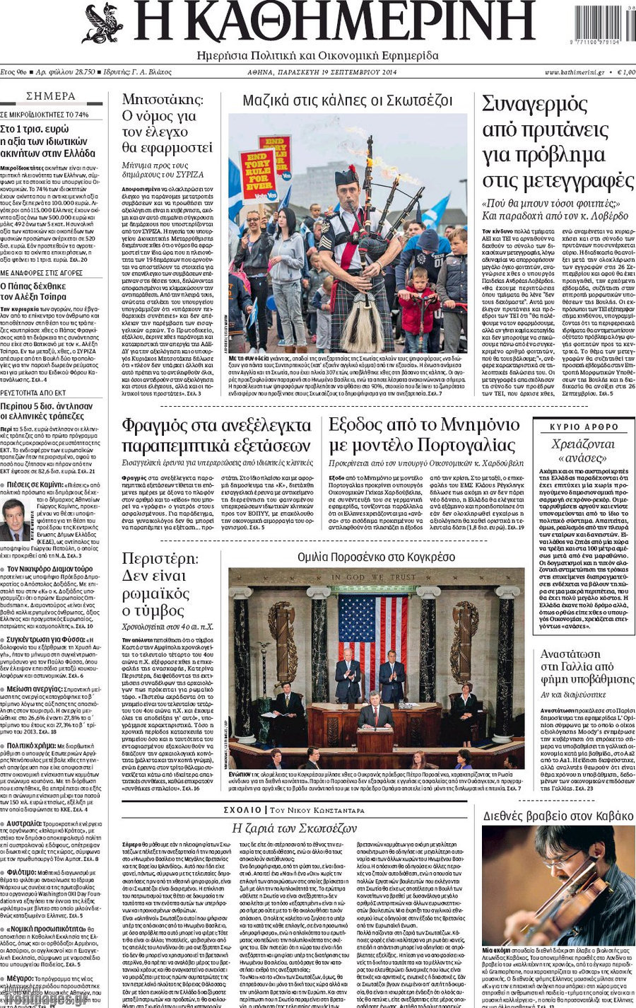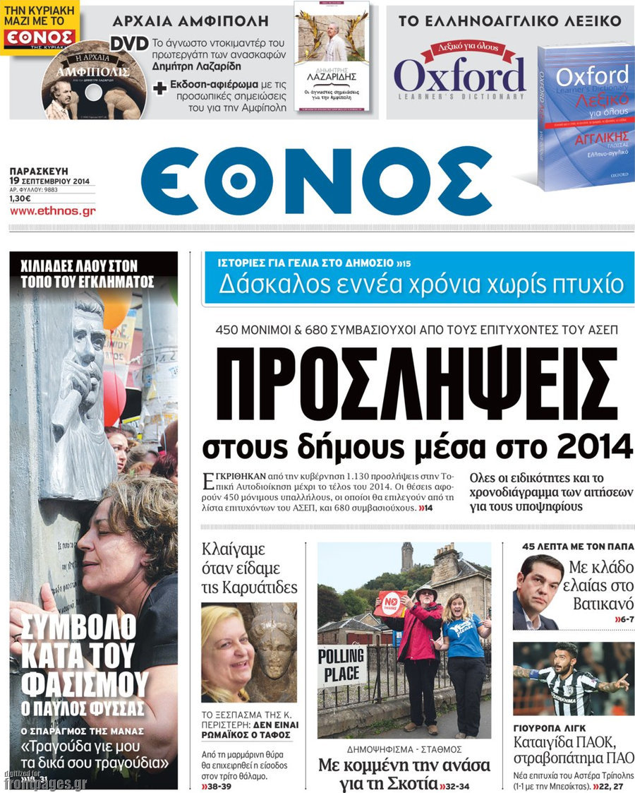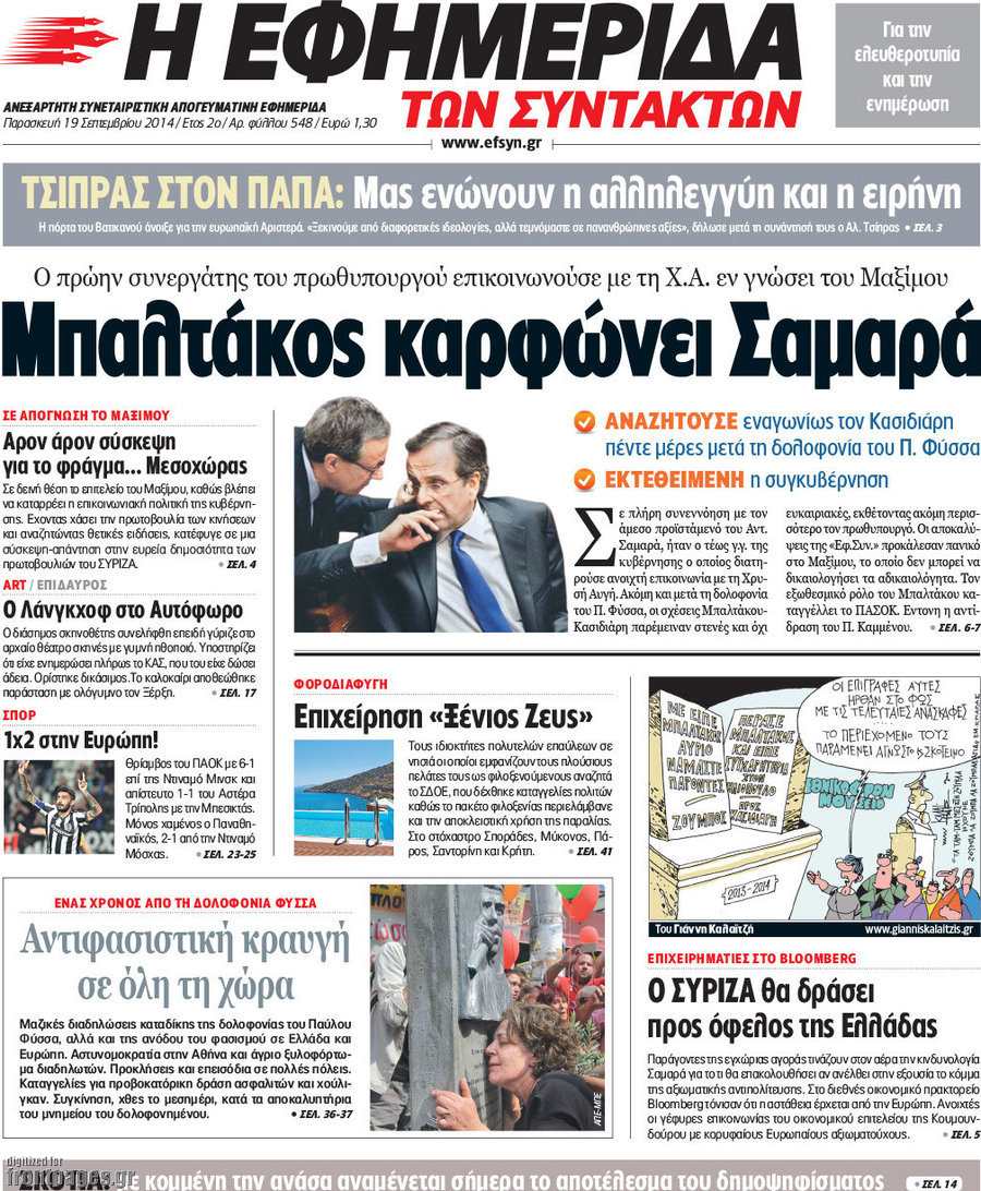 Οι πολιτικές εφημερίδες Enikos Newsroom 07:44, Παρασκευή 19 Σεπτεμβρίου 2014 Media Οι πολιτικές εφημερίδες Διαβάστε τα πρωτοσέλιδα των πολιτικών εφημερίδων: ΕΦΗΜΕΡΙΔΑ ΠΟΛΙΤΙΚΕΣ ΕΦΗΜΕΡΙΔΕΣ ΠΡΩΤΟΣΕΛΙΔΑ Μοιράσου το: σχολίασε κι εσύ (0 σχόλια) Ακολουθήστε το enikos.gr στο Google News και μάθετε πρώτοι όλες τις ειδήσεις Δείτε όλες τις τελευταίες ειδήσεις από την Ελλάδα και τον Κόσμο στο enikos.gr Ειδήσεις Ροή Ειδήσεων 45 λεπτά πριν Υπόθεση Έπσταϊν: Το Υπουργείο Δικαιοσύνης δημοσιοποίησε μια σειρά από εξαιρετικά επεξεργασμένα αρχεία – «Λείπουν τα πιο σημαντικά έγγραφα», λένε οι Δημοκρατικοί 2 ώρες πριν Σαρωτικοί οι έλεγχοι στους δρόμους ενόψει εορτών – Μπλόκα της τροχαίας σε κεντρικές αρτηρίες της Αττικής 56 λεπτά πριν ΟΝΕΧ – MEGATUGS: Ξεκίνησε η ναυπήγηση ρυμουλκών στην Ελλάδα – Προθάλαμος πολεμικών πλοίων – Δείτε φωτογραφίες και βίντεο 48 λεπτά πριν Καιρός: Αλλαγή σκηνικού σήμερα με βροχές και πτώση της θερμοκρασίας – Οι προβλέψεις των μετεωρολόγων για τα Χριστούγεννα 10 ώρες πριν Χριστούγεννα στα μπλόκα: Επιμένουν στις κινητοποιήσεις τους οι αγρότες – Ανοίγουν τα διόδια το Σαββατοκύριακο 3 ώρες πριν Αυγά: Πόσα μπορείτε να τρώτε την ημέρα με ασφάλεια για μέγιστη πρόσληψη πρωτεΐνης 3 ώρες πριν Τα ζώδια σήμερα, Σάββατο 20 Δεκεμβρίου: Παρθένοι, το σύμπαν σας δίνει το κλειδί 2 ώρες πριν Οπτική ψευδαίσθηση: Μόνο αν είσαι ο Σέρλοκ Χολμς θα βρεις τον αριθμό «87» σε 7 δευτερόλεπτα 25 λεπτά πριν Αρχαιολόγοι ανακάλυψαν σε χωράφι απεικόνιση 600 ετών ενός Αγίου – Τα στοιχεία που δείχνουν ότι μαρτύρησε 2 λεπτά πριν Η τέλεια συνταγή για cookies με κομμάτια σοκολάτας 10 λεπτά πριν MyHealth App: Τα στοιχεία για τον Προσωπικό Βοηθό Υγείας Πολίτη – Τι ερωτήματα έγιναν μέσα σε 7 ημέρες 18 λεπτά πριν Τρομεροί γονείς: Η Μαρία Καβογιάννη εισβάλλει στο σπίτι της οικογένειας Στεφανίδη 25 λεπτά πριν Αρχαιολόγοι ανακάλυψαν σε χωράφι απεικόνιση 600 ετών ενός Αγίου – Τα στοιχεία που δείχνουν ότι μαρτύρησε 33 λεπτά πριν Mega χριστουγεννιάτικη φορολοταρία: «Κλείδωσε» η ημερομηνία για την κλήρωση – Ερωτήσεις και απαντήσεις ENIKOS NETWORK Το τεστ των 10 δευτερολέπτων που μπορεί να προβλέψει το προσδόκιμο ζωής σας – Τι λέει ειδικός του Cleveland Επιλέξτε καρέκλα για να μάθετε ποια είναι τα κρυφά χαρακτηριστικά σας – Τι αποκάλυψε για εσάς αυτό το τεστ προσωπικότητας; Mega χριστουγεννιάτικη φορολοταρία: «Κλείδωσε» η ημερομηνία για την κλήρωση – Ερωτήσεις και απαντήσεις Αναστολή μέτρων αναγκαστικής εκτέλεσης για κτηνοτρόφους που πλήττονται από την ευλογιά των αιγοπροβάτων Χαρτογραφώντας το «σημείο χωρίς επιστροφή»: Για πρώτη φορά αποκαλύπτεται με λεπτομέρεια το ακανθώδες όριο της ατμόσφαιρας τ... Η Google καταργεί τη λειτουργία «dark web report» – Πώς θα μπορούν οι χρήστες να διαγράφουν τα δεδομένα τους περισσότερα 08:14 , Σάββατο 20 Δεκεμβρίου 2025 Τρομεροί γονείς: Η Μαρία Καβογιάννη εισβάλλει στο σπίτι της οικογένειας Στεφανίδη Όσα θα δούμε στο νέο διπλό επεισόδιο της σειράς «Τρομεροί γονείς», σήμερα Σάββατο 20 Δεκεμβρίο... 05:48 , Σάββατο 20 Δεκεμβρίου 2025 Οι οικονομικές εφημερίδες 20/12/2025 Διαβάστε τα πρωτοσέλιδα από τις οικονομικές εφημερίδες, σήμερα 20/12/2025. 05:43 , Σάββατο 20 Δεκεμβρίου 2025 Οι αθλητικές εφημερίδες 20/12/2025 Διαβάστε τα πρωτοσέλιδα από τις αθλητικές εφημερίδες, σήμερα 20/12/2025. 05:38 , Σάββατο 20 Δεκεμβρίου 2025 Οι πολιτικές εφημερίδες 20/12/2025 Διαβάστε τα πρωτοσέλιδα από τις πολιτικές εφημερίδες, σήμερα 20/12/2025. ΤΕΛΕΥΤΑΙΕΣ ΕΙΔΗΣΕΙΣ 10 λεπτά πριν 