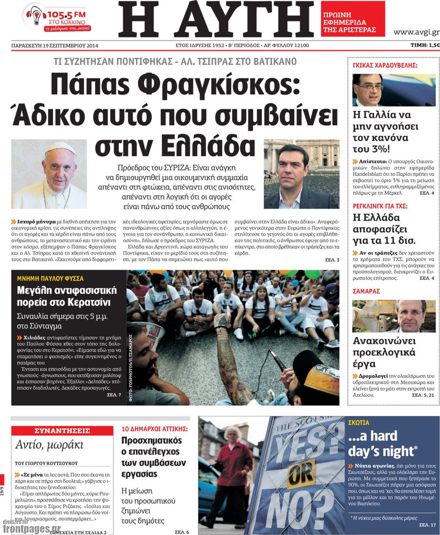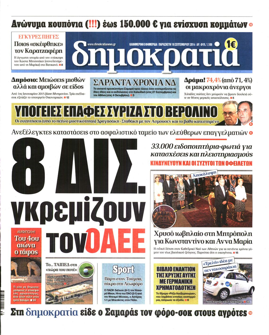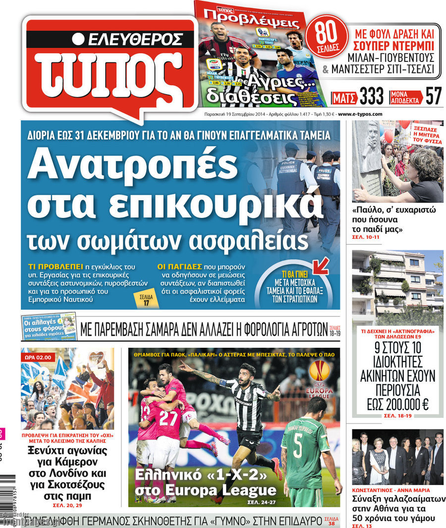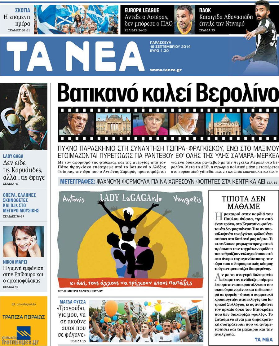 Οι πολιτικές εφημερίδες Enikos Newsroom 07:44, Παρασκευή 19 Σεπτεμβρίου 2014 Media Οι πολιτικές εφημερίδες Διαβάστε τα πρωτοσέλιδα των πολιτικών εφημερίδων: ΕΦΗΜΕΡΙΔΑ ΠΟΛΙΤΙΚΕΣ ΕΦΗΜΕΡΙΔΕΣ ΠΡΩΤΟΣΕΛΙΔΑ Μοιράσου το: σχολίασε κι εσύ (0 σχόλια) Ακολουθήστε το enikos.gr στο Google News και μάθετε πρώτοι όλες τις ειδήσεις Δείτε όλες τις τελευταίες ειδήσεις από την Ελλάδα και τον Κόσμο στο enikos.gr Ειδήσεις Ροή Ειδήσεων 45 λεπτά πριν Υπόθεση Έπσταϊν: Το Υπουργείο Δικαιοσύνης δημοσιοποίησε μια σειρά από εξαιρετικά επεξεργασμένα αρχεία – «Λείπουν τα πιο σημαντικά έγγραφα», λένε οι Δημοκρατικοί 2 ώρες πριν Σαρωτικοί οι έλεγχοι στους δρόμους ενόψει εορτών – Μπλόκα της τροχαίας σε κεντρικές αρτηρίες της Αττικής 56 λεπτά πριν ΟΝΕΧ – MEGATUGS: Ξεκίνησε η ναυπήγηση ρυμουλκών στην Ελλάδα – Προθάλαμος πολεμικών πλοίων – Δείτε φωτογραφίες και βίντεο 48 λεπτά πριν Καιρός: Αλλαγή σκηνικού σήμερα με βροχές και πτώση της θερμοκρασίας – Οι προβλέψεις των μετεωρολόγων για τα Χριστούγεννα 10 ώρες πριν Χριστούγεννα στα μπλόκα: Επιμένουν στις κινητοποιήσεις τους οι αγρότες – Ανοίγουν τα διόδια το Σαββατοκύριακο 3 ώρες πριν Αυγά: Πόσα μπορείτε να τρώτε την ημέρα με ασφάλεια για μέγιστη πρόσληψη πρωτεΐνης 3 ώρες πριν Τα ζώδια σήμερα, Σάββατο 20 Δεκεμβρίου: Παρθένοι, το σύμπαν σας δίνει το κλειδί 2 ώρες πριν Οπτική ψευδαίσθηση: Μόνο αν είσαι ο Σέρλοκ Χολμς θα βρεις τον αριθμό «87» σε 7 δευτερόλεπτα 25 λεπτά πριν Αρχαιολόγοι ανακάλυψαν σε χωράφι απεικόνιση 600 ετών ενός Αγίου – Τα στοιχεία που δείχνουν ότι μαρτύρησε 2 λεπτά πριν Η τέλεια συνταγή για cookies με κομμάτια σοκολάτας 10 λεπτά πριν MyHealth App: Τα στοιχεία για τον Προσωπικό Βοηθό Υγείας Πολίτη – Τι ερωτήματα έγιναν μέσα σε 7 ημέρες 18 λεπτά πριν Τρομεροί γονείς: Η Μαρία Καβογιάννη εισβάλλει στο σπίτι της οικογένειας Στεφανίδη 25 λεπτά πριν Αρχαιολόγοι ανακάλυψαν σε χωράφι απεικόνιση 600 ετών ενός Αγίου – Τα στοιχεία που δείχνουν ότι μαρτύρησε 33 λεπτά πριν Mega χριστουγεννιάτικη φορολοταρία: «Κλείδωσε» η ημερομηνία για την κλήρωση – Ερωτήσεις και απαντήσεις ENIKOS NETWORK Το τεστ των 10 δευτερολέπτων που μπορεί να προβλέψει το προσδόκιμο ζωής σας – Τι λέει ειδικός του Cleveland Επιλέξτε καρέκλα για να μάθετε ποια είναι τα κρυφά χαρακτηριστικά σας – Τι αποκάλυψε για εσάς αυτό το τεστ προσωπικότητας; Mega χριστουγεννιάτικη φορολοταρία: «Κλείδωσε» η ημερομηνία για την κλήρωση – Ερωτήσεις και απαντήσεις Αναστολή μέτρων αναγκαστικής εκτέλεσης για κτηνοτρόφους που πλήττονται από την ευλογιά των αιγοπροβάτων Χαρτογραφώντας το «σημείο χωρίς επιστροφή»: Για πρώτη φορά αποκαλύπτεται με λεπτομέρεια το ακανθώδες όριο της ατμόσφαιρας τ... Η Google καταργεί τη λειτουργία «dark web report» – Πώς θα μπορούν οι χρήστες να διαγράφουν τα δεδομένα τους περισσότερα 08:14 , Σάββατο 20 Δεκεμβρίου 2025 Τρομεροί γονείς: Η Μαρία Καβογιάννη εισβάλλει στο σπίτι της οικογένειας Στεφανίδη Όσα θα δούμε στο νέο διπλό επεισόδιο της σειράς «Τρομεροί γονείς», σήμερα Σάββατο 20 Δεκεμβρίο... 05:48 , Σάββατο 20 Δεκεμβρίου 2025 Οι οικονομικές εφημερίδες 20/12/2025 Διαβάστε τα πρωτοσέλιδα από τις οικονομικές εφημερίδες, σήμερα 20/12/2025. 05:43 , Σάββατο 20 Δεκεμβρίου 2025 Οι αθλητικές εφημερίδες 20/12/2025 Διαβάστε τα πρωτοσέλιδα από τις αθλητικές εφημερίδες, σήμερα 20/12/2025. 05:38 , Σάββατο 20 Δεκεμβρίου 2025 Οι πολιτικές εφημερίδες 20/12/2025 Διαβάστε τα πρωτοσέλιδα από τις πολιτικές εφημερίδες, σήμερα 20/12/2025. ΤΕΛΕΥΤΑΙΕΣ ΕΙΔΗΣΕΙΣ 10 λεπτά πριν 