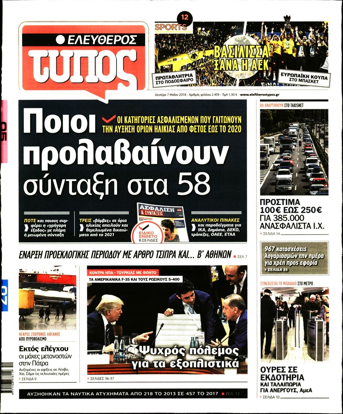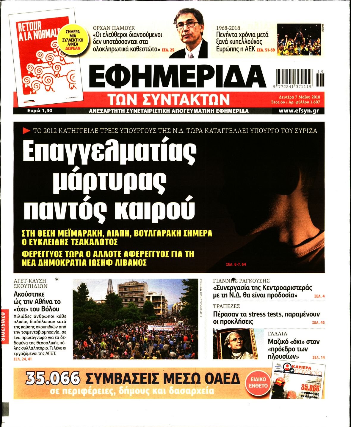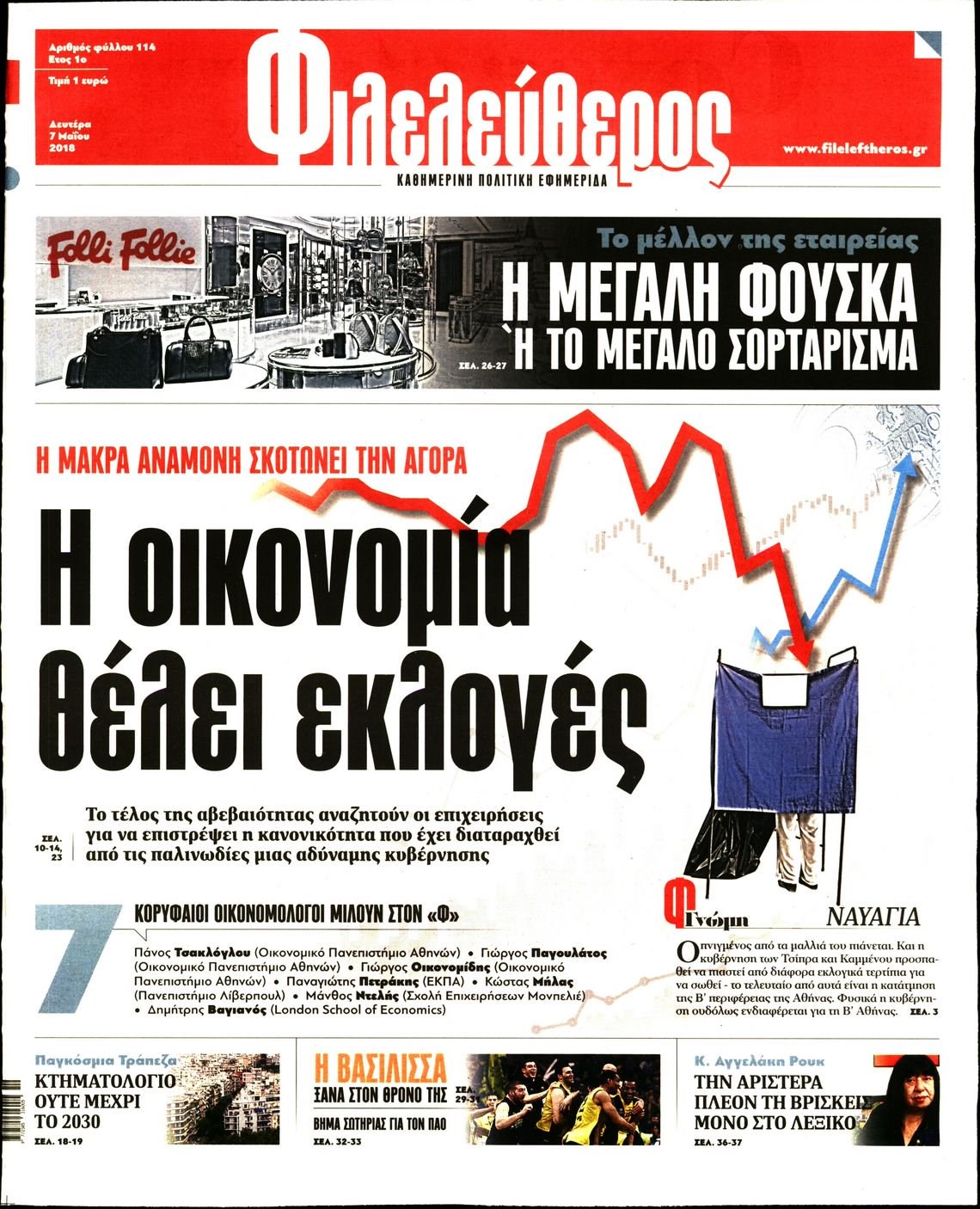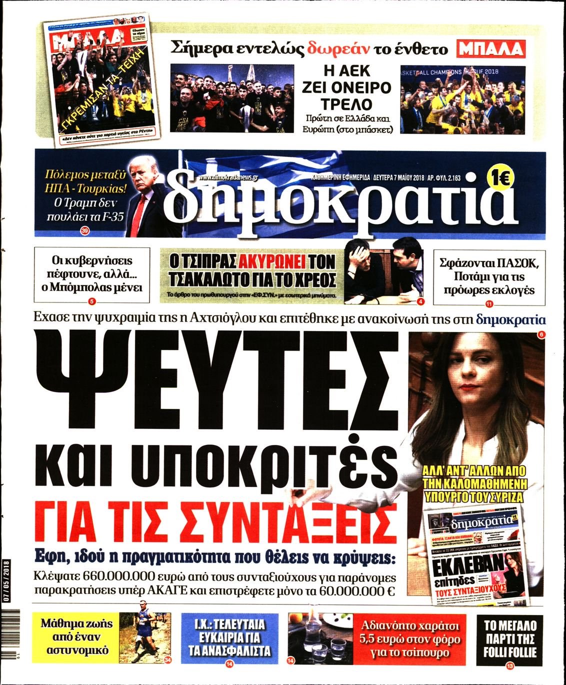 Οι πολιτικές εφημερίδες 7/5/2018 Enikos Newsroom 07:45, Δευτέρα 07 Μαΐου 2018 Media Διαβάστε τα σημερινά πρωτοσέλιδα των πολιτικών εφημερίδων: ΠΟΛΙΤΙΚΕΣ ΕΦΗΜΕΡΙΔΕΣ ΠΡΩΤΟΣΕΛΙΔΑ Μοιράσου το: σχολίασε κι εσύ (0 σχόλια) Ακολουθήστε το enikos.gr στο Google News και μάθετε πρώτοι όλες τις ειδήσεις Δείτε όλες τις τελευταίες ειδήσεις από την Ελλάδα και τον Κόσμο στο enikos.gr Ειδήσεις Ροή Ειδήσεων 4 ώρες πριν Υπόθεση Έπσταϊν: Το Υπουργείο Δικαιοσύνης δημοσιοποίησε μια σειρά από εξαιρετικά επεξεργασμένα αρχεία – «Λείπουν τα πιο σημαντικά έγγραφα», λένε οι Δημοκρατικοί 59 λεπτά πριν Γιορτές με μπλόκα για τους αγρότες: Ανοίγουν διόδια και μοιράζουν προϊόντα στους ταξιδιώτες 2 ώρες πριν Εξαφάνιση 33χρονου γιατρού στην Κρήτη: «Άναψα τα φώτα, τρόμαξε και άρχισε να τρέχει στα χωράφια» – Η τελευταία διαδρομή και η μαρτυρία «κλειδί» 3 ώρες πριν Ο «χάρτης» με τις αυξήσεις και τις φοροελαφρύνσεις του 2026 – Ποιοι και πόσα κερδίζουν 1 ώρα πριν Τα αρχεία του Έπσταϊν αποκαλύπτουν φωτογραφία του έκπτωτου πρίγκιπα Άντριου – Είναι ξαπλωμένος στην αγκαλιά 5 γυναικών 1 ώρα πριν Μία νέα «χρυσή» περίοδος αρχίζει για 3 ζώδια από σήμερα – «Μία αναπάντεχη ευκαιρία οδηγεί στην επιτυχία» 6 ώρες πριν Αυγά: Πόσα μπορείτε να τρώτε την ημέρα με ασφάλεια για μέγιστη πρόσληψη πρωτεΐνης 3 ώρες πριν Αρχαιολόγοι ανακάλυψαν σε χωράφι απεικόνιση 600 ετών ενός Αγίου – Τα στοιχεία που δείχνουν ότι μαρτύρησε 2 ώρες πριν Αγχώνεται για το χριστουγεννιάτικο δώρο που πήρε στην πλούσια σύντροφό του – «Φοβάμαι πως θα το βρει φθηνιάρικο, φοράει βραχιόλια Cartier» 8 λεπτά πριν Τραγωδία στην άσφαλτο στα Χανιά: Νεκρός 37χρονος οδηγός ΙΧ – Τον βρήκαν ώρες μετά το τροχαίο 16 λεπτά πριν Τα Labubu «μετακομίζουν» στο Χόλιγουντ: Η Sony Pictures ετοιμάζει live-action ταινία με τον σκηνοθέτη του «Wonka» 24 λεπτά πριν Νέες ταυτότητες: Μεγάλη αναμονή για ραντεβού στην Αττική – Τέλος τα ταξίδια εκτός Ελλάδος από τον Αύγουστο για όσους δεν έχουν αλλάξει 32 λεπτά πριν Οι 7 φράσεις που δεν λένε ποτέ οι συναισθηματικά έξυπνοι άνθρωποι κατά τη διάρκεια ενός καβγά 35 λεπτά πριν Τηλεθέαση (19/12): Ανατροπές και πρωτιές στην πρωινή ζώνη ENIKOS NETWORK Είστε μόνιμα απρόσεκτοι; 3 σημάδια που δείχνουν ότι μπορεί να είναι σύμπτωμα πάθησης Πόσα κιλά παίρνουμε πραγματικά τα Χριστούγεννα, σύμφωνα με την επιστήμη – Πώς να το αποτρέψουμε; e-ΕΦΚΑ και ΔΥΠΑ: Έρχονται νέες πληρωμές έως τις 24 Δεκεμβρίου – Ποιοι πάνε ταμείο Επίδομα παιδιού: Τι αλλάζει από το 2026 – Το όφελος από τις φορολογικές ελαφρύνσεις Χαρτογραφώντας το «σημείο χωρίς επιστροφή»: Για πρώτη φορά αποκαλύπτεται με λεπτομέρεια το ακανθώδες όριο της ατμόσφαιρας τ... Η Google καταργεί τη λειτουργία «dark web report» – Πώς θα μπορούν οι χρήστες να διαγράφουν τα δεδομένα τους περισσότερα 09:30 , Σάββατο 20 Δεκεμβρίου 2025 «Porto Leone: Στη γειτονιά με τα κόκκινα φανάρια» – Ο Χρόνης αποκαλύπτει στην Αλεξάνδρα το μυστικό για το παιδί της Λένας Η μεγάλη δραματική σειρά του Apha «Porto Leone: Στη γειτονιά με τα κόκκινα φανάρια» μας μεταφέ... 08:14 , Σάββατο 20 Δεκεμβρίου 2025 Τρομεροί γονείς: Η Μαρία Καβογιάννη εισβάλλει στο σπίτι της οικογένειας Στεφανίδη Όσα θα δούμε στο νέο διπλό επεισόδιο της σειράς «Τρομεροί γονείς», σήμερα Σάββατο 20 Δεκεμβρίο... 05:48 , Σάββατο 20 Δεκεμβρίου 2025 Οι οικονομικές εφημερίδες 20/12/2025 Διαβάστε τα πρωτοσέλιδα από τις οικονομικές εφημερίδες, σήμερα 20/12/2025. 05:43 , Σάββατο 20 Δεκεμβρίου 2025 Οι αθλητικές εφημερίδες 20/12/2025 Διαβάστε τα πρωτοσέλιδα από τι