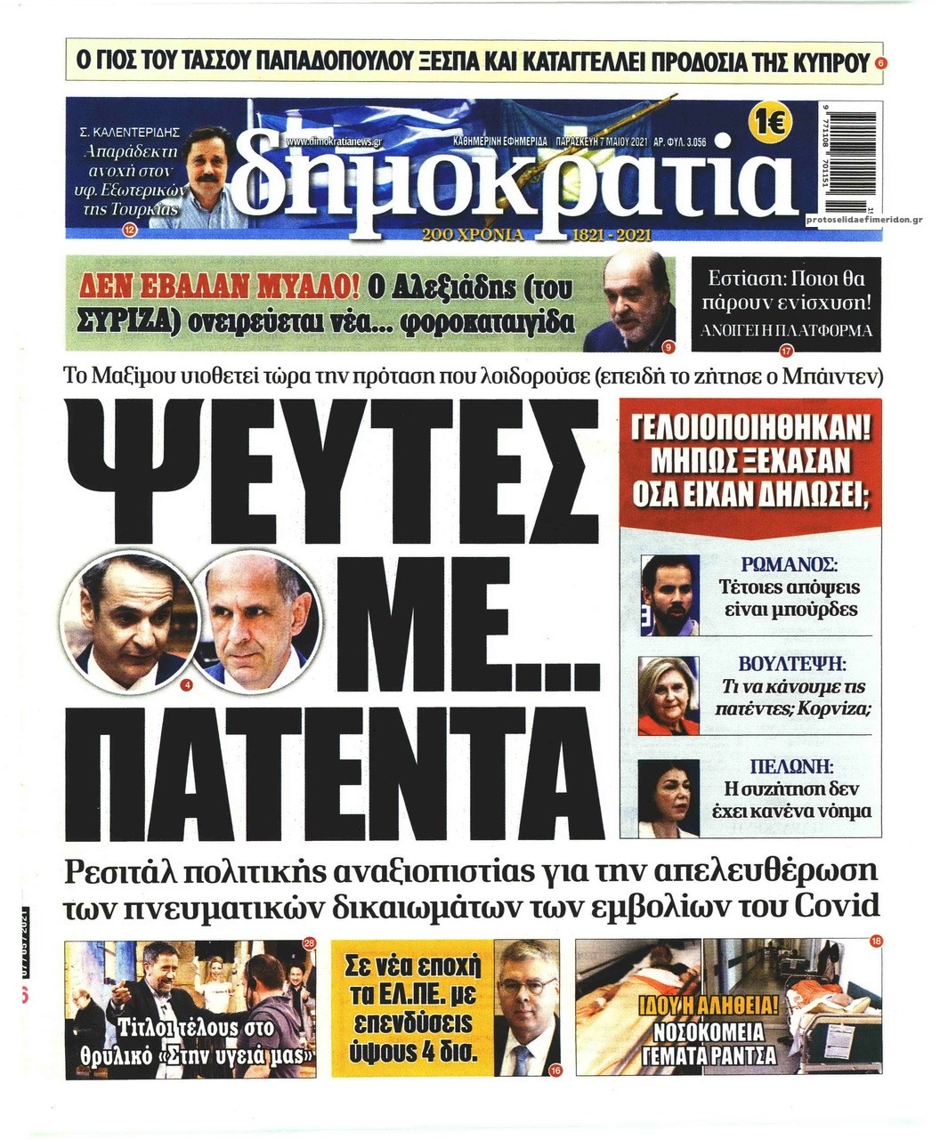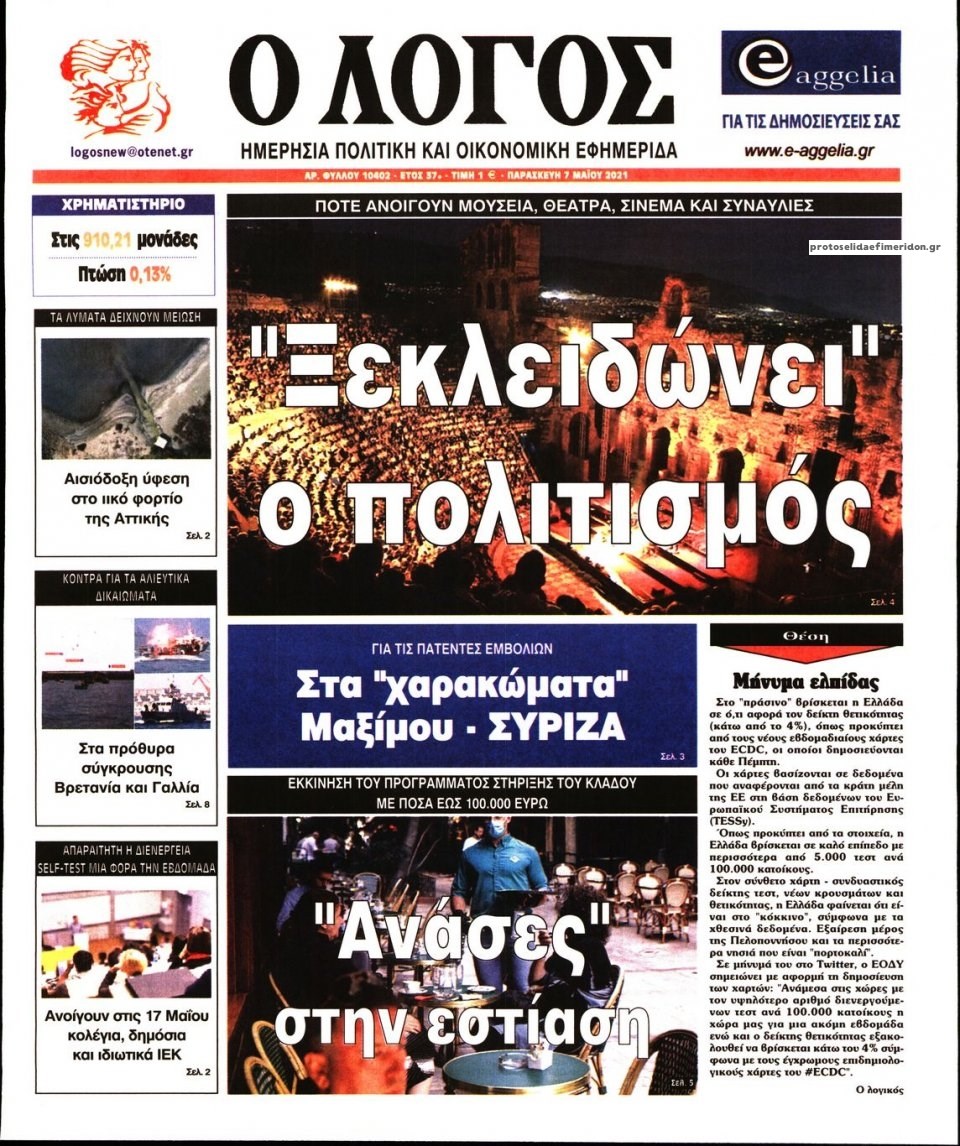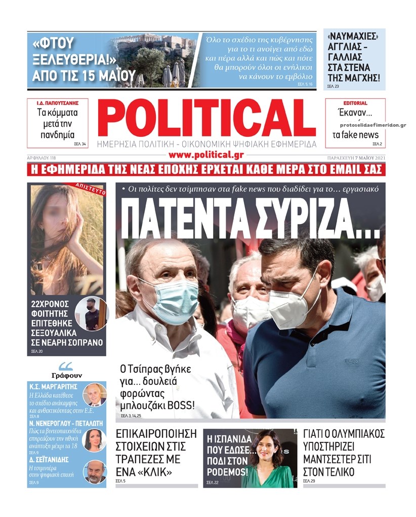 Οι πολιτικές εφημερίδες 7/5/2021 Σήφης Γαρυφαλάκης 06:32, Παρασκευή 07 Μαΐου 2021 Media Διαβάστε τα πρωτοσέλιδα των πολιτικών εφημερίδων. ΕΦΗΜΕΡΙΔΕΣ ΠΡΩΤΟΣΕΛΙΔΑ Μοιράσου το: σχολίασε κι εσύ (0 σχόλια) Ακολουθήστε το enikos.gr στο Google News και μάθετε πρώτοι όλες τις ειδήσεις Δείτε όλες τις τελευταίες ειδήσεις από την Ελλάδα και τον Κόσμο στο enikos.gr Ειδήσεις Ροή Ειδήσεων 56 λεπτά πριν Υπόθεση Έπσταϊν: Το Υπουργείο Δικαιοσύνης δημοσιοποίησε μια σειρά από εξαιρετικά επεξεργασμένα αρχεία – «Λείπουν τα πιο σημαντικά έγγραφα», λένε οι Δημοκρατικοί 3 ώρες πριν Σαρωτικοί οι έλεγχοι στους δρόμους ενόψει εορτών – Μπλόκα της τροχαίας σε κεντρικές αρτηρίες της Αττικής 1 ώρα πριν ΟΝΕΧ – MEGATUGS: Ξεκίνησε η ναυπήγηση ρυμουλκών στην Ελλάδα – Προθάλαμος πολεμικών πλοίων – Δείτε φωτογραφίες και βίντεο 59 λεπτά πριν Καιρός: Αλλαγή σκηνικού σήμερα με βροχές και πτώση της θερμοκρασίας – Οι προβλέψεις των μετεωρολόγων για τα Χριστούγεννα 10 ώρες πριν Χριστούγεννα στα μπλόκα: Επιμένουν στις κινητοποιήσεις τους οι αγρότες – Ανοίγουν τα διόδια το Σαββατοκύριακο 3 ώρες πριν Αυγά: Πόσα μπορείτε να τρώτε την ημέρα με ασφάλεια για μέγιστη πρόσληψη πρωτεΐνης 3 ώρες πριν Τα ζώδια σήμερα, Σάββατο 20 Δεκεμβρίου: Παρθένοι, το σύμπαν σας δίνει το κλειδί 2 ώρες πριν Οπτική ψευδαίσθηση: Μόνο αν είσαι ο Σέρλοκ Χολμς θα βρεις τον αριθμό «87» σε 7 δευτερόλεπτα 36 λεπτά πριν Αρχαιολόγοι ανακάλυψαν σε χωράφι απεικόνιση 600 ετών ενός Αγίου – Τα στοιχεία που δείχνουν ότι μαρτύρησε 5 λεπτά πριν Ο «χάρτης» με τις αυξήσεις και τις φοροελαφρύνσεις του 2026 – Ποιοι και πόσα κερδίζουν 13 λεπτά πριν Η τέλεια συνταγή για cookies με κομμάτια σοκολάτας 21 λεπτά πριν MyHealth App: Τα στοιχεία για τον Προσωπικό Βοηθό Υγείας Πολίτη – Τι ερωτήματα έγιναν μέσα σε 7 ημέρες 29 λεπτά πριν Τρομεροί γονείς: Η Μαρία Καβογιάννη εισβάλλει στο σπίτι της οικογένειας Στεφανίδη 36 λεπτά πριν Αρχαιολόγοι ανακάλυψαν σε χωράφι απεικόνιση 600 ετών ενός Αγίου – Τα στοιχεία που δείχνουν ότι μαρτύρησε ENIKOS NETWORK Το τεστ των 10 δευτερολέπτων που μπορεί να προβλέψει το προσδόκιμο ζωής σας – Τι λέει ειδικός του Cleveland Επιλέξτε καρέκλα για να μάθετε ποια είναι τα κρυφά χαρακτηριστικά σας – Τι αποκάλυψε για εσάς αυτό το τεστ προσωπικότητας; Mega χριστουγεννιάτικη φορολοταρία: «Κλείδωσε» η ημερομηνία για την κλήρωση – Ερωτήσεις και απαντήσεις Αναστολή μέτρων αναγκαστικής εκτέλεσης για κτηνοτρόφους που πλήττονται από την ευλογιά των αιγοπροβάτων Χαρτογραφώντας το «σημείο χωρίς επιστροφή»: Για πρώτη φορά αποκαλύπτεται με λεπτομέρεια το ακανθώδες όριο της ατμόσφαιρας τ... Η Google καταργεί τη λειτουργία «dark web report» – Πώς θα μπορούν οι χρήστες να διαγράφουν τα δεδομένα τους περισσότερα 08:14 , Σάββατο 20 Δεκεμβρίου 2025 Τρομεροί γονείς: Η Μαρία Καβογιάννη εισβάλλει στο σπίτι της οικογένειας Στεφανίδη Όσα θα δούμε στο νέο διπλό επεισόδιο της σειράς «Τρομεροί γονείς», σήμερα Σάββατο 20 Δεκεμβρίο... 05:48 , Σάββατο 20 Δεκεμβρίου 2025 Οι οικονομικές εφημερίδες 20/12/2025 Διαβάστε τα πρωτοσέλιδα από τις οικονομικές εφημερίδες, σήμερα 20/12/2025. 05:43 , Σάββατο 20 Δεκεμβρίου 2025 Οι αθλητικές εφημερίδες 20/12/2025 Διαβάστε τα πρωτοσέλιδα από τις αθλητικές εφημερίδες, σήμερα 20/12/2025. 05:38 , Σάββατο 20 Δεκεμβρίου 2025 Οι πολιτικές εφημερίδες 20/12/2025 Διαβάστε τα πρωτοσέλιδα από τις πολιτικές εφημερίδες, σήμερα 20/12/2025. ΤΕΛΕΥΤΑΙΕΣ ΕΙΔΗΣΕΙΣ 5 λεπτά πριν Ο «χάρτης» με τις αυξήσεις και τις φοροελαφρύνσεις... 13 λεπ
