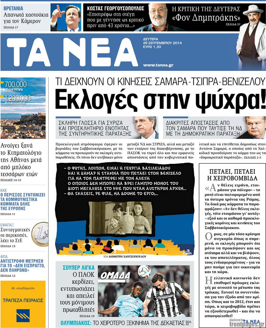 Οι πολιτικές εφημερίδες Enikos Newsroom 08:01, Δευτέρα 29 Σεπτεμβρίου 2014 Media Οι πολιτικές εφημερίδες Διαβάστε τα πρωτοσέλιδα των πολιτικών εφημερίδων: ΕΦΗΜΕΡΙΔΕΣ ΠΟΛΙΤΙΚΕΣ ΕΦΗΜΕΡΙΔΕΣ ΠΡΩΤΟΣΕΛΙΔΑ Μοιράσου το: σχολίασε κι εσύ (0 σχόλια) Ακολουθήστε το enikos.gr στο Google News και μάθετε πρώτοι όλες τις ειδήσεις Δείτε όλες τις τελευταίες ειδήσεις από την Ελλάδα και τον Κόσμο στο enikos.gr Ειδήσεις Ροή Ειδήσεων 10 ώρες πριν Κύκλωμα διακίνησης ναρκωτικών σε σχολεία: Βίντεο ντοκουμέντο από τα βασανιστήρια στους ανήλικους – Συζητούσαν για το πώς θα κάνουν «ξέπλυμα χρήματος» 56 λεπτά πριν Επίδομα θέρμανσης: Μέχρι αύριο η προκαταβολή σε περισσότερα από 1 εκατ. νοικοκυριά – Τα ποσά που θα λάβουν οι δικαιούχοι 48 λεπτά πριν Δήμος Αθηναίων: Ξεκινά σήμερα η επιστροφή πινακίδων κυκλοφορίας από τη Δημοτική Αστυνομία 9 ώρες πριν Κλιμακώνουν τις κινητοποιήσεις τους οι αγρότες: Κλείνουν τη Δευτέρα τις σήραγγες των Τεμπών για τα φορτηγά – Ανοίγουν την Τρίτη τους δρόμους για τους εκδρομείς 9 ώρες πριν ΗΠΑ: Αυξάνουν την πίεση στην Βενεζουέλα – Το νέο ρεσάλτο σε τάνκερ και ο στόχος του Τραμπ 1 ώρα πριν Οπτική ψευδαίσθηση: Μόνο οι πιο έξυπνοι άνθρωποι θα βρουν τον Άγιο Βασίλη σε 8 δευτερόλεπτα 2 ώρες πριν Άνοια και εγκεφαλικό: Γιατρός προειδοποιεί για ένα δημοφιλές ρόφημα που αυξάνει τον κίνδυνο κατά 290% και 300% αντίστοιχα 2 ώρες πριν Τα ζώδια σήμερα, Δευτέρα 22 Δεκεμβρίου: Ζυγοί, αφήστε την καρδιά σας ελεύθερη 2 ημέρες πριν Enerwave: Το νέο «ρεύμα» στη λιανική ενέργειας που αλλάζει την εμπειρία του καταναλωτή 5 λεπτά πριν Την Κυριακή με τη Realnews: Δωροεπιταγή 10€ 5 λεπτά πριν Οι αθλητικές μεταδόσεις 22/12/2025 8 λεπτά πριν Νέες εστίες ακρίβειας «ροκανίζουν» τα εισοδήματα – Πού καταγράφονται οι μεγαλύτερες αυξήσεις 13 λεπτά πριν Καιρός: Βροχές και καταιγίδες σήμερα – Σε ποιες περιοχές θα είναι έντονα τα φαινόμενα 20 λεπτά πριν Η Τουρκία μοστράρει τις κορβέτες της – Η χαμένη ευκαιρία της Ελλάδας ENIKOS NETWORK Την Κυριακή με τη Realnews: Δωροεπιταγή 10€ Μόνο όσοι έχουν την κοφτερή όραση του Άι Βασίλη θα μπορέσουν να εντοπίσουν τον λύκο σε αυτό το τεστ παρατηρητικότητας Νέες εστίες ακρίβειας «ροκανίζουν» τα εισοδήματα -Που καταγράφονται οι μεγαλύτερες αυξήσεις Νέο έτος ρεκόρ για τον ελληνικό τουρισμό το 2025: «Είμαστε μέσα στους 10 πλέον επισκέψιμους προορισμούς παγκοσμίως» λέει η ... Χαρτογραφώντας το «σημείο χωρίς επιστροφή»: Για πρώτη φορά αποκαλύπτεται με λεπτομέρεια το ακανθώδες όριο της ατμόσφαιρας τ... Η Google καταργεί τη λειτουργία «dark web report» – Πώς θα μπορούν οι χρήστες να διαγράφουν τα δεδομένα τους περισσότερα 07:02 , Δευτέρα 22 Δεκεμβρίου 2025 Αυτή την Κυριακή με τη Realnews: Το μυστήριο των Χριστουγέννων της Vicki Delany – Μαζί αστυνομικά μυθιστορήματα Αυτή την Κυριακή με τη Realnews: Το μυστήριο των Χριστουγέννων της Vicki Delany – Μαζί α... 05:48 , Δευτέρα 22 Δεκεμβρίου 2025 Οι οικονομικές εφημερίδες 22/12/2025 Διαβάστε τα πρωτοσέλιδα από τις οικονομικές εφημερίδες, σήμερα 22/12/2025 05:43 , Δευτέρα 22 Δεκεμβρίου 2025 Οι αθλητικές εφημερίδες 22/12/2025 Διαβάστε τα πρωτοσέλιδα από τις αθλητικές εφημερίδες, σήμερα 22/12/2025. 05:38 , Δευτέρα 22 Δεκεμβρίου 2025 Οι πολιτικές εφημερίδες 22/12/2025 Διαβάστε τα πρωτοσέλιδα από τις πολιτικές εφημερίδες, σήμερα 22/12/2025. ΤΕΛΕΥΤΑΙΕΣ ΕΙΔΗΣΕΙΣ 5 λεπτά πριν Την Κυριακή με τη Realnews: Δωροεπιταγή 10€ 5 λεπτά πριν Οι αθλητικές μεταδόσεις 22/12/2025 8 λεπτά πριν Νέες εστίες ακρίβειας «ροκανίζουν» τα εισοδήματα –... 13 λεπτά πριν Καιρός: Βροχέ