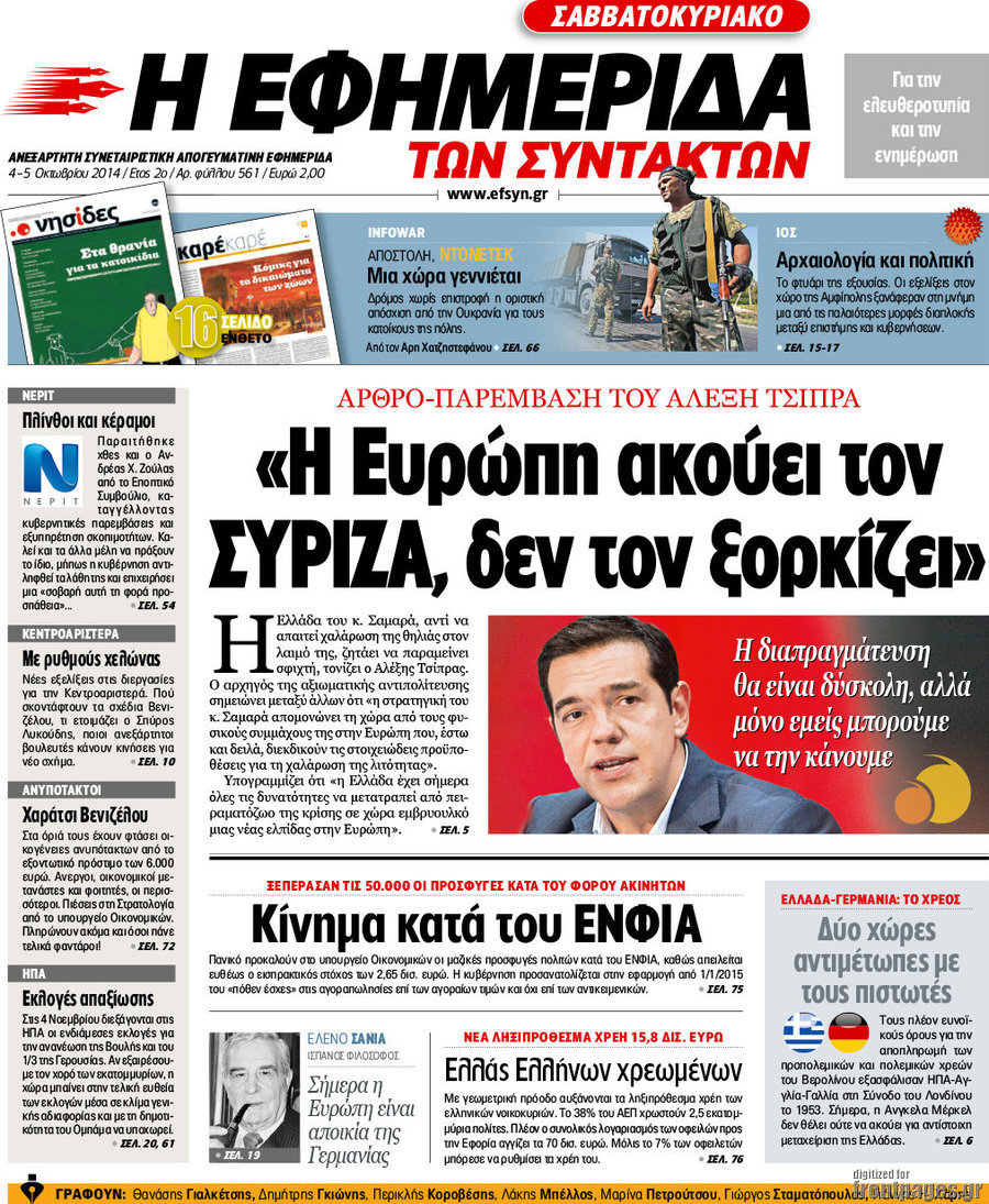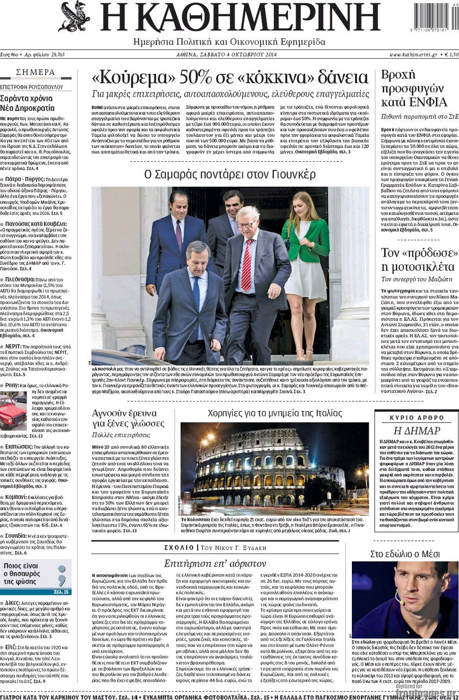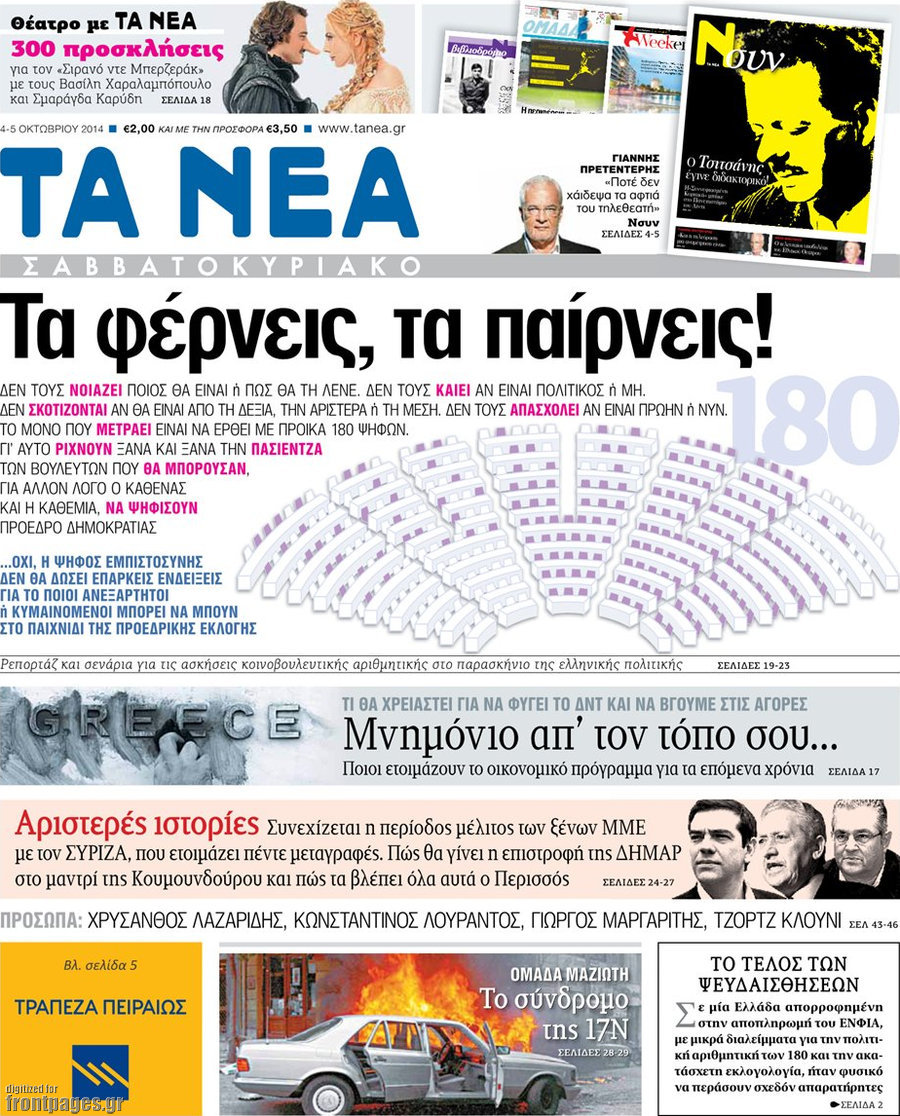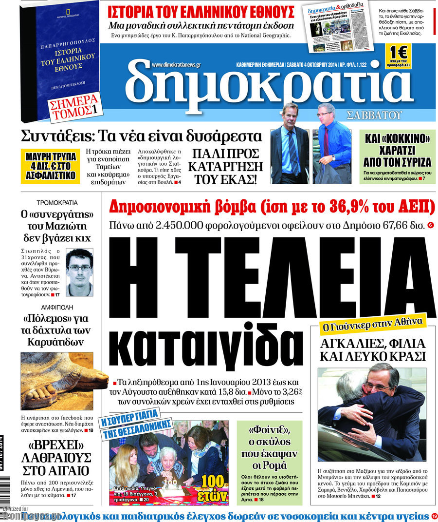Οι πολιτικές εφημερίδες Enikos Newsroom 07:53, Σάββατο 04 Οκτωβρίου 2014 Media Οι πολιτικές εφημερίδες Διαβάστε τα πρωτοσέλιδα των πολιτικών εφημερίδων. ΠΟΛΙΤΙΚΕΣ ΕΦΗΜΕΡΙΔΕΣ ΠΡΩΤΟΣΕΛΙΔΑ Μοιράσου το: σχολίασε κι εσύ (0 σχόλια) Ακολουθήστε το enikos.gr στο Google News και μάθετε πρώτοι όλες τις ειδήσεις Δείτε όλες τις τελευταίες ειδήσεις από την Ελλάδα και τον Κόσμο στο enikos.gr Ειδήσεις Ροή Ειδήσεων 3 λεπτά πριν Υπόθεση Έπσταϊν: Το Υπουργείο Δικαιοσύνης δημοσιοποίησε μια σειρά από εξαιρετικά επεξεργασμένα αρχεία – «Λείπουν τα πιο σημαντικά έγγραφα», λένε οι Δημοκρατικοί 9 ώρες πριν Χριστούγεννα στα μπλόκα: Επιμένουν στις κινητοποιήσεις τους οι αγρότες – Ανοίγουν τα διόδια το Σαββατοκύριακο 2 ώρες πριν Σαρωτικοί οι έλεγχοι στους δρόμους ενόψει εορτών – Μπλόκα της τροχαίας σε κεντρικές αρτηρίες της Αττικής 9 ώρες πριν Πούτιν: Τα μηνύματα σε Ευρώπη και ΝΑΤΟ από το μαραθώνιο «σόου» του – Η απαίτηση για «σεβασμό» και η ειρήνη «με τους όρους» της Μόσχας 8 ώρες πριν Άνω Λιόσια: Πυροβολισμοί σε επιχείρηση με χαλιά – Εντοπίστηκαν 10 κάλυκες 2 ώρες πριν Αυγά: Πόσα μπορείτε να τρώτε την ημέρα με ασφάλεια για μέγιστη πρόσληψη πρωτεΐνης 2 ώρες πριν Τα ζώδια σήμερα, Σάββατο 20 Δεκεμβρίου: Παρθένοι, το σύμπαν σας δίνει το κλειδί 9 ώρες πριν Ανακαλύφθηκαν αρχαία χρυσά νομίσματα 2.200 ετών που απεικονίζουν τον θεό Απόλλωνα – Η άγνωστη σύνδεση με τον Φίλιππο Β΄ της Μακεδονίας 2 ώρες πριν Οπτική ψευδαίσθηση: Μόνο αν είσαι ο Σέρλοκ Χολμς θα βρεις τον αριθμό «87» σε 7 δευτερόλεπτα 3 λεπτά πριν Υπόθεση Έπσταϊν: Το Υπουργείο Δικαιοσύνης δημοσιοποίησε μια σειρά από εξαιρετικά επεξεργασμένα αρχεία – «Λείπουν τα πιο σημαντικά έγγραφα», λένε οι Δημοκρατικοί 6 λεπτά πριν Καιρός: Αλλαγή σκηνικού σήμερα με βροχές και πτώση της θερμοκρασίας – Οι προβλέψεις των μετεωρολόγων για τα Χριστούγεννα 14 λεπτά πριν ΟΝΕΧ – MEGATUGS: Ξεκίνησε η ναυπήγηση ρυμουλκών στην Ελλάδα – Προθάλαμος πολεμικών πλοίων – Δείτε φωτογραφίες και βίντεο 22 λεπτά πριν Φοινικούντα: Σήμερα απολογείται ο 30χρονος γιος γνωστού επιχειρηματία της Πλάκας 30 λεπτά πριν Οι αθλητικές μεταδόσεις 20/12/2025 ENIKOS NETWORK Πρέπει να αποδέχεστε ή να απορρίπτετε όλα τα cookies; Ένας ειδικός εξηγεί Η αγαπημένη λιχουδιά των πόνι που μπορεί να ενισχύσει όραση, εγκέφαλο και ανοσοποιητικό Αναστολή μέτρων αναγκαστικής εκτέλεσης για κτηνοτρόφους που πλήττονται από την ευλογιά των αιγοπροβάτων Πλήρης επάρκεια προϊόντων στις λαϊκές της Αττικής, παρά τις αγροτικές κινητοποιήσεις – Τι απαντούν οι πωλητές Χαρτογραφώντας το «σημείο χωρίς επιστροφή»: Για πρώτη φορά αποκαλύπτεται με λεπτομέρεια το ακανθώδες όριο της ατμόσφαιρας τ... Η Google καταργεί τη λειτουργία «dark web report» – Πώς θα μπορούν οι χρήστες να διαγράφουν τα δεδομένα τους περισσότερα 05:48 , Σάββατο 20 Δεκεμβρίου 2025 Οι οικονομικές εφημερίδες 20/12/2025 Διαβάστε τα πρωτοσέλιδα από τις οικονομικές εφημερίδες, σήμερα 20/12/2025. 05:43 , Σάββατο 20 Δεκεμβρίου 2025 Οι αθλητικές εφημερίδες 20/12/2025 Διαβάστε τα πρωτοσέλιδα από τις αθλητικές εφημερίδες, σήμερα 20/12/2025. 05:38 , Σάββατο 20 Δεκεμβρίου 2025 Οι πολιτικές εφημερίδες 20/12/2025 Διαβάστε τα πρωτοσέλιδα από τις πολιτικές εφημερίδες, σήμερα 20/12/2025. 04:20 , Σάββατο 20 Δεκεμβρίου 2025 Αγγελική Νικολούλη: Τα συλλυπητήρια για την απώλεια της Ειρήνης Μαρινάκη Τα συλληπητήρια στον πρόεδρο του Mega, τον Βαγγέλη Μαρινάκη, για την απώλεια της μητέρας του Ε... ΤΕΛΕΥΤΑΙΕΣ ΕΙΔΗΣΕΙΣ 3 λεπτά πριν Υπόθεση Έπσταϊν