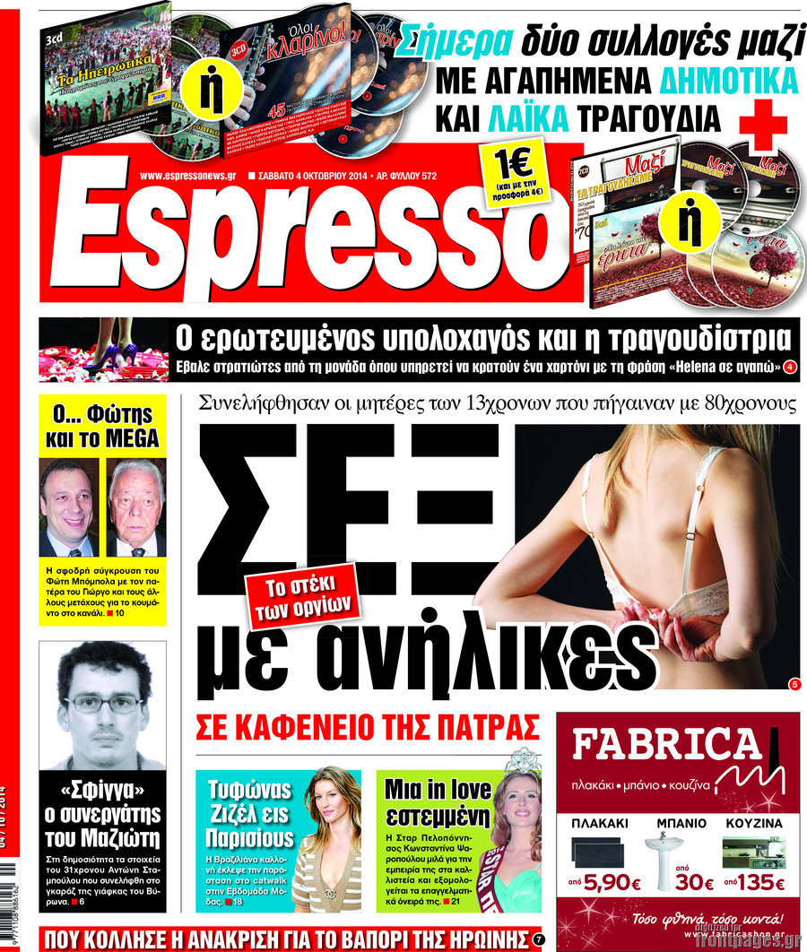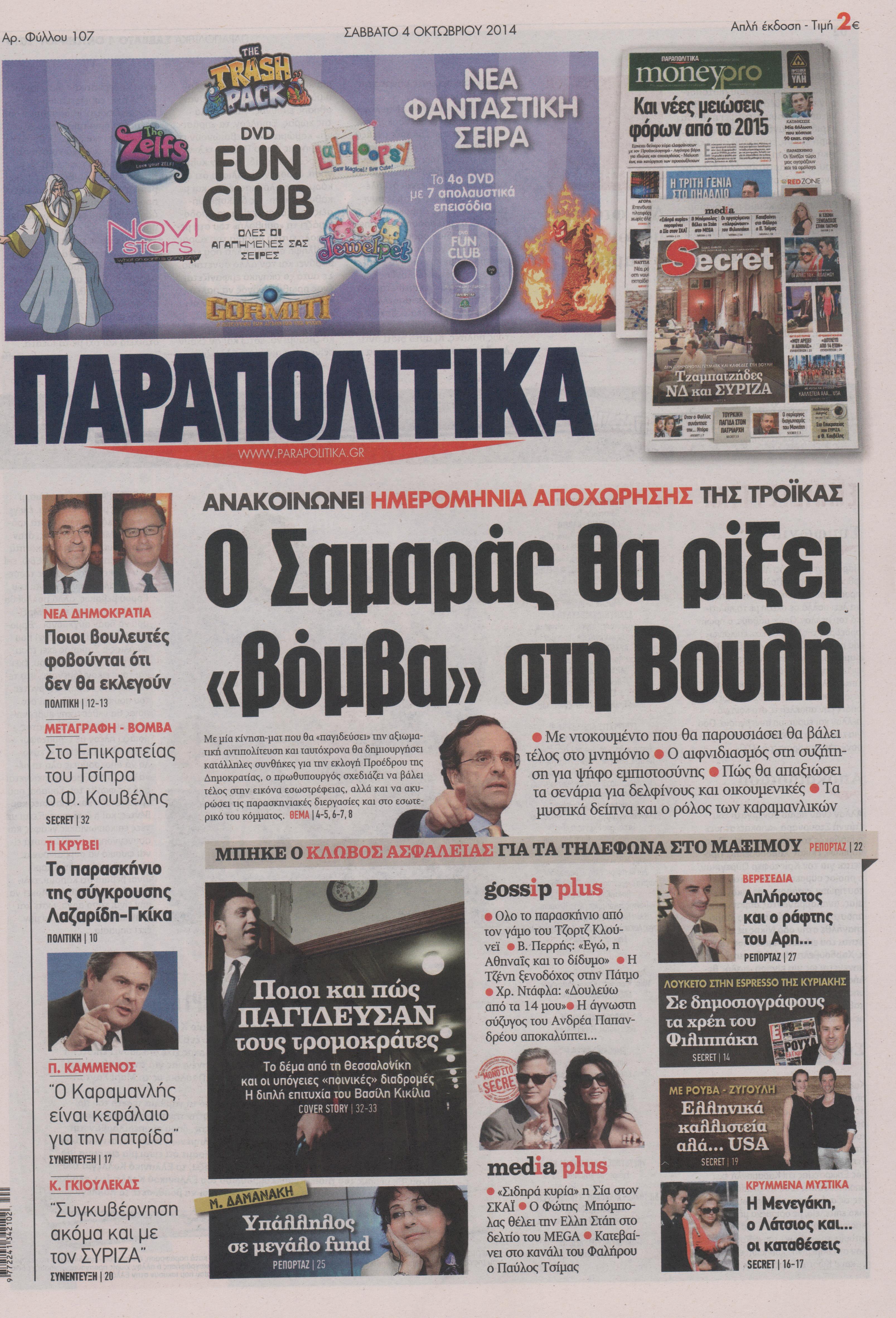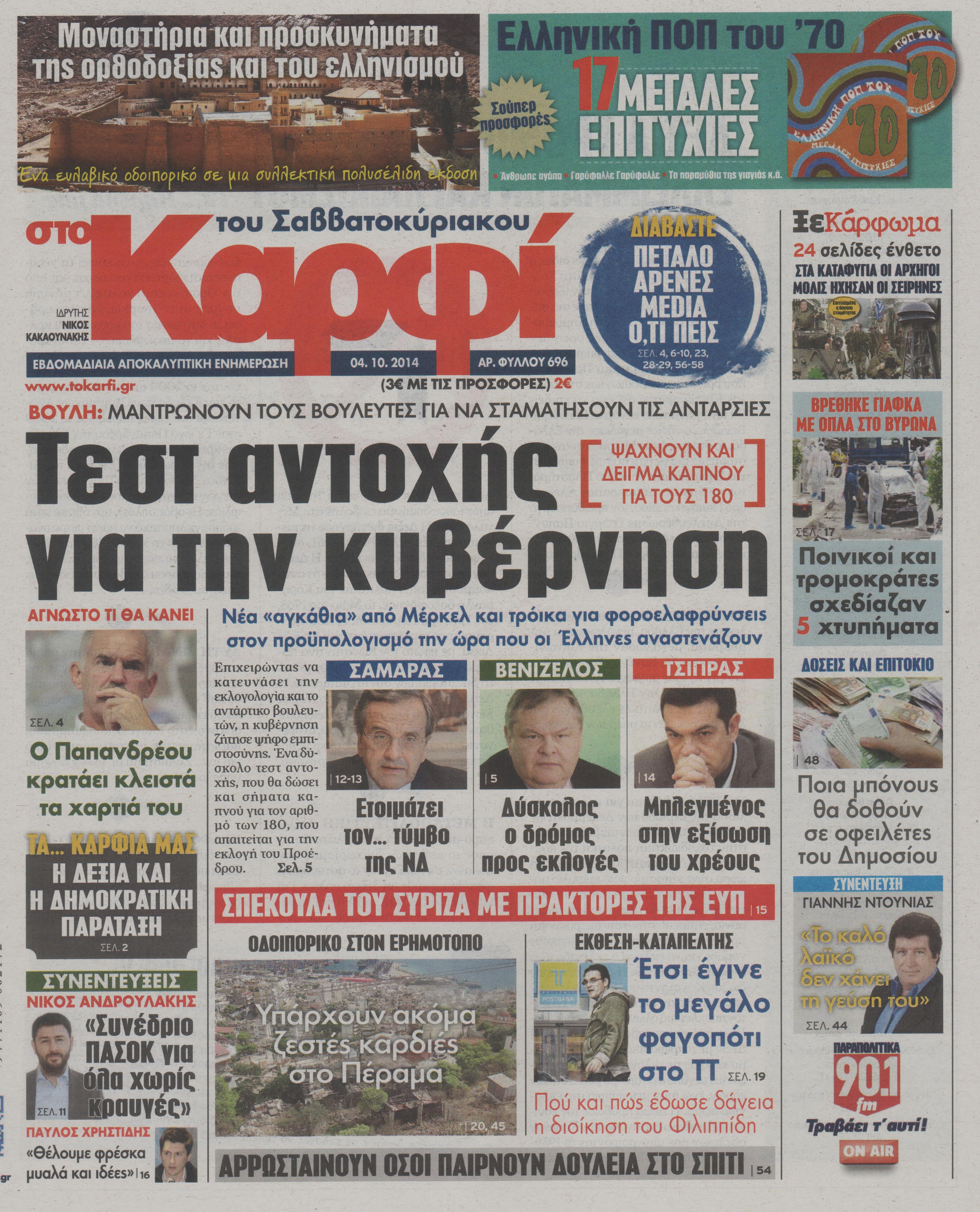 Οι πολιτικές εφημερίδες Enikos Newsroom 07:53, Σάββατο 04 Οκτωβρίου 2014 Media Οι πολιτικές εφημερίδες Διαβάστε τα πρωτοσέλιδα των πολιτικών εφημερίδων. ΠΟΛΙΤΙΚΕΣ ΕΦΗΜΕΡΙΔΕΣ ΠΡΩΤΟΣΕΛΙΔΑ Μοιράσου το: σχολίασε κι εσύ (0 σχόλια) Ακολουθήστε το enikos.gr στο Google News και μάθετε πρώτοι όλες τις ειδήσεις Δείτε όλες τις τελευταίες ειδήσεις από την Ελλάδα και τον Κόσμο στο enikos.gr Ειδήσεις Ροή Ειδήσεων 3 λεπτά πριν Υπόθεση Έπσταϊν: Το Υπουργείο Δικαιοσύνης δημοσιοποίησε μια σειρά από εξαιρετικά επεξεργασμένα αρχεία – «Λείπουν τα πιο σημαντικά έγγραφα», λένε οι Δημοκρατικοί 9 ώρες πριν Χριστούγεννα στα μπλόκα: Επιμένουν στις κινητοποιήσεις τους οι αγρότες – Ανοίγουν τα διόδια το Σαββατοκύριακο 2 ώρες πριν Σαρωτικοί οι έλεγχοι στους δρόμους ενόψει εορτών – Μπλόκα της τροχαίας σε κεντρικές αρτηρίες της Αττικής 9 ώρες πριν Πούτιν: Τα μηνύματα σε Ευρώπη και ΝΑΤΟ από το μαραθώνιο «σόου» του – Η απαίτηση για «σεβασμό» και η ειρήνη «με τους όρους» της Μόσχας 8 ώρες πριν Άνω Λιόσια: Πυροβολισμοί σε επιχείρηση με χαλιά – Εντοπίστηκαν 10 κάλυκες 2 ώρες πριν Αυγά: Πόσα μπορείτε να τρώτε την ημέρα με ασφάλεια για μέγιστη πρόσληψη πρωτεΐνης 2 ώρες πριν Τα ζώδια σήμερα, Σάββατο 20 Δεκεμβρίου: Παρθένοι, το σύμπαν σας δίνει το κλειδί 9 ώρες πριν Ανακαλύφθηκαν αρχαία χρυσά νομίσματα 2.200 ετών που απεικονίζουν τον θεό Απόλλωνα – Η άγνωστη σύνδεση με τον Φίλιππο Β΄ της Μακεδονίας 2 ώρες πριν Οπτική ψευδαίσθηση: Μόνο αν είσαι ο Σέρλοκ Χολμς θα βρεις τον αριθμό «87» σε 7 δευτερόλεπτα 3 λεπτά πριν Υπόθεση Έπσταϊν: Το Υπουργείο Δικαιοσύνης δημοσιοποίησε μια σειρά από εξαιρετικά επεξεργασμένα αρχεία – «Λείπουν τα πιο σημαντικά έγγραφα», λένε οι Δημοκρατικοί 6 λεπτά πριν Καιρός: Αλλαγή σκηνικού σήμερα με βροχές και πτώση της θερμοκρασίας – Οι προβλέψεις των μετεωρολόγων για τα Χριστούγεννα 14 λεπτά πριν ΟΝΕΧ – MEGATUGS: Ξεκίνησε η ναυπήγηση ρυμουλκών στην Ελλάδα – Προθάλαμος πολεμικών πλοίων – Δείτε φωτογραφίες και βίντεο 22 λεπτά πριν Φοινικούντα: Σήμερα απολογείται ο 30χρονος γιος γνωστού επιχειρηματία της Πλάκας 30 λεπτά πριν Οι αθλητικές μεταδόσεις 20/12/2025 ENIKOS NETWORK Πρέπει να αποδέχεστε ή να απορρίπτετε όλα τα cookies; Ένας ειδικός εξηγεί Η αγαπημένη λιχουδιά των πόνι που μπορεί να ενισχύσει όραση, εγκέφαλο και ανοσοποιητικό Αναστολή μέτρων αναγκαστικής εκτέλεσης για κτηνοτρόφους που πλήττονται από την ευλογιά των αιγοπροβάτων Πλήρης επάρκεια προϊόντων στις λαϊκές της Αττικής, παρά τις αγροτικές κινητοποιήσεις – Τι απαντούν οι πωλητές Χαρτογραφώντας το «σημείο χωρίς επιστροφή»: Για πρώτη φορά αποκαλύπτεται με λεπτομέρεια το ακανθώδες όριο της ατμόσφαιρας τ... Η Google καταργεί τη λειτουργία «dark web report» – Πώς θα μπορούν οι χρήστες να διαγράφουν τα δεδομένα τους περισσότερα 05:48 , Σάββατο 20 Δεκεμβρίου 2025 Οι οικονομικές εφημερίδες 20/12/2025 Διαβάστε τα πρωτοσέλιδα από τις οικονομικές εφημερίδες, σήμερα 20/12/2025. 05:43 , Σάββατο 20 Δεκεμβρίου 2025 Οι αθλητικές εφημερίδες 20/12/2025 Διαβάστε τα πρωτοσέλιδα από τις αθλητικές εφημερίδες, σήμερα 20/12/2025. 05:38 , Σάββατο 20 Δεκεμβρίου 2025 Οι πολιτικές εφημερίδες 20/12/2025 Διαβάστε τα πρωτοσέλιδα από τις πολιτικές εφημερίδες, σήμερα 20/12/2025. 04:20 , Σάββατο 20 Δεκεμβρίου 2025 Αγγελική Νικολούλη: Τα συλλυπητήρια για την απώλεια της Ειρήνης Μαρινάκη Τα συλληπητήρια στον πρόεδρο του Mega, τον Βαγγέλη Μαρινάκη, για την απώλεια της μητέρας του Ε... ΤΕΛΕΥΤΑΙΕΣ ΕΙΔΗΣΕΙΣ 3 λεπτά πριν Υπόθεση Έπσταϊν