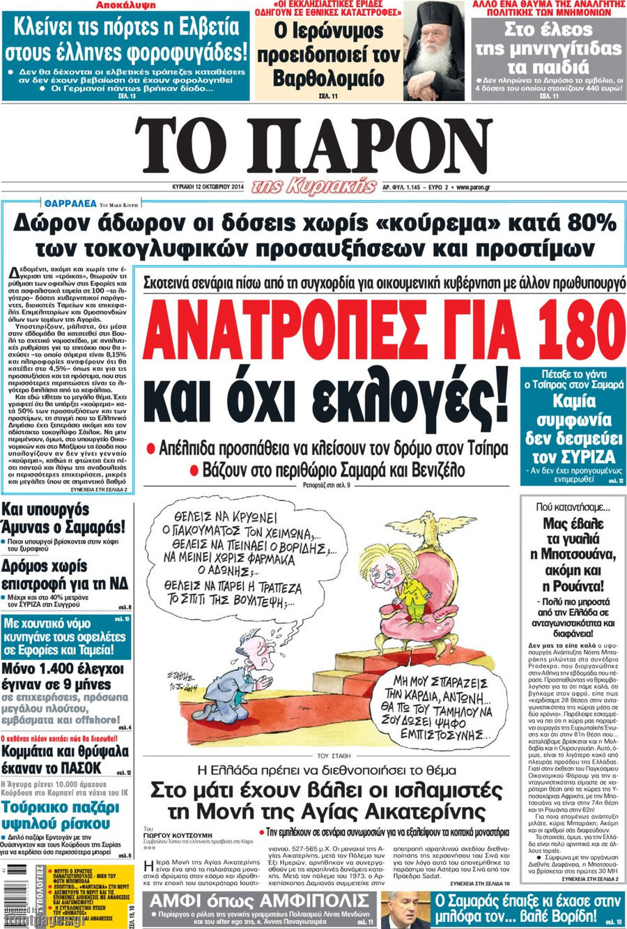 Οι πολιτικές εφημερίδες Enikos Newsroom 07:56, Κυριακή 12 Οκτωβρίου 2014 Media Οι πολιτικές εφημερίδες Διαβάστε τα πρωτοσέλιδα των πολιτικών εφημερίδων: ΕΦΗΜΕΡΙΔΕΣ ΠΟΛΙΤΙΚΕΣ ΕΦΗΜΕΡΙΔΕΣ ΠΡΩΤΟΣΕΛΙΔΑ Μοιράσου το: σχολίασε κι εσύ (0 σχόλια) Ακολουθήστε το enikos.gr στο Google News και μάθετε πρώτοι όλες τις ειδήσεις Δείτε όλες τις τελευταίες ειδήσεις από την Ελλάδα και τον Κόσμο στο enikos.gr Ειδήσεις Ροή Ειδήσεων 4 ώρες πριν Υπόθεση Έπσταϊν: Το Υπουργείο Δικαιοσύνης δημοσιοποίησε μια σειρά από εξαιρετικά επεξεργασμένα αρχεία – «Λείπουν τα πιο σημαντικά έγγραφα», λένε οι Δημοκρατικοί 1 ώρα πριν Γιορτές με μπλόκα για τους αγρότες: Ανοίγουν διόδια και μοιράζουν προϊόντα στους ταξιδιώτες 2 ώρες πριν Εξαφάνιση 33χρονου γιατρού στην Κρήτη: «Άναψα τα φώτα, τρόμαξε και άρχισε να τρέχει στα χωράφια» – Η τελευταία διαδρομή και η μαρτυρία «κλειδί» 3 ώρες πριν Ο «χάρτης» με τις αυξήσεις και τις φοροελαφρύνσεις του 2026 – Ποιοι και πόσα κερδίζουν 1 ώρα πριν Τα αρχεία του Έπσταϊν αποκαλύπτουν φωτογραφία του έκπτωτου πρίγκιπα Άντριου – Είναι ξαπλωμένος στην αγκαλιά 5 γυναικών 1 ώρα πριν Μία νέα «χρυσή» περίοδος αρχίζει για 3 ζώδια από σήμερα – «Μία αναπάντεχη ευκαιρία οδηγεί στην επιτυχία» 6 ώρες πριν Αυγά: Πόσα μπορείτε να τρώτε την ημέρα με ασφάλεια για μέγιστη πρόσληψη πρωτεΐνης 4 ώρες πριν Αρχαιολόγοι ανακάλυψαν σε χωράφι απεικόνιση 600 ετών ενός Αγίου – Τα στοιχεία που δείχνουν ότι μαρτύρησε 3 ώρες πριν Αγχώνεται για το χριστουγεννιάτικο δώρο που πήρε στην πλούσια σύντροφό του – «Φοβάμαι πως θα το βρει φθηνιάρικο, φοράει βραχιόλια Cartier» 7 λεπτά πριν Στέφανος Παπαδόπουλος: Η συνέντευξη μετά τη μήνυση στον Γιώργο Μαζωνάκη – «Δεν θέλω να τα βρούμε εξωδικαστικά» 14 λεπτά πριν Τραγωδία στην άσφαλτο στα Χανιά: Νεκρός 37χρονος οδηγός ΙΧ – Τον βρήκαν ώρες μετά το τροχαίο 22 λεπτά πριν Τα Labubu «μετακομίζουν» στο Χόλιγουντ: Η Sony Pictures ετοιμάζει live-action ταινία με τον σκηνοθέτη του «Wonka» 30 λεπτά πριν Νέες ταυτότητες: Μεγάλη αναμονή για ραντεβού στην Αττική – Τέλος τα ταξίδια εκτός Ελλάδος από τον Αύγουστο για όσους δεν έχουν αλλάξει 38 λεπτά πριν Οι 7 φράσεις που δεν λένε ποτέ οι συναισθηματικά έξυπνοι άνθρωποι κατά τη διάρκεια ενός καβγά ENIKOS NETWORK Είστε μόνιμα απρόσεκτοι; 3 σημάδια που δείχνουν ότι μπορεί να είναι σύμπτωμα πάθησης Πόσα κιλά παίρνουμε πραγματικά τα Χριστούγεννα, σύμφωνα με την επιστήμη – Πώς να το αποτρέψουμε; e-ΕΦΚΑ και ΔΥΠΑ: Έρχονται νέες πληρωμές έως τις 24 Δεκεμβρίου – Ποιοι πάνε ταμείο Επίδομα παιδιού: Τι αλλάζει από το 2026 – Το όφελος από τις φορολογικές ελαφρύνσεις Χαρτογραφώντας το «σημείο χωρίς επιστροφή»: Για πρώτη φορά αποκαλύπτεται με λεπτομέρεια το ακανθώδες όριο της ατμόσφαιρας τ... Η Google καταργεί τη λειτουργία «dark web report» – Πώς θα μπορούν οι χρήστες να διαγράφουν τα δεδομένα τους περισσότερα 09:30 , Σάββατο 20 Δεκεμβρίου 2025 «Porto Leone: Στη γειτονιά με τα κόκκινα φανάρια» – Ο Χρόνης αποκαλύπτει στην Αλεξάνδρα το μυστικό για το παιδί της Λένας Η μεγάλη δραματική σειρά του Apha «Porto Leone: Στη γειτονιά με τα κόκκινα φανάρια» μας μεταφέ... 08:14 , Σάββατο 20 Δεκεμβρίου 2025 Τρομεροί γονείς: Η Μαρία Καβογιάννη εισβάλλει στο σπίτι της οικογένειας Στεφανίδη Όσα θα δούμε στο νέο διπλό επεισόδιο της σειράς «Τρομεροί γονείς», σήμερα Σάββατο 20 Δεκεμβρίο... 05:48 , Σάββατο 20 Δεκεμβρίου 2025 Οι οικονομικές εφημερίδες 20/12/2025 Διαβάστε τα πρωτοσέλιδα από τις οικονομικές εφημερίδες, σήμερα 20/12/2025. 05:43 , Σάββ