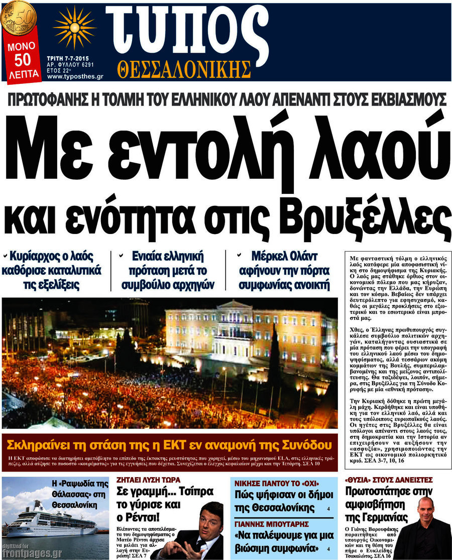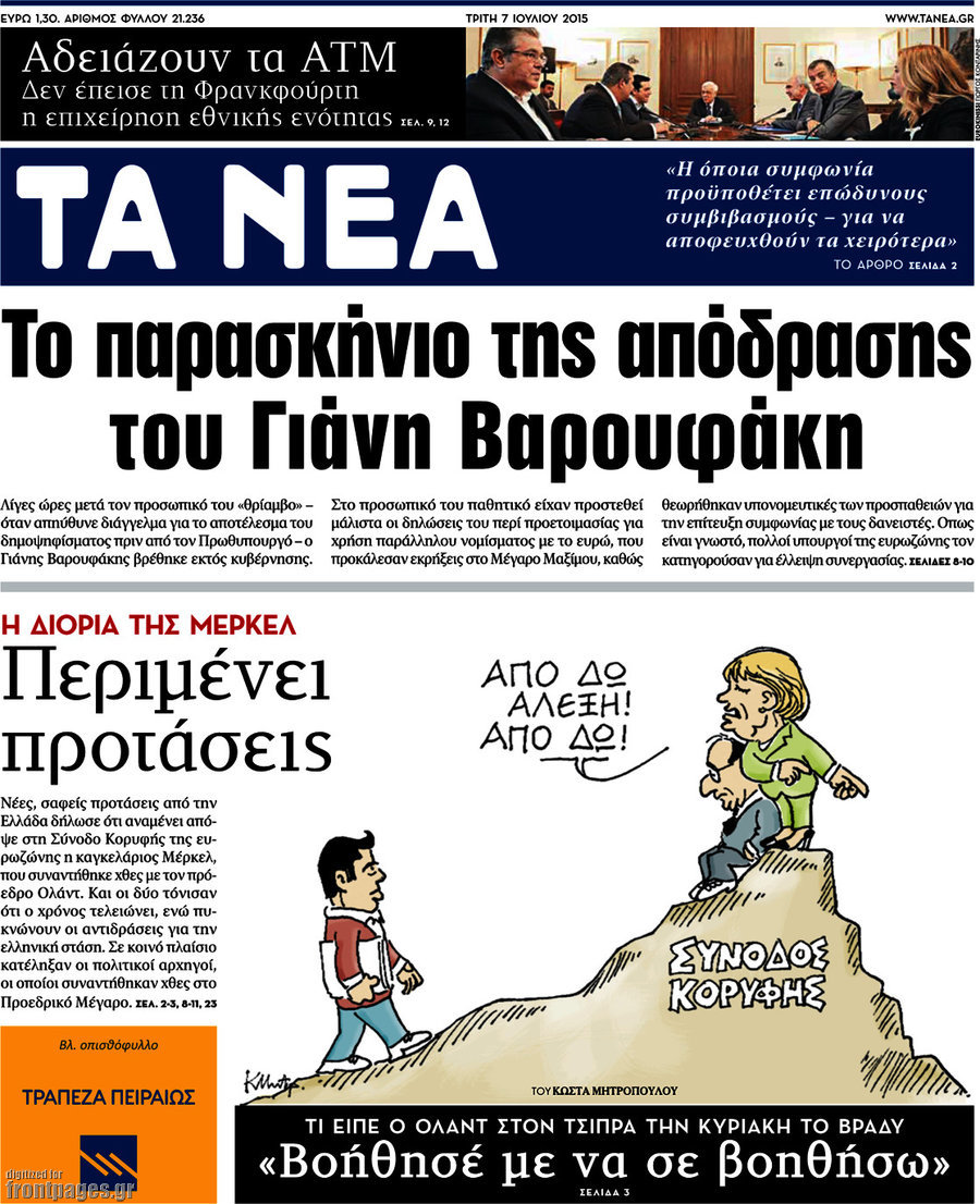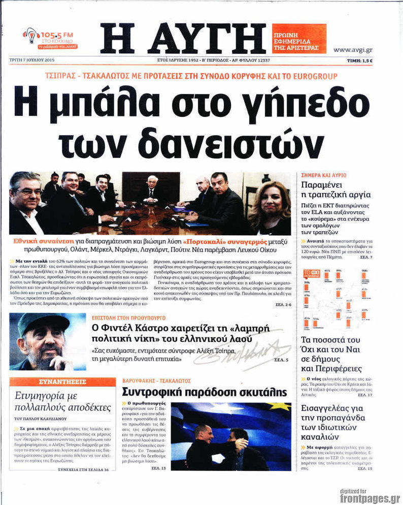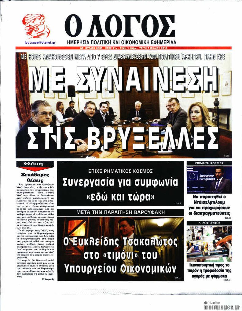Οι πολιτικές εφημερίδες 7/7/2015 Enikos Newsroom 07:36, Τρίτη 07 Ιουλίου 2015 Media Διαβάστε τα σημερινά πρωτοσέλιδα των σημερινών πολιτικών εφημερίδων: ΠΟΛΙΤΙΚΕΣ ΕΦΗΜΕΡΙΔΕΣ ΠΡΩΤΟΣΕΛΙΔΑ Μοιράσου το: σχολίασε κι εσύ (0 σχόλια) Ακολουθήστε το enikos.gr στο Google News και μάθετε πρώτοι όλες τις ειδήσεις Δείτε όλες τις τελευταίες ειδήσεις από την Ελλάδα και τον Κόσμο στο enikos.gr Ειδήσεις Ροή Ειδήσεων 2 ώρες πριν Μεσόγειος: Η διαδρομή του ρωσικού τάνκερ «Qendil» και η στοχευμένη επίθεση της Ουκρανίας με drone – Ο Πούτιν προειδοποίησε για αντίποινα 2 ώρες πριν Αττική: Θρίλερ με νεκρό βρέφος 5 μηνών – Κοιμόταν στο ίδιο κρεβάτι με τους γονείς του 3 ώρες πριν Από το Ορμένιο ως τα Μάλγαρα κι από τη Σιάτιστα μέχρι τη Νίκαια: Μπλόκα σε όλη την Ελλάδα – Το Σάββατο ανοίγουν τα διόδια οι αγρότες 3 ώρες πριν «Έλληνας Εσκομπάρ»: Φωτογραφίες με τους 4 τόνους κοκαΐνης που κατασχέθηκαν από το σκάφος «Ουρανία» 4 ώρες πριν Πούτιν: Σαρκαστικά μηνύματα, παράπονα και απρόοπτα στη συνέντευξη Τύπου – Η πρόταση γάμου on air και οι ερωτήσεις για τα αγγούρια και τους… εξωγήινους 4 ώρες πριν Τα 5 ζώδια που ευνοούνται στην ερωτική ζωή τους την επόμενη εβδομάδα – «Η ενέργεια του Αιγόκερου φέρνει αγάπη και σταθερότητα» 8 ώρες πριν Ειδικός μοιράζεται 6 κόλπα για να διατηρείστε σε φόρμα με πάνω από 40 ώρες εργασίας την εβδομάδα: «Προπονηθείτε πριν από τη δουλειά, όχι μετά» 5 ώρες πριν Αυτό το έξυπνο μαθηματικό κόλπο θα μπορούσε να αλλάξει τον τρόπο με τον οποίο οι επιστήμονες μελετούν τους σεισμούς 3 ώρες πριν Κουίζ για την παλιά Αθήνα: Αναγνωρίζετε την περιοχή; Έχετε περάσει 100% από εκεί 53 δευτερόλεπτα πριν Αγρότες: Έκλεισαν την υψηλή γέφυρα της Χαλκίδας – ΒΙΝΤΕΟ 5 λεπτά πριν Ρούμπιο: Έχει υπάρξει πρόοδος στις συνομιλίες για την Ουκρανία – Τα τελευταία ζητήματα είναι τα πιο δύσκολα 12 λεπτά πριν Πούτιν: «Ναι, είμαι ερωτευμένος» – Βίντεο από τη σπάνια προσωπική παραδοχή του 16 λεπτά πριν Γαλλία – Shein: Υποχρεωτικός έλεγχος ηλικίας των πελατών μετά τον σάλο με τις ερωτικές κούκλες 21 λεπτά πριν Εμπλοκή και αερομαχίες με οπλισμένα τουρκικά F-16 στο Αιγαίο ENIKOS NETWORK Έχετε πραγματικά μεγάλη καρδιά; 10 χαρακτηριστικά όσων έχουν καλοσύνη «Η σούπερ» γρίπη εξαπλώνεται στην Ευρώπη-Στοιχεία από το ECDC για την αποτελεσματικότητα του εμβολίου Επίδομα παιδιού: Πότε ανοίγει ξανά η πλατφόρμα για τις αιτήσεις Προκήρυξη ΑΣΕΠ για 397 μόνιμες προσλήψεις στο Δημόσιο: Βγήκαν τα προσωρινά αποτελέσματα – Πότε αρχίζει η υποβολή ενστάσεων Χαρτογραφώντας το «σημείο χωρίς επιστροφή»: Για πρώτη φορά αποκαλύπτεται με λεπτομέρεια το ακανθώδες όριο της ατμόσφαιρας τ... Η Google καταργεί τη λειτουργία «dark web report» – Πώς θα μπορούν οι χρήστες να διαγράφουν τα δεδομένα τους περισσότερα 19:31 , Παρασκευή 19 Δεκεμβρίου 2025 GNTM: Απόψε ο μεγάλος τελικός για τους 4 φιναλίστ Έπειτα από μήνες γεμάτους μόδα, δημιουργία και έντονες αναμετρήσεις, το GNTM 2025 κορυφώνεται,... 18:11 , Παρασκευή 19 Δεκεμβρίου 2025 Το σόι σου: Ο Άρης έρχεται στην Ελλάδα για τις γιορτές των Χριστουγέννων – Τι θα δούμε στο αποψινό εορταστικό επεισόδιο Ένα απολαυστικό, εορταστικό επεισόδιο της σειράς “Το σόι σου”, γεμάτο ευτράπελα αλ... 15:15 , Παρασκευή 19 Δεκεμβρίου 2025 Την Κυριακή με τη Realnews: Ό,τι και αν αγοράσεις, σκανάρεις και κερδίζεις! Την Κυριακή με τη Realnews: Ό,τι και αν αγοράσεις, σκανάρεις και κερδίζεις! Με το PADU app, το... 08:00 , Παρασκευή 19 Δεκεμβρίου 2025 Την Κυριακή με τη Realnews: Δωροεπιταγή 10€ Δωροεπιταγή αξίας 