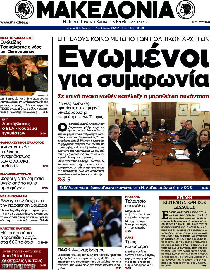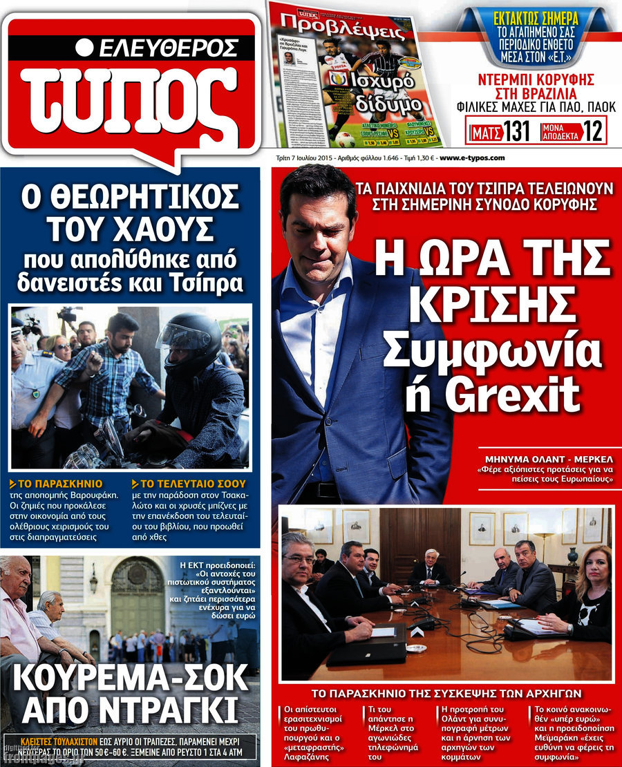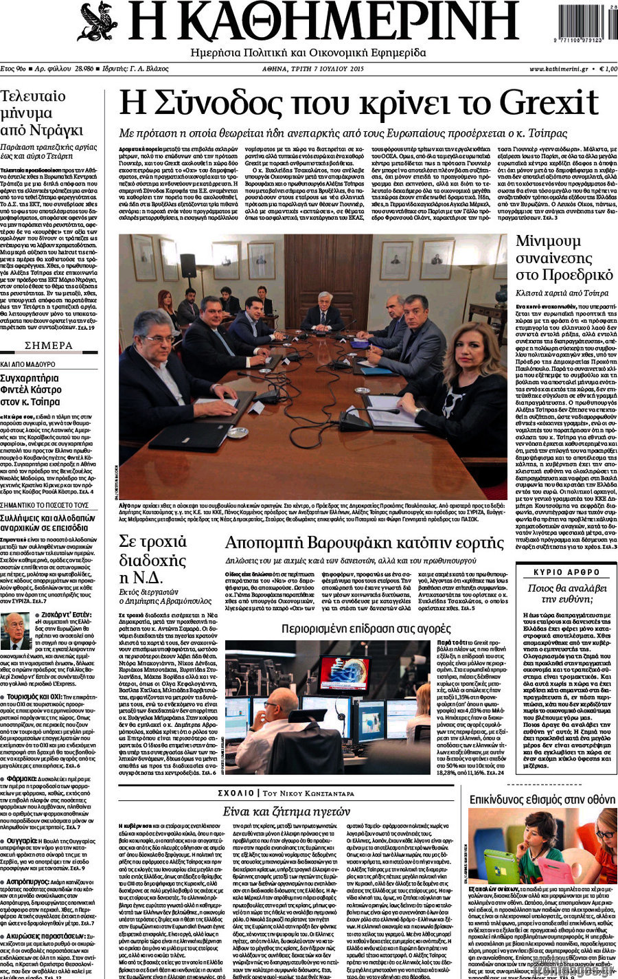 Οι πολιτικές εφημερίδες 7/7/2015 Enikos Newsroom 07:36, Τρίτη 07 Ιουλίου 2015 Media Διαβάστε τα σημερινά πρωτοσέλιδα των σημερινών πολιτικών εφημερίδων: ΠΟΛΙΤΙΚΕΣ ΕΦΗΜΕΡΙΔΕΣ ΠΡΩΤΟΣΕΛΙΔΑ Μοιράσου το: σχολίασε κι εσύ (0 σχόλια) Ακολουθήστε το enikos.gr στο Google News και μάθετε πρώτοι όλες τις ειδήσεις Δείτε όλες τις τελευταίες ειδήσεις από την Ελλάδα και τον Κόσμο στο enikos.gr Ειδήσεις Ροή Ειδήσεων 2 ώρες πριν Μεσόγειος: Η διαδρομή του ρωσικού τάνκερ «Qendil» και η στοχευμένη επίθεση της Ουκρανίας με drone – Ο Πούτιν προειδοποίησε για αντίποινα 2 ώρες πριν Αττική: Θρίλερ με νεκρό βρέφος 5 μηνών – Κοιμόταν στο ίδιο κρεβάτι με τους γονείς του 3 ώρες πριν Από το Ορμένιο ως τα Μάλγαρα κι από τη Σιάτιστα μέχρι τη Νίκαια: Μπλόκα σε όλη την Ελλάδα – Το Σάββατο ανοίγουν τα διόδια οι αγρότες 3 ώρες πριν «Έλληνας Εσκομπάρ»: Φωτογραφίες με τους 4 τόνους κοκαΐνης που κατασχέθηκαν από το σκάφος «Ουρανία» 4 ώρες πριν Πούτιν: Σαρκαστικά μηνύματα, παράπονα και απρόοπτα στη συνέντευξη Τύπου – Η πρόταση γάμου on air και οι ερωτήσεις για τα αγγούρια και τους… εξωγήινους 4 ώρες πριν Τα 5 ζώδια που ευνοούνται στην ερωτική ζωή τους την επόμενη εβδομάδα – «Η ενέργεια του Αιγόκερου φέρνει αγάπη και σταθερότητα» 8 ώρες πριν Ειδικός μοιράζεται 6 κόλπα για να διατηρείστε σε φόρμα με πάνω από 40 ώρες εργασίας την εβδομάδα: «Προπονηθείτε πριν από τη δουλειά, όχι μετά» 5 ώρες πριν Αυτό το έξυπνο μαθηματικό κόλπο θα μπορούσε να αλλάξει τον τρόπο με τον οποίο οι επιστήμονες μελετούν τους σεισμούς 3 ώρες πριν Κουίζ για την παλιά Αθήνα: Αναγνωρίζετε την περιοχή; Έχετε περάσει 100% από εκεί 53 δευτερόλεπτα πριν Αγρότες: Έκλεισαν την υψηλή γέφυρα της Χαλκίδας – ΒΙΝΤΕΟ 5 λεπτά πριν Ρούμπιο: Έχει υπάρξει πρόοδος στις συνομιλίες για την Ουκρανία – Τα τελευταία ζητήματα είναι τα πιο δύσκολα 12 λεπτά πριν Πούτιν: «Ναι, είμαι ερωτευμένος» – Βίντεο από τη σπάνια προσωπική παραδοχή του 16 λεπτά πριν Γαλλία – Shein: Υποχρεωτικός έλεγχος ηλικίας των πελατών μετά τον σάλο με τις ερωτικές κούκλες 21 λεπτά πριν Εμπλοκή και αερομαχίες με οπλισμένα τουρκικά F-16 στο Αιγαίο ENIKOS NETWORK Έχετε πραγματικά μεγάλη καρδιά; 10 χαρακτηριστικά όσων έχουν καλοσύνη «Η σούπερ» γρίπη εξαπλώνεται στην Ευρώπη-Στοιχεία από το ECDC για την αποτελεσματικότητα του εμβολίου Επίδομα παιδιού: Πότε ανοίγει ξανά η πλατφόρμα για τις αιτήσεις Προκήρυξη ΑΣΕΠ για 397 μόνιμες προσλήψεις στο Δημόσιο: Βγήκαν τα προσωρινά αποτελέσματα – Πότε αρχίζει η υποβολή ενστάσεων Χαρτογραφώντας το «σημείο χωρίς επιστροφή»: Για πρώτη φορά αποκαλύπτεται με λεπτομέρεια το ακανθώδες όριο της ατμόσφαιρας τ... Η Google καταργεί τη λειτουργία «dark web report» – Πώς θα μπορούν οι χρήστες να διαγράφουν τα δεδομένα τους περισσότερα 19:31 , Παρασκευή 19 Δεκεμβρίου 2025 GNTM: Απόψε ο μεγάλος τελικός για τους 4 φιναλίστ Έπειτα από μήνες γεμάτους μόδα, δημιουργία και έντονες αναμετρήσεις, το GNTM 2025 κορυφώνεται,... 18:11 , Παρασκευή 19 Δεκεμβρίου 2025 Το σόι σου: Ο Άρης έρχεται στην Ελλάδα για τις γιορτές των Χριστουγέννων – Τι θα δούμε στο αποψινό εορταστικό επεισόδιο Ένα απολαυστικό, εορταστικό επεισόδιο της σειράς “Το σόι σου”, γεμάτο ευτράπελα αλ... 15:15 , Παρασκευή 19 Δεκεμβρίου 2025 Την Κυριακή με τη Realnews: Ό,τι και αν αγοράσεις, σκανάρεις και κερδίζεις! Την Κυριακή με τη Realnews: Ό,τι και αν αγοράσεις, σκανάρεις και κερδίζεις! Με το PADU app, το... 08:00 , Παρασκευή 19 Δεκεμβρίου 2025 Την Κυριακή με τη Realnews: Δωροεπιταγή 10€ Δωροεπιταγή αξίας 