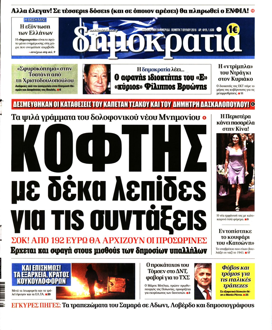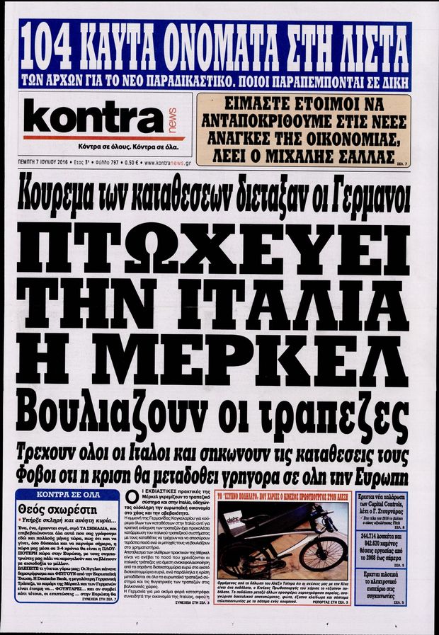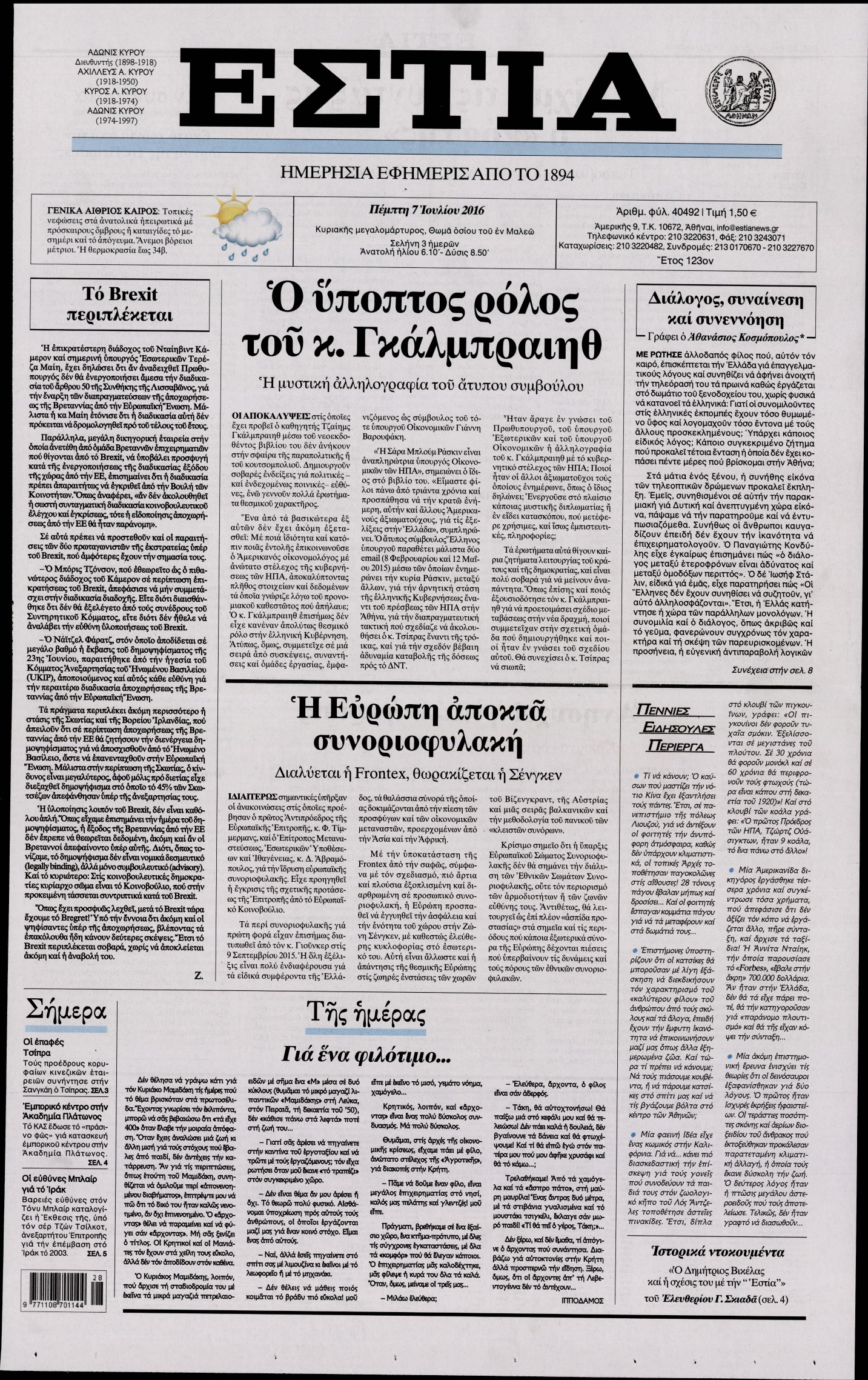 Οι πολιτικές εφημερίδες 7/7/2016 Enikos Newsroom 04:55, Πέμπτη 07 Ιουλίου 2016 Media Διαβάστε τα σημερινά πρωτοσέλιδα των πολιτικών εφημερίδων: ΠΟΛΙΤΙΚΕΣ ΕΦΗΜΕΡΙΔΕΣ ΠΡΩΤΟΣΕΛΙΔΑ Μοιράσου το: σχολίασε κι εσύ (0 σχόλια) Ακολουθήστε το enikos.gr στο Google News και μάθετε πρώτοι όλες τις ειδήσεις Δείτε όλες τις τελευταίες ειδήσεις από την Ελλάδα και τον Κόσμο στο enikos.gr Ειδήσεις Ροή Ειδήσεων 2 ώρες πριν Κυριάκος Μητσοτάκης: «Κάποιοι αγρότες δεν αισθάνονται την ανάγκη να διαφωνήσουν με τις προτάσεις της κυβέρνησης, η Ευρώπη στέκεται στο πλευρό της Ουκρανίας» 7 ώρες πριν ΟΠΕΚΕΠΕ: Προφυλακιστέος ο φερόμενος αρχηγός και ο λογιστής της εγκληματικής οργάνωσης 8 ώρες πριν Αυξάνουν την πίεση προς την κυβέρνηση οι αγρότες: Κλείνουν παρακαμπτήριους και ανοίγουν διόδια – Τι θα γίνει τις γιορτές 8 ώρες πριν Φοινικούντα: Το Σάββατο απολογείται ο 30χρονος γιος γνωστού επιχειρηματία της Πλάκας που παραδόθηκε – Όσα είπε στους αστυνομικούς και ο ρόλος του στο έγκλημα 7 ώρες πριν ΑΕΚ – Κραϊόβα 3-2: Επική ανατροπή και πρόκριση στους «16» του Conference League η Ένωση 8 ώρες πριν Αρχαιολόγοι ανακάλυψαν ρωμαϊκά τεχνουργήματα από μια πόλη που δεν υπήρξε ποτέ – Τα τρία εντυπωσιακά κτίρια και ο αμφορέας με τις… σαρδέλες 9 ώρες πριν Ύπνος: Η απλή βραδινή ρουτίνα για να προστατεύσετε τα μαλλιά σας από το κρύο κατά τη διάρκεια του χειμώνα 10 ώρες πριν Manifesting: Πώς να συναντήσετε τον σύντροφο της ζωής σας, ανάλογα με τον μήνα γέννησής σας 2 ημέρες πριν 20 χρόνια τα Χριστούγεννα ξεκινούν στα Public με μεγάλη ποικιλία σε δώρα! 11 λεπτά πριν Απειλή για το Προϋπολογισμό τα ληξιπρόθεσμα χρέη των ιδιωτών προς την εφορία 11 λεπτά πριν Πέντε νεκροί σε πλήγματα των ΗΠΑ κατά δύο σκαφών που φέρεται να μετέφεραν ναρκωτικά στον Ανατολικό Ειρηνικό 19 λεπτά πριν ΕΥΔΑΠ: Αλλάζουν τα τιμολόγια του νερού 27 λεπτά πριν Οπτική ψευδαίσθηση: Μόνο αν έχεις αετίσια ματιά θα βρεις τον παπαγάλο σε 12 δευτερόλεπτα 34 λεπτά πριν Αθήνα: Βρέθηκε η 16χρονη που είχε εξαφανιστεί από τις 6 Δεκεμβρίου – Η ανακοίνωση από το «Χαμόγελο του Παιδιού» ENIKOS NETWORK Σε περίοδο αυξημένης δραστηριότητας η γρίπη στην Ελλάδα-Μέτρα προστασίας από τον ΕΟΔΥ Σκέφτεστε συνέχεια συζητήσεις που έχετε κάνει; Τι σημαίνει αυτό, σύμφωνα με ειδικό Στεγαστικό: Τι λέει η ΠΟΜΙΔΑ για τα νέα μέτρα που ανακοίνωσε ο Κυριάκος Μητσοτάκης Λαγκάρντ: Αισιόδοξη για την ανάπτυξη της Ευρωζώνης, αβέβαιη για τον πληθωρισμό Χαρτογραφώντας το «σημείο χωρίς επιστροφή»: Για πρώτη φορά αποκαλύπτεται με λεπτομέρεια το ακανθώδες όριο της ατμόσφαιρας τ... Η Google καταργεί τη λειτουργία «dark web report» – Πώς θα μπορούν οι χρήστες να διαγράφουν τα δεδομένα τους περισσότερα 05:48 , Παρασκευή 19 Δεκεμβρίου 2025 Οι οικονομικές εφημερίδες 19/12/2025 Διαβάστε τα πρωτοσέλιδα από τις οικονομικές εφημερίδες, σήμερα 19/12/2025. 05:43 , Παρασκευή 19 Δεκεμβρίου 2025 Οι αθλητικές εφημερίδες 19/12/2025 Διαβάστε τα πρωτοσέλιδα από τις αθλητικές εφημερίδες, σήμερα 19/12/2025. 05:38 , Παρασκευή 19 Δεκεμβρίου 2025 Οι πολιτικές εφημερίδες 19/12/2025 Διαβάστε τα πρωτοσέλιδα από τις πολιτικές εφημερίδες, σήμερα 19/12/2025. 02:50 , Παρασκευή 19 Δεκεμβρίου 2025 GNTM: «Κλείδωσαν» οι τέσσερις φιναλίστ – Μεγάλη ανατροπή στις τελευταίες αποχωρήσεις Για προτελευταία φορά εμφανίστηκαν στο πλατό του GNTM οι φιναλίστ του φετινού κύκλου, το βράδυ... ΤΕΛΕΥΤΑΙΕΣ ΕΙΔΗΣΕΙΣ 11 λεπτά πριν Απειλή για το Προϋπολογισμό τα ληξιπρόθεσμα χρέη των... 11 λεπτά πριν Πέντε νεκροί σε πλήγματα των ΗΠΑ κατά δύο σκα