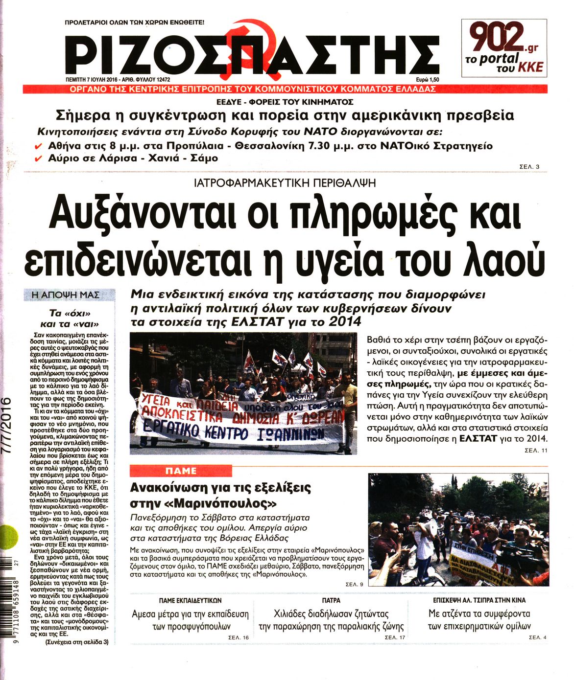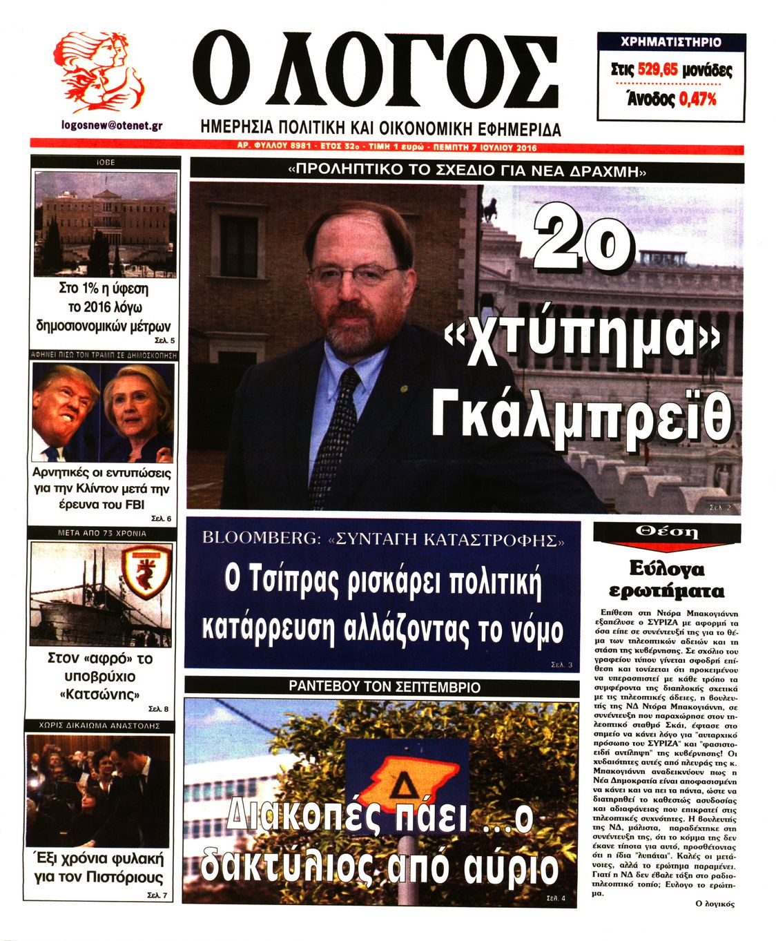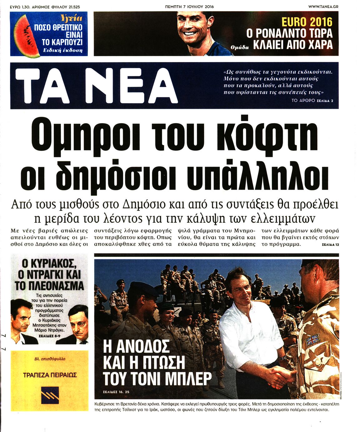 Οι πολιτικές εφημερίδες 7/7/2016 Enikos Newsroom 04:55, Πέμπτη 07 Ιουλίου 2016 Media Διαβάστε τα σημερινά πρωτοσέλιδα των πολιτικών εφημερίδων: ΠΟΛΙΤΙΚΕΣ ΕΦΗΜΕΡΙΔΕΣ ΠΡΩΤΟΣΕΛΙΔΑ Μοιράσου το: σχολίασε κι εσύ (0 σχόλια) Ακολουθήστε το enikos.gr στο Google News και μάθετε πρώτοι όλες τις ειδήσεις Δείτε όλες τις τελευταίες ειδήσεις από την Ελλάδα και τον Κόσμο στο enikos.gr Ειδήσεις Ροή Ειδήσεων 2 ώρες πριν Κυριάκος Μητσοτάκης: «Κάποιοι αγρότες δεν αισθάνονται την ανάγκη να διαφωνήσουν με τις προτάσεις της κυβέρνησης, η Ευρώπη στέκεται στο πλευρό της Ουκρανίας» 7 ώρες πριν ΟΠΕΚΕΠΕ: Προφυλακιστέος ο φερόμενος αρχηγός και ο λογιστής της εγκληματικής οργάνωσης 8 ώρες πριν Αυξάνουν την πίεση προς την κυβέρνηση οι αγρότες: Κλείνουν παρακαμπτήριους και ανοίγουν διόδια – Τι θα γίνει τις γιορτές 8 ώρες πριν Φοινικούντα: Το Σάββατο απολογείται ο 30χρονος γιος γνωστού επιχειρηματία της Πλάκας που παραδόθηκε – Όσα είπε στους αστυνομικούς και ο ρόλος του στο έγκλημα 7 ώρες πριν ΑΕΚ – Κραϊόβα 3-2: Επική ανατροπή και πρόκριση στους «16» του Conference League η Ένωση 8 ώρες πριν Αρχαιολόγοι ανακάλυψαν ρωμαϊκά τεχνουργήματα από μια πόλη που δεν υπήρξε ποτέ – Τα τρία εντυπωσιακά κτίρια και ο αμφορέας με τις… σαρδέλες 9 ώρες πριν Ύπνος: Η απλή βραδινή ρουτίνα για να προστατεύσετε τα μαλλιά σας από το κρύο κατά τη διάρκεια του χειμώνα 10 ώρες πριν Manifesting: Πώς να συναντήσετε τον σύντροφο της ζωής σας, ανάλογα με τον μήνα γέννησής σας 2 ημέρες πριν 20 χρόνια τα Χριστούγεννα ξεκινούν στα Public με μεγάλη ποικιλία σε δώρα! 11 λεπτά πριν Απειλή για το Προϋπολογισμό τα ληξιπρόθεσμα χρέη των ιδιωτών προς την εφορία 11 λεπτά πριν Πέντε νεκροί σε πλήγματα των ΗΠΑ κατά δύο σκαφών που φέρεται να μετέφεραν ναρκωτικά στον Ανατολικό Ειρηνικό 19 λεπτά πριν ΕΥΔΑΠ: Αλλάζουν τα τιμολόγια του νερού 27 λεπτά πριν Οπτική ψευδαίσθηση: Μόνο αν έχεις αετίσια ματιά θα βρεις τον παπαγάλο σε 12 δευτερόλεπτα 34 λεπτά πριν Αθήνα: Βρέθηκε η 16χρονη που είχε εξαφανιστεί από τις 6 Δεκεμβρίου – Η ανακοίνωση από το «Χαμόγελο του Παιδιού» ENIKOS NETWORK Σε περίοδο αυξημένης δραστηριότητας η γρίπη στην Ελλάδα-Μέτρα προστασίας από τον ΕΟΔΥ Σκέφτεστε συνέχεια συζητήσεις που έχετε κάνει; Τι σημαίνει αυτό, σύμφωνα με ειδικό Στεγαστικό: Τι λέει η ΠΟΜΙΔΑ για τα νέα μέτρα που ανακοίνωσε ο Κυριάκος Μητσοτάκης Λαγκάρντ: Αισιόδοξη για την ανάπτυξη της Ευρωζώνης, αβέβαιη για τον πληθωρισμό Χαρτογραφώντας το «σημείο χωρίς επιστροφή»: Για πρώτη φορά αποκαλύπτεται με λεπτομέρεια το ακανθώδες όριο της ατμόσφαιρας τ... Η Google καταργεί τη λειτουργία «dark web report» – Πώς θα μπορούν οι χρήστες να διαγράφουν τα δεδομένα τους περισσότερα 05:48 , Παρασκευή 19 Δεκεμβρίου 2025 Οι οικονομικές εφημερίδες 19/12/2025 Διαβάστε τα πρωτοσέλιδα από τις οικονομικές εφημερίδες, σήμερα 19/12/2025. 05:43 , Παρασκευή 19 Δεκεμβρίου 2025 Οι αθλητικές εφημερίδες 19/12/2025 Διαβάστε τα πρωτοσέλιδα από τις αθλητικές εφημερίδες, σήμερα 19/12/2025. 05:38 , Παρασκευή 19 Δεκεμβρίου 2025 Οι πολιτικές εφημερίδες 19/12/2025 Διαβάστε τα πρωτοσέλιδα από τις πολιτικές εφημερίδες, σήμερα 19/12/2025. 02:50 , Παρασκευή 19 Δεκεμβρίου 2025 GNTM: «Κλείδωσαν» οι τέσσερις φιναλίστ – Μεγάλη ανατροπή στις τελευταίες αποχωρήσεις Για προτελευταία φορά εμφανίστηκαν στο πλατό του GNTM οι φιναλίστ του φετινού κύκλου, το βράδυ... ΤΕΛΕΥΤΑΙΕΣ ΕΙΔΗΣΕΙΣ 11 λεπτά πριν Απειλή για το Προϋπολογισμό τα ληξιπρόθεσμα χρέη των... 11 λεπτά πριν Πέντε νεκροί σε πλήγματα των ΗΠΑ κατά δύο σκα