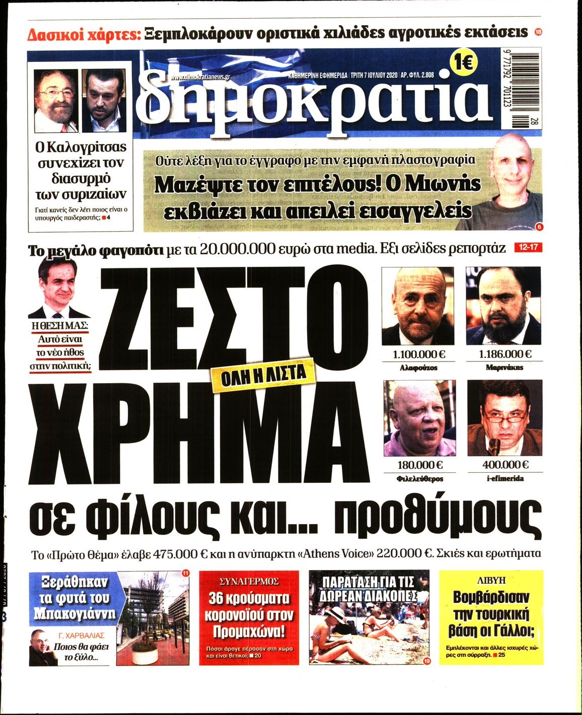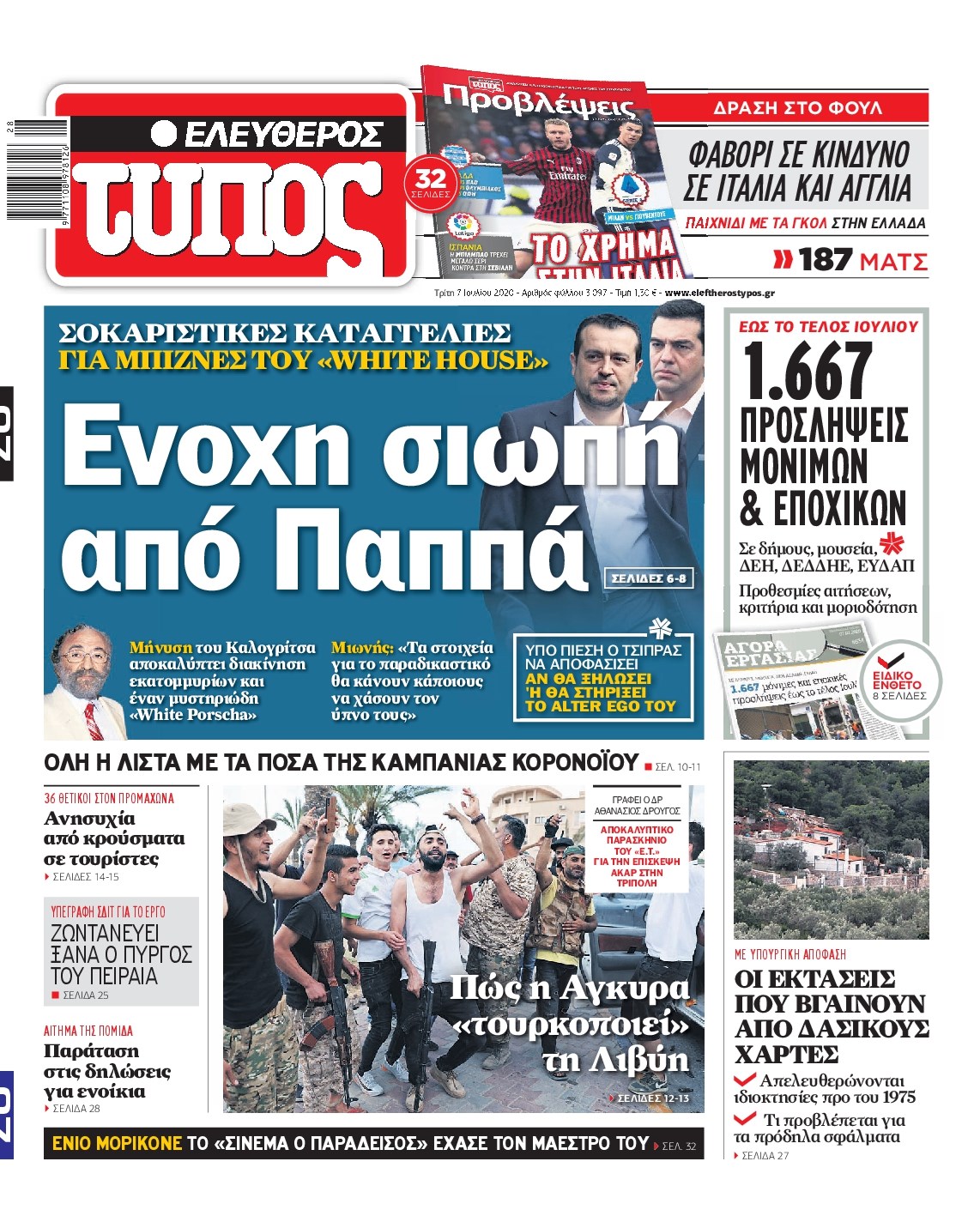 Οι πολιτικές εφημερίδες 7/7/2020 Διονύσης Νίκκας 06:08, Τρίτη 07 Ιουλίου 2020 Media Διαβάστε τα πρωτοσέλιδα των πολιτικών εφημερίδων… ΠΟΛΙΤΙΚΕΣ ΕΦΗΜΕΡΙΔΕΣ ΠΡΩΤΟΣΕΛΙΔΑ Μοιράσου το: σχολίασε κι εσύ (0 σχόλια) Ακολουθήστε το enikos.gr στο Google News και μάθετε πρώτοι όλες τις ειδήσεις Δείτε όλες τις τελευταίες ειδήσεις από την Ελλάδα και τον Κόσμο στο enikos.gr Ειδήσεις Ροή Ειδήσεων 4 ώρες πριν Χριστούγεννα στα μπλόκα: Επιμένουν στις κινητοποιήσεις τους οι αγρότες – Ανοίγουν τα διόδια το Σαββατοκύριακο 4 ώρες πριν Ουκρανία: Η άνευ προηγουμένου επίθεση σε ρωσικό τάνκερ στη Μεσόγειο και το μήνυμα προς στον Πούτιν – Το «μακρύ χέρι» του Κιέβου 3 ώρες πριν Πούτιν: Τα μηνύματα σε Ευρώπη και ΝΑΤΟ από το μαραθώνιο «σόου» του – Η απαίτηση για «σεβασμό» και η ειρήνη «με τους όρους» της Μόσχας 4 ώρες πριν Τραμπ: Δεν αποκλείει την πιθανότητα ενός πολέμου στη Βενεζουέλα – «Ο Μαδούρο ξέρει καλύτερα από τον καθένα τι ακριβώς θέλω» 5 ώρες πριν Συνεχίζει να προκαλεί ο Μίτσκοσκι: «Για μένα το όνομα Μακεδονία είναι ιερό» 4 ώρες πριν Ανακαλύφθηκαν αρχαία χρυσά νομίσματα 2.200 ετών που απεικονίζουν τον θεό Απόλλωνα – Η άγνωστη σύνδεση με τον Φίλιππο Β΄ της Μακεδονίας 4 ώρες πριν Ύπνος: Μια κρυφή κατάσταση του εγκεφάλου πριν από τον ύπνο μπορεί να είναι το “κλειδί” για υψηλή ευφυΐα και δημιουργικότητα 5 ώρες πριν Αριθμολογία: Οι άνθρωποι που έχουν γεννηθεί αυτές τις 4 ημερομηνίες, συχνά παρεξηγούνται – «Η καλοσύνη τους κρύβει τεράστια δύναμη» 6 ώρες πριν Ξεχάστε το καθάρισμα το Σαββατοκύριακο: Ο «κανόνας των 20 λεπτών» που θα σας λύσει τα χέρια 5 λεπτά πριν Ντόναλντ Τραμπ: «Πολύ βαριά αντίποινα» στη Συρία – «Πλήττουμε πολύ δυνατά οχυρά του Ισλαμικού Κράτους» 20 λεπτά πριν Εξάρχεια: Ένταση με μολότοφ, χημικά και κρότου λάμψης 35 λεπτά πριν ΗΠΑ: Τραγωδία στην Αλαμπάμα – Σκότωσε την δημοσιογράφο σύζυγό του και αυτοκτόνησε μπροστά στον 3χρονο γιο τους 50 λεπτά πριν Πρόταση γάμου στο ΣΕΦ κατά την διάρκεια του αγώνα Ολυμπιακός-Βιλερμπάν – Δείτε βίντεο 1 ώρα πριν Euroleague: Επέστρεψε στις νίκες ο Ολυμπιακός, πήρε την ματσάρα της χρονιάς η Μπάρτσα – Τα αποτελέσματα και η βαθμολογία ENIKOS NETWORK Το ΕΚΑΒ τιμήθηκε από την Ακαδημία Αθηνών για τα 40 χρόνια προσφοράς του Έχετε πραγματικά μεγάλη καρδιά; 10 χαρακτηριστικά όσων έχουν καλοσύνη Αναστολή μέτρων αναγκαστικής εκτέλεσης για κτηνοτρόφους που πλήττονται από την ευλογιά των αιγοπροβάτων Πλήρης επάρκεια προϊόντων στις λαϊκές της Αττικής, παρά τις αγροτικές κινητοποιήσεις – Τι απαντούν οι πωλητές Χαρτογραφώντας το «σημείο χωρίς επιστροφή»: Για πρώτη φορά αποκαλύπτεται με λεπτομέρεια το ακανθώδες όριο της ατμόσφαιρας τ... Η Google καταργεί τη λειτουργία «dark web report» – Πώς θα μπορούν οι χρήστες να διαγράφουν τα δεδομένα τους περισσότερα 22:42 , Παρασκευή 19 Δεκεμβρίου 2025 Γιώργος Γιαννόπουλος για “Το σόι σου”: “Είναι ευτυχία και ευλογία αυτή η σειρά” «Είναι ευτυχία και ευλογία η συγκυρία αυτής της σειράς», θα πει ο Γιώργος Γιαννόπουλος -ο αγαπ... 20:37 , Παρασκευή 19 Δεκεμβρίου 2025 Don’t Forget The Lyrics: Η Έλλη Κοκκίνου υποδέχεται 4 παίκτες που θα κάνουν τα πάντα για να μη χάσουν ούτε… μισή λέξη από τους στίχους Το «Don’t Forget The Lyrics» επιστρέφει απόψε, Παρασκευή 19 Δεκεμβρίου, στις 21:00 με νέο επει... 19:31 , Παρασκευή 19 Δεκεμβρίου 2025 GNTM: Απόψε ο μεγάλος τελικός για τους 4 φιναλίστ Έπειτα από μήνες γεμάτους μόδα, δημιουργία και έντονες αναμετρήσεις, το GNTM 2025 κορυφώνεται,... 18:11 , Παρασκευή 1