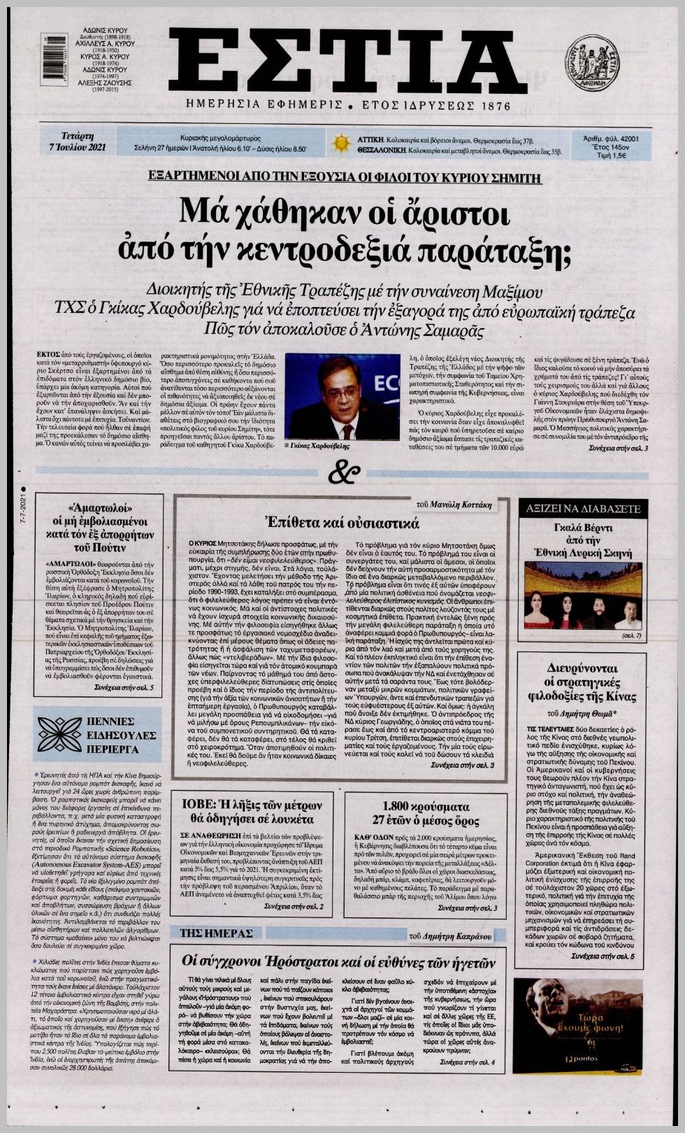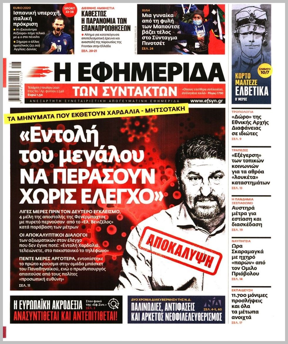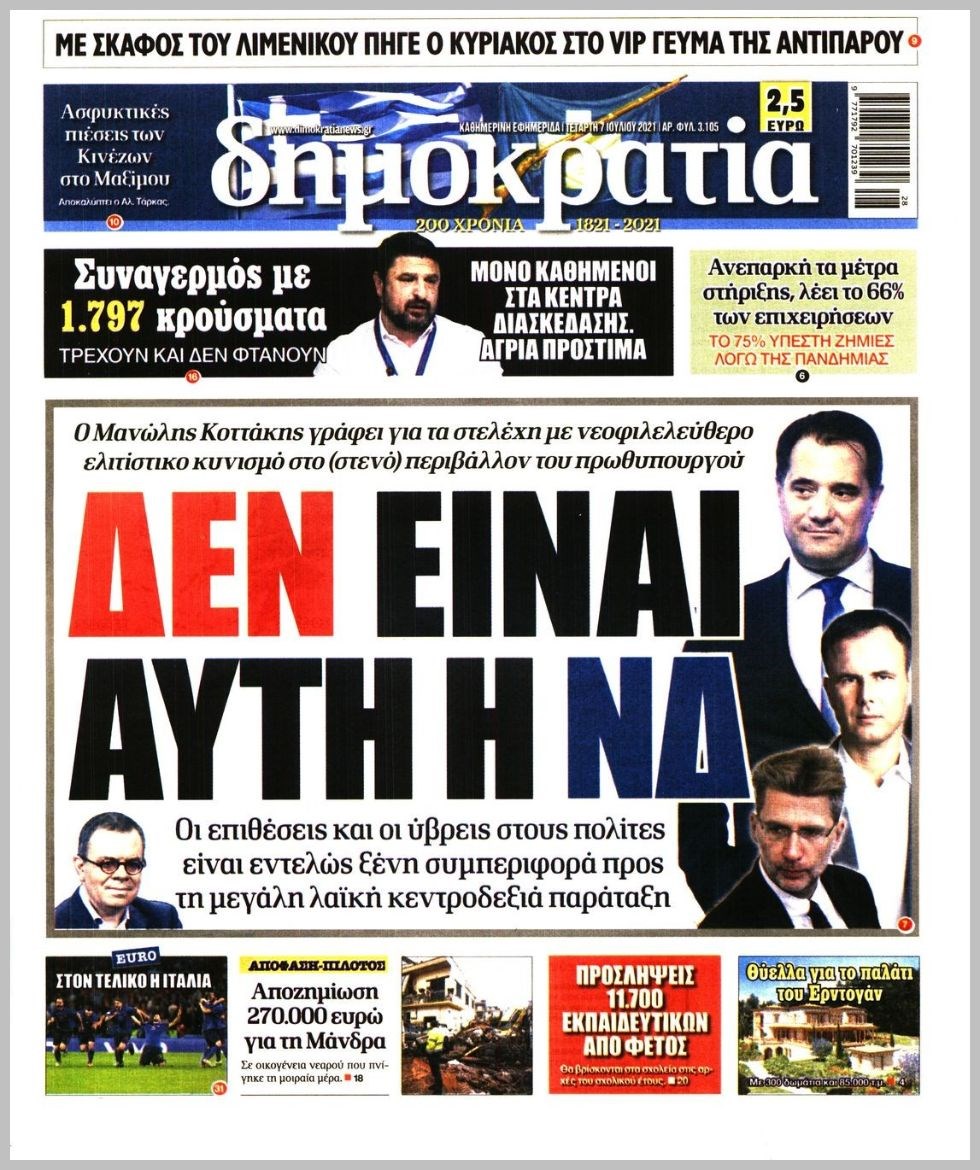Οι πολιτικές εφημερίδες 7/7/2021 Διονύσης Νίκκας 06:08, Τετάρτη 07 Ιουλίου 2021 Media Διαβάστε τα πρωτοσέλιδα των πολιτικών εφημερίδων… ΕΦΗΜΕΡΙΔΕΣ ΠΡΩΤΟΣΕΛΙΔΑ Μοιράσου το: σχολίασε κι εσύ (0 σχόλια) Ακολουθήστε το enikos.gr στο Google News και μάθετε πρώτοι όλες τις ειδήσεις Δείτε όλες τις τελευταίες ειδήσεις από την Ελλάδα και τον Κόσμο στο enikos.gr Ειδήσεις Ροή Ειδήσεων 19 λεπτά πριν Ζελένσκι: Μόνο οι ΗΠΑ και ο Τραμπ μπορούν να πιέσουν τη Ρωσία να βάλει τέλος στον πόλεμο 38 λεπτά πριν Φοινικούντα: Προφυλακιστέος ο 30χρονος για συνέργεια στη διπλή δολοφονία – Και άλλα πρόσωπα στο «μικροσκόπιο» 2 ώρες πριν Κυριάκος Μητσοτάκης: Στην Ιερουσαλήμ την Τρίτη ο Πρωθυπουργός για την τριμερή Ελλάδας, Κύπρου, Ισραήλ – Θα συναντηθεί και με τον Αμπάς 5 ώρες πριν Πώς δρούσε το κύκλωμα που διακινούσε ναρκωτικά σε σχολεία – Υπέβαλαν σε βασανιστήρια όσους δεν τηρούσαν τους «κανόνες πειθαρχίας» 1 ώρα πριν Πάπας Λέων: Όταν έχει αϋπνίες επενδύει παραγωγικά τον χρόνο του – Ποιο παιχνίδι παίζει στο κινητό 29 λεπτά πριν Αριθμολογία: Ο αριθμός του φύλακα αγγέλου σας, με βάση τον μήνα γέννησής σας – «Έτσι σας στέλνει σημάδια το σύμπαν» 1 ώρα πριν Πώς να απαλλαγείτε από τη μυρωδιά του τηγανητού φαγητού: Το μυστικό βρίσκεται στην κουζίνα σας 2 ώρες πριν Μήπως οι γιορτές σας δεν είναι τόσο τέλειες; 7 χριστουγεννιάτικες συνήθειες που μαρτυρούν ότι μια οικογένεια είναι δυσλειτουργική 13 ώρες πριν Enerwave: Το νέο «ρεύμα» στη λιανική ενέργειας που αλλάζει την εμπειρία του καταναλωτή 12 λεπτά πριν Εριέττα Μανούρη: «Έχω νιώσει ανταγωνισμό από άντρες, μύθος αυτό που λένε για τις γυναίκες» 19 λεπτά πριν Ζελένσκι: Μόνο οι ΗΠΑ και ο Τραμπ μπορούν να πιέσουν τη Ρωσία να βάλει τέλος στον πόλεμο 29 λεπτά πριν Αριθμολογία: Ο αριθμός του φύλακα αγγέλου σας, με βάση τον μήνα γέννησής σας – «Έτσι σας στέλνει σημάδια το σύμπαν» 38 λεπτά πριν Φοινικούντα: Προφυλακιστέος ο 30χρονος για συνέργεια στη διπλή δολοφονία – Και άλλα πρόσωπα στο «μικροσκόπιο» 49 λεπτά πριν Super League: Ο Σιαμπάνης «κατέβασε ρολά» και ο Βόλος νίκησε 1-0 τον Παναιτωλικό ENIKOS NETWORK Οι γυναίκες αποκαλύπτουν το πιο ελκυστικό πράγμα που μπορεί να κάνει ένας άνδρας Ομορφιά και αντιγήρανση: Ειδικοί μιλούν για συσκευές περιποίησης του δέρματος Εφορία: 7 αλλαγές σε δηλώσεις και ελέγχους ακινήτων – Όλα όσα πρέπει να γνωρίζετε Πορτοκαλί τιμολόγια ρεύματος: Τα σημεία που πρέπει να προσέξουν οι καταναλωτές – Πότε θα εφαρμοστούν Χαρτογραφώντας το «σημείο χωρίς επιστροφή»: Για πρώτη φορά αποκαλύπτεται με λεπτομέρεια το ακανθώδες όριο της ατμόσφαιρας τ... Η Google καταργεί τη λειτουργία «dark web report» – Πώς θα μπορούν οι χρήστες να διαγράφουν τα δεδομένα τους περισσότερα 20:30 , Σάββατο 20 Δεκεμβρίου 2025 Αυτή την Κυριακή με τη Realnews: Instyle, μαζί Drive και Realnews Geopolitics Αυτή την Κυριακή με τη Realnews: Instyle, μαζί Drive και Realnews Geopolitics Instyle Η Άννα Ρ... 20:28 , Σάββατο 20 Δεκεμβρίου 2025 Ο ΑΝΤ1 γεμίζει τις γιορτές με μουσική – Ποιους καλλιτέχνες θα απολαύσουμε Φέτος στον ΑΝΤ1 γιορτάζουμε τις νύχτες μας παρέα με αγαπημένους καλλιτέχνες και μεγάλες μουσι... 18:19 , Σάββατο 20 Δεκεμβρίου 2025 HOTΕΛ ΕΛVIRA: Η Ελβίρα μαθαίνει πως ο Χάρι μένει κρυφά στο ξενοδοχείο του Παντελή Συνεχίζονται οι εκλογές για πρόεδρο, στο νέο επεισόδιο της κωμικής σειράς του MEGA, HOTΕΛ ΕΛVI... 14:04 , Σάββατο 20 Δεκεμβρίου 2025 Η Realnews αυτής της Κυριακής (21/12/2025) Με τίτλο: «Ασπίδα προστασίας για την Ελλάδα» κυκλοφορεί, αυτήν την Κυριακή, η Realnews. Σημαντ... ΤΕ