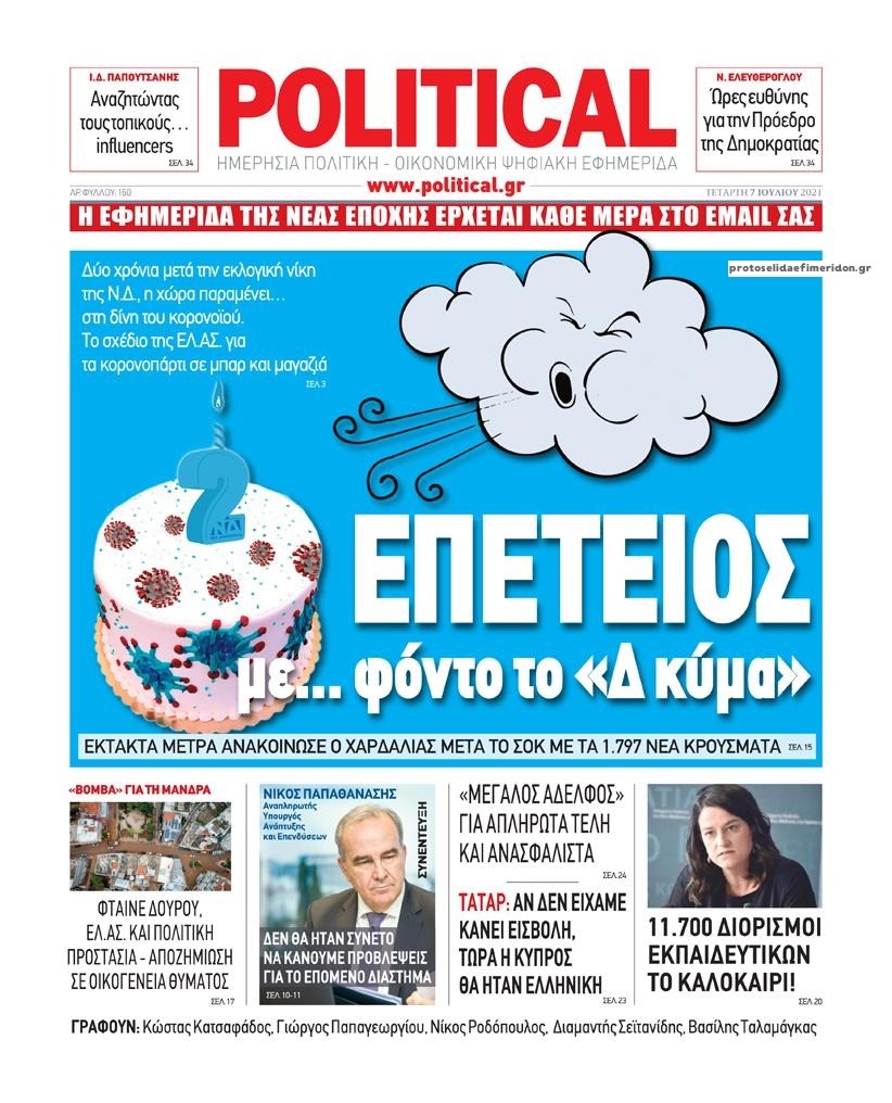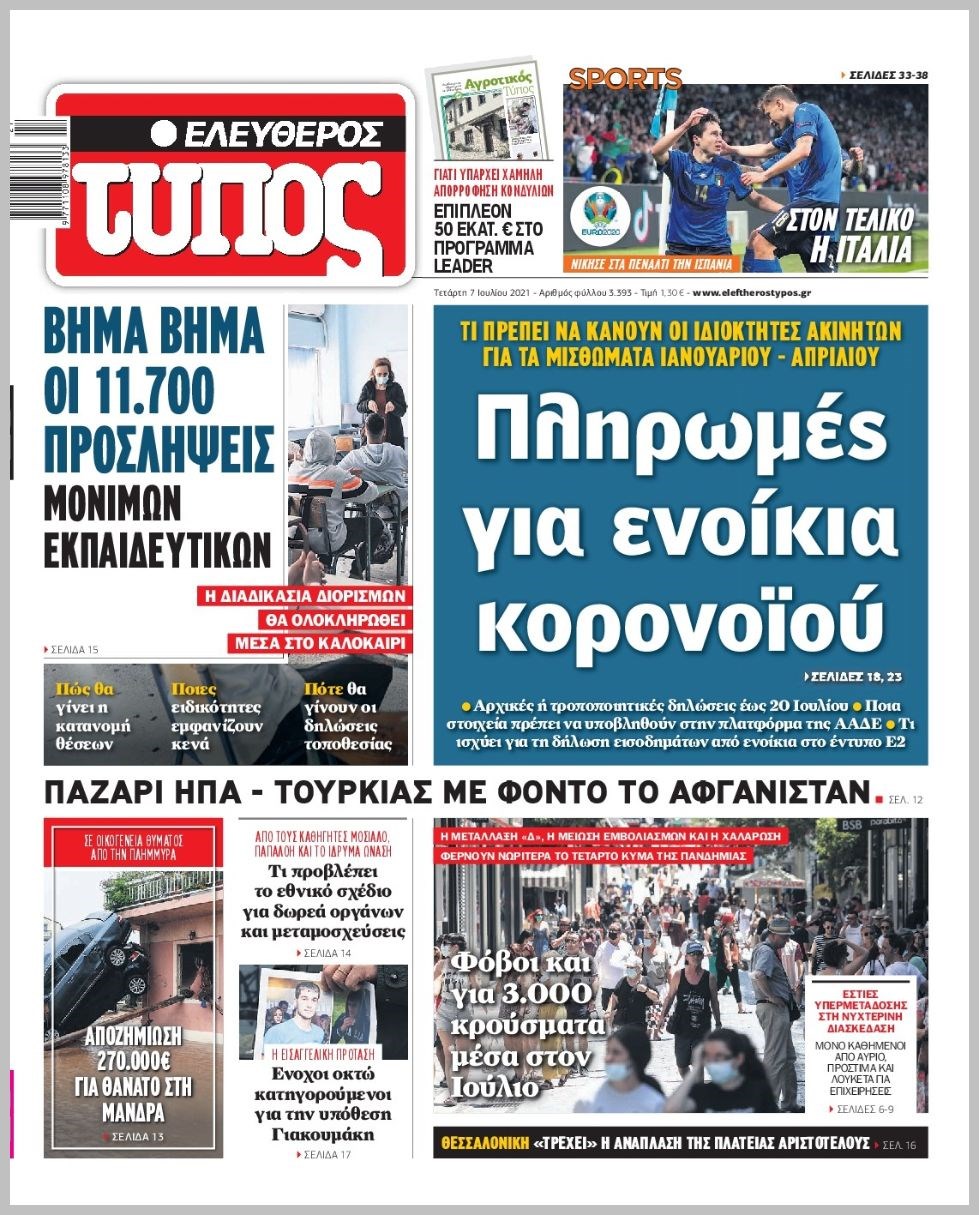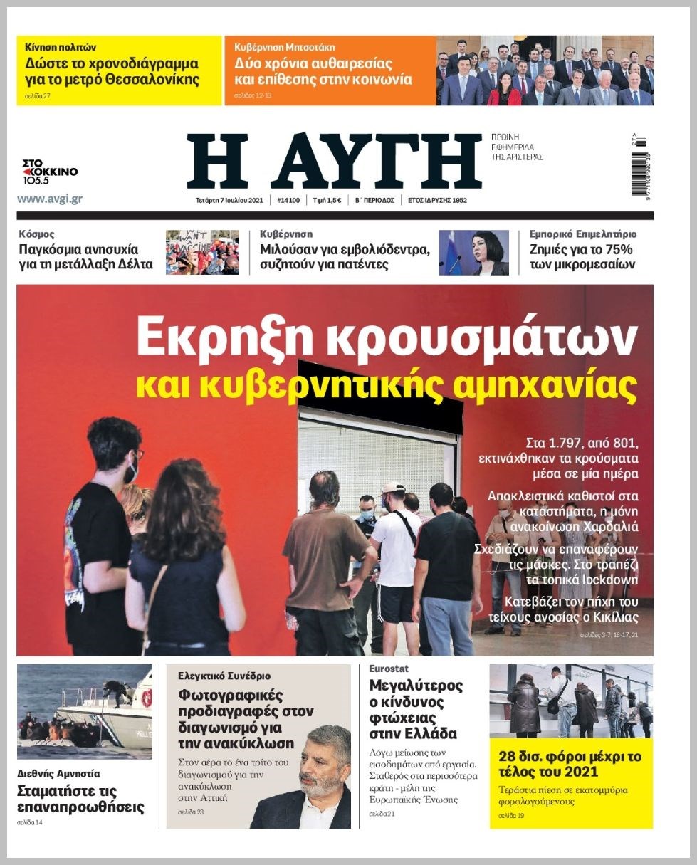 Οι πολιτικές εφημερίδες 7/7/2021 Διονύσης Νίκκας 06:08, Τετάρτη 07 Ιουλίου 2021 Media Διαβάστε τα πρωτοσέλιδα των πολιτικών εφημερίδων… ΕΦΗΜΕΡΙΔΕΣ ΠΡΩΤΟΣΕΛΙΔΑ Μοιράσου το: σχολίασε κι εσύ (0 σχόλια) Ακολουθήστε το enikos.gr στο Google News και μάθετε πρώτοι όλες τις ειδήσεις Δείτε όλες τις τελευταίες ειδήσεις από την Ελλάδα και τον Κόσμο στο enikos.gr Ειδήσεις Ροή Ειδήσεων 19 λεπτά πριν Ζελένσκι: Μόνο οι ΗΠΑ και ο Τραμπ μπορούν να πιέσουν τη Ρωσία να βάλει τέλος στον πόλεμο 38 λεπτά πριν Φοινικούντα: Προφυλακιστέος ο 30χρονος για συνέργεια στη διπλή δολοφονία – Και άλλα πρόσωπα στο «μικροσκόπιο» 2 ώρες πριν Κυριάκος Μητσοτάκης: Στην Ιερουσαλήμ την Τρίτη ο Πρωθυπουργός για την τριμερή Ελλάδας, Κύπρου, Ισραήλ – Θα συναντηθεί και με τον Αμπάς 5 ώρες πριν Πώς δρούσε το κύκλωμα που διακινούσε ναρκωτικά σε σχολεία – Υπέβαλαν σε βασανιστήρια όσους δεν τηρούσαν τους «κανόνες πειθαρχίας» 1 ώρα πριν Πάπας Λέων: Όταν έχει αϋπνίες επενδύει παραγωγικά τον χρόνο του – Ποιο παιχνίδι παίζει στο κινητό 29 λεπτά πριν Αριθμολογία: Ο αριθμός του φύλακα αγγέλου σας, με βάση τον μήνα γέννησής σας – «Έτσι σας στέλνει σημάδια το σύμπαν» 1 ώρα πριν Πώς να απαλλαγείτε από τη μυρωδιά του τηγανητού φαγητού: Το μυστικό βρίσκεται στην κουζίνα σας 2 ώρες πριν Μήπως οι γιορτές σας δεν είναι τόσο τέλειες; 7 χριστουγεννιάτικες συνήθειες που μαρτυρούν ότι μια οικογένεια είναι δυσλειτουργική 13 ώρες πριν Enerwave: Το νέο «ρεύμα» στη λιανική ενέργειας που αλλάζει την εμπειρία του καταναλωτή 12 λεπτά πριν Εριέττα Μανούρη: «Έχω νιώσει ανταγωνισμό από άντρες, μύθος αυτό που λένε για τις γυναίκες» 19 λεπτά πριν Ζελένσκι: Μόνο οι ΗΠΑ και ο Τραμπ μπορούν να πιέσουν τη Ρωσία να βάλει τέλος στον πόλεμο 29 λεπτά πριν Αριθμολογία: Ο αριθμός του φύλακα αγγέλου σας, με βάση τον μήνα γέννησής σας – «Έτσι σας στέλνει σημάδια το σύμπαν» 38 λεπτά πριν Φοινικούντα: Προφυλακιστέος ο 30χρονος για συνέργεια στη διπλή δολοφονία – Και άλλα πρόσωπα στο «μικροσκόπιο» 49 λεπτά πριν Super League: Ο Σιαμπάνης «κατέβασε ρολά» και ο Βόλος νίκησε 1-0 τον Παναιτωλικό ENIKOS NETWORK Οι γυναίκες αποκαλύπτουν το πιο ελκυστικό πράγμα που μπορεί να κάνει ένας άνδρας Ομορφιά και αντιγήρανση: Ειδικοί μιλούν για συσκευές περιποίησης του δέρματος Εφορία: 7 αλλαγές σε δηλώσεις και ελέγχους ακινήτων – Όλα όσα πρέπει να γνωρίζετε Πορτοκαλί τιμολόγια ρεύματος: Τα σημεία που πρέπει να προσέξουν οι καταναλωτές – Πότε θα εφαρμοστούν Χαρτογραφώντας το «σημείο χωρίς επιστροφή»: Για πρώτη φορά αποκαλύπτεται με λεπτομέρεια το ακανθώδες όριο της ατμόσφαιρας τ... Η Google καταργεί τη λειτουργία «dark web report» – Πώς θα μπορούν οι χρήστες να διαγράφουν τα δεδομένα τους περισσότερα 20:30 , Σάββατο 20 Δεκεμβρίου 2025 Αυτή την Κυριακή με τη Realnews: Instyle, μαζί Drive και Realnews Geopolitics Αυτή την Κυριακή με τη Realnews: Instyle, μαζί Drive και Realnews Geopolitics Instyle Η Άννα Ρ... 20:28 , Σάββατο 20 Δεκεμβρίου 2025 Ο ΑΝΤ1 γεμίζει τις γιορτές με μουσική – Ποιους καλλιτέχνες θα απολαύσουμε Φέτος στον ΑΝΤ1 γιορτάζουμε τις νύχτες μας παρέα με αγαπημένους καλλιτέχνες και μεγάλες μουσι... 18:19 , Σάββατο 20 Δεκεμβρίου 2025 HOTΕΛ ΕΛVIRA: Η Ελβίρα μαθαίνει πως ο Χάρι μένει κρυφά στο ξενοδοχείο του Παντελή Συνεχίζονται οι εκλογές για πρόεδρο, στο νέο επεισόδιο της κωμικής σειράς του MEGA, HOTΕΛ ΕΛVI... 14:04 , Σάββατο 20 Δεκεμβρίου 2025 Η Realnews αυτής της Κυριακής (21/12/2025) Με τίτλο: «Ασπίδα προστασίας για την Ελλάδα» κυκλοφορεί, αυτήν την Κυριακή, η Realnews. Σημαντ... ΤΕ