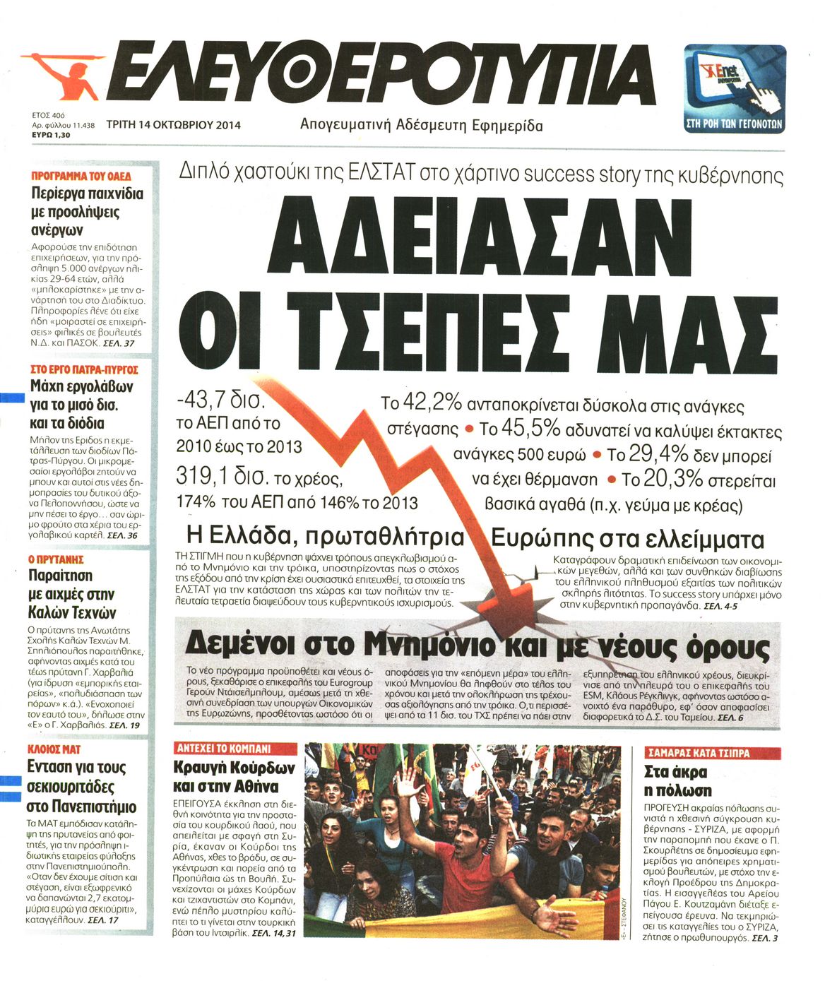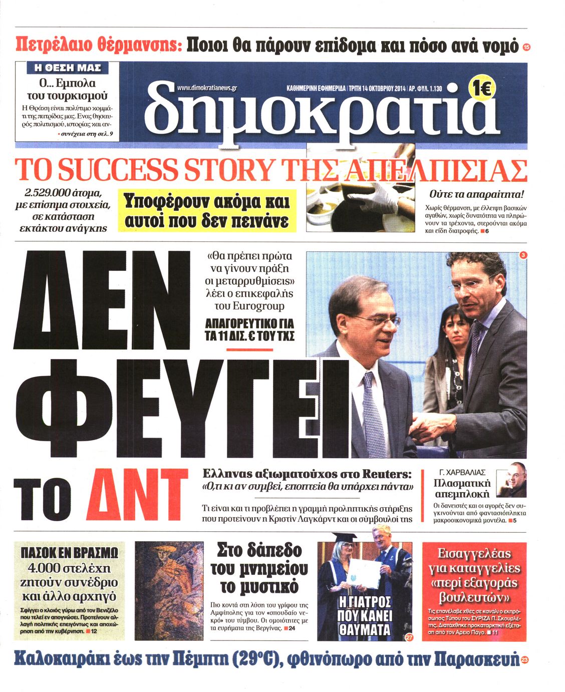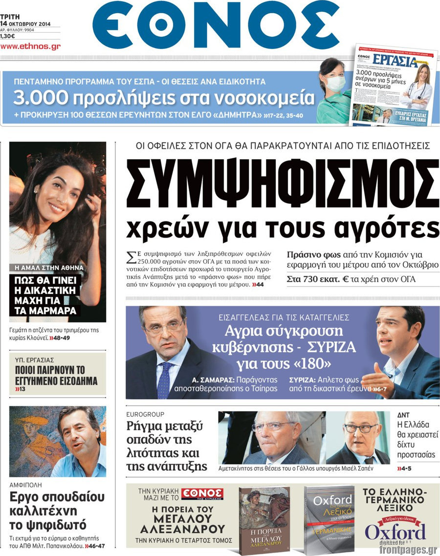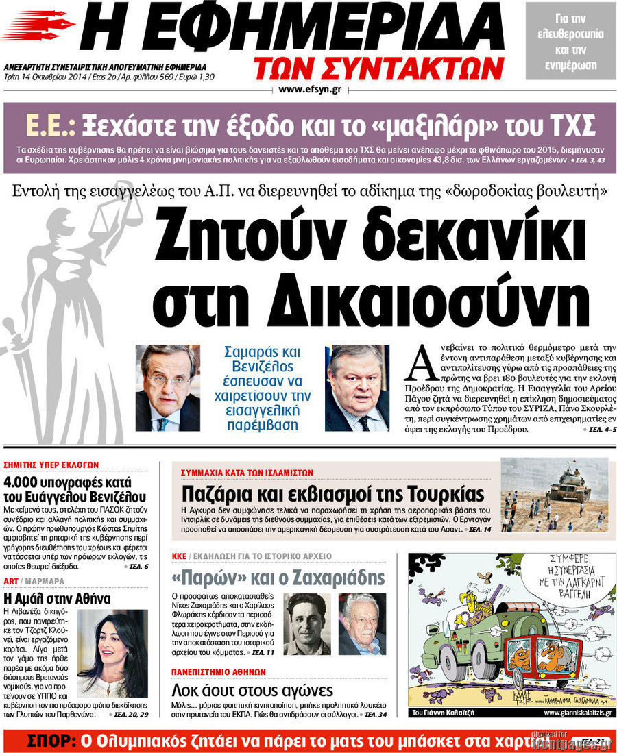 Οι πολιτικές εφημερίδες Enikos Newsroom 08:05, Τρίτη 14 Οκτωβρίου 2014 Media Οι πολιτικές εφημερίδες Διαβάστε τα πρωτοσέλιδα των πολιτικών εφημερίδων: ΕΦΗΜΕΡΙΔΕΣ ΠΟΛΙΤΙΚΕΣ ΕΦΗΜΕΡΙΔΕΣ ΠΡΩΤΟΣΕΛΙΔΑ Μοιράσου το: σχολίασε κι εσύ (0 σχόλια) Ακολουθήστε το enikos.gr στο Google News και μάθετε πρώτοι όλες τις ειδήσεις Δείτε όλες τις τελευταίες ειδήσεις από την Ελλάδα και τον Κόσμο στο enikos.gr Ειδήσεις Ροή Ειδήσεων 59 λεπτά πριν Ευρωπαϊκή Ένωση: Συμφωνία για δάνειο 90 δισ. ευρώ στην Ουκρανία τη διετία 2026-2027 5 ώρες πριν ΟΠΕΚΕΠΕ: Προφυλακιστέος ο φερόμενος αρχηγός και ο λογιστής της εγκληματικής οργάνωσης 7 ώρες πριν Αυξάνουν την πίεση προς την κυβέρνηση οι αγρότες: Κλείνουν παρακαμπτήριους και ανοίγουν διόδια – Τι θα γίνει τις γιορτές 6 ώρες πριν Φοινικούντα: Το Σάββατο απολογείται ο 30χρονος γιος γνωστού επιχειρηματία της Πλάκας που παραδόθηκε – Όσα είπε στους αστυνομικούς και ο ρόλος του στο έγκλημα 5 ώρες πριν ΑΕΚ – Κραϊόβα 3-2: Επική ανατροπή και πρόκριση στους «16» του Conference League η Ένωση 6 ώρες πριν Αρχαιολόγοι ανακάλυψαν ρωμαϊκά τεχνουργήματα από μια πόλη που δεν υπήρξε ποτέ – Τα τρία εντυπωσιακά κτίρια και ο αμφορέας με τις… σαρδέλες 7 ώρες πριν Ύπνος: Η απλή βραδινή ρουτίνα για να προστατεύσετε τα μαλλιά σας από το κρύο κατά τη διάρκεια του χειμώνα 8 ώρες πριν Manifesting: Πώς να συναντήσετε τον σύντροφο της ζωής σας, ανάλογα με τον μήνα γέννησής σας 2 ημέρες πριν 20 χρόνια τα Χριστούγεννα ξεκινούν στα Public με μεγάλη ποικιλία σε δώρα! 7 λεπτά πριν Αλεξάντερ Λουκασένκο: Η Λευκορωσία βρίσκεται κοντά στην αποκατάσταση των σχέσεών της με τις ΗΠΑ 22 λεπτά πριν Αυστραλία: Κήρυξε την Κυριακή (21/12) ημέρα εθνικού πένθους για τη φονική επίθεση στην παραλία Μπόνταϊ 32 λεπτά πριν Ρόδος: Δάσκαλος καράτε καταδικάστηκε για ασέλγεια σε ανήλικες αθλήτριες – Μαρτυρίες για αγγίγματα σε ευαίσθητα σημεία 47 λεπτά πριν Γουατεμάλα: Εξαρθρώθηκε κύκλωμα διακίνησης μεταναστών προς τις ΗΠΑ – Συνελήφθησαν 14 άτομα 52 λεπτά πριν Βουλγαρία: Χιλιάδες πολίτες στους δρόμους κατά της απερχόμενης κυβέρνησης και της διαφθοράς ENIKOS NETWORK Σε περίοδο αυξημένης δραστηριότητας η γρίπη στην Ελλάδα-Μέτρα προστασίας από τον ΕΟΔΥ Σκέφτεστε συνέχεια συζητήσεις που έχετε κάνει; Τι σημαίνει αυτό, σύμφωνα με ειδικό Στεγαστικό: Τι λέει η ΠΟΜΙΔΑ για τα νέα μέτρα που ανακοίνωσε ο Κυριάκος Μητσοτάκης Λαγκάρντ: Αισιόδοξη για την ανάπτυξη της Ευρωζώνης, αβέβαιη για τον πληθωρισμό Χαρτογραφώντας το «σημείο χωρίς επιστροφή»: Για πρώτη φορά αποκαλύπτεται με λεπτομέρεια το ακανθώδες όριο της ατμόσφαιρας τ... Η Google καταργεί τη λειτουργία «dark web report» – Πώς θα μπορούν οι χρήστες να διαγράφουν τα δεδομένα τους περισσότερα 02:50 , Παρασκευή 19 Δεκεμβρίου 2025 GNTM: «Κλείδωσαν» οι τέσσερις φιναλίστ – Μεγάλη ανατροπή στις τελευταίες αποχωρήσεις Για προτελευταία φορά εμφανίστηκαν στο πλατό του GNTM οι φιναλίστ του φετινού κύκλου, το βράδυ... 17:45 , Πέμπτη 18 Δεκεμβρίου 2025 ROUK ZOUK: Εορταστικό επεισόδιο με καλεσμένους τους πρωταγωνιστές του «Γιατί ρε πατέρα» Το Σάββατο 20 Δεκεμβρίου στις 21:00, η Ζέτα Μακρυπούλια υποδέχεται εκλεκτούς ηθοποιούς που όλο... 17:20 , Πέμπτη 18 Δεκεμβρίου 2025 Άγιος έρωτας: Η Χριστίνα εξομολογείται στον πατέρα Νικόλαο, απόψε στις 21:00 στον Alpha Η Νότα αποφασίζει να εκδικηθεί τον Πέτρο και τον Στέφανο, για χάρη του Λούη, όμως τα πράγματα ... 16:50 , Πέμπτη 18 Δεκεμβρίου 2025 Να μ’ αγαπάς: Ζωή και Φωτεινή συμφιλιώνονται ως μάνα με κόρη, απόψε στις 20:00 Η ταυ