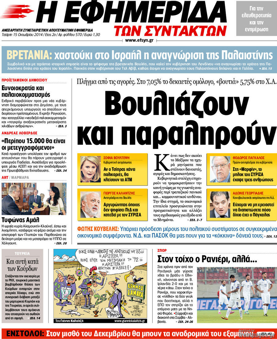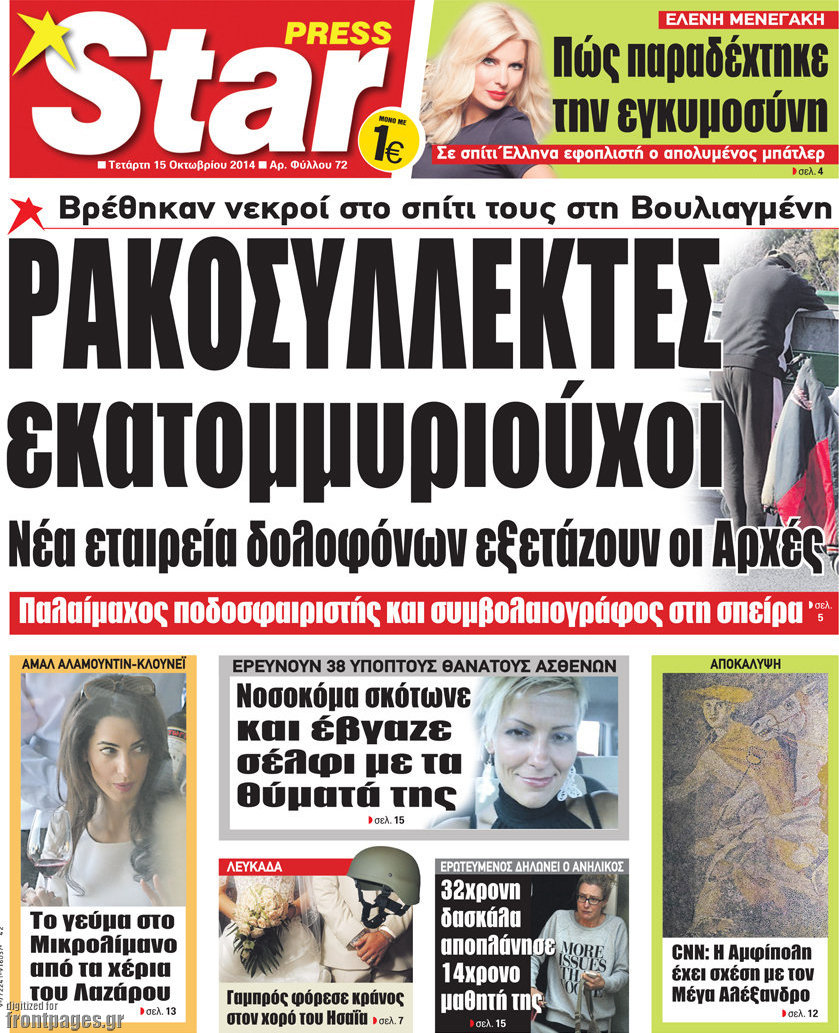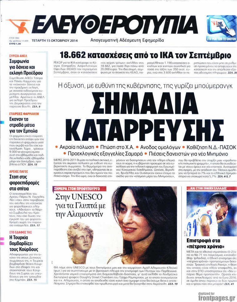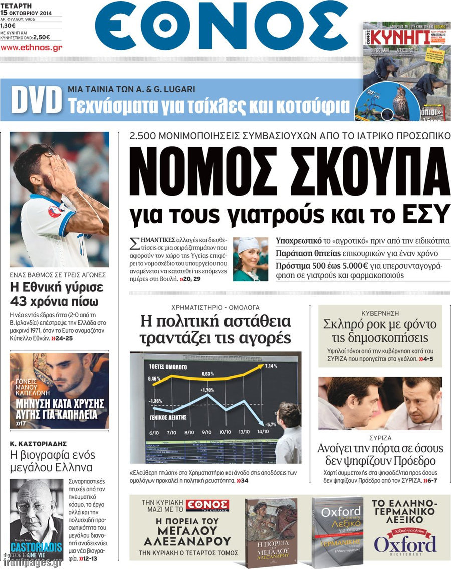 Οι πολιτικές εφημερίδες Enikos Newsroom 07:48, Τετάρτη 15 Οκτωβρίου 2014 Media Οι πολιτικές εφημερίδες Διαβάστε τα πρωτοσέλιδα των πολιτικών εφημερίδων: ΕΦΗΜΕΡΙΔΕΣ ΠΟΛΙΤΙΚΕΣ ΕΦΗΜΕΡΙΔΕΣ ΠΡΩΤΟΣΕΛΙΔΑ Μοιράσου το: σχολίασε κι εσύ (0 σχόλια) Ακολουθήστε το enikos.gr στο Google News και μάθετε πρώτοι όλες τις ειδήσεις Δείτε όλες τις τελευταίες ειδήσεις από την Ελλάδα και τον Κόσμο στο enikos.gr Ειδήσεις Ροή Ειδήσεων 2 ώρες πριν Γιορτές με μπλόκα για τους αγρότες: Ανοίγουν διόδια και μοιράζουν προϊόντα στους ταξιδιώτες 2 ώρες πριν Τα αρχεία του Έπσταϊν αποκαλύπτουν φωτογραφία του έκπτωτου πρίγκιπα Άντριου – Είναι ξαπλωμένος στην αγκαλιά 5 γυναικών 1 ώρα πριν Νέες ταυτότητες: Μεγάλη αναμονή για ραντεβού στην Αττική – Τέλος τα ταξίδια εκτός Ελλάδος από τον Αύγουστο για όσους δεν έχουν αλλάξει 3 ώρες πριν Εξαφάνιση 33χρονου γιατρού στην Κρήτη: «Άναψα τα φώτα, τρόμαξε και άρχισε να τρέχει στα χωράφια» – Η τελευταία διαδρομή και η μαρτυρία «κλειδί» 34 λεπτά πριν Ινδία: Επτά ελέφαντες σκοτώθηκαν κατά τη σύγκρουση επιβατικού τρένου με κοπάδι 2 ώρες πριν Μία νέα «χρυσή» περίοδος αρχίζει για 3 ζώδια από σήμερα – «Μία αναπάντεχη ευκαιρία οδηγεί στην επιτυχία» 4 ώρες πριν Αρχαιολόγοι ανακάλυψαν σε χωράφι απεικόνιση 600 ετών ενός Αγίου – Τα στοιχεία που δείχνουν ότι μαρτύρησε 3 ώρες πριν Αγχώνεται για το χριστουγεννιάτικο δώρο που πήρε στην πλούσια σύντροφό του – «Φοβάμαι πως θα το βρει φθηνιάρικο, φοράει βραχιόλια Cartier» 32 λεπτά πριν Διαιτολόγος αποκαλύπτει 9 πρωινές συνήθειες που «λιώνουν» το κοιλιακό λίπος – «Υποστηρίζουν την υγιεινή απώλεια βάρους» 3 λεπτά πριν Αρχεία Έπσταϊν: Οι συγκλονιστικές φωτογραφίες – Ο Μάικλ Τζάκσον, ο Μικ Τζάγκερ και ο Κέβιν Σπέισι ανάμεσα στους διάσημους που απεικονίζονται 11 λεπτά πριν Χρήστος Μάντακας: «Θα μπορούσα να είχα φύγει από τη ζωή, δεν μπορούσα να περπατήσω…» 18 λεπτά πριν Εντυπωσιακό βίντεο από «τσουνάμι» πάγου στη Σιβηρία – Πώς προκαλείται το σπάνιο φαινόμενο 27 λεπτά πριν Μυλωνάκης κατά Τζάκρη: Την καλώ να ανασκευάσει το αδιανόητο ψέμα της. Η ανοχή έχει και τα όρια της» 32 λεπτά πριν Διαιτολόγος αποκαλύπτει 9 πρωινές συνήθειες που «λιώνουν» το κοιλιακό λίπος – «Υποστηρίζουν την υγιεινή απώλεια βάρους» ENIKOS NETWORK Είστε μόνιμα απρόσεκτοι; 3 σημάδια που δείχνουν ότι μπορεί να είναι σύμπτωμα πάθησης Πόσα κιλά παίρνουμε πραγματικά τα Χριστούγεννα, σύμφωνα με την επιστήμη – Πώς να το αποτρέψουμε; Χριστούγεννα και Πρωτοχρονιά: Πώς αμείβονται όσοι εργαστούν e-ΕΦΚΑ και ΔΥΠΑ: Έρχονται νέες πληρωμές έως τις 24 Δεκεμβρίου – Ποιοι πάνε ταμείο Χαρτογραφώντας το «σημείο χωρίς επιστροφή»: Για πρώτη φορά αποκαλύπτεται με λεπτομέρεια το ακανθώδες όριο της ατμόσφαιρας τ... Η Google καταργεί τη λειτουργία «dark web report» – Πώς θα μπορούν οι χρήστες να διαγράφουν τα δεδομένα τους περισσότερα 11:41 , Σάββατο 20 Δεκεμβρίου 2025 «Η αγάπη δεν χάνεται ποτέ»: Η μικρού μήκους ταινία κινουμένων σχεδίων που θέτει ερωτήματα για τη ζωή και τον θάνατο Ο θάνατος είναι ένα από τα πιο σκληρά θέματα που καλείται να διαχειριστεί κάποιος στη διάρκεια... 09:30 , Σάββατο 20 Δεκεμβρίου 2025 «Porto Leone: Στη γειτονιά με τα κόκκινα φανάρια» – Ο Χρόνης αποκαλύπτει στην Αλεξάνδρα το μυστικό για το παιδί της Λένας Η μεγάλη δραματική σειρά του Apha «Porto Leone: Στη γειτονιά με τα κόκκινα φανάρια» μας μεταφέ... 08:14 , Σάββατο 20 Δεκεμβρίου 2025 Τρομεροί γονείς: Η Μαρία Καβογιάννη εισβάλλει στο σπίτι της οικογένειας Στεφ